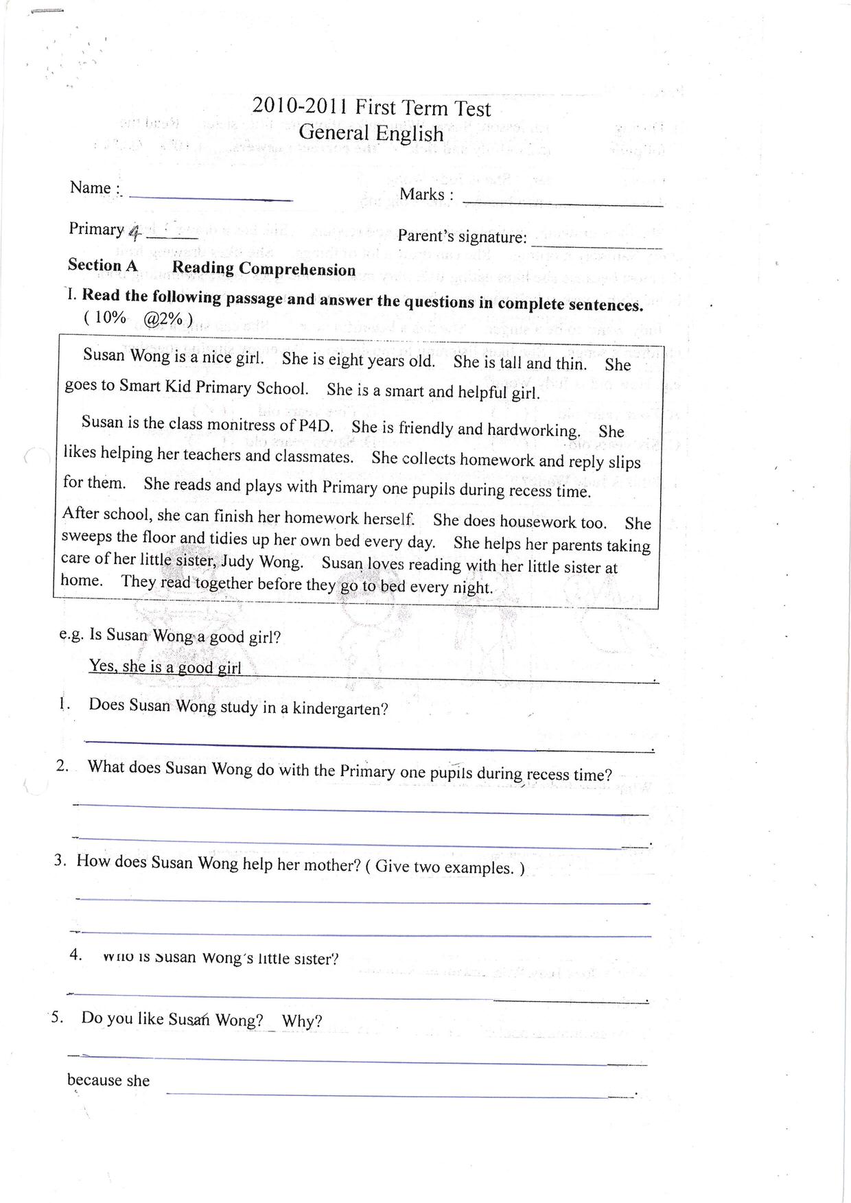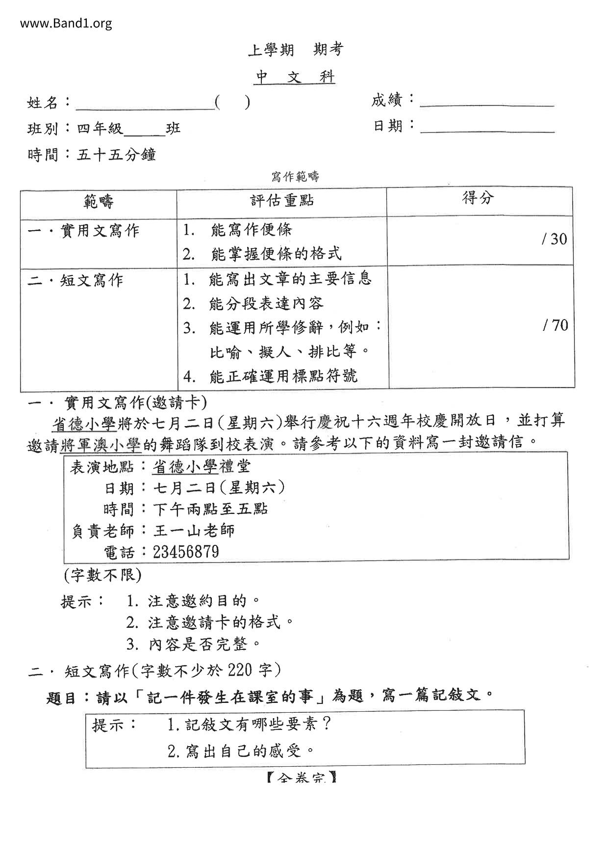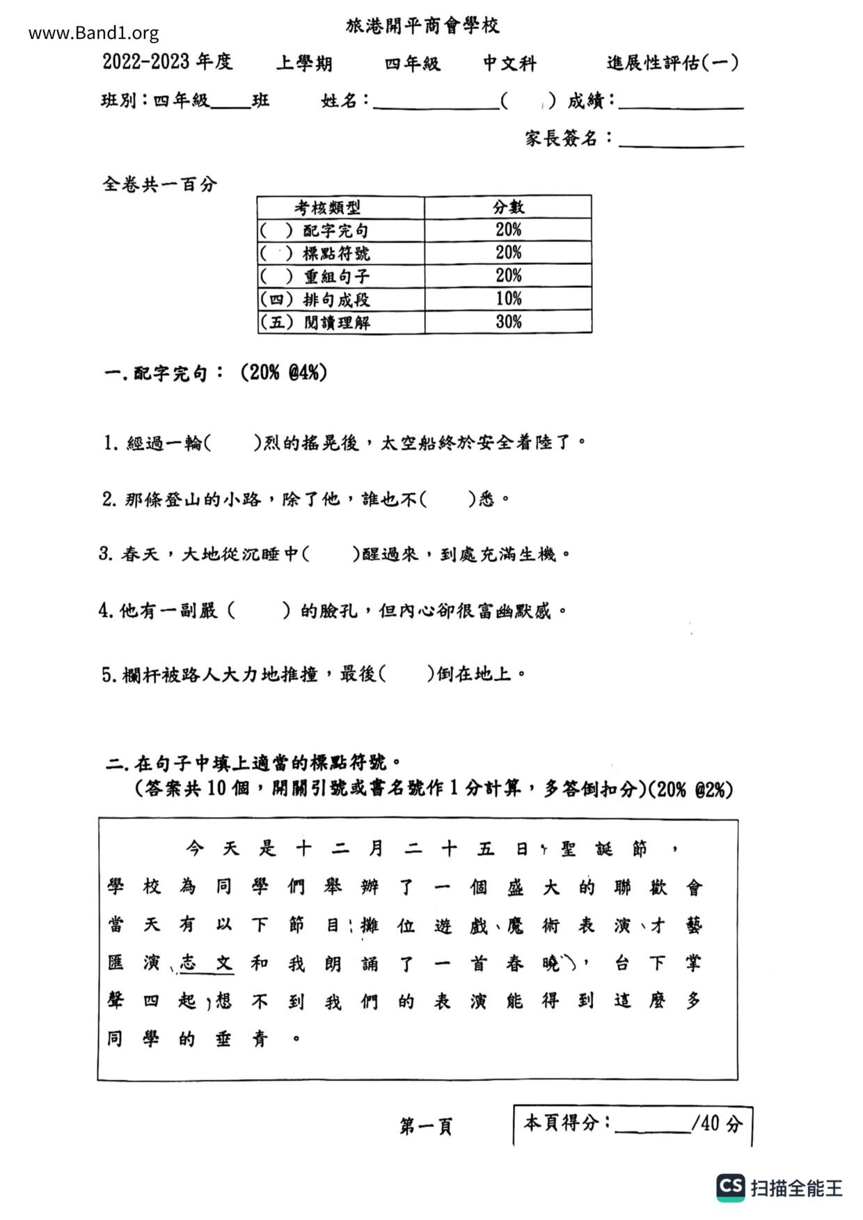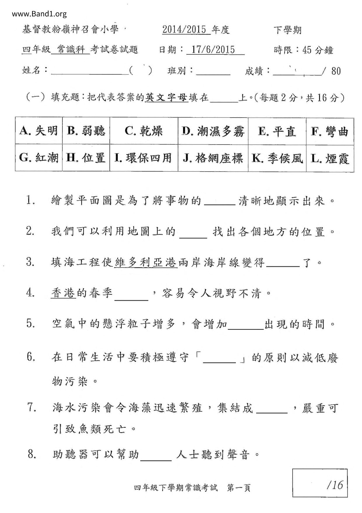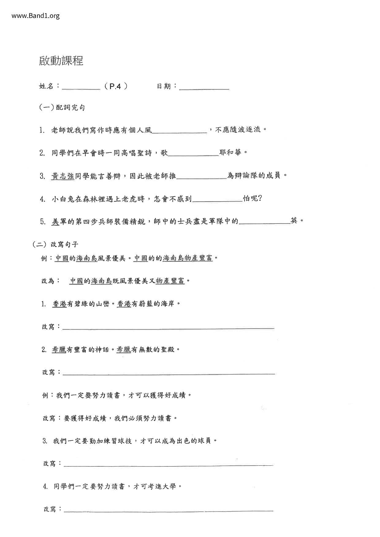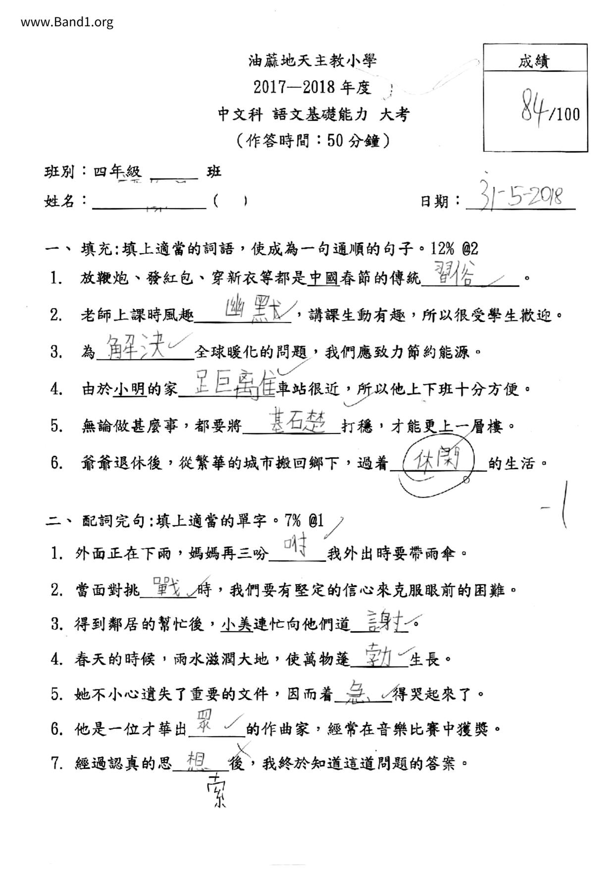 小四 英文 香港九龍塘基督教中華宣道會台山陳元喜小學