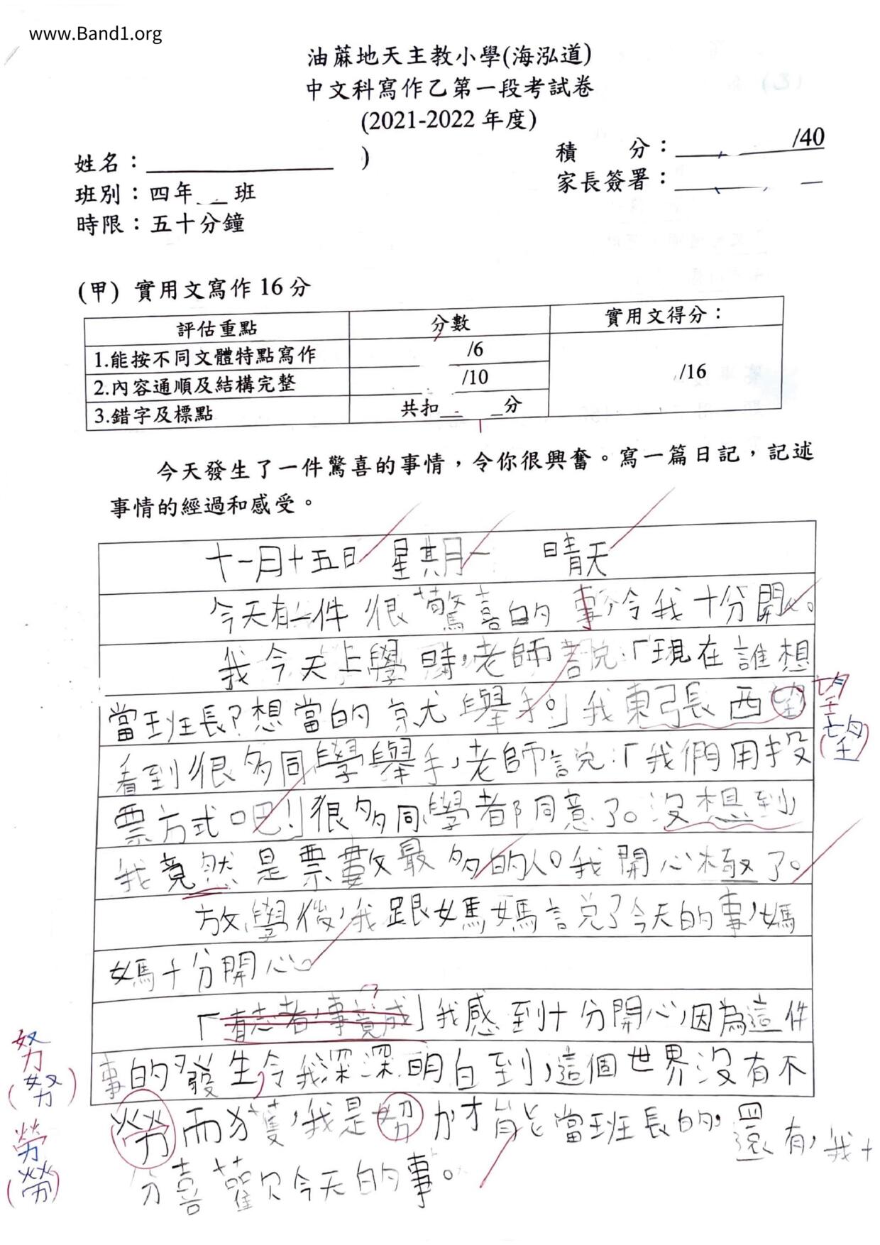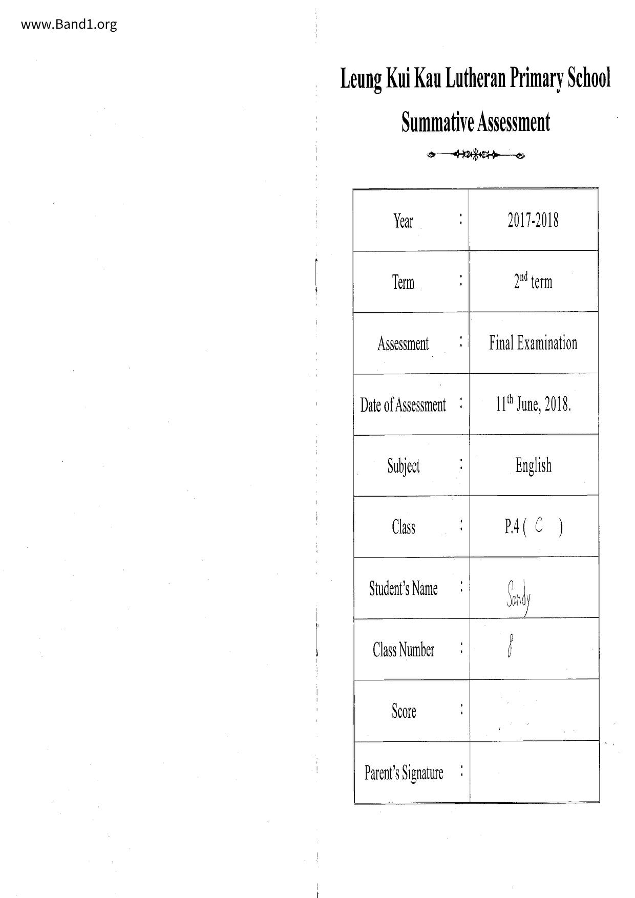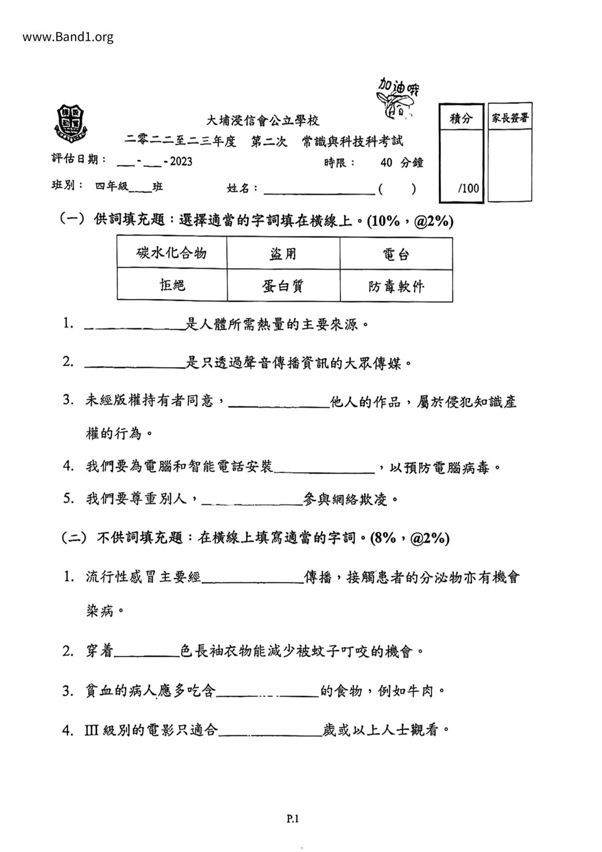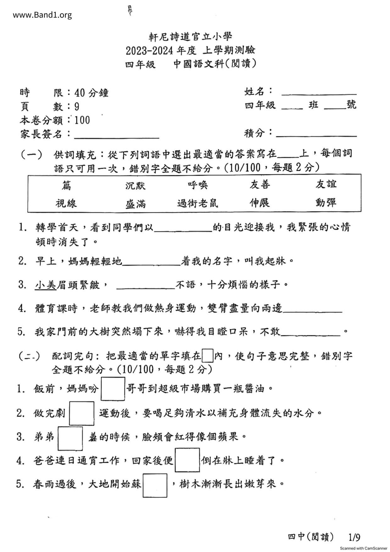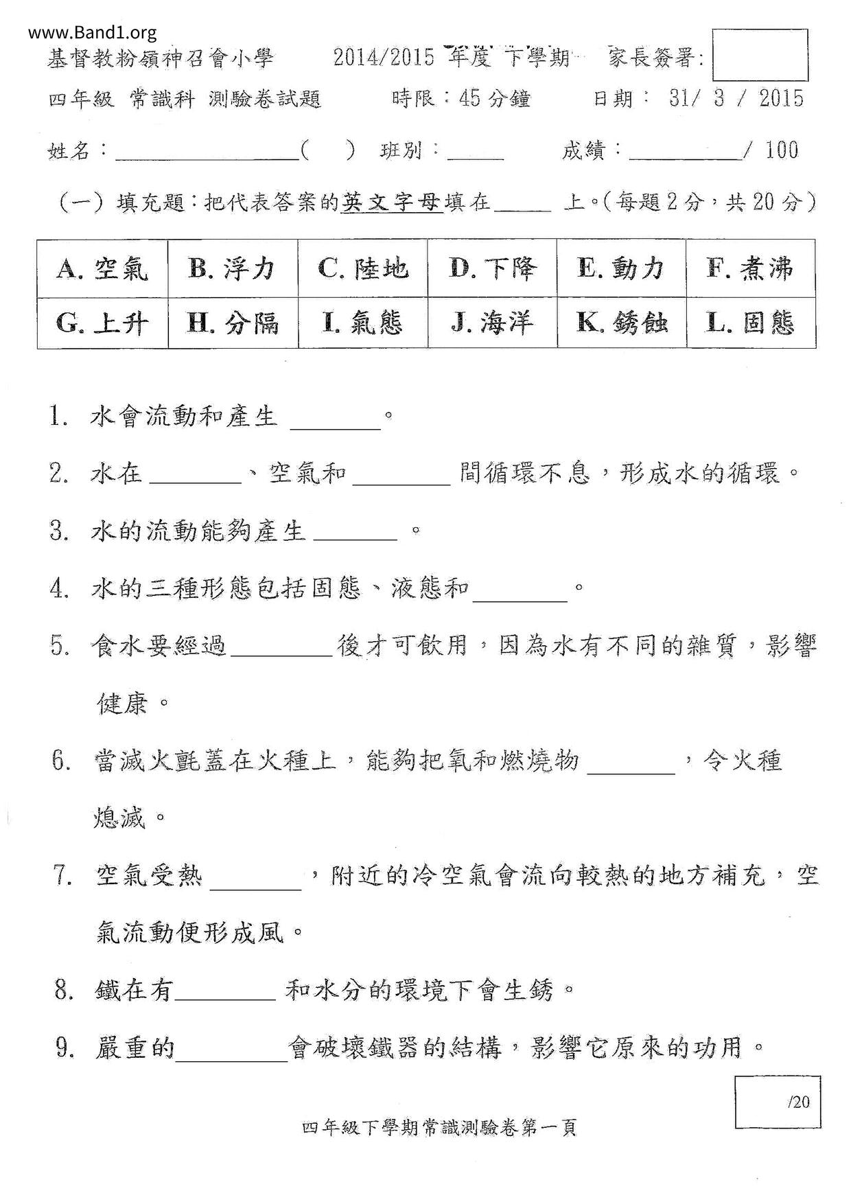 小四 英文 香港九龍塘基督教中華宣道會台山陳元喜小學