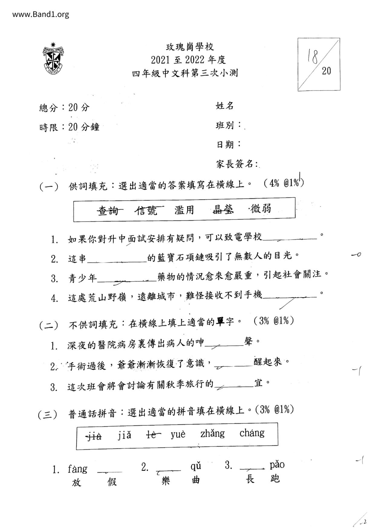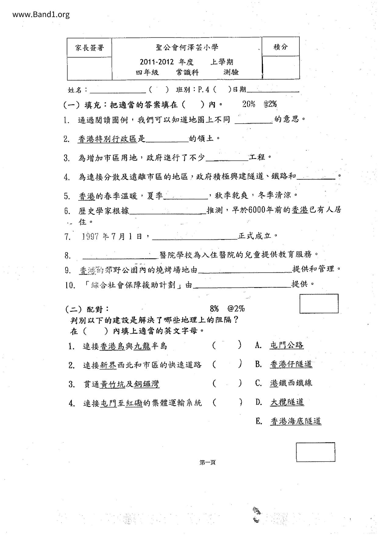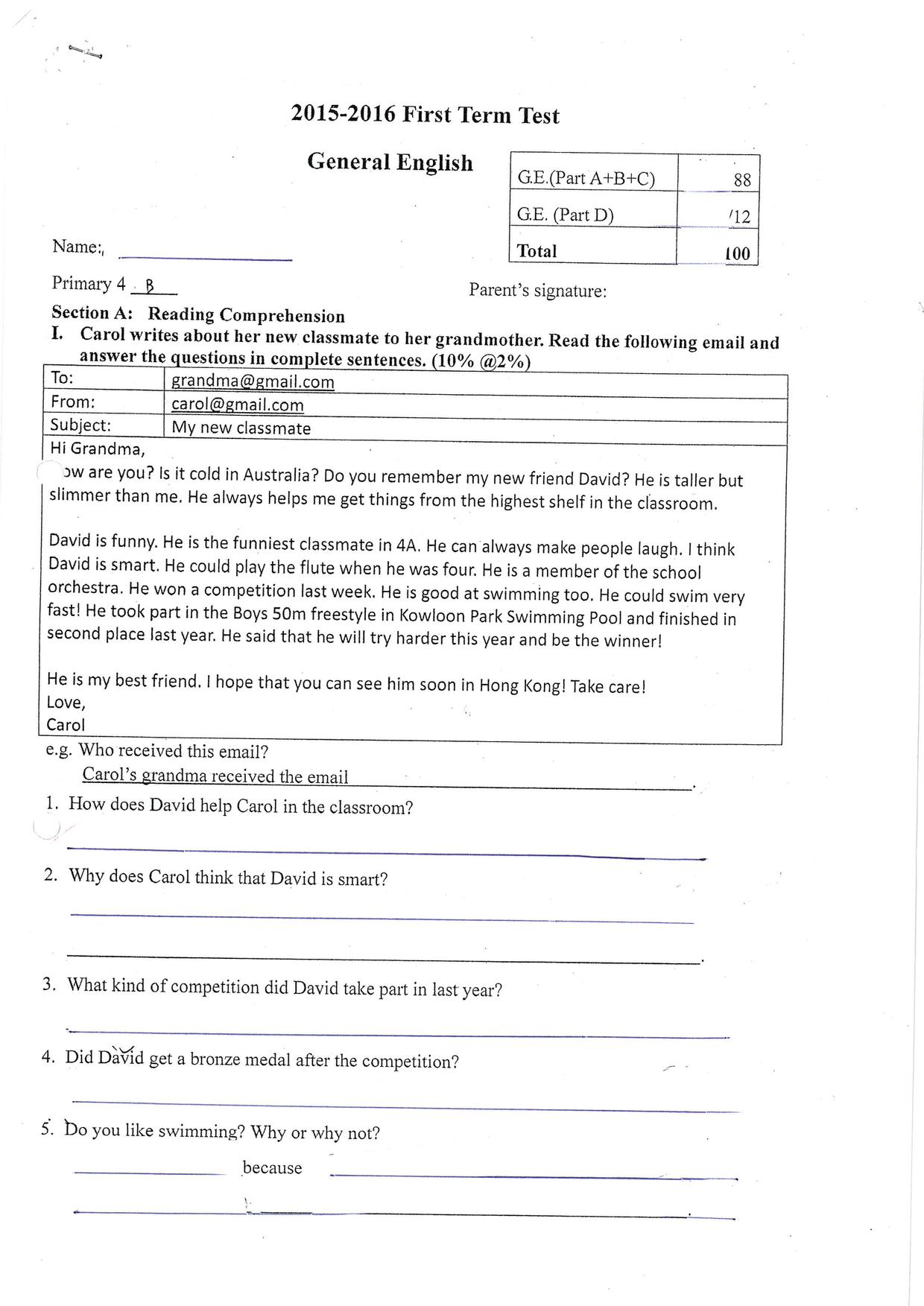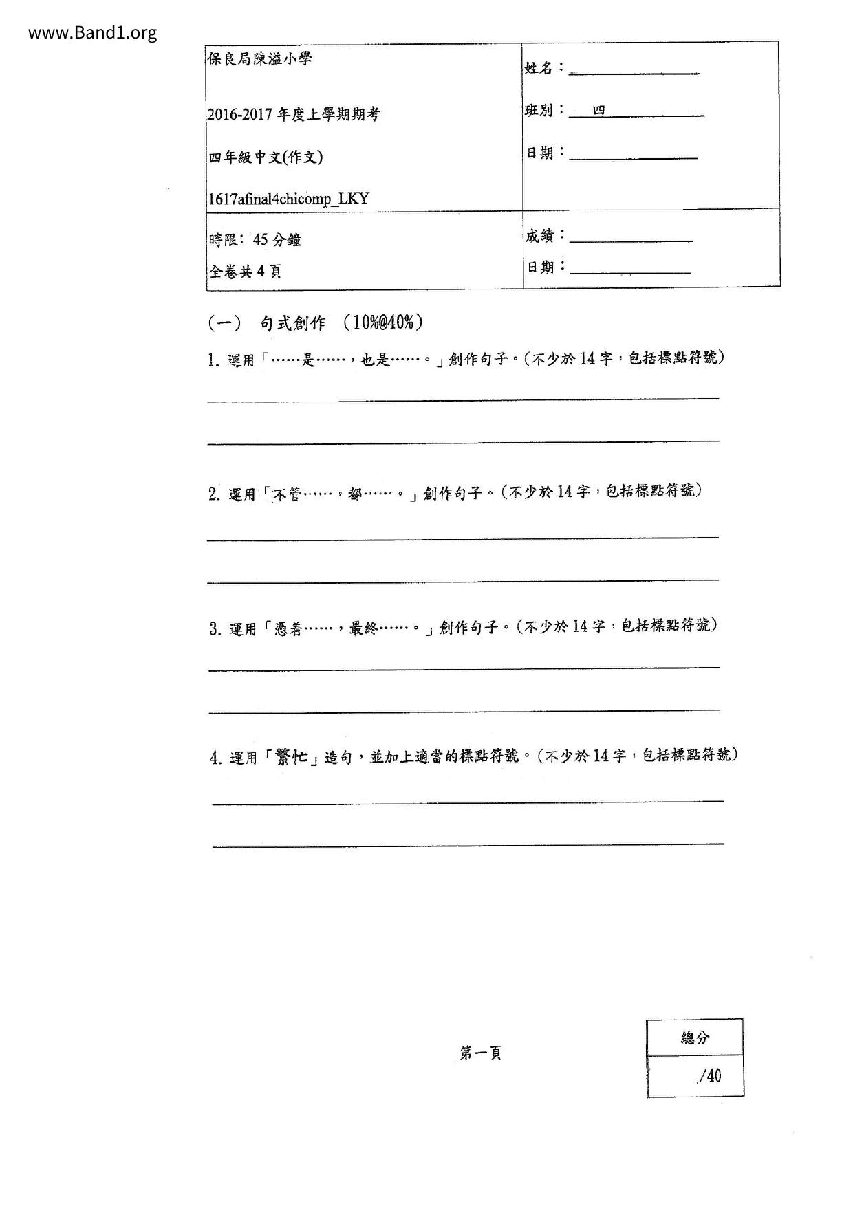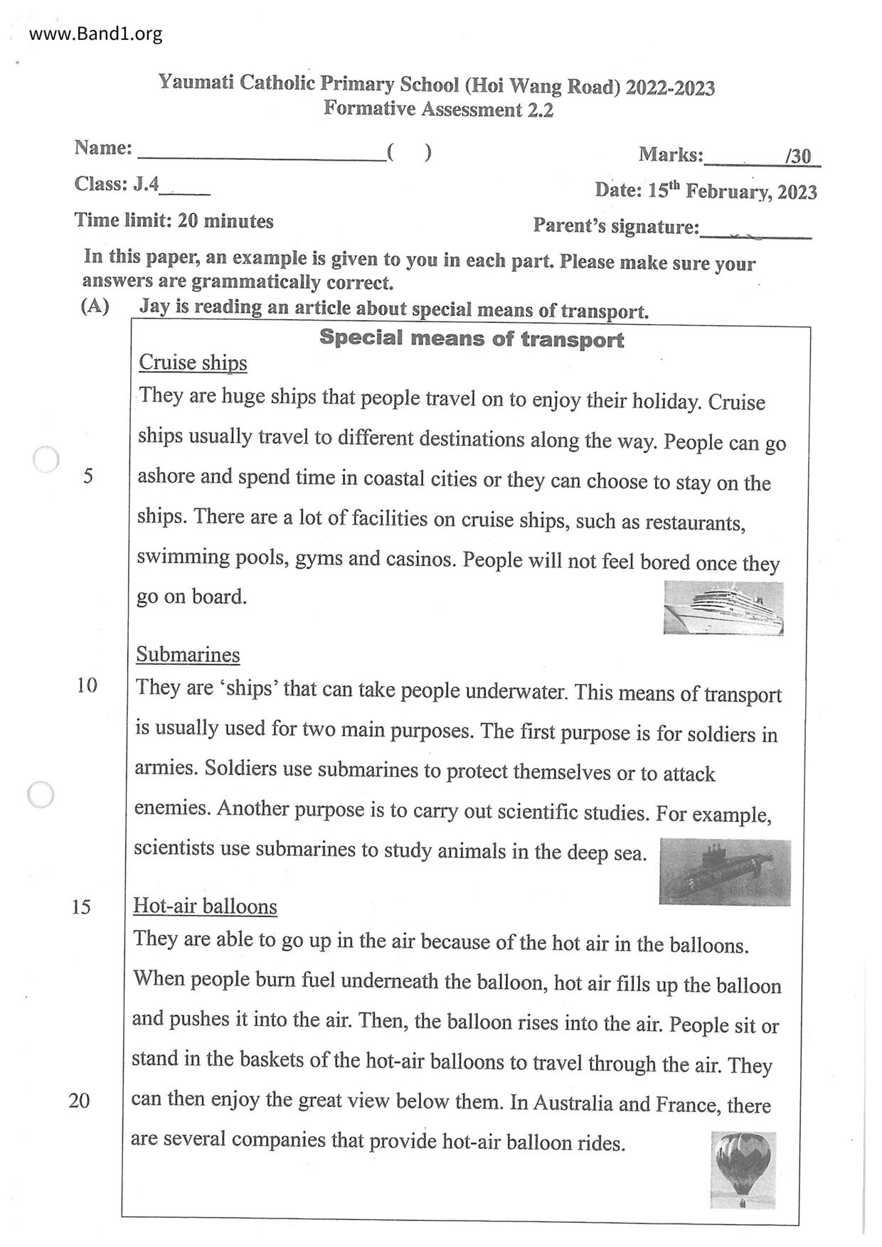 小四 英文 香港九龍塘基督教中華宣道會台山陳元喜小學