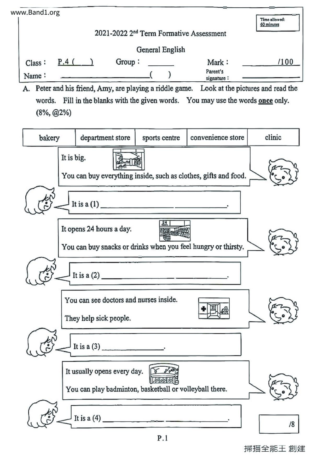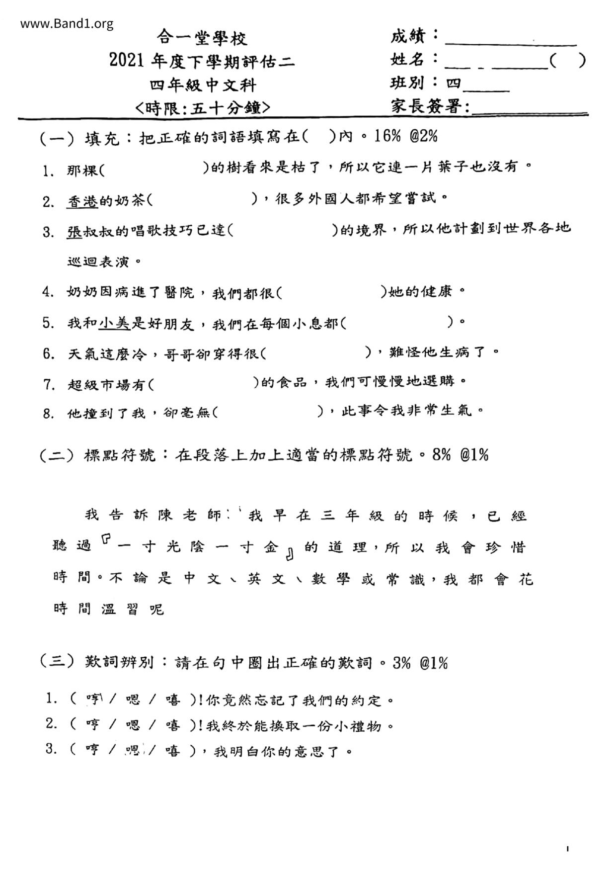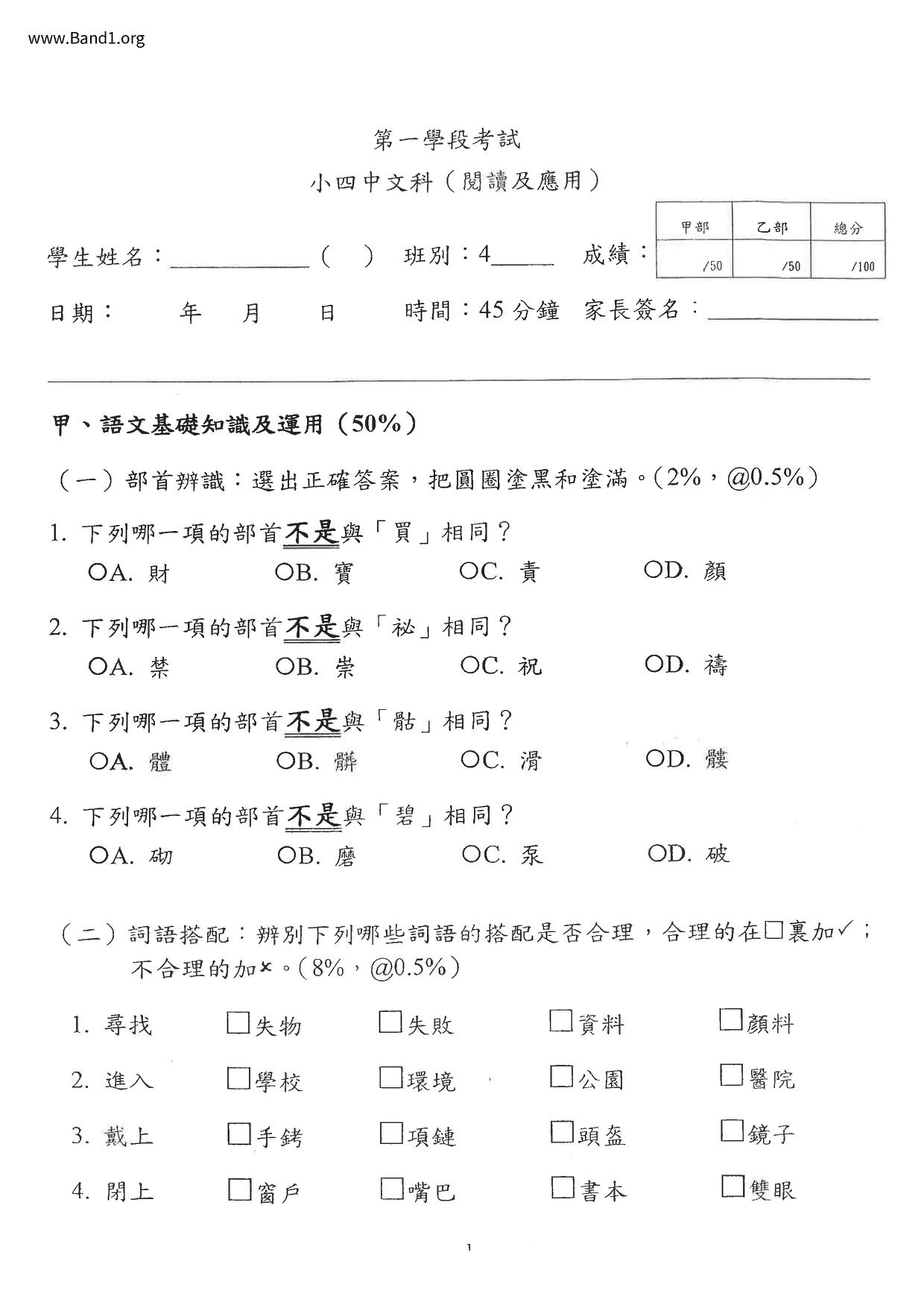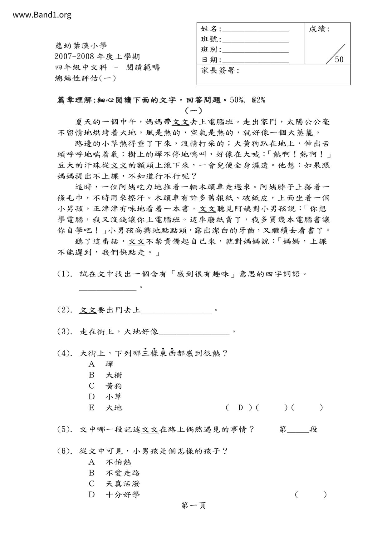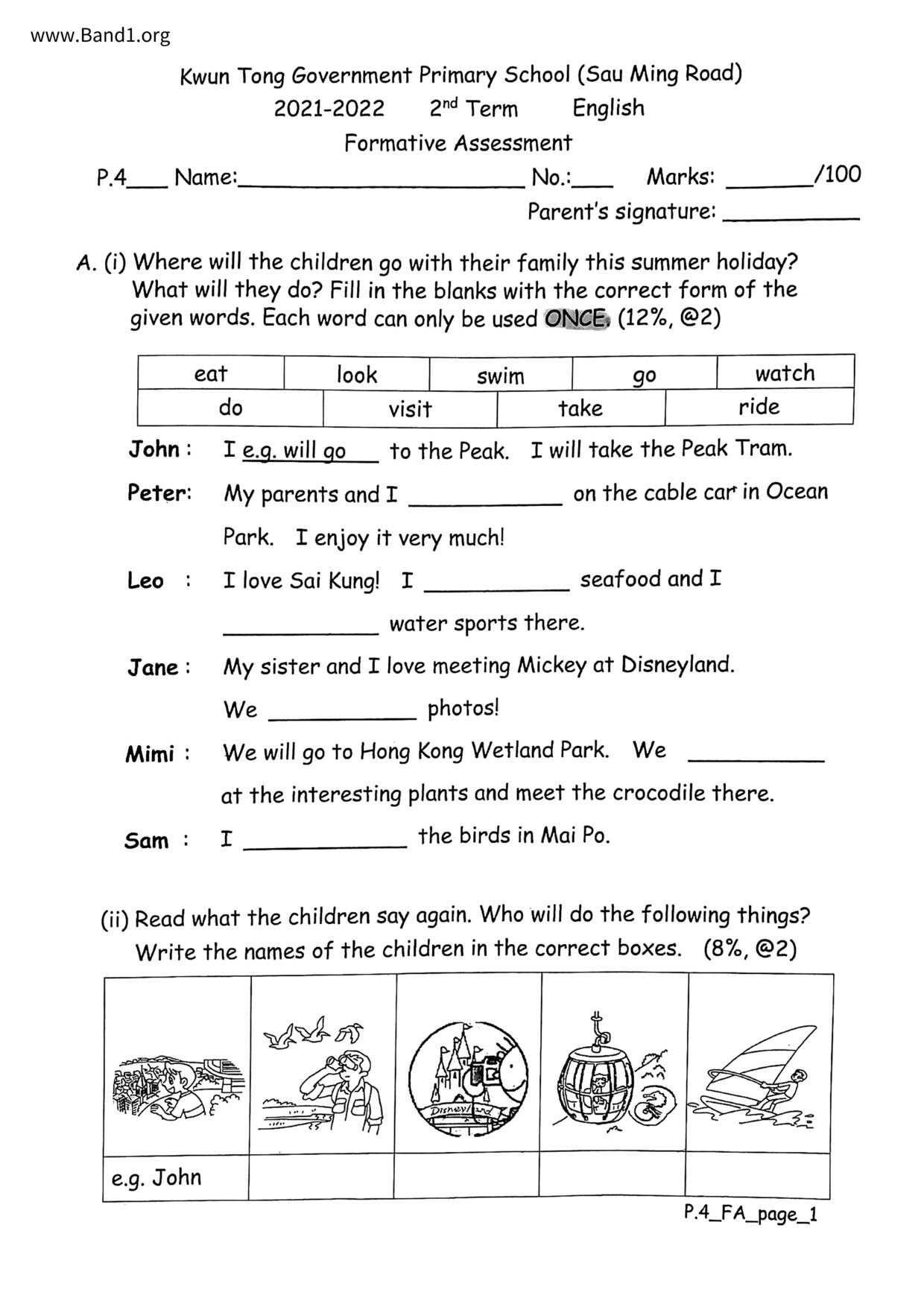 小四 英文 香港九龍塘基督教中華宣道會台山陳元喜小學