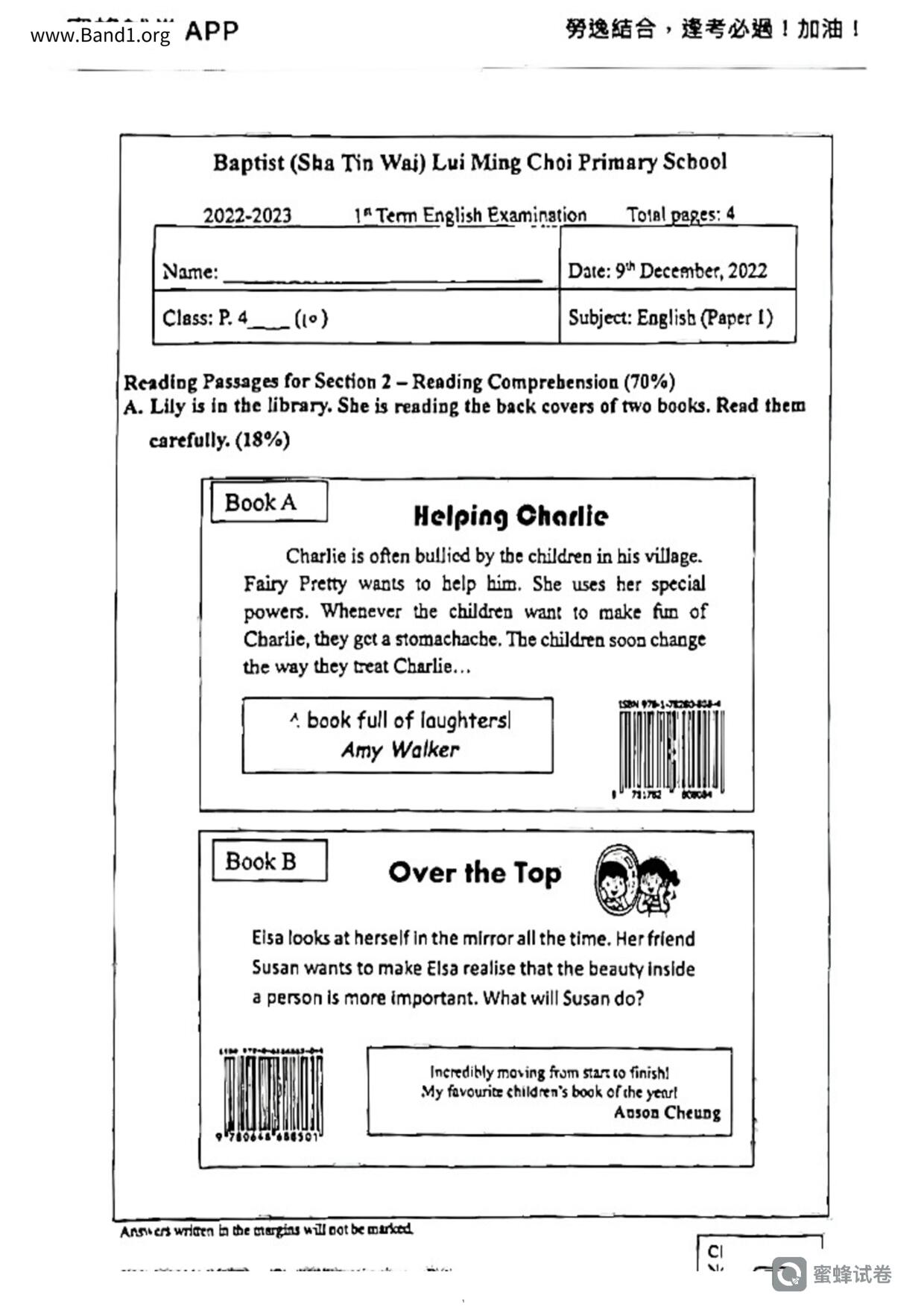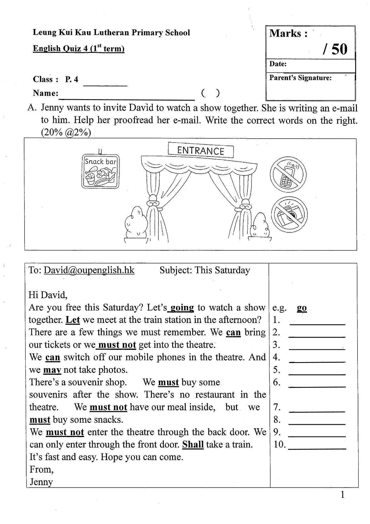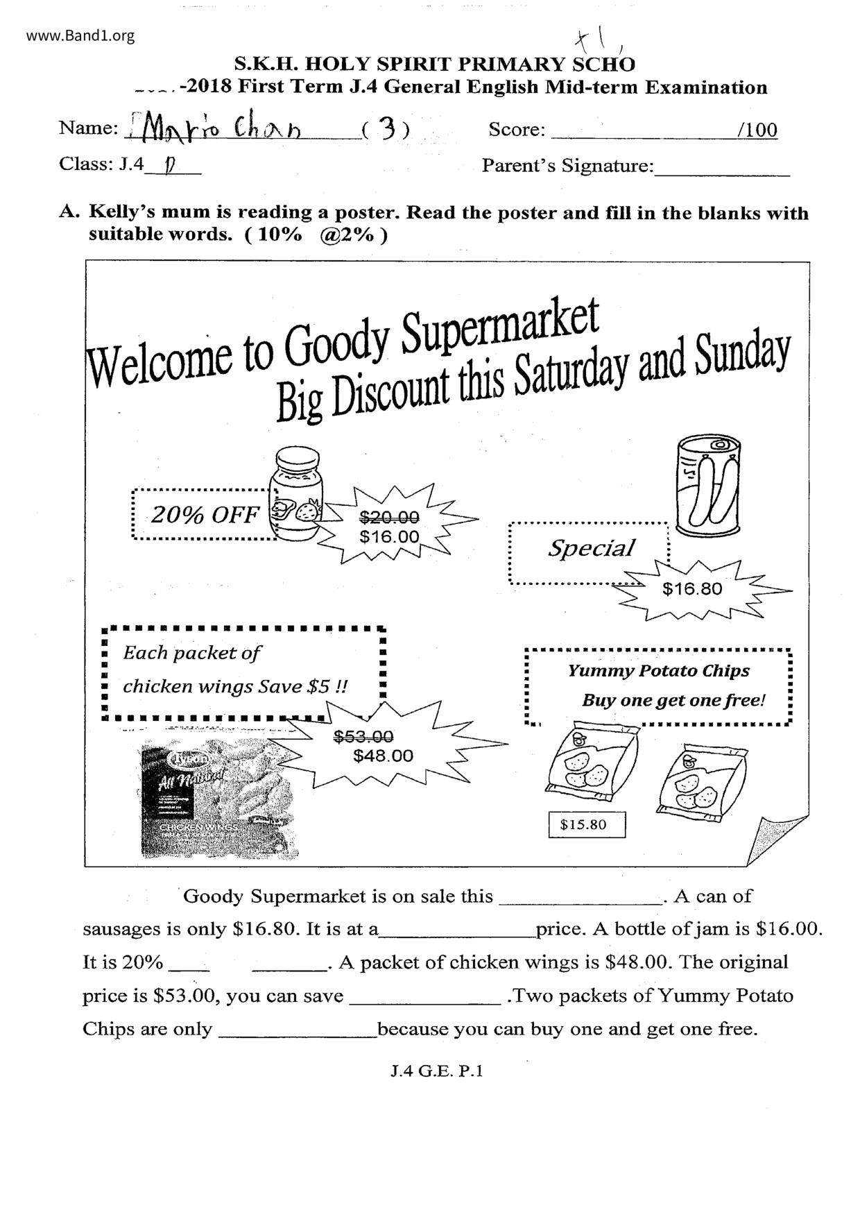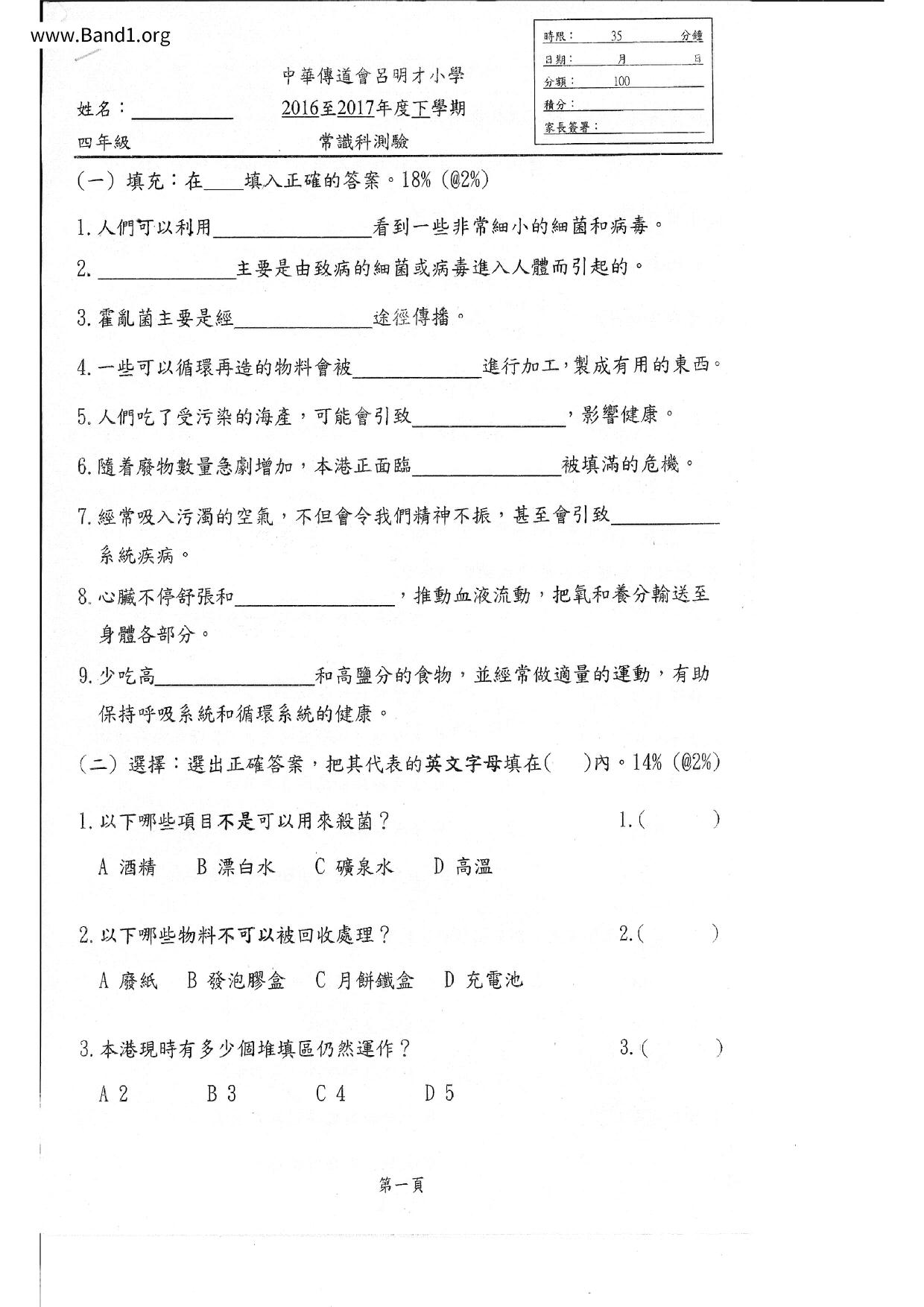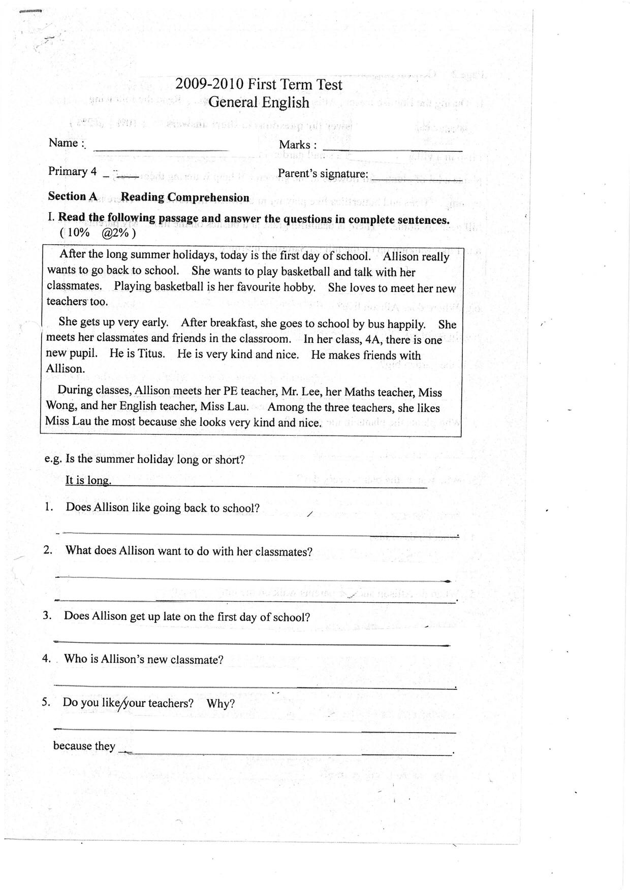 小四 英文 香港九龍塘基督教中華宣道會台山陳元喜小學