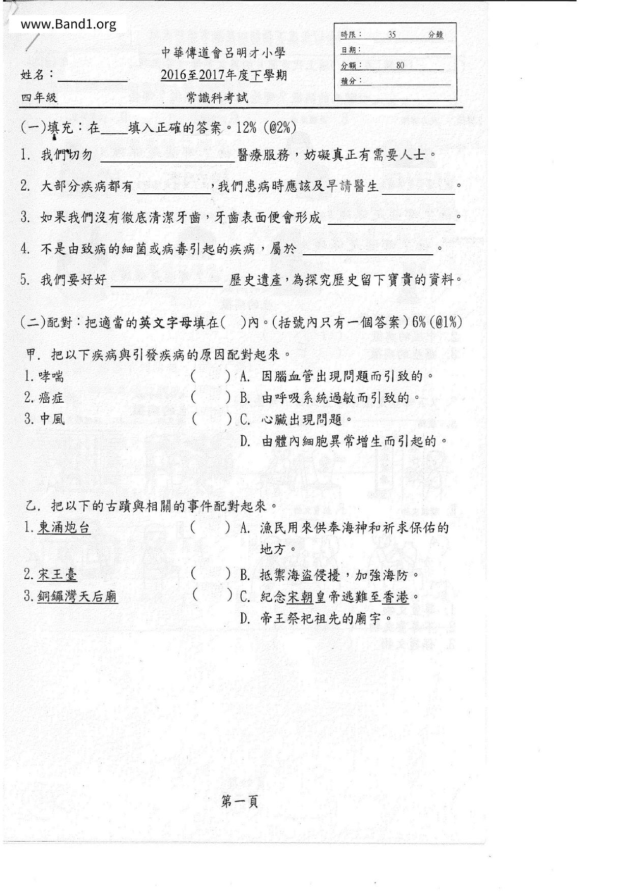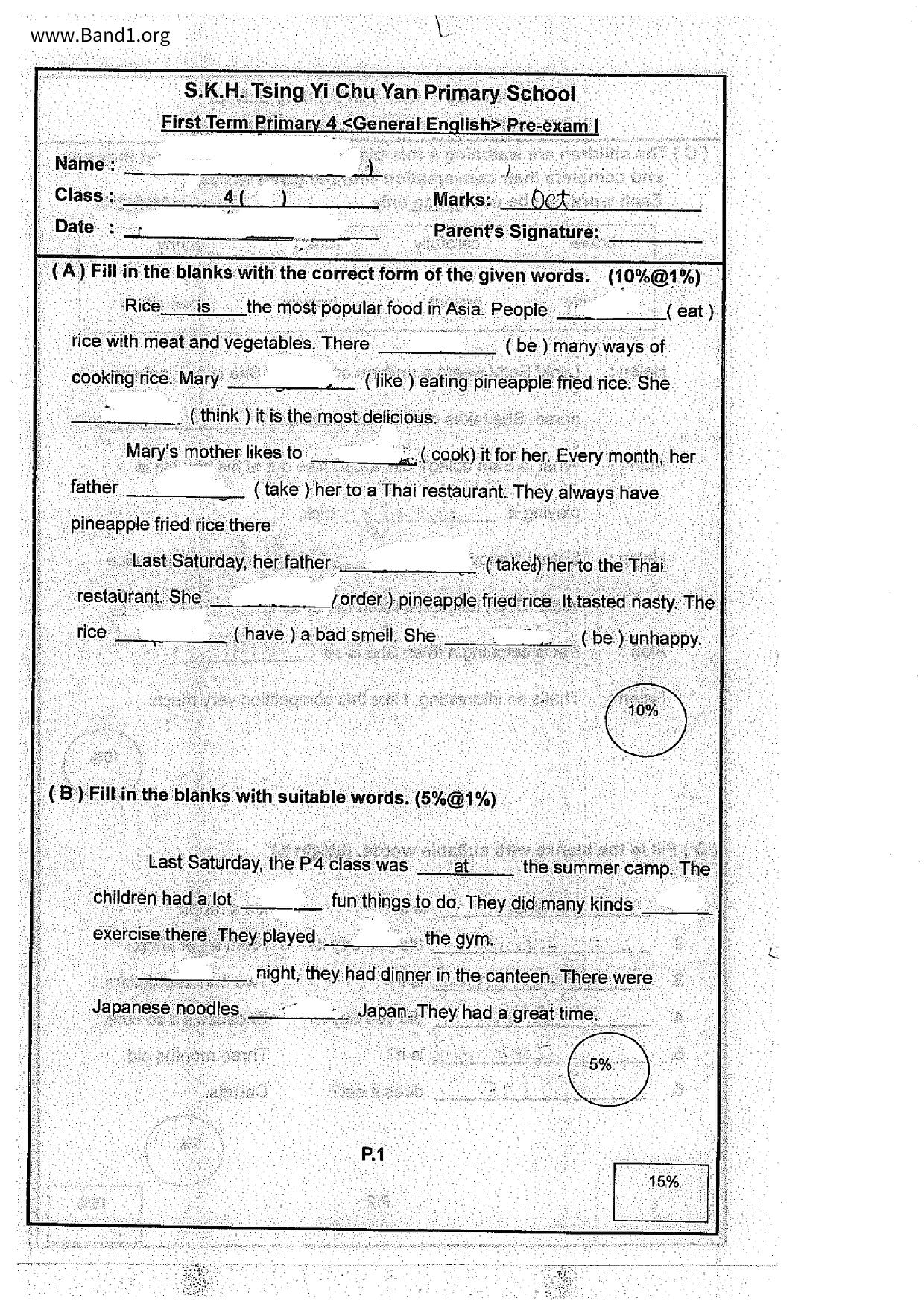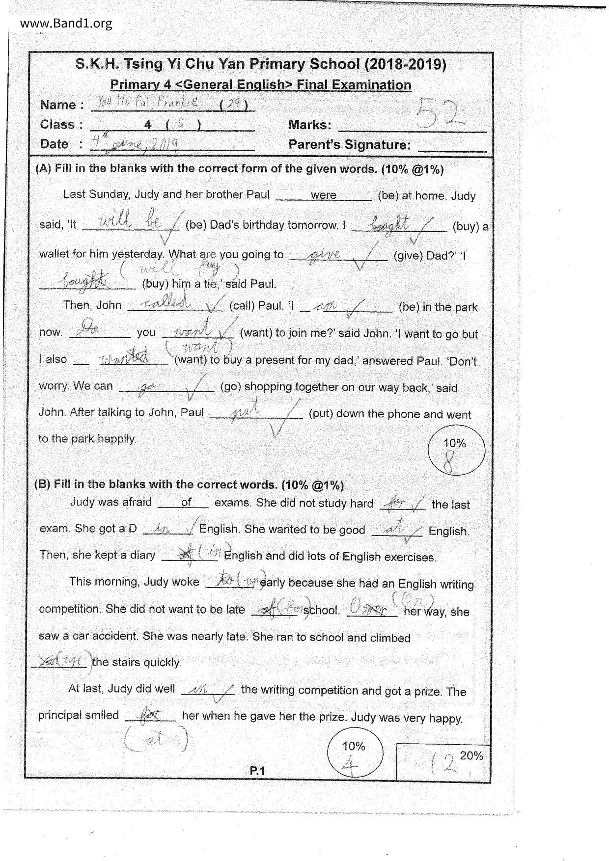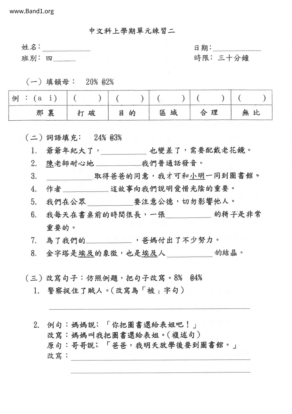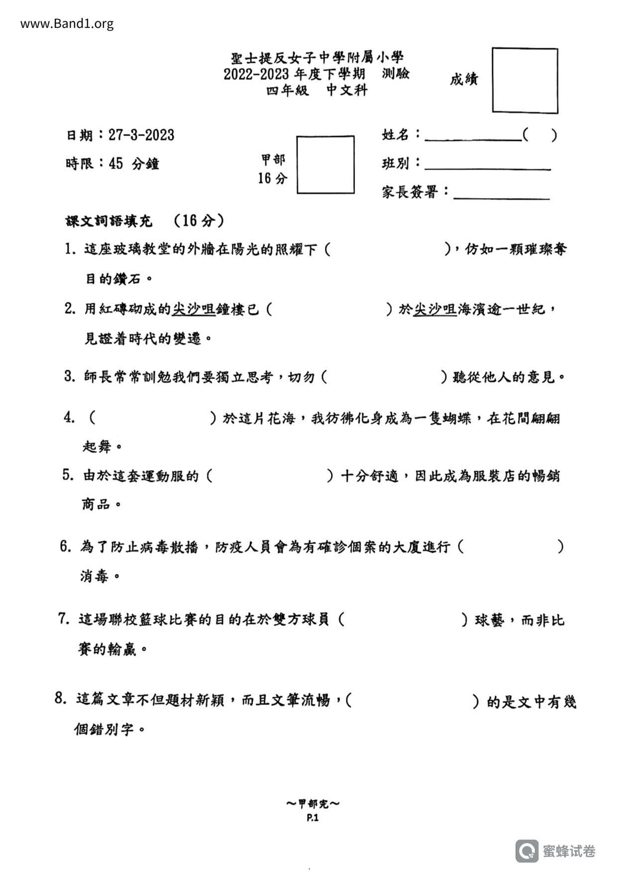小四 英文 香港九龍塘基督教中華宣道會台山陳元喜小學