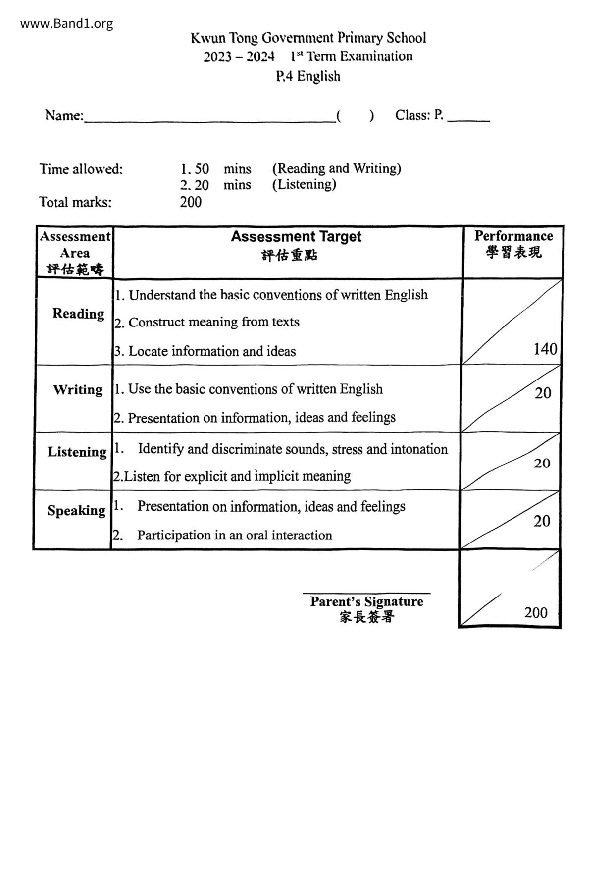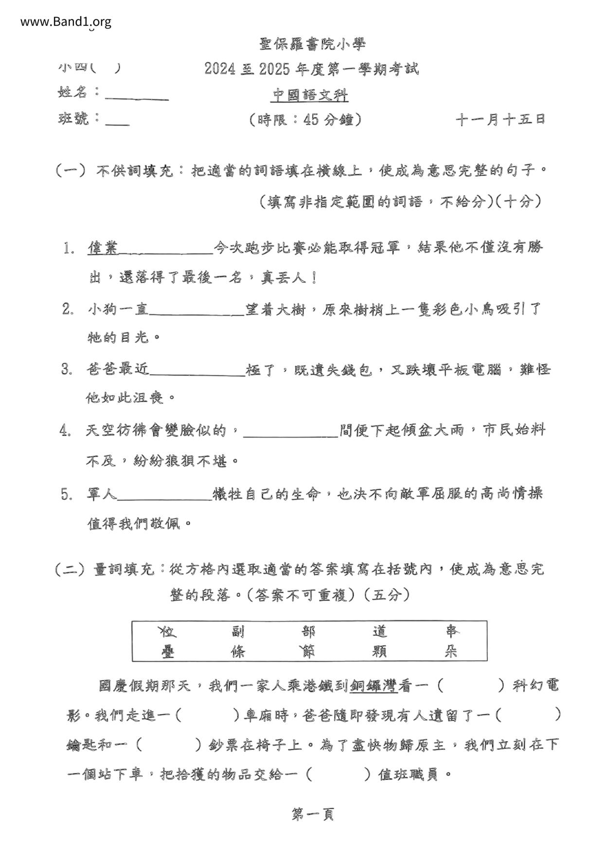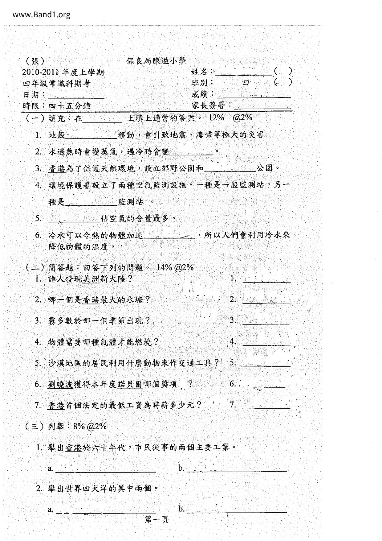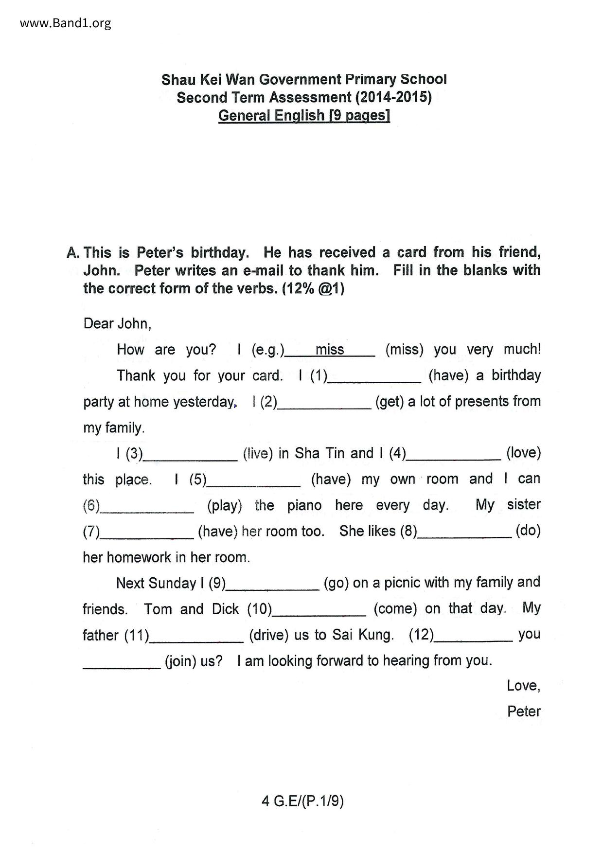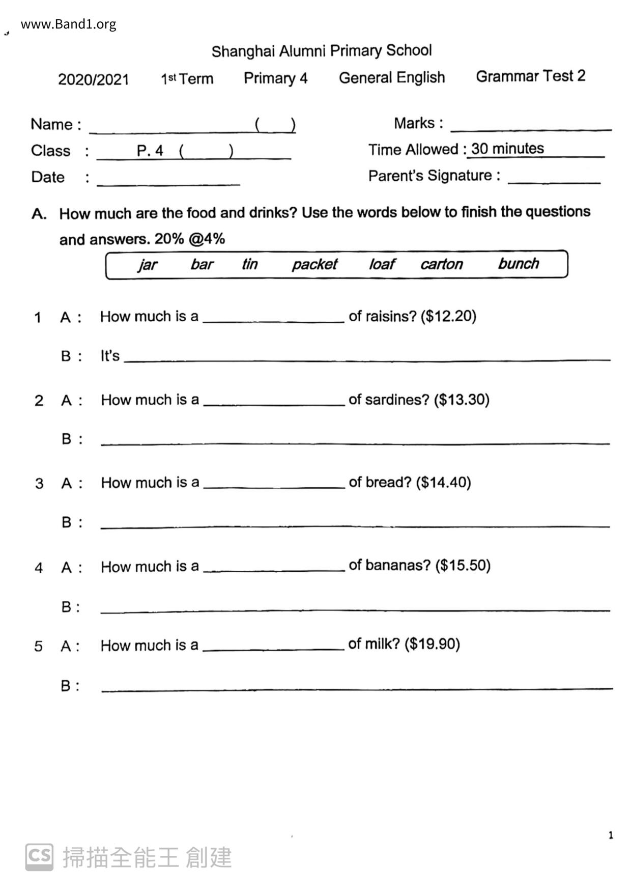 小四 英文 香港九龍塘基督教中華宣道會台山陳元喜小學