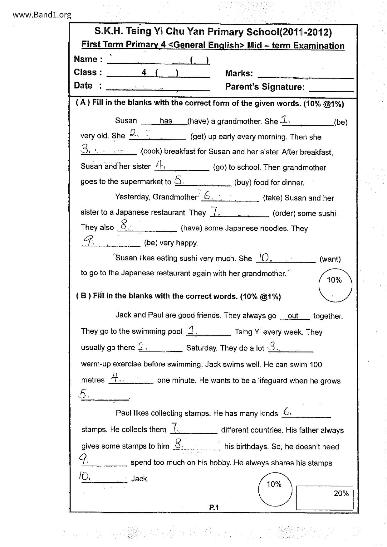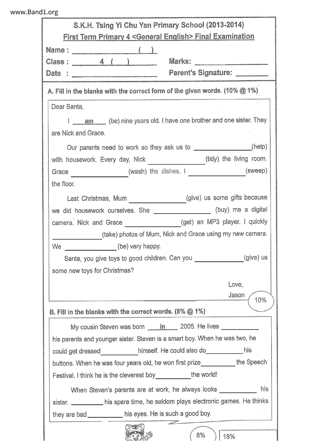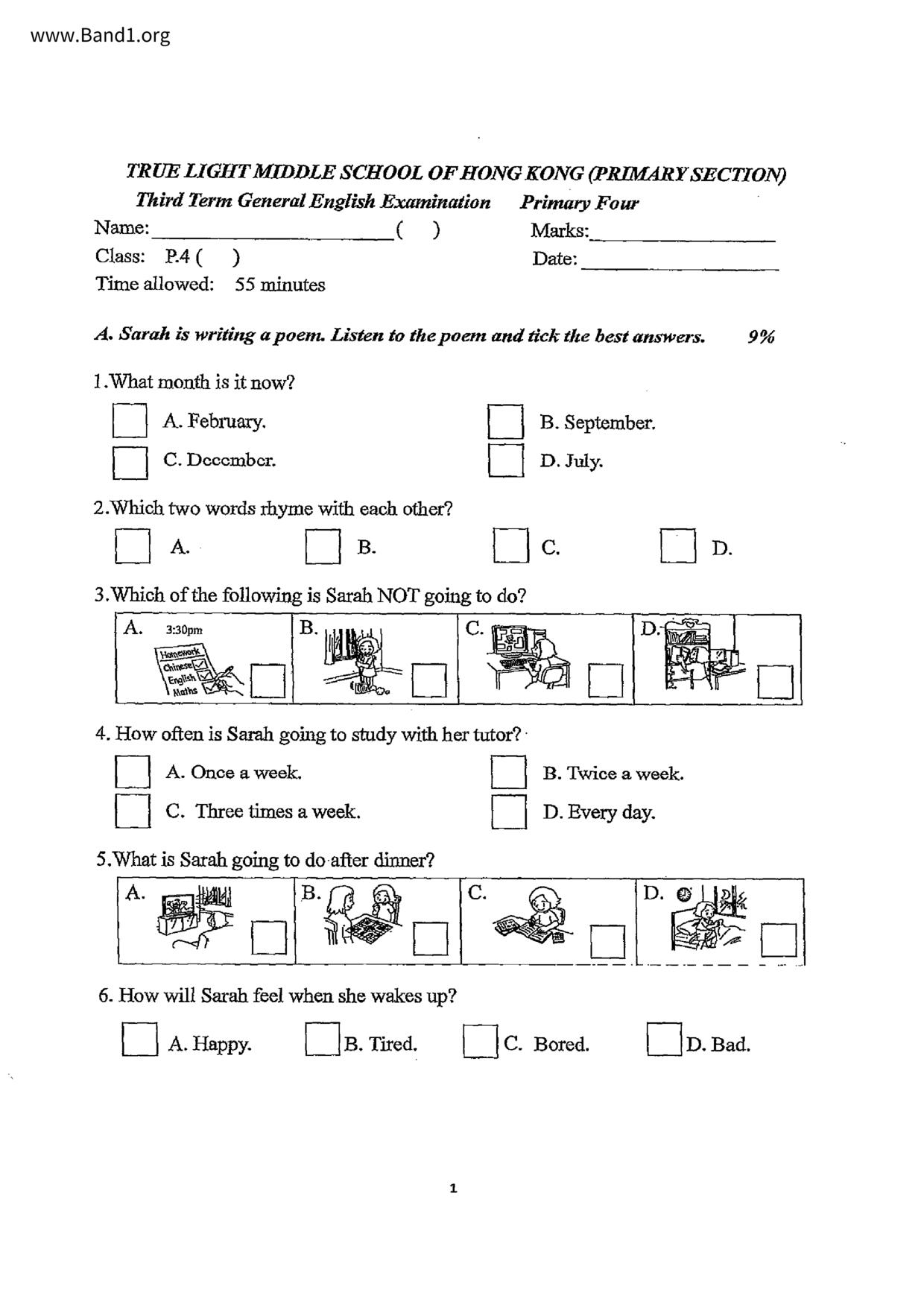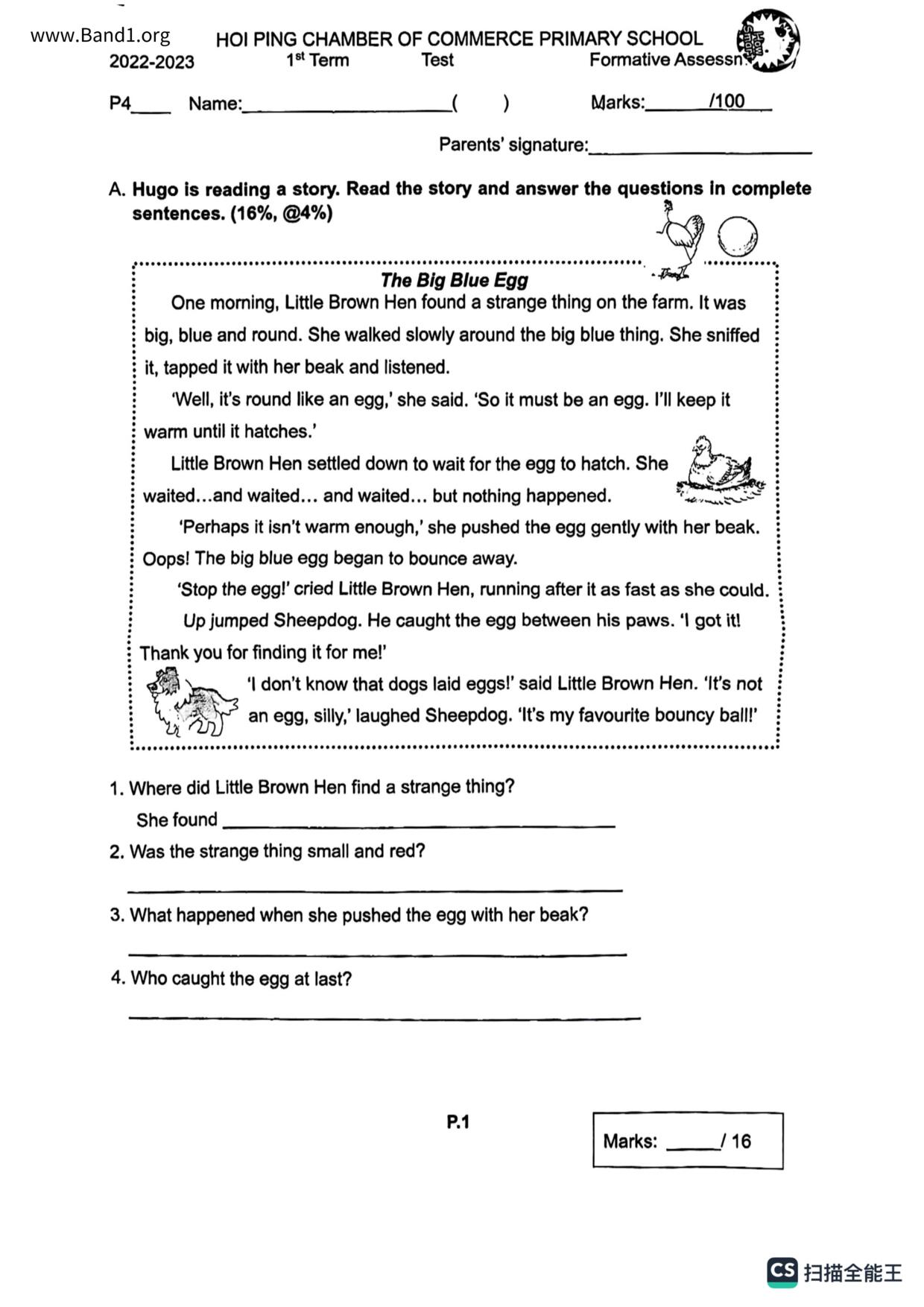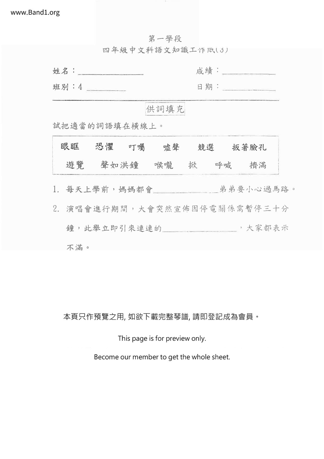 小四 英文 香港九龍塘基督教中華宣道會台山陳元喜小學