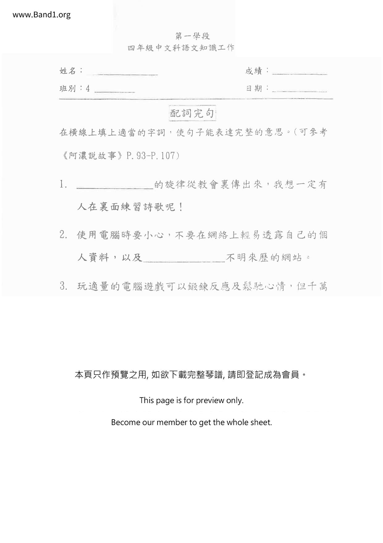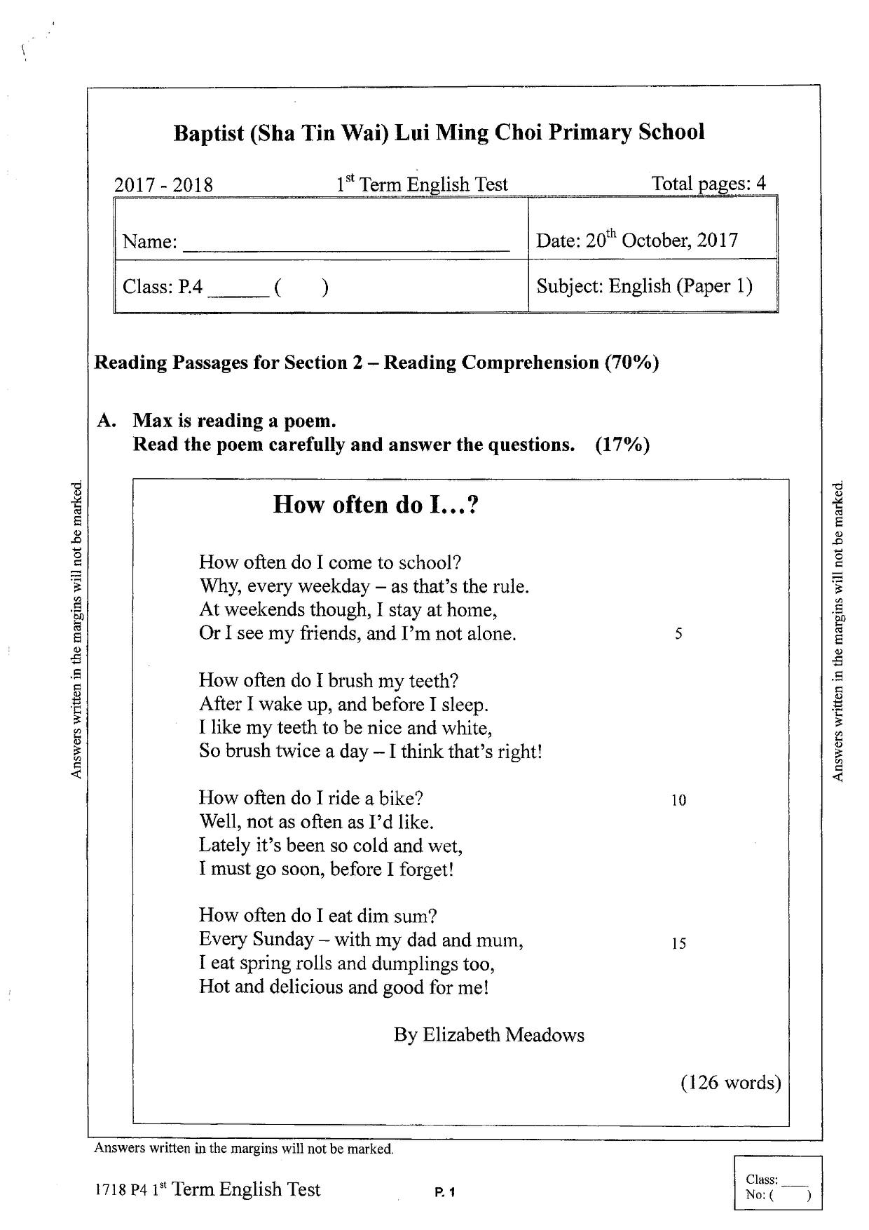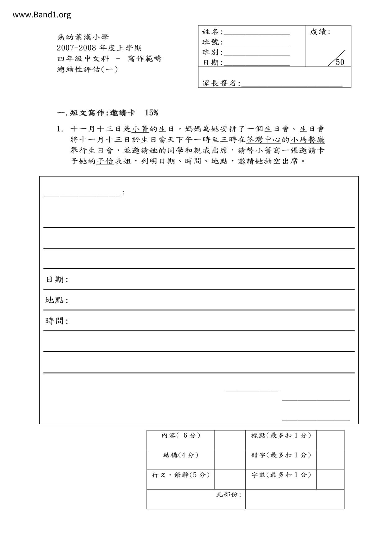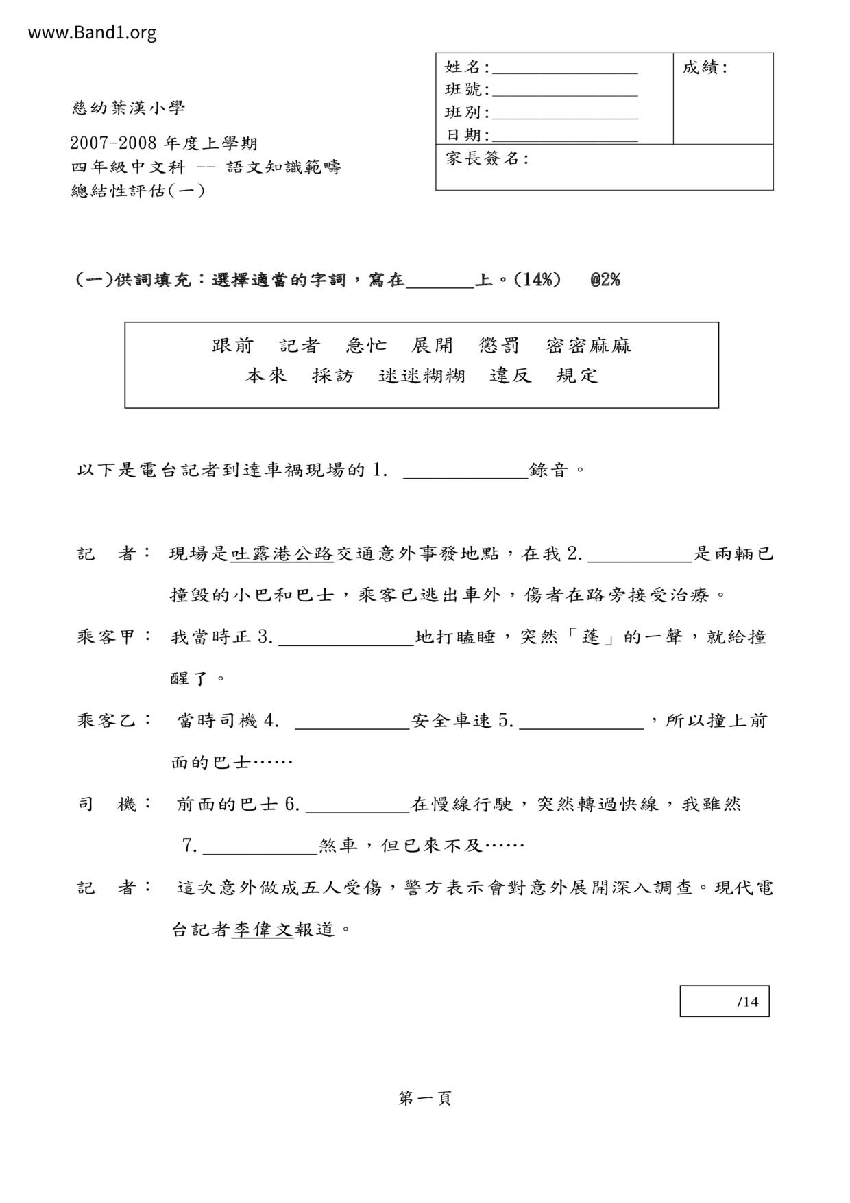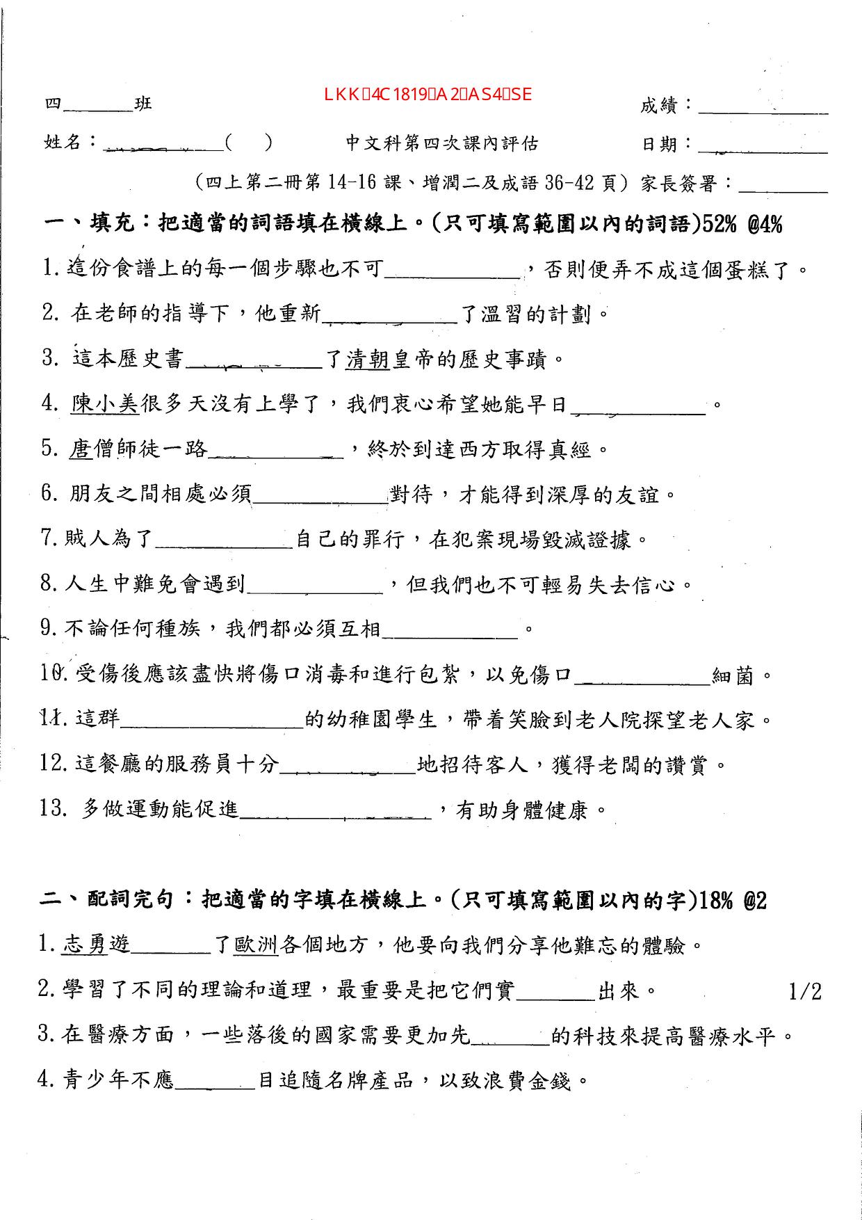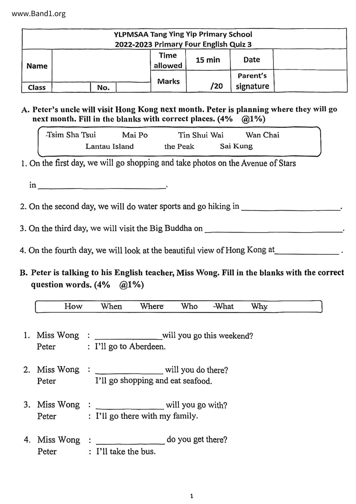 小四 英文 香港九龍塘基督教中華宣道會台山陳元喜小學