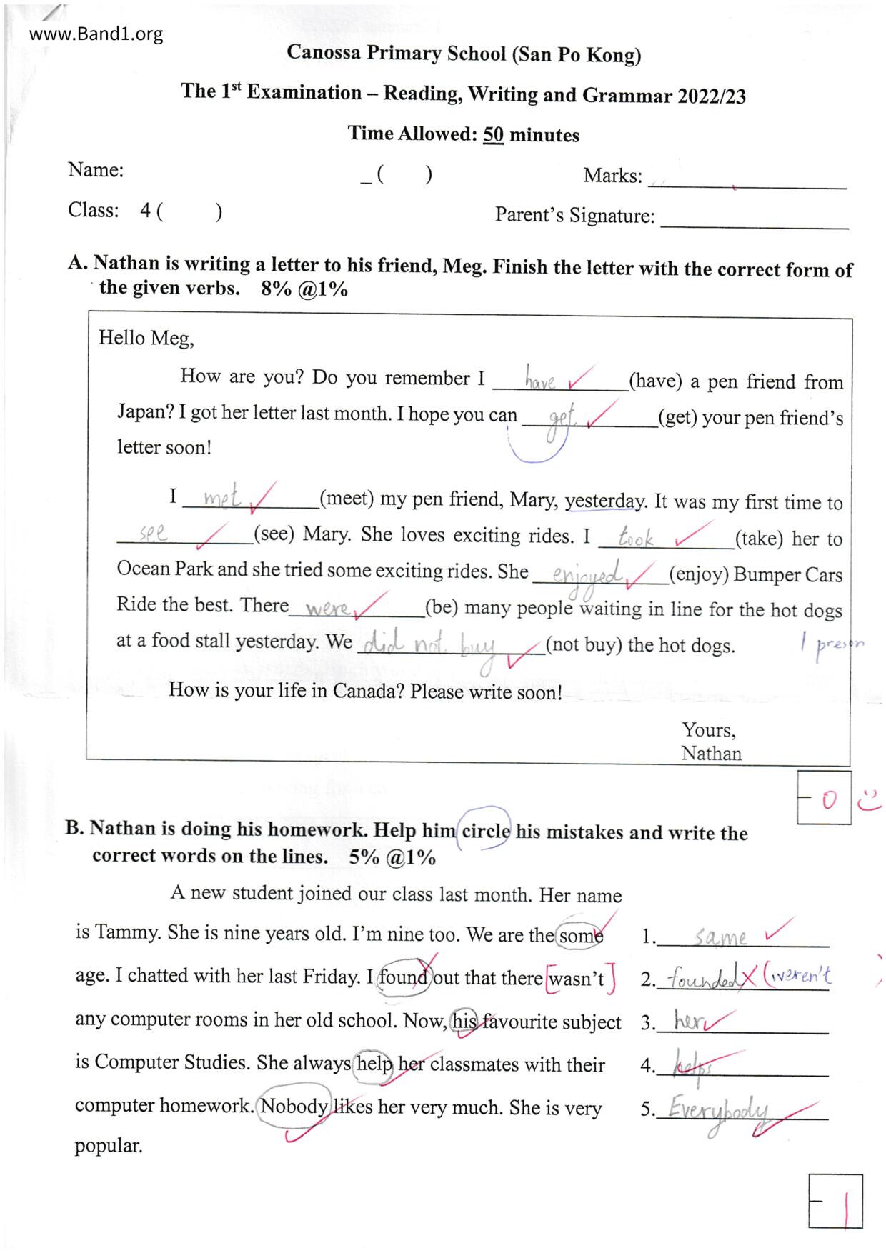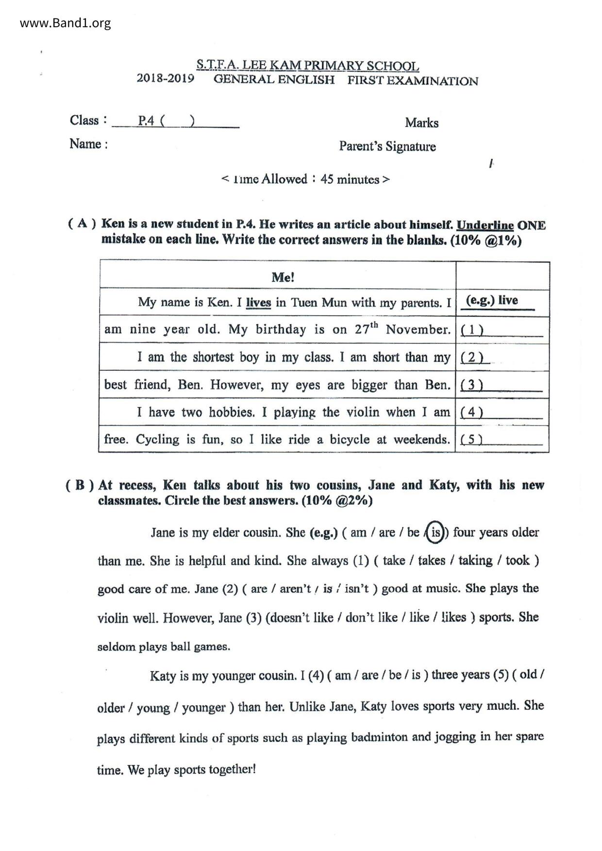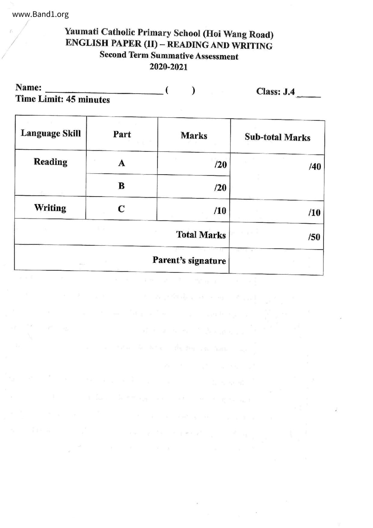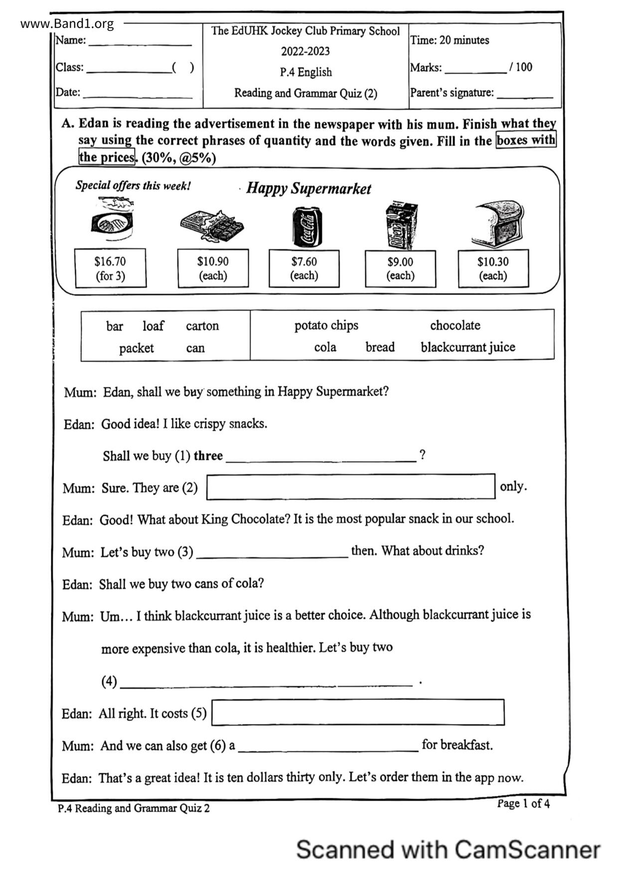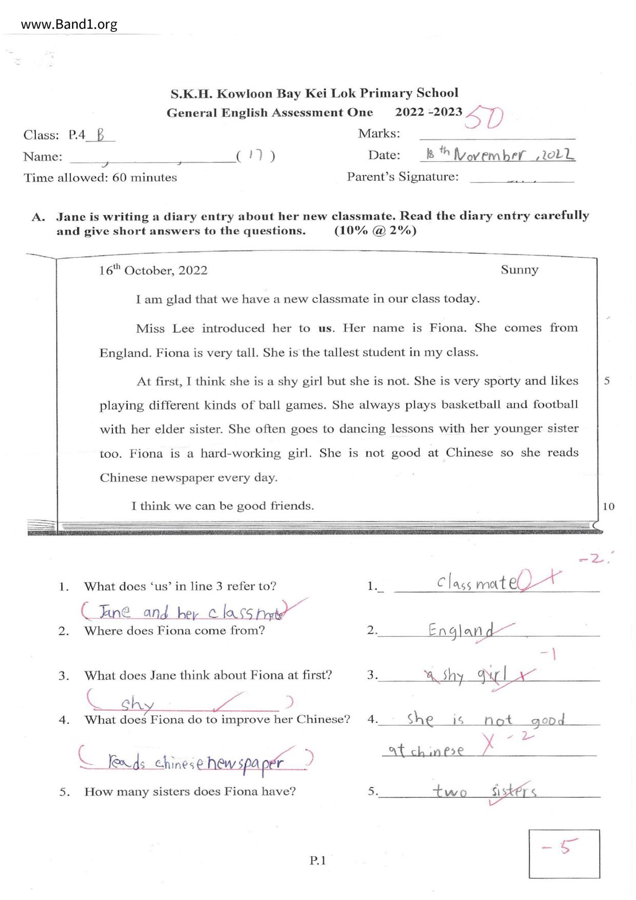 小四 英文 香港九龍塘基督教中華宣道會台山陳元喜小學