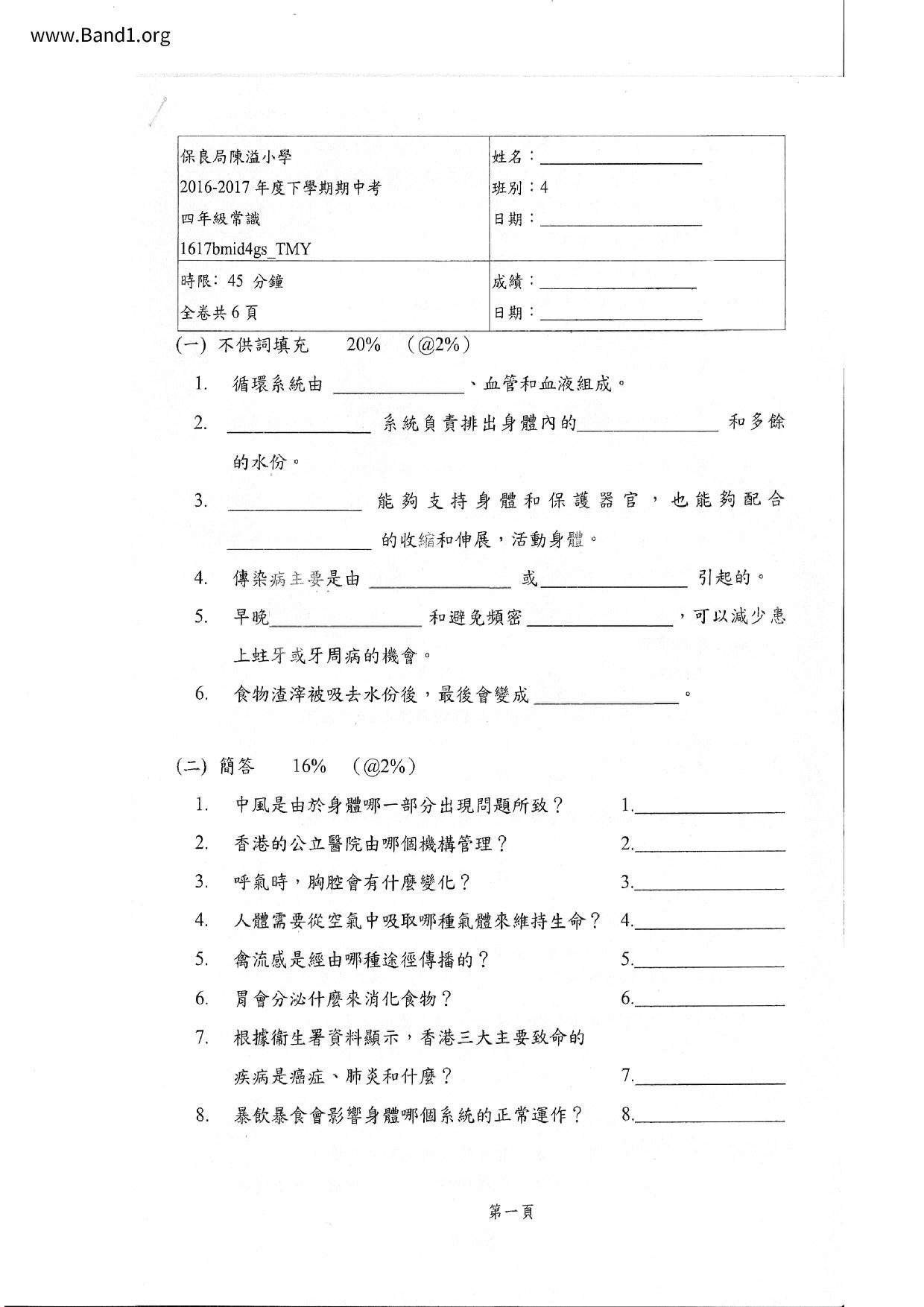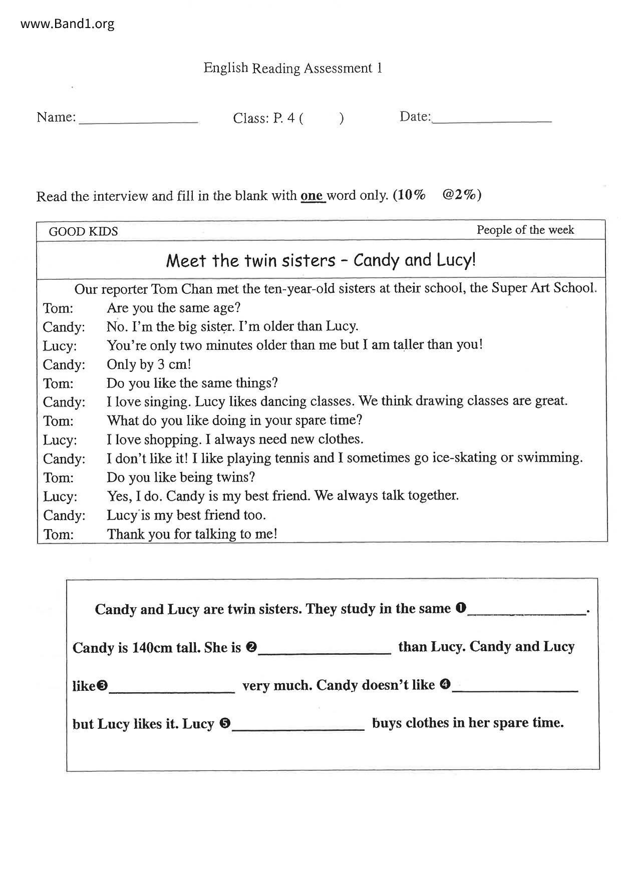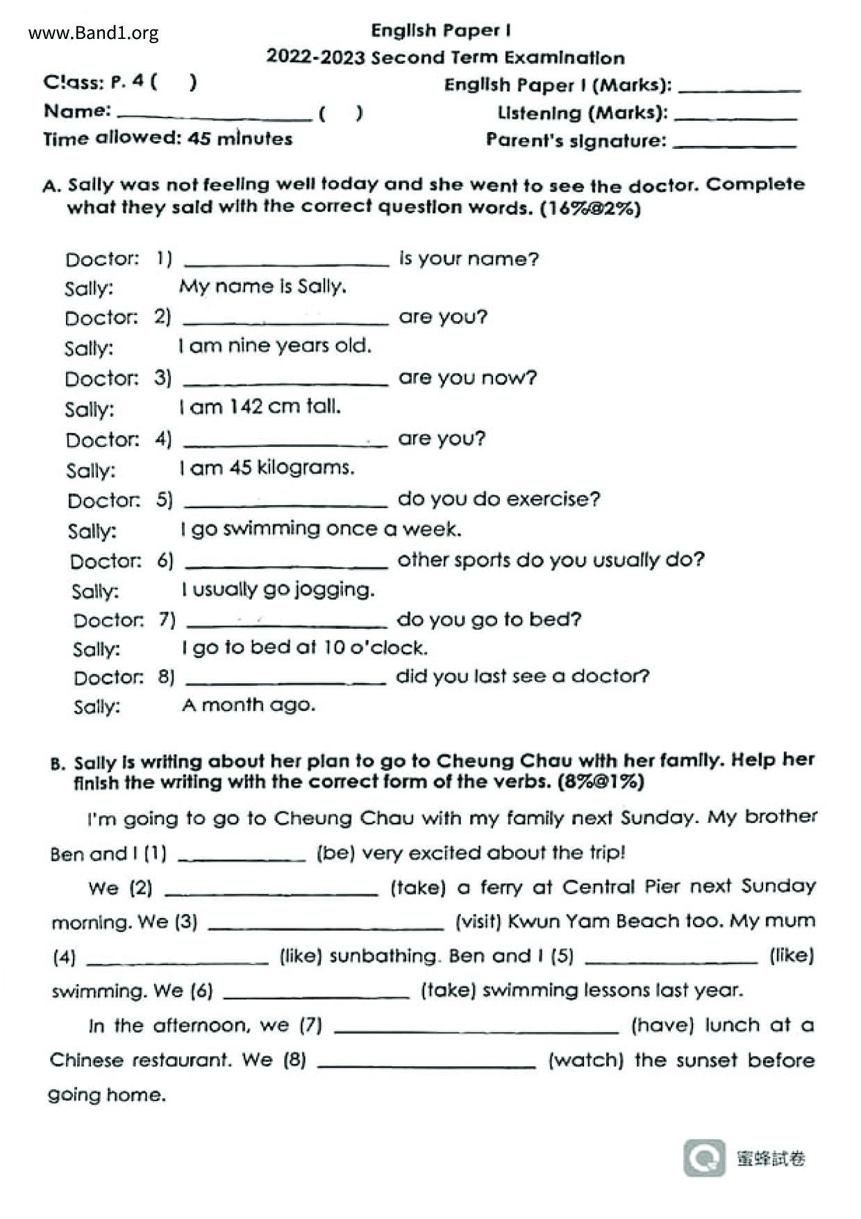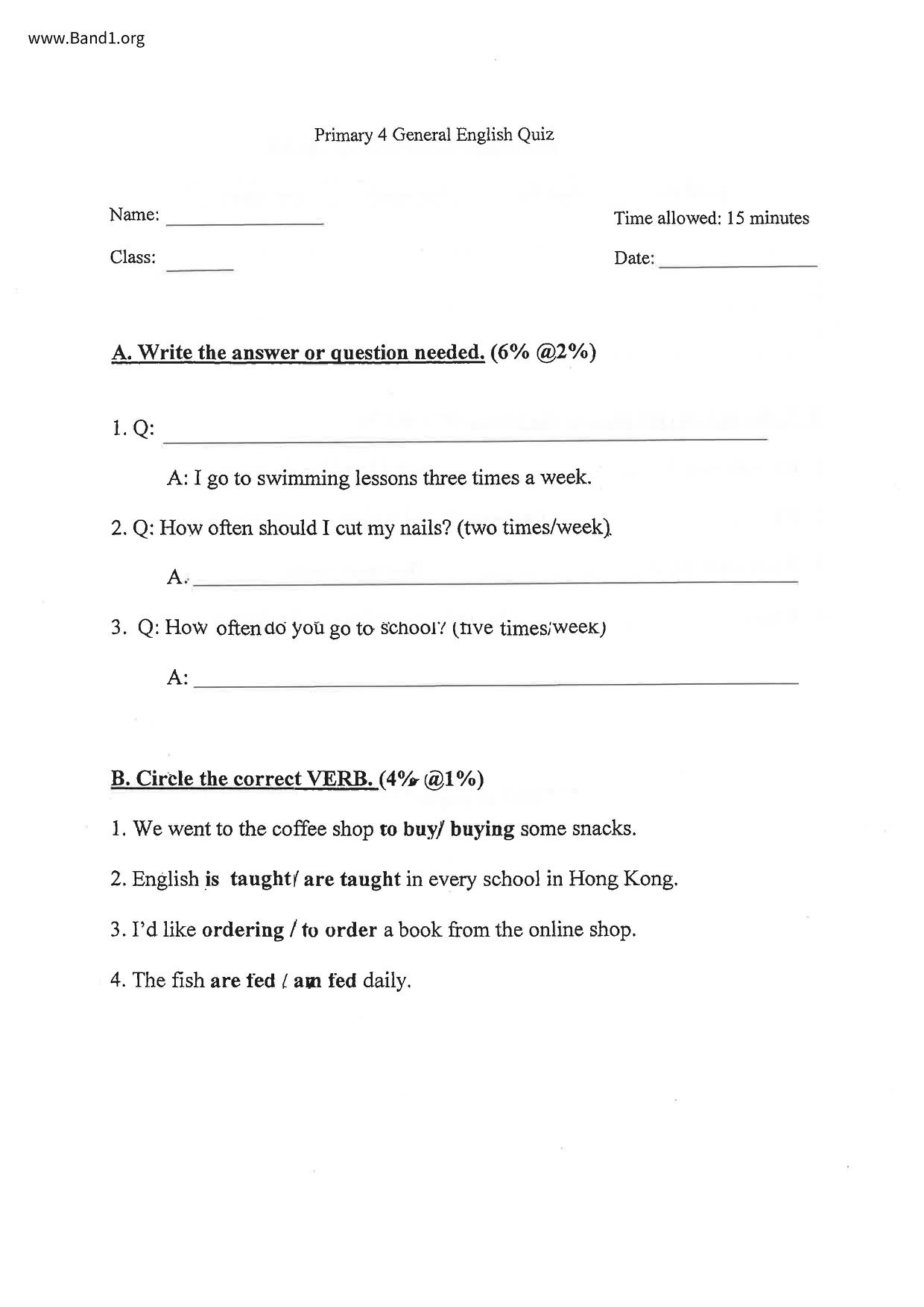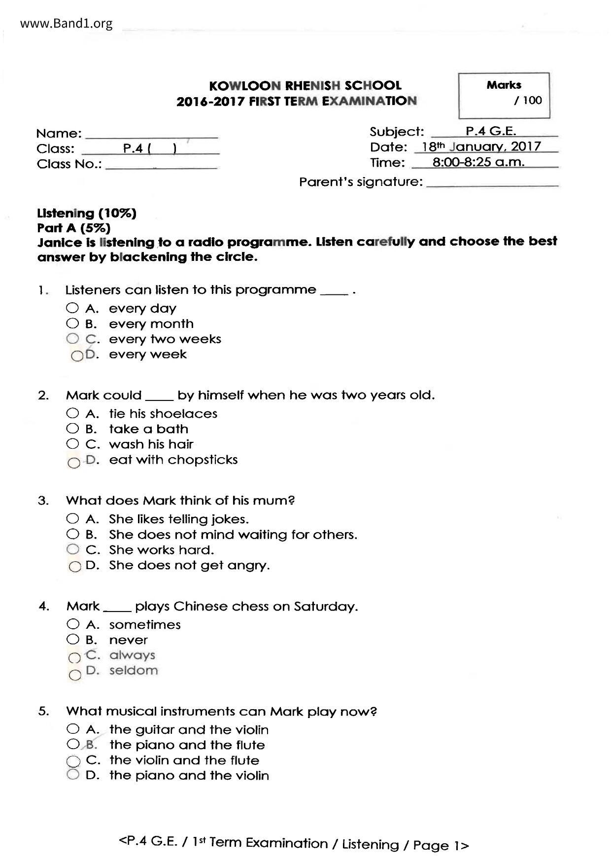 小四 英文 香港九龍塘基督教中華宣道會台山陳元喜小學