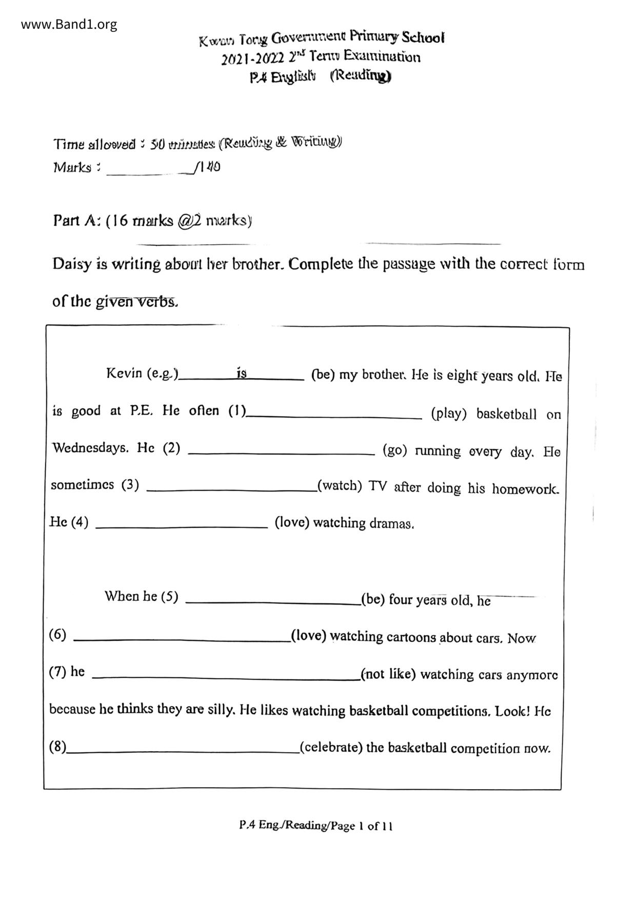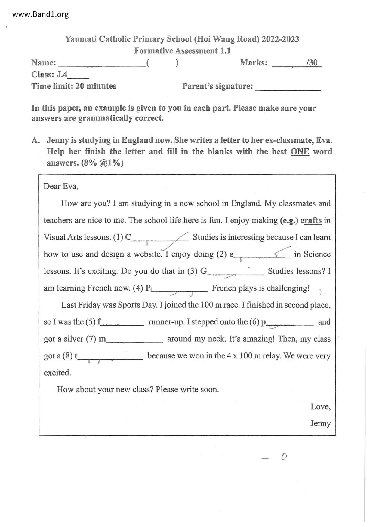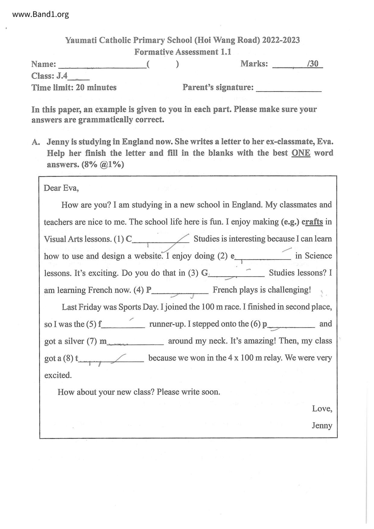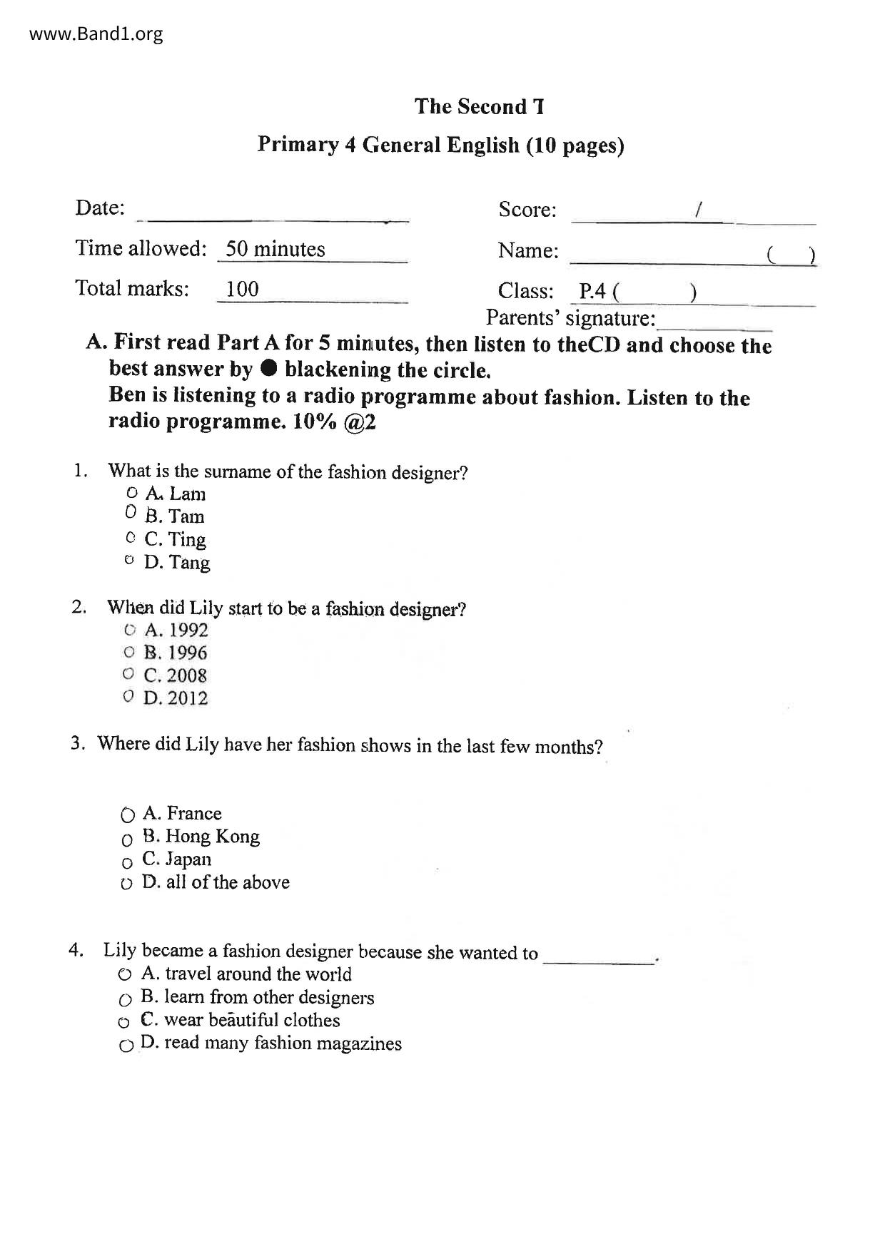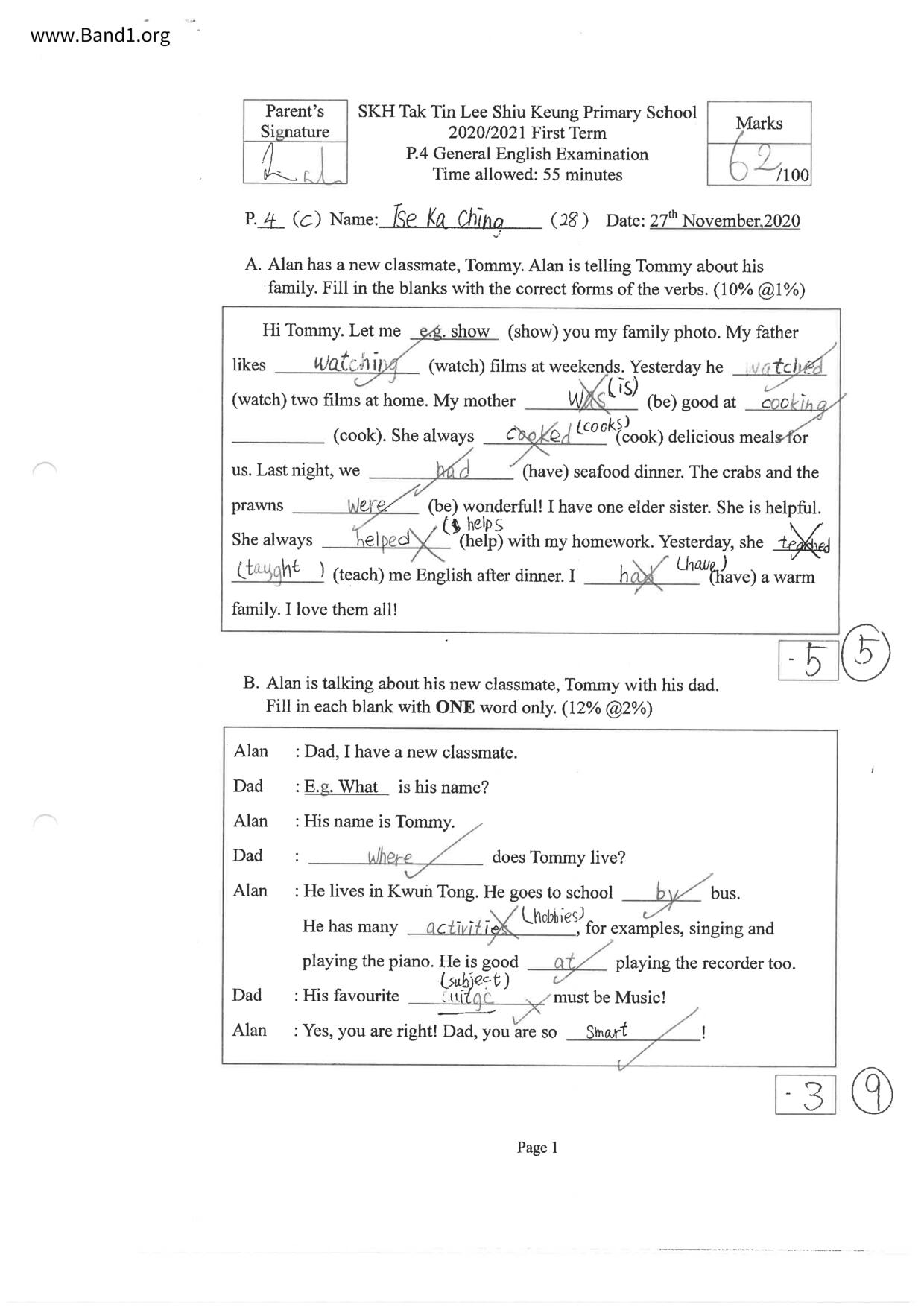 小四 英文 香港九龍塘基督教中華宣道會台山陳元喜小學