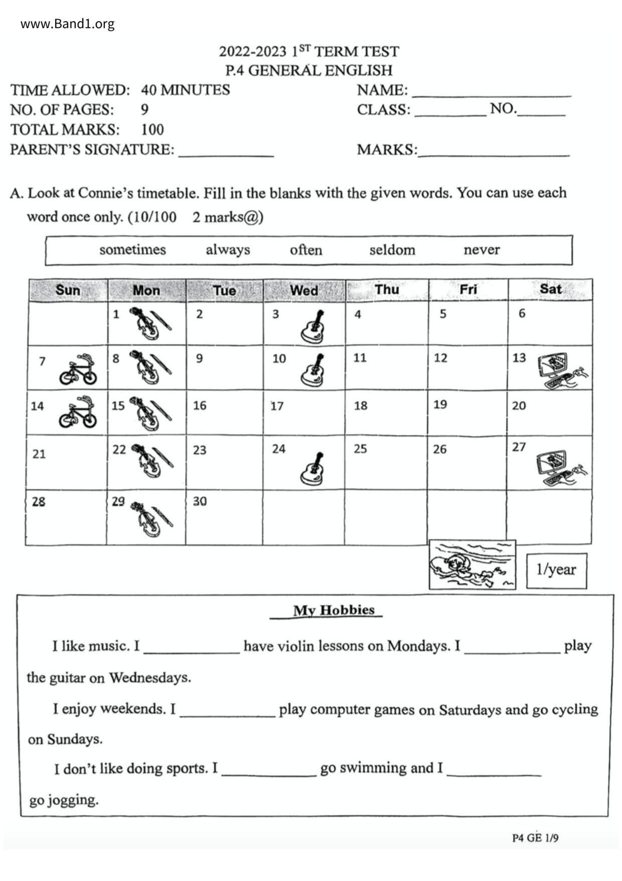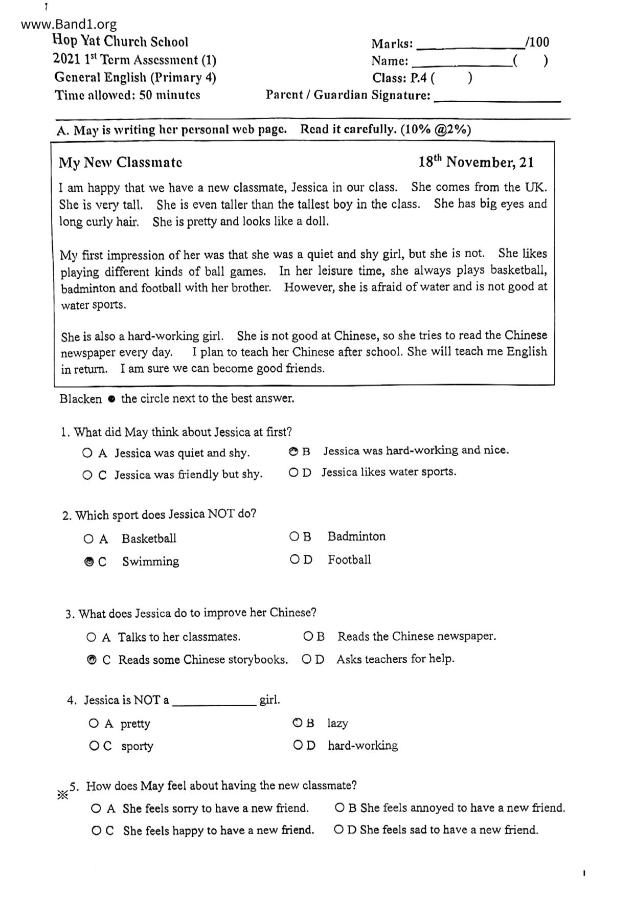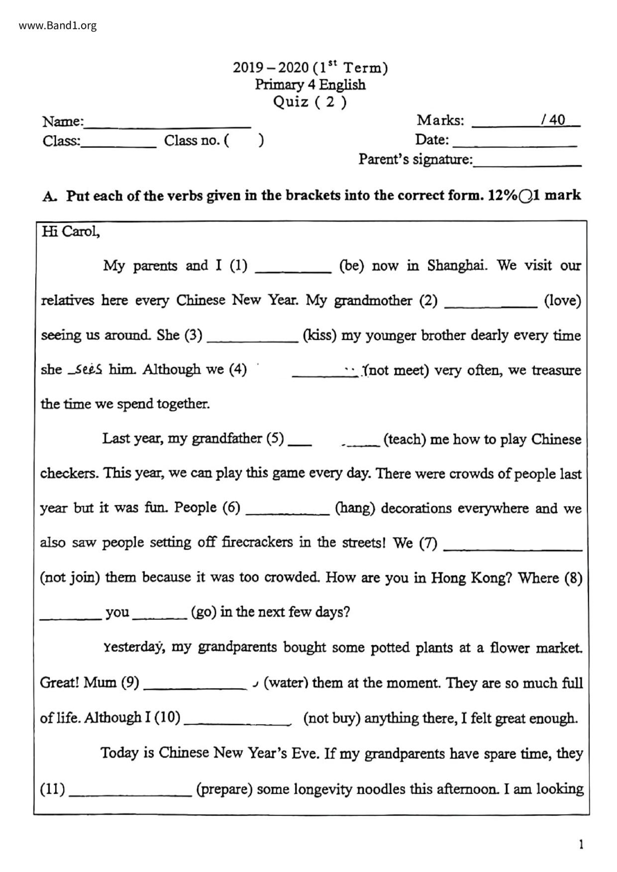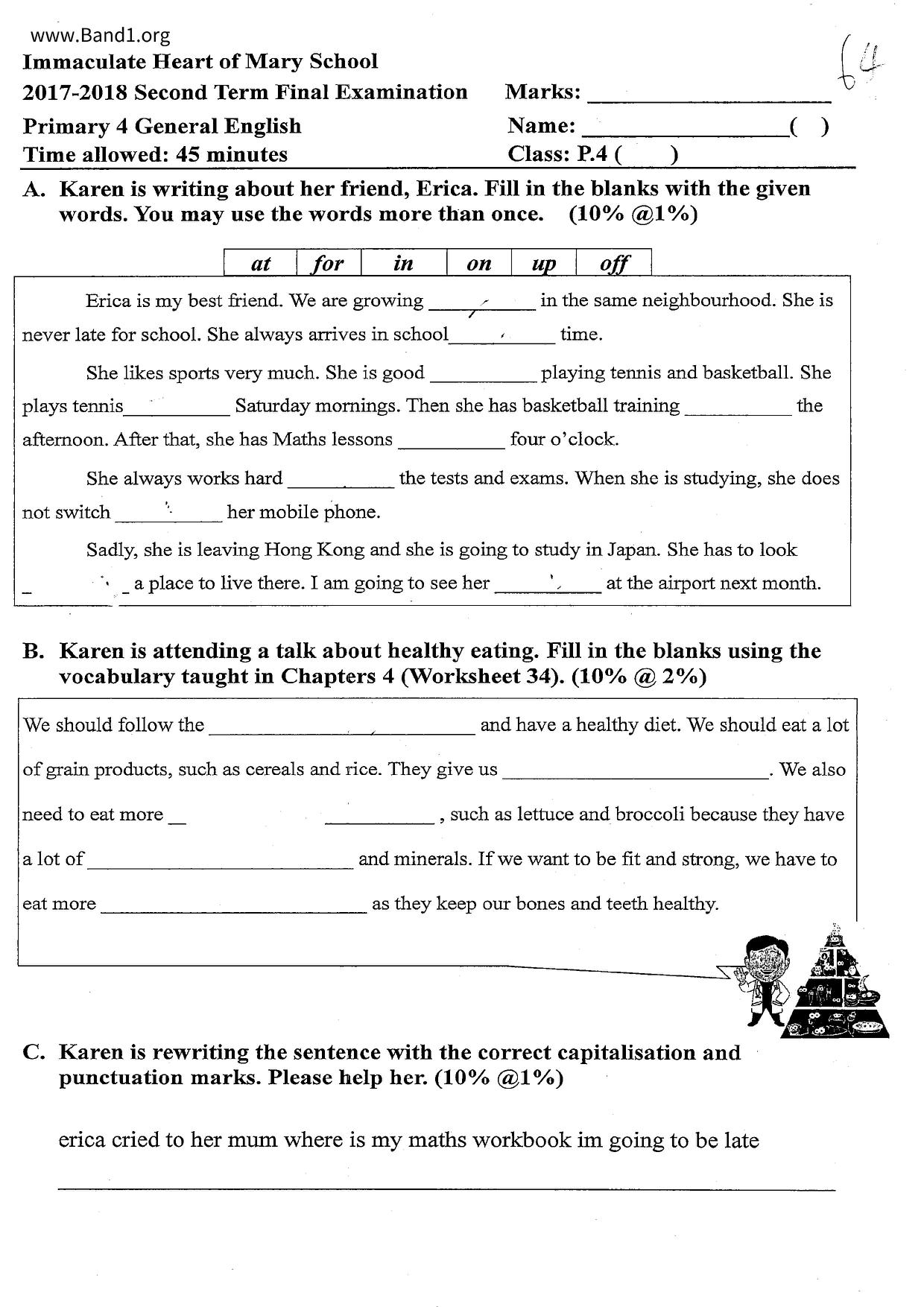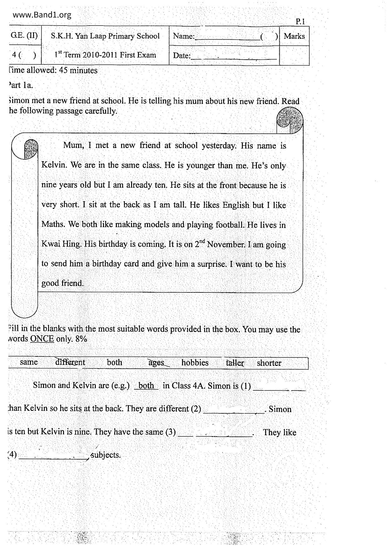 小四 英文 香港九龍塘基督教中華宣道會台山陳元喜小學
