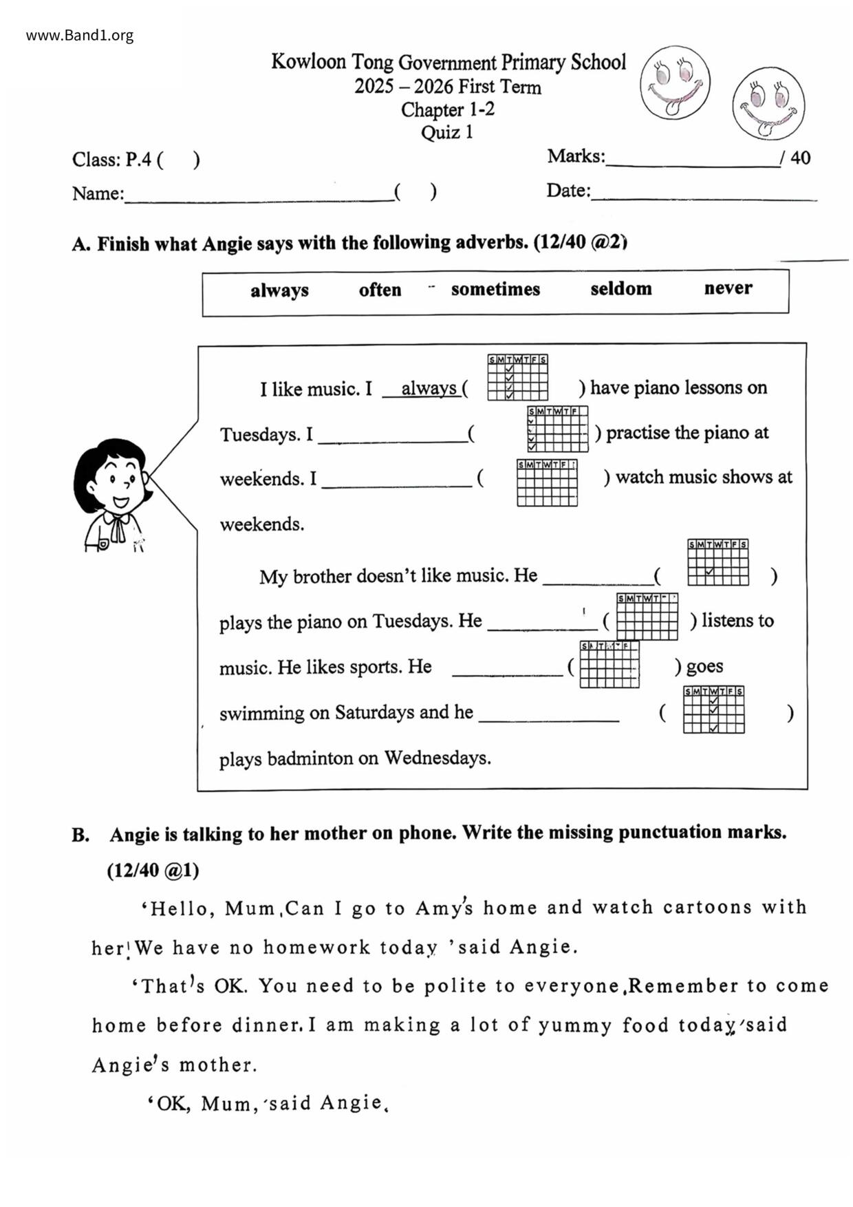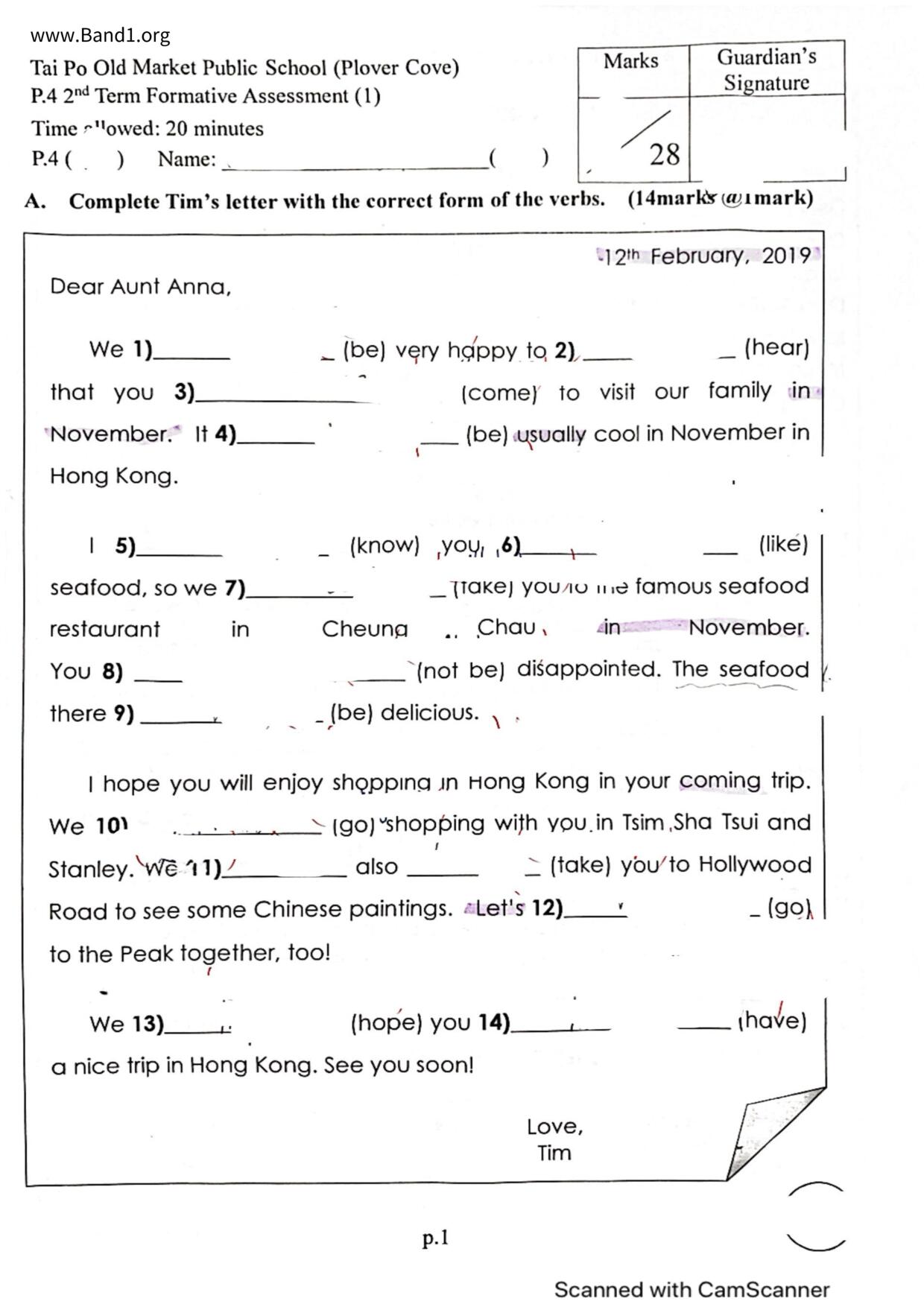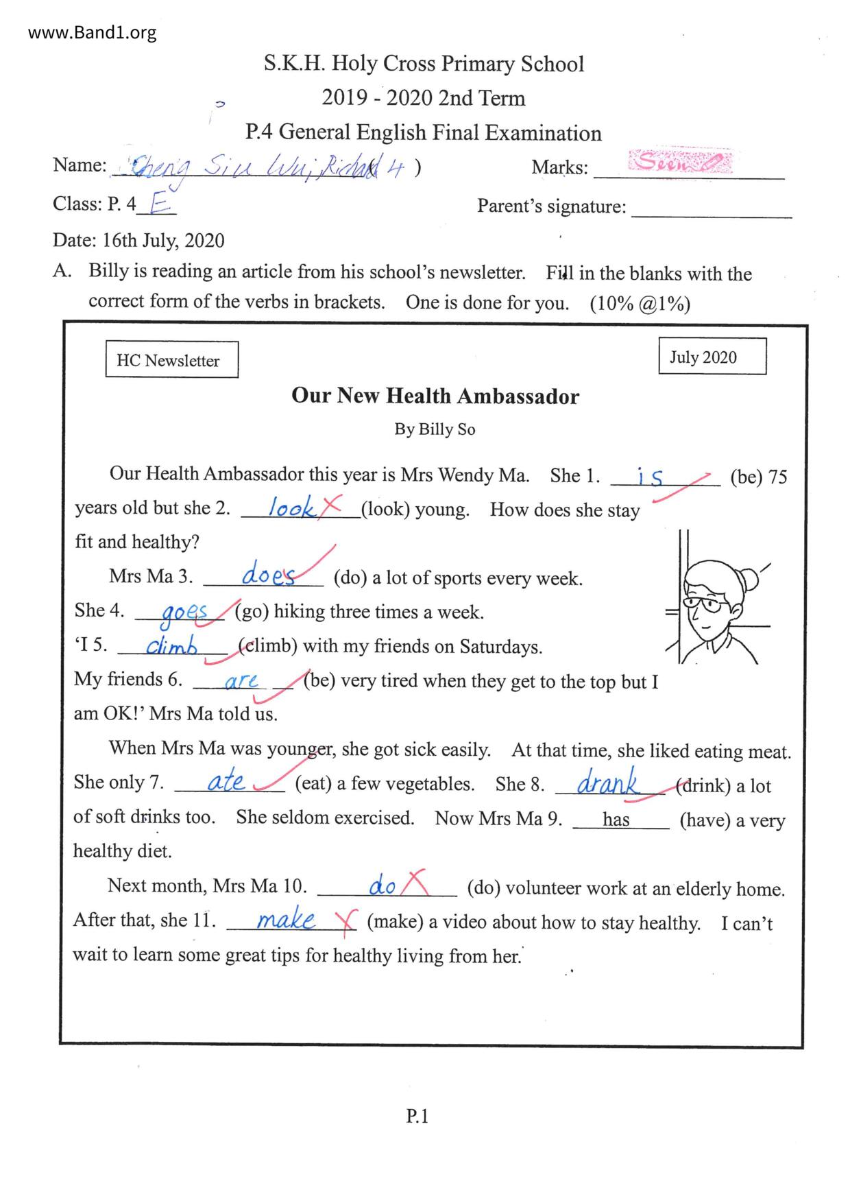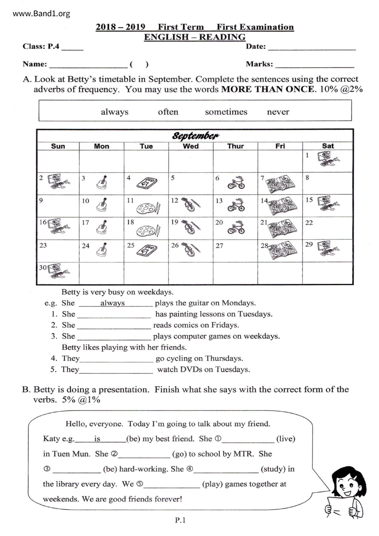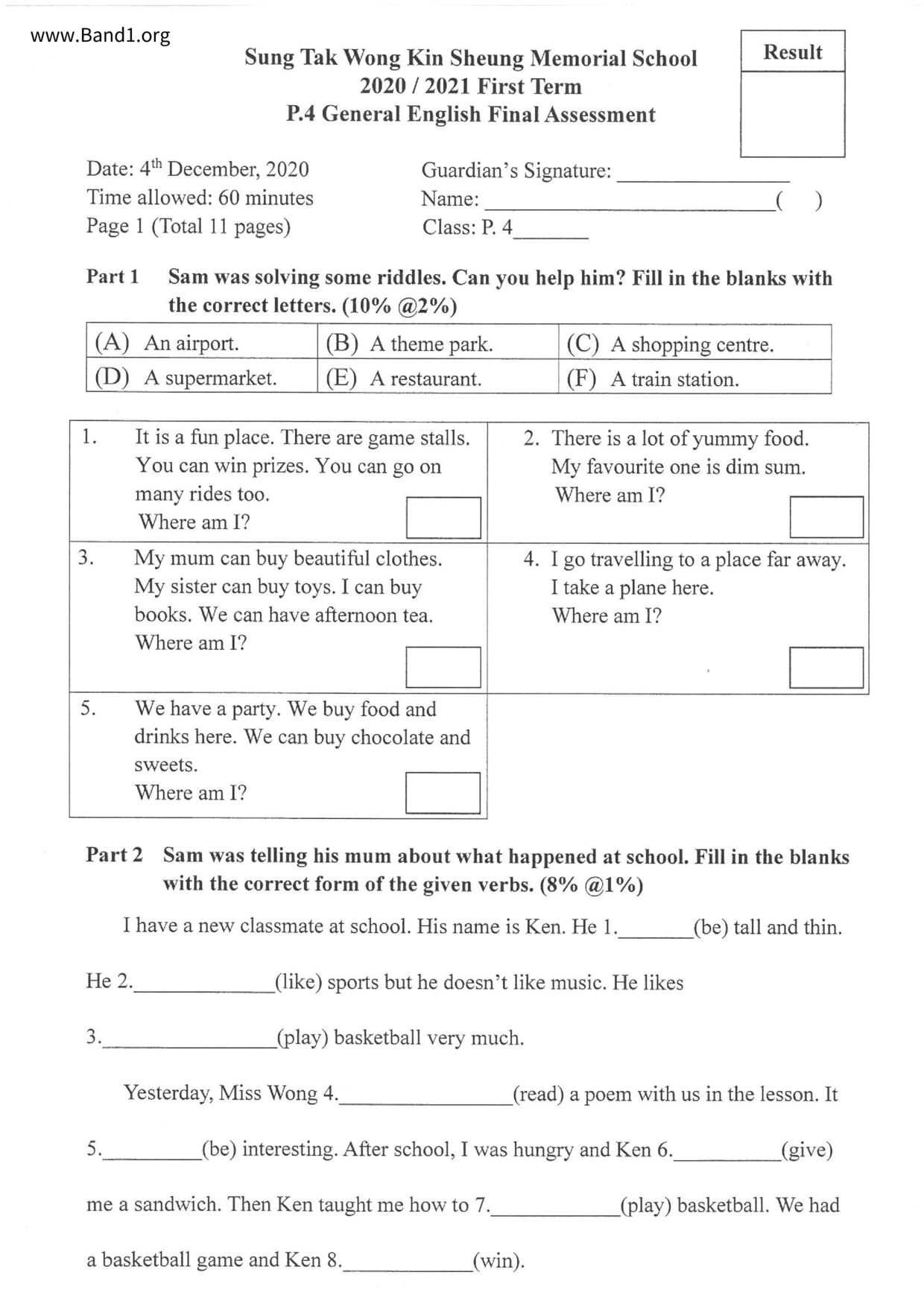 小四 英文 香港九龍塘基督教中華宣道會台山陳元喜小學
