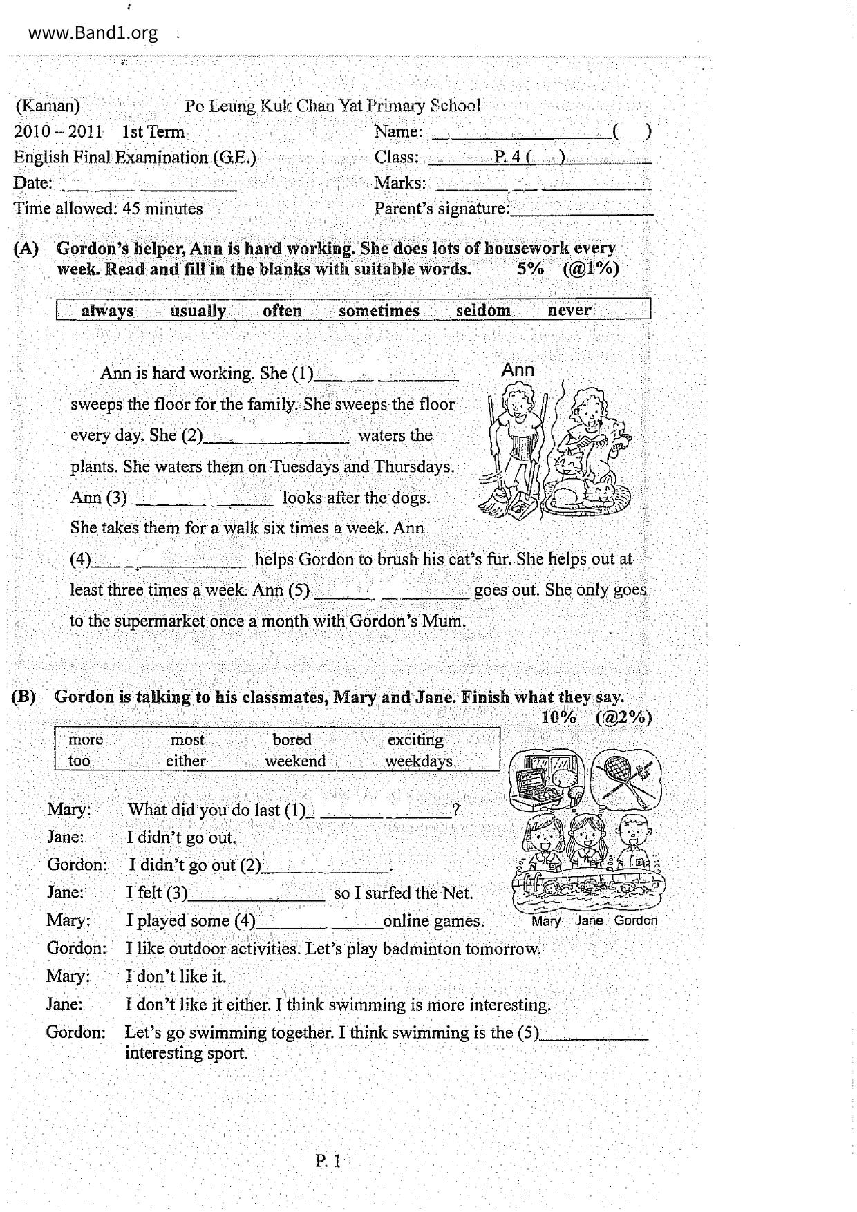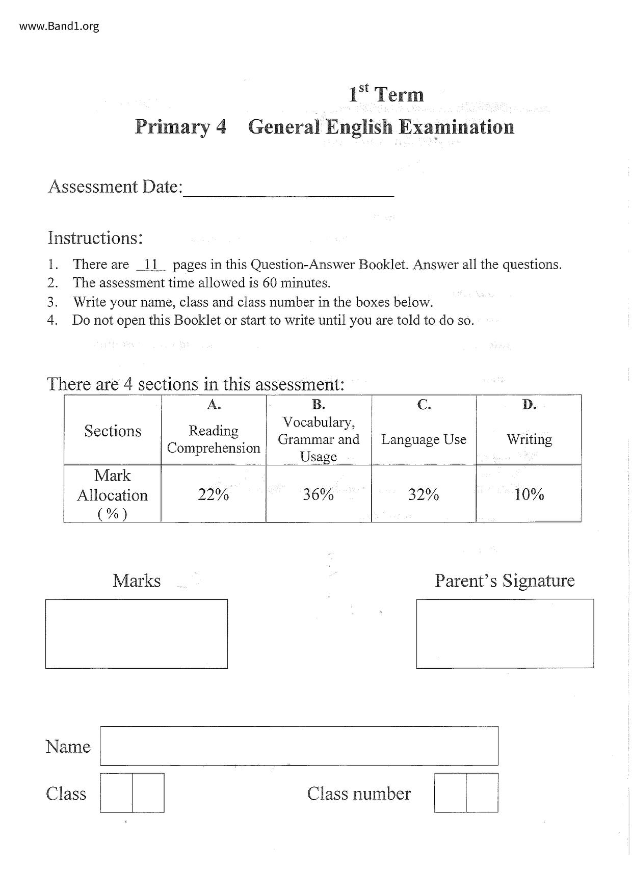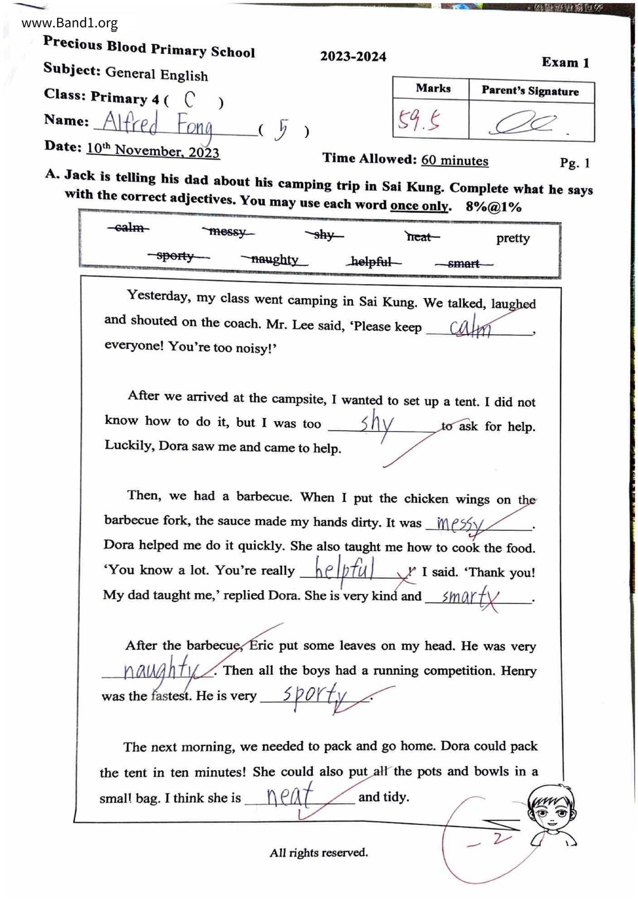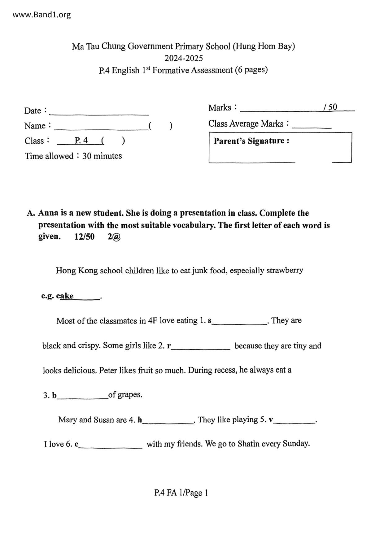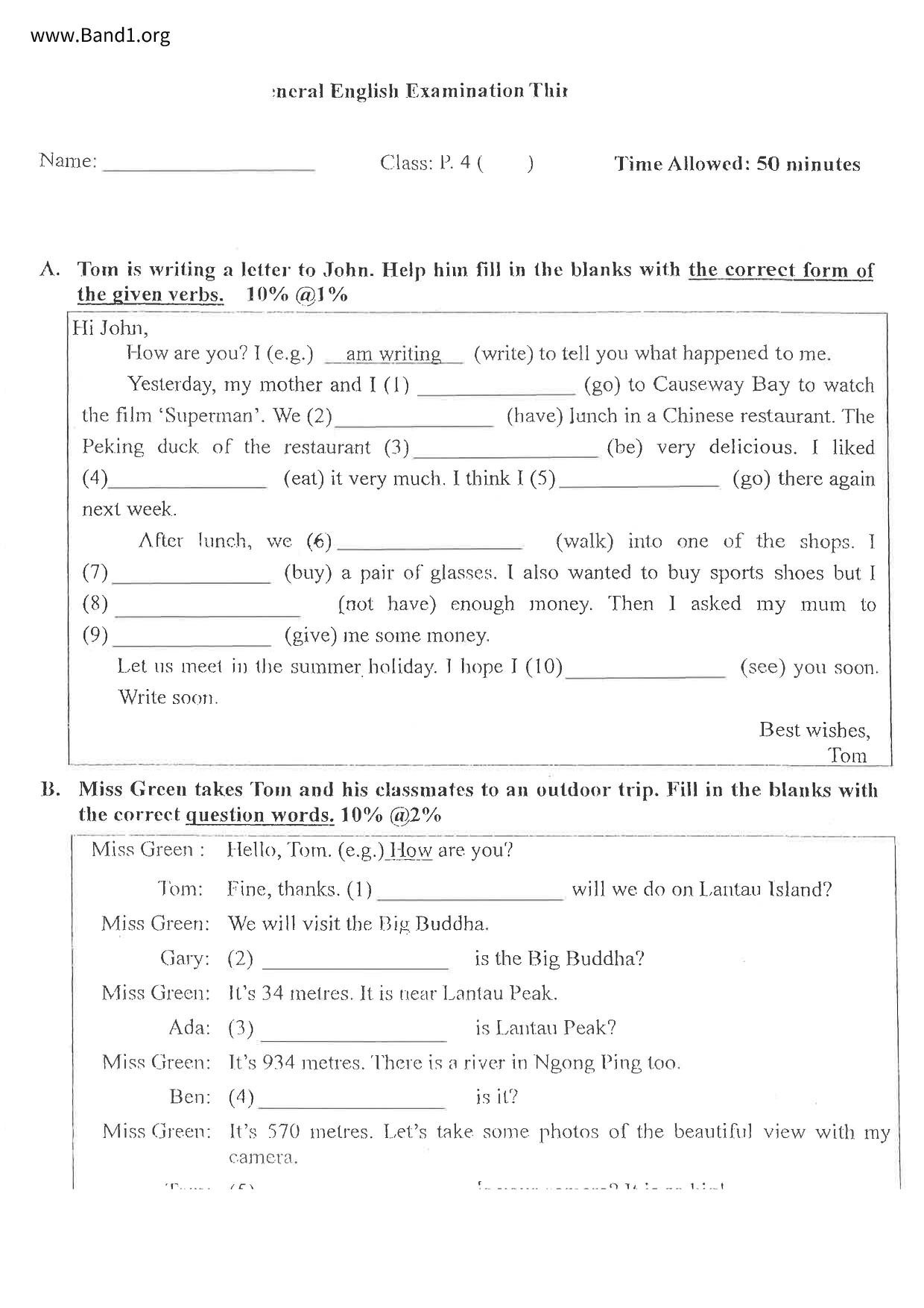 小四 英文 香港九龍塘基督教中華宣道會台山陳元喜小學