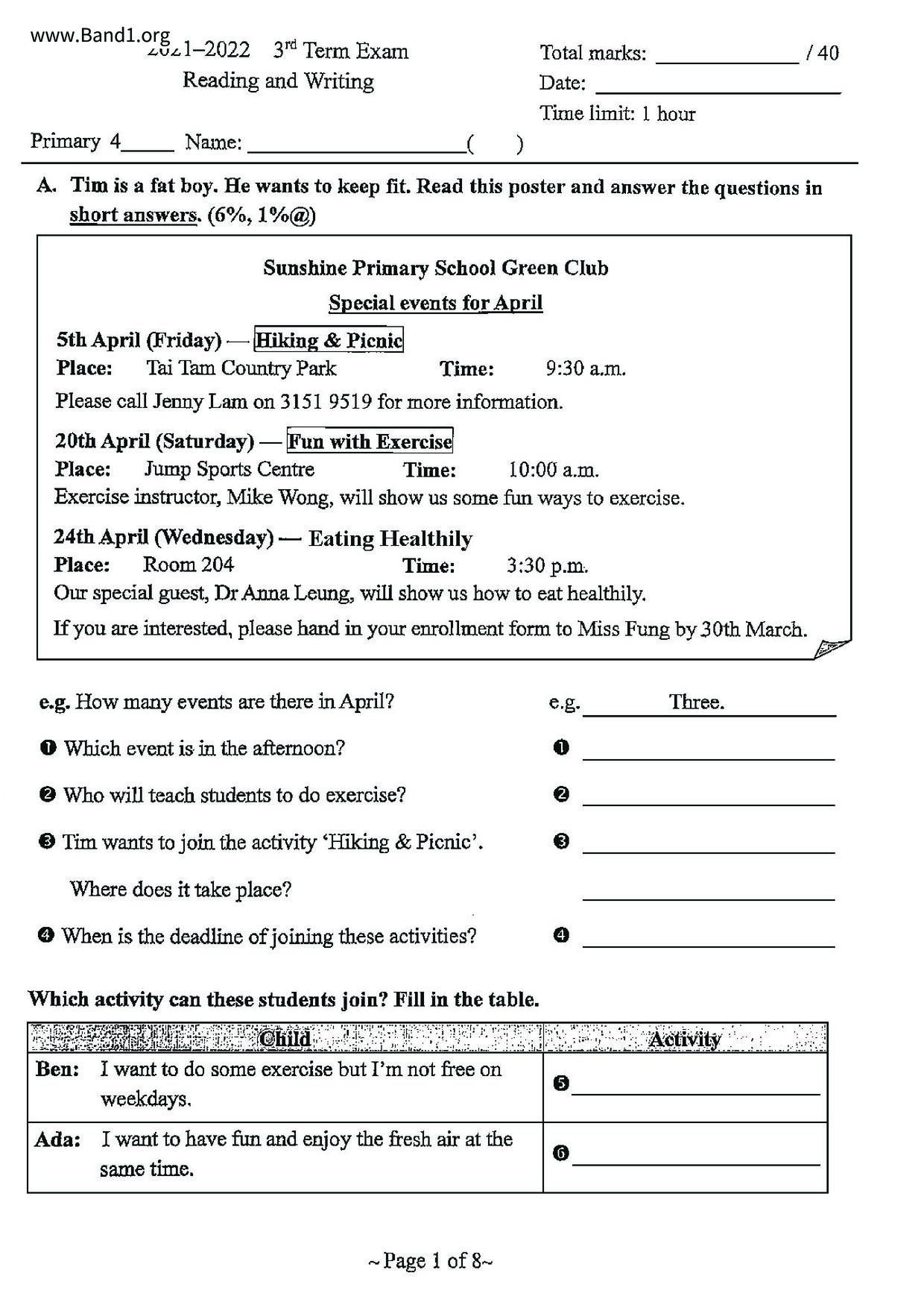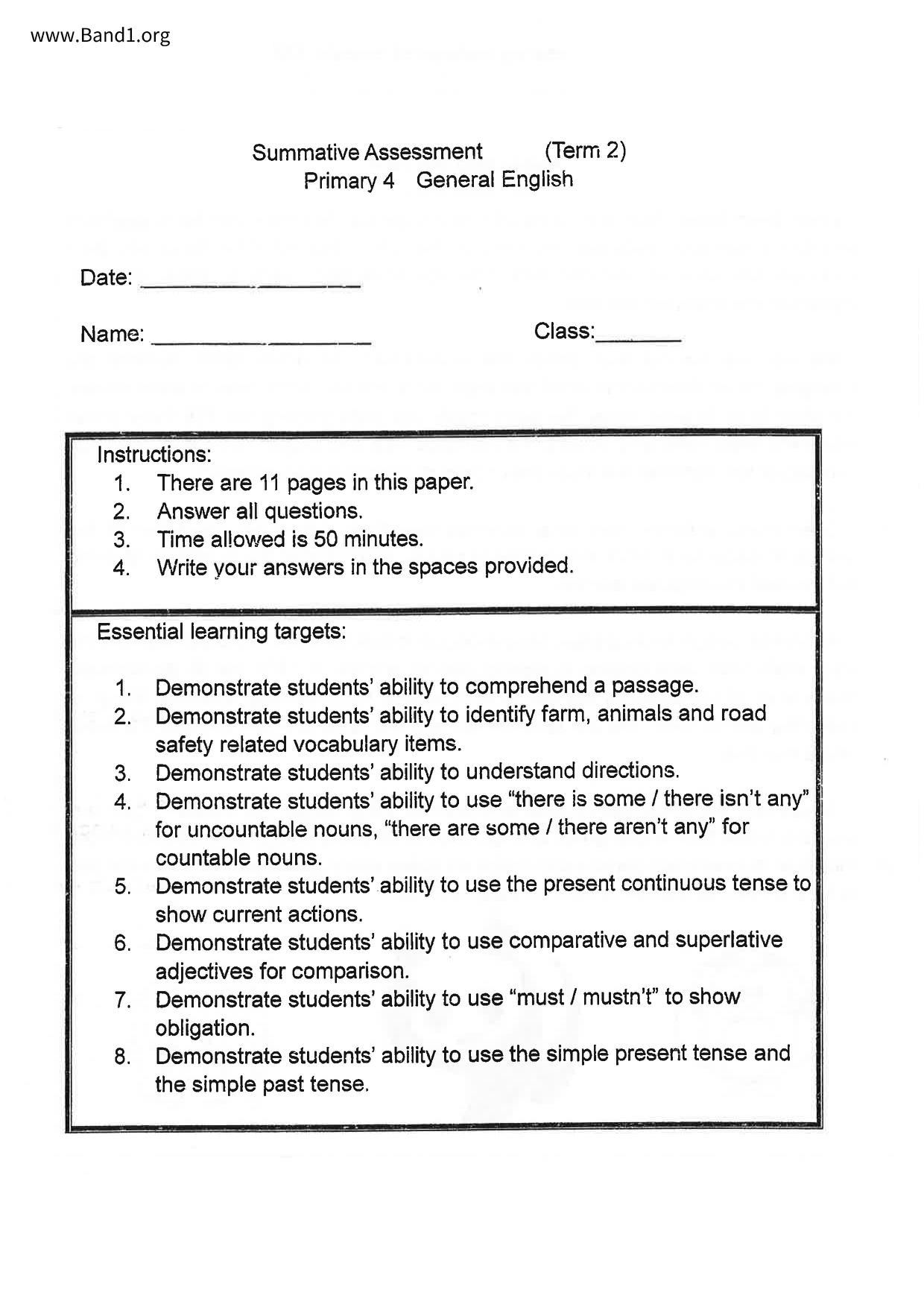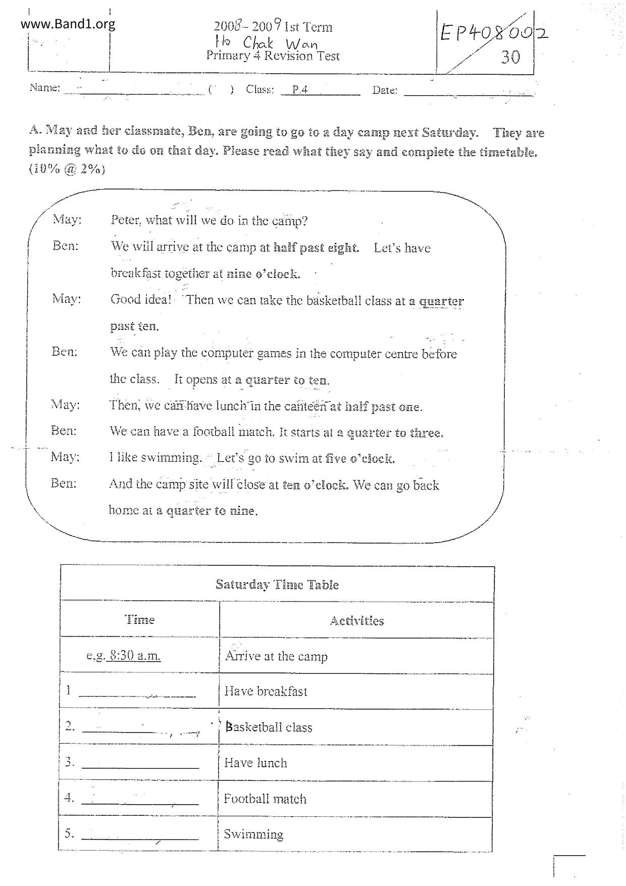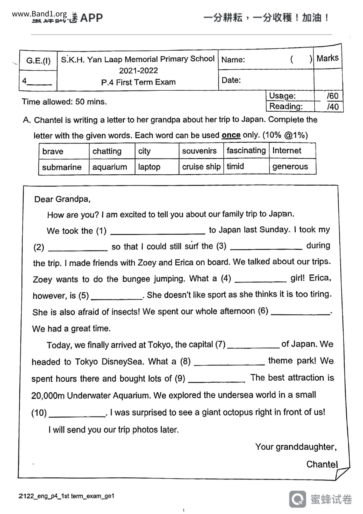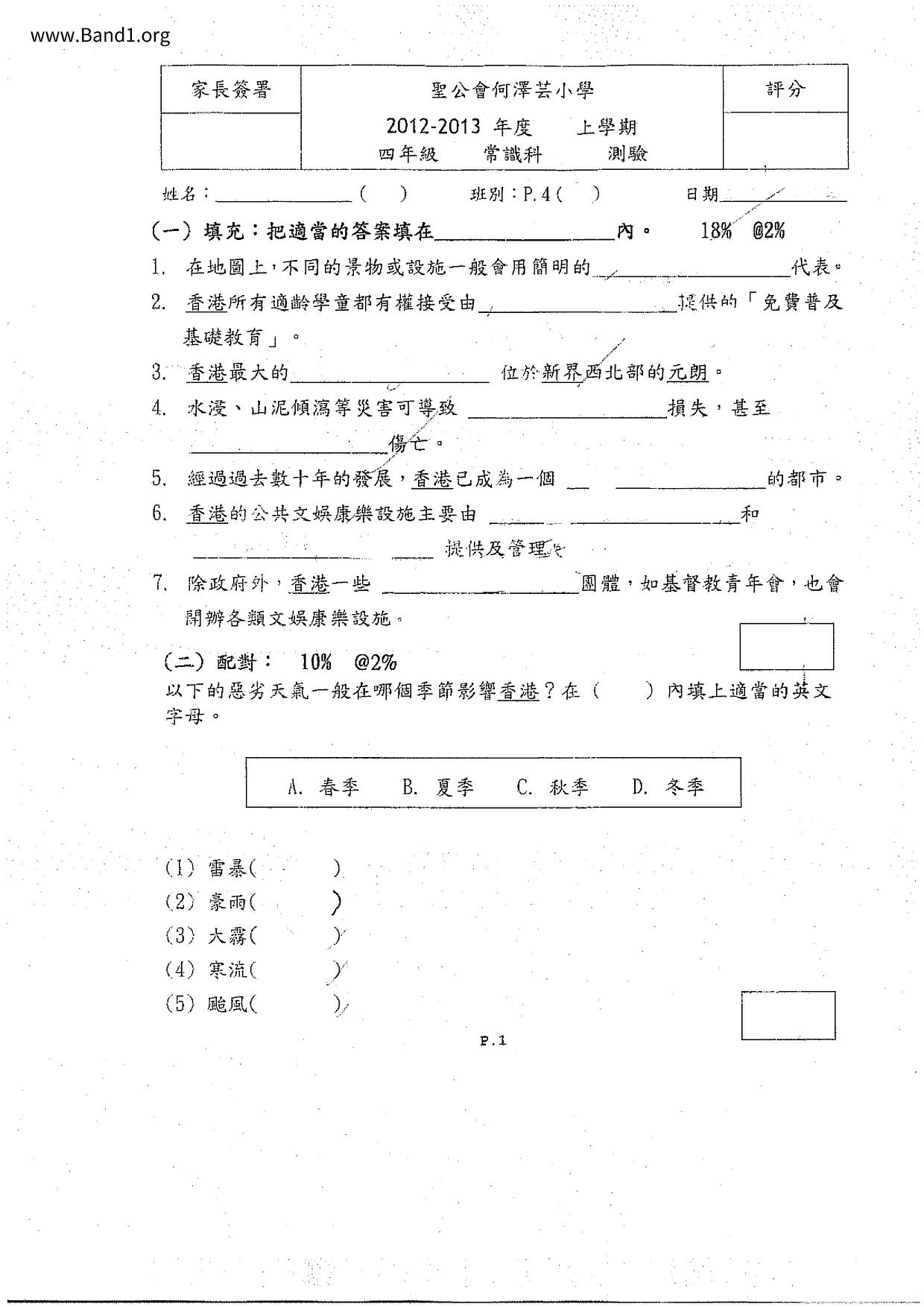 小四 英文 香港九龍塘基督教中華宣道會台山陳元喜小學