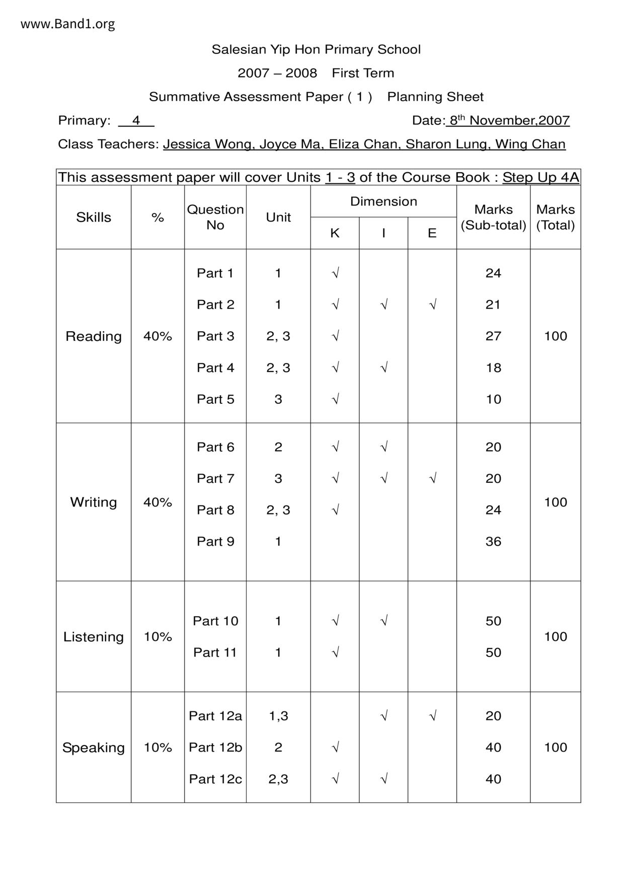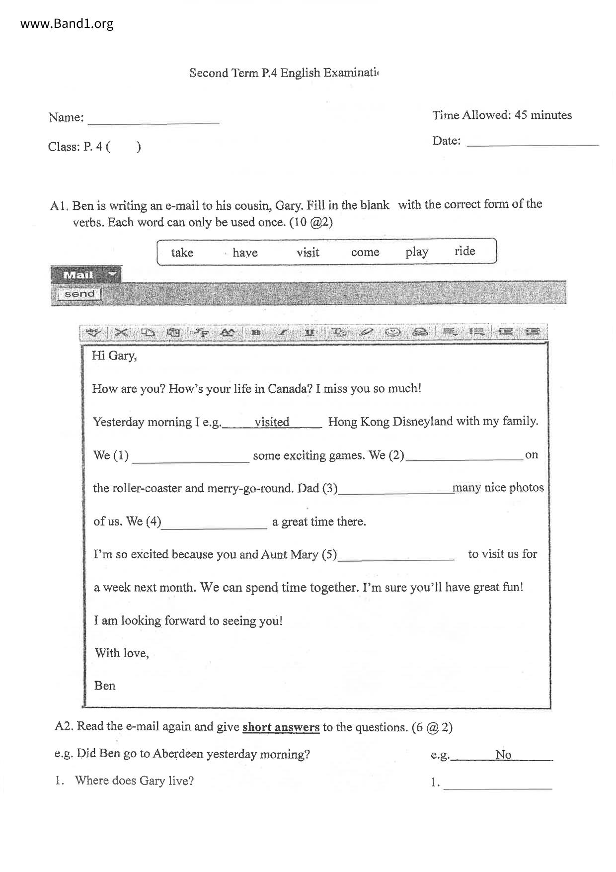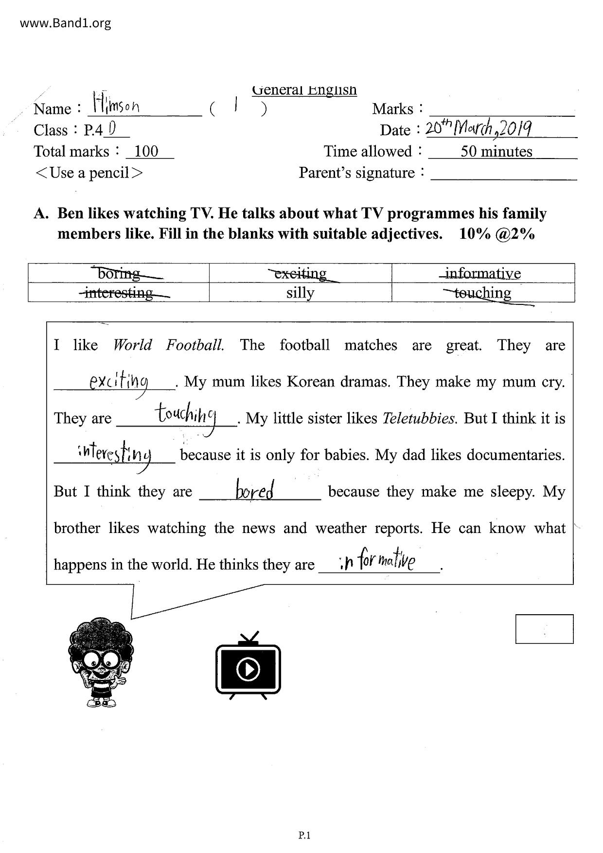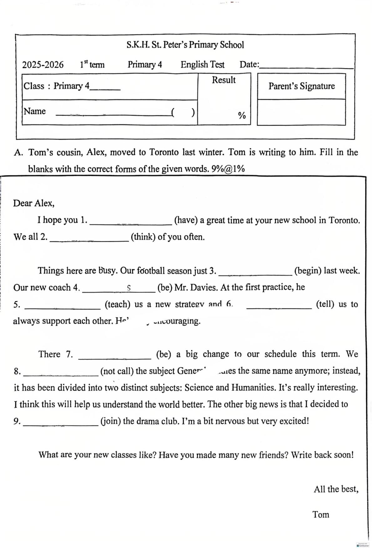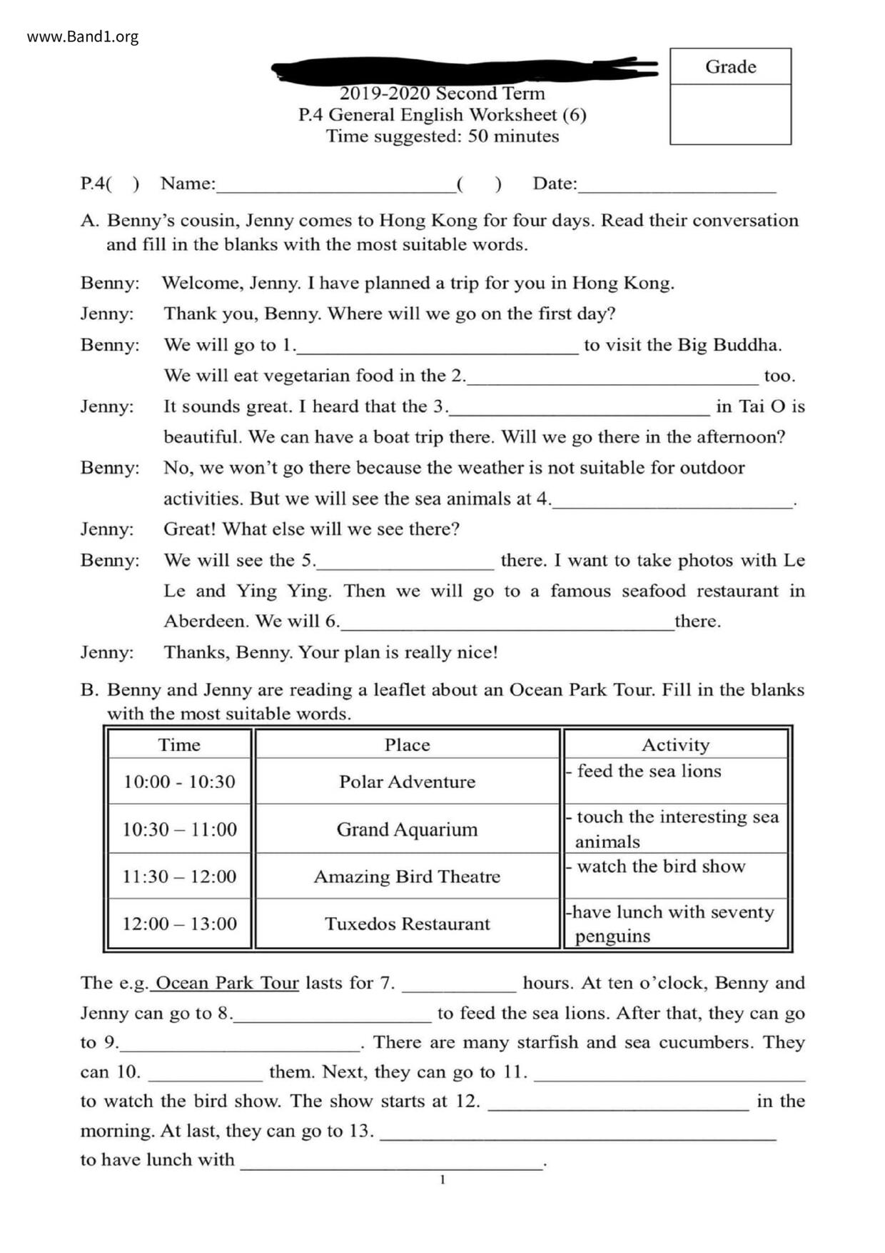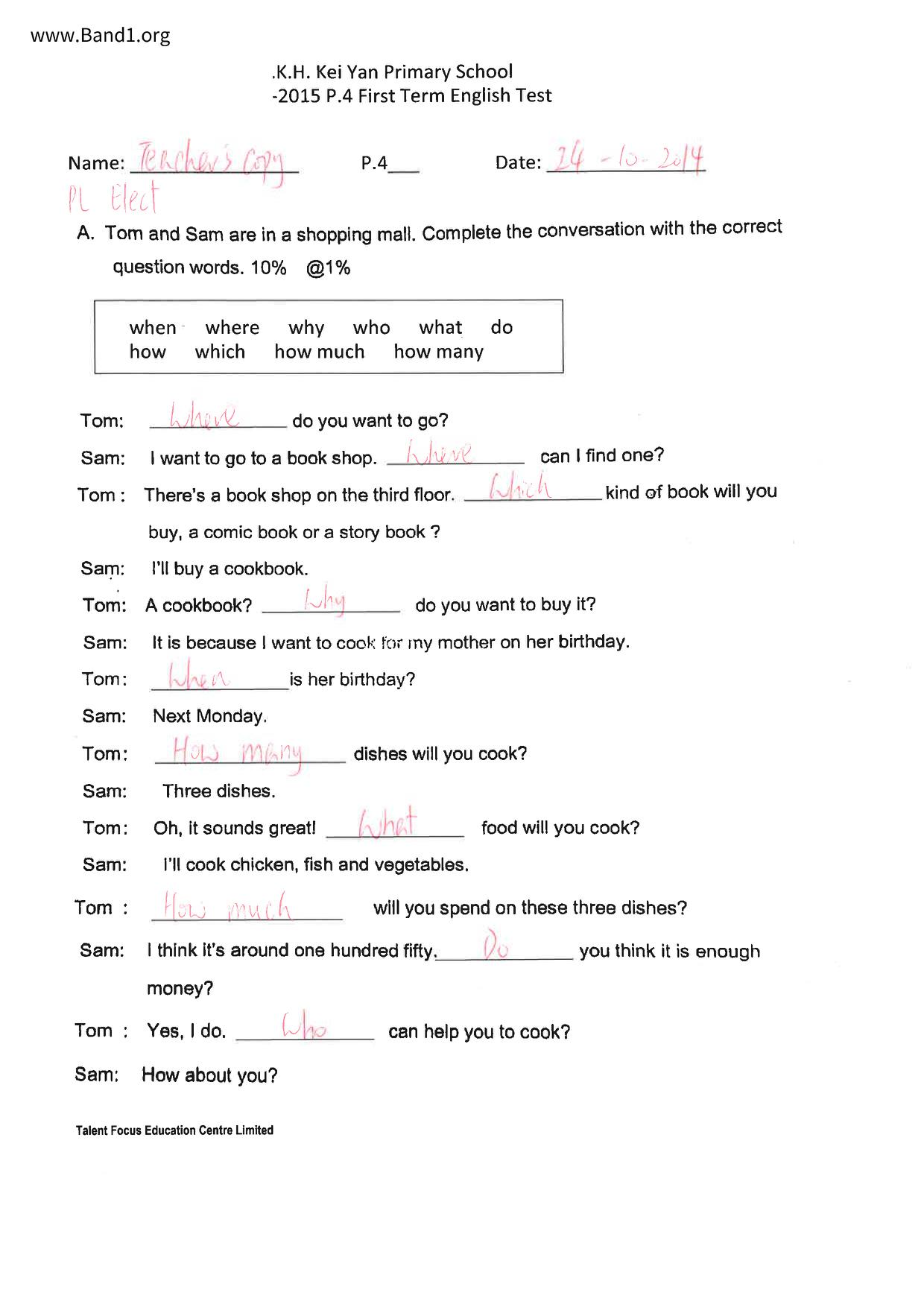 小四 英文 香港九龍塘基督教中華宣道會台山陳元喜小學