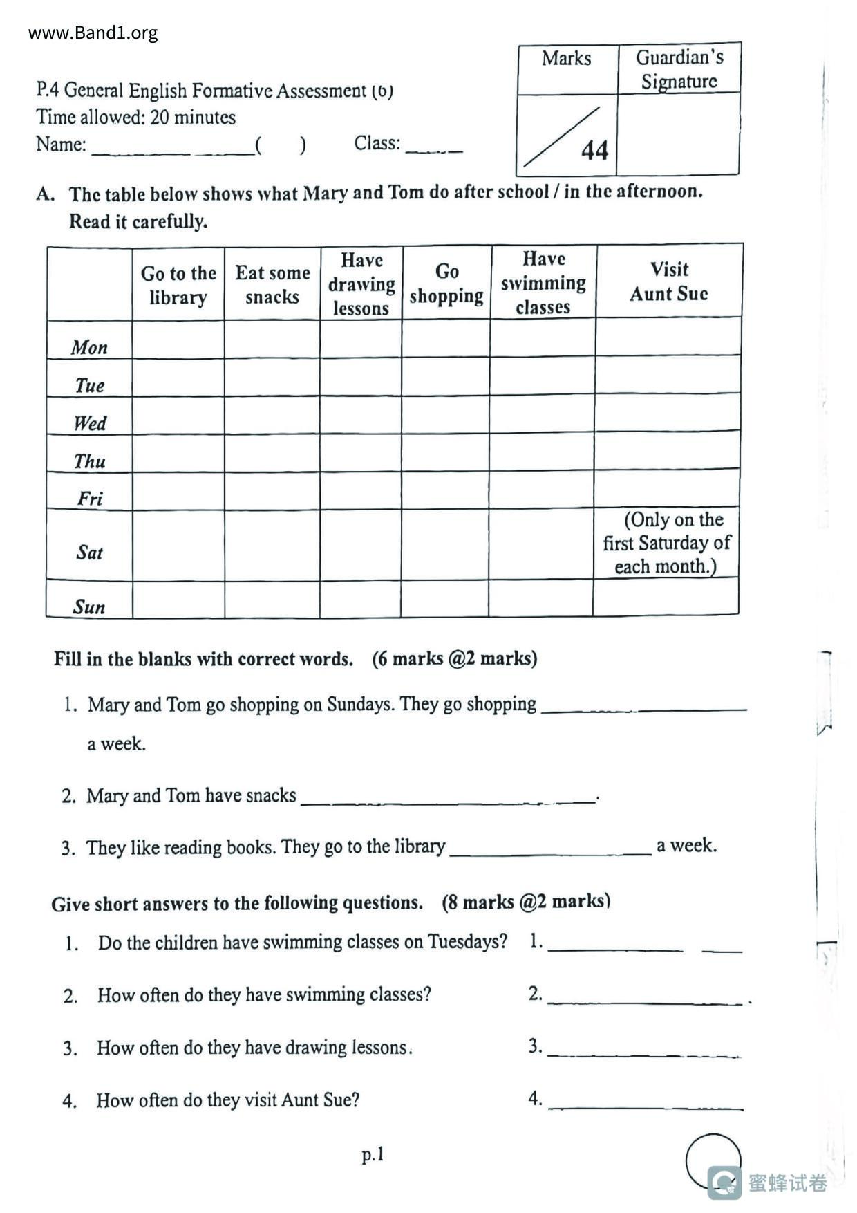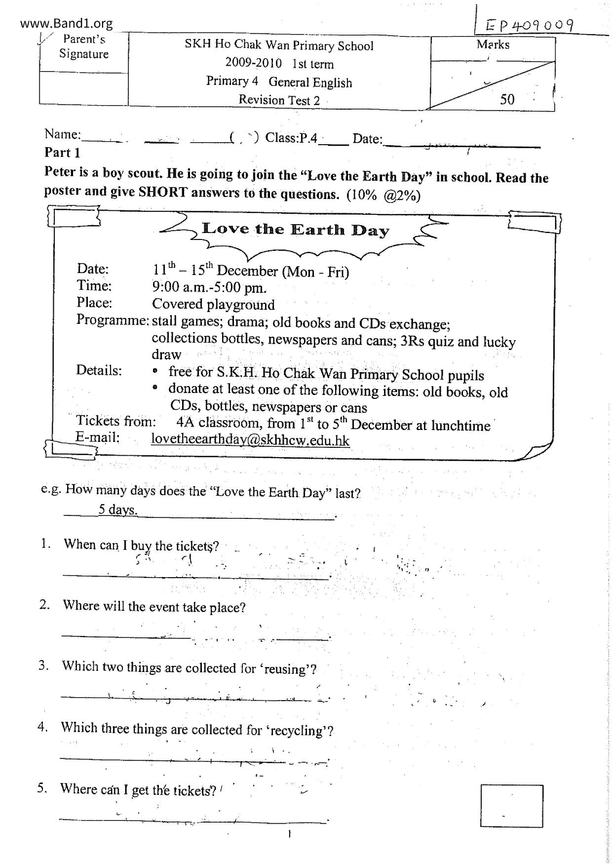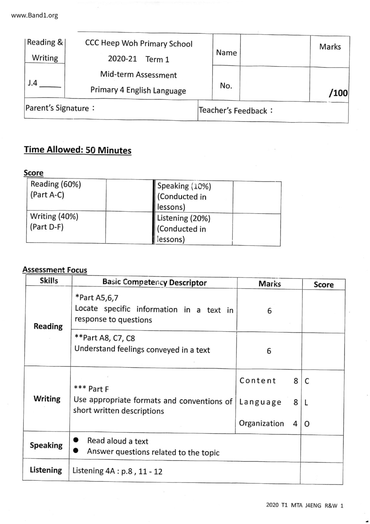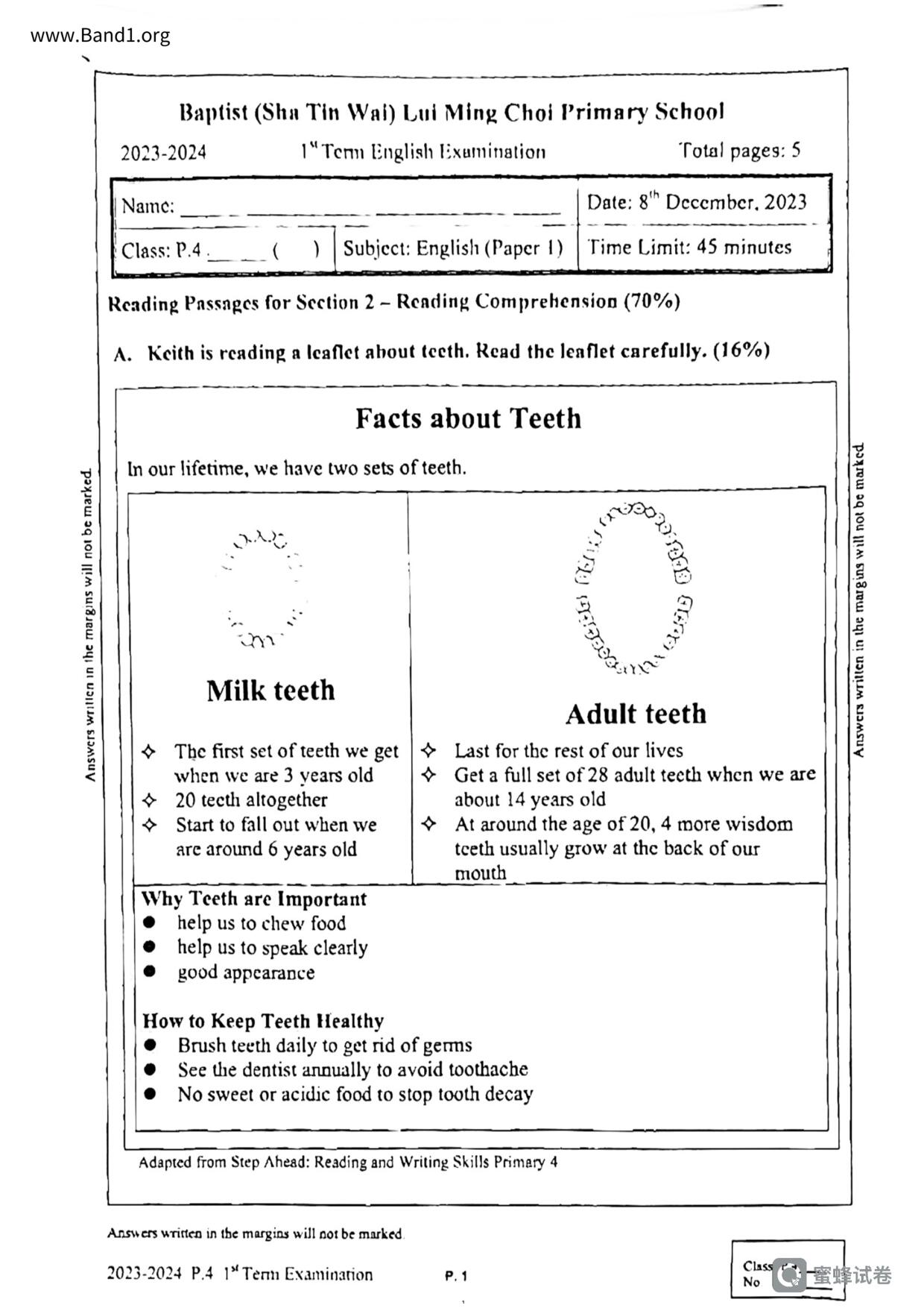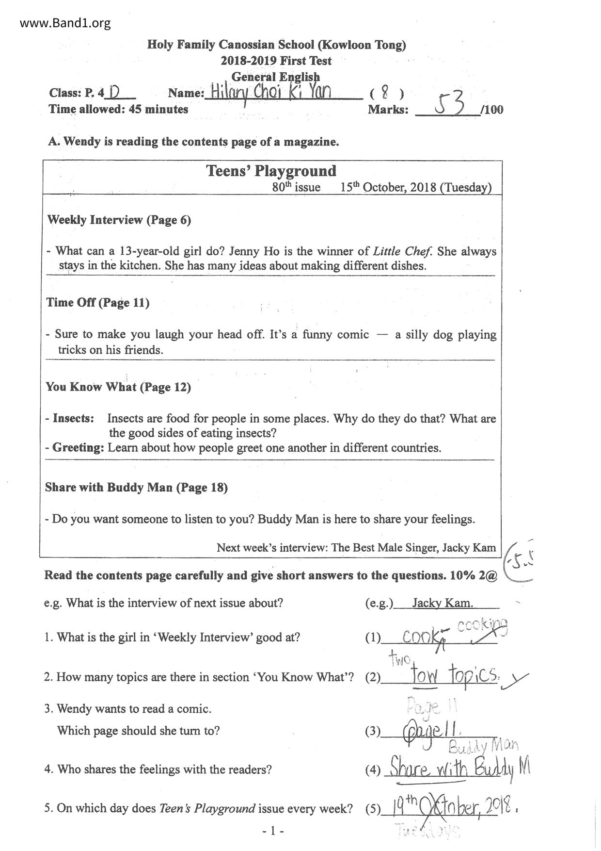 小四 英文 香港九龍塘基督教中華宣道會台山陳元喜小學