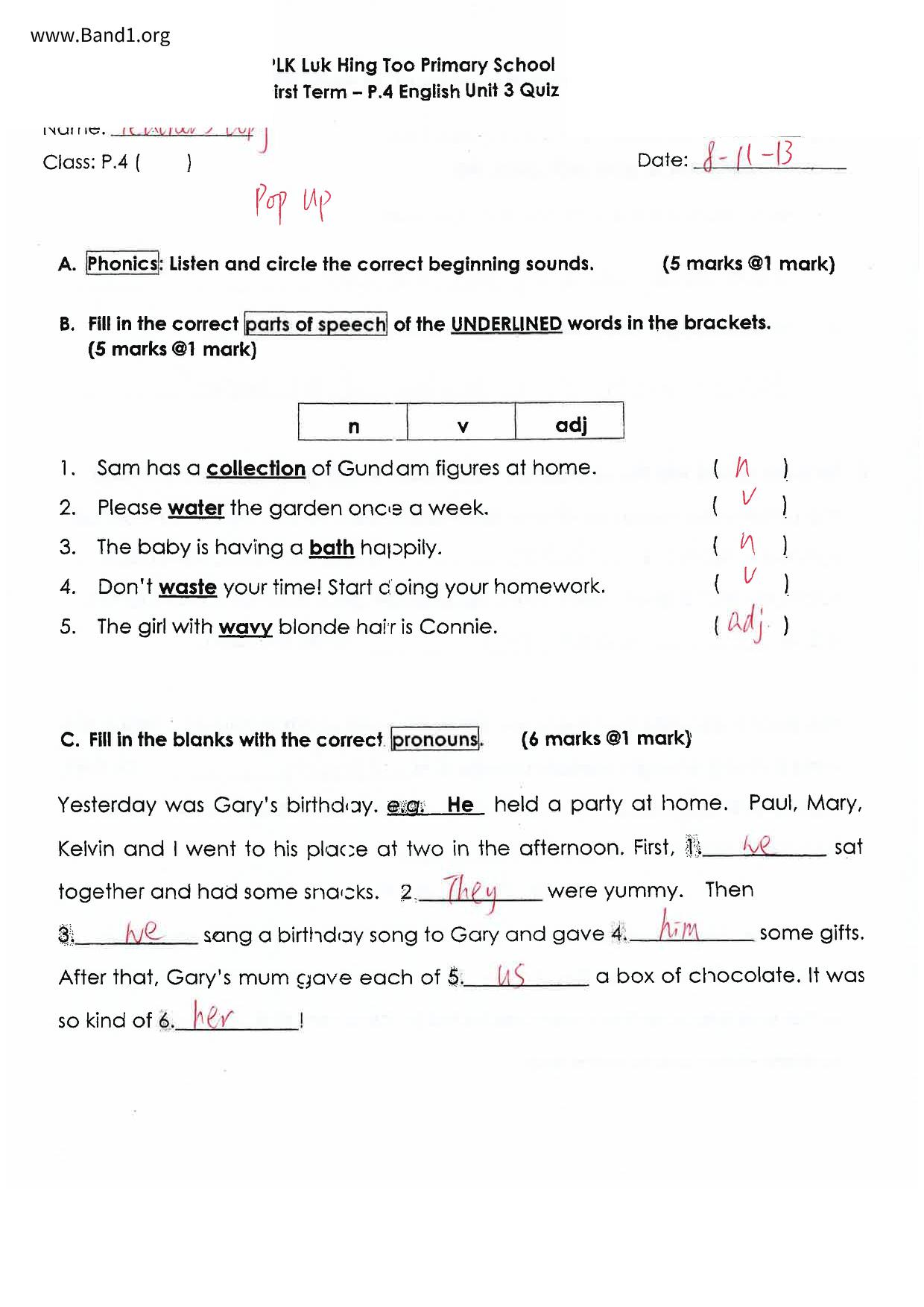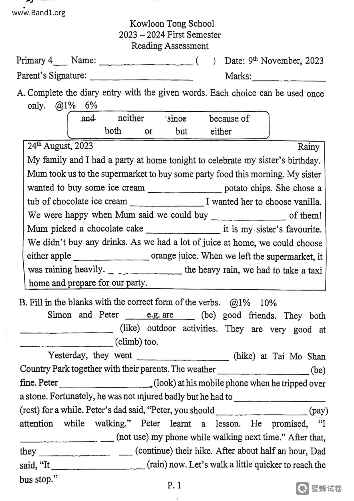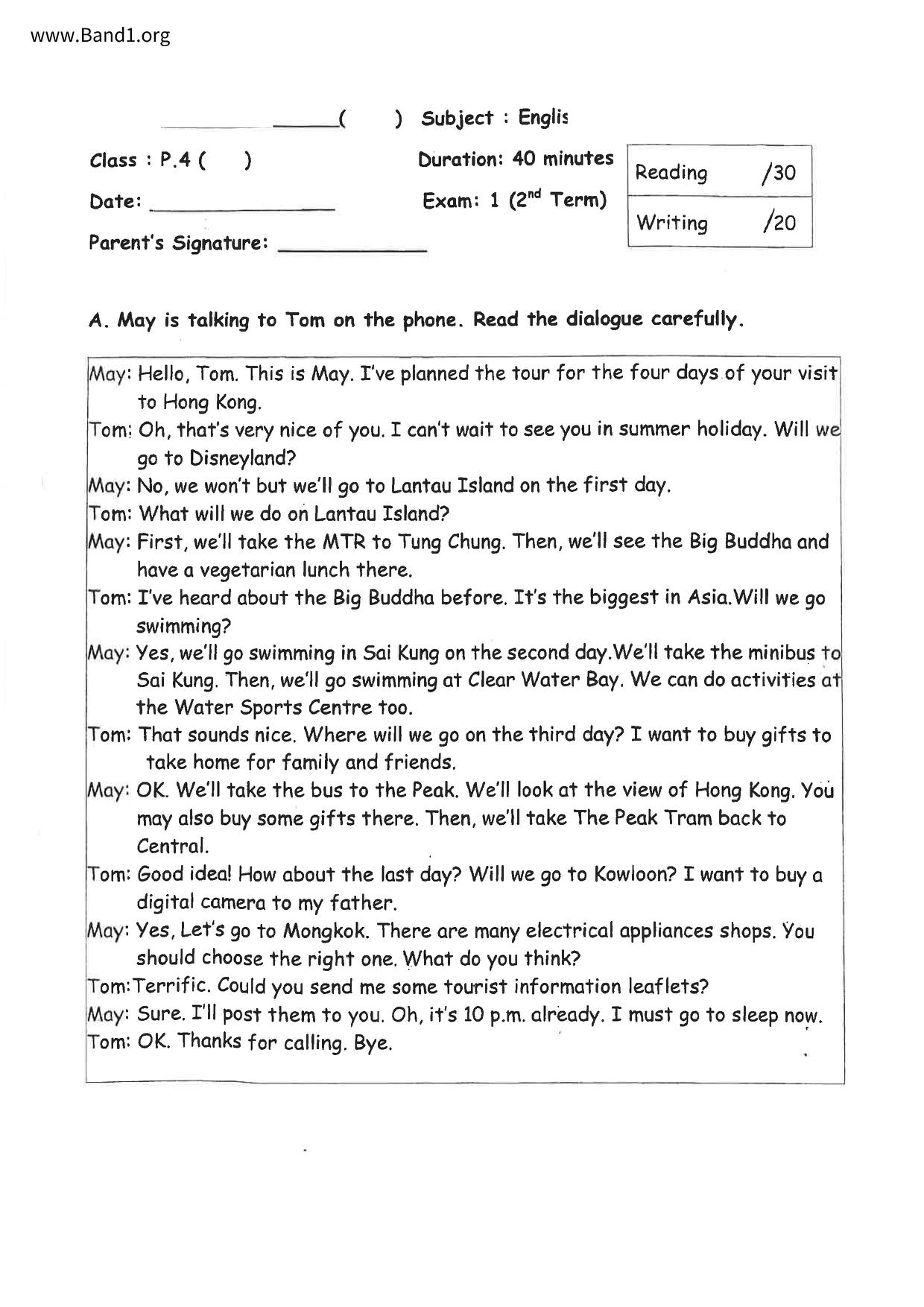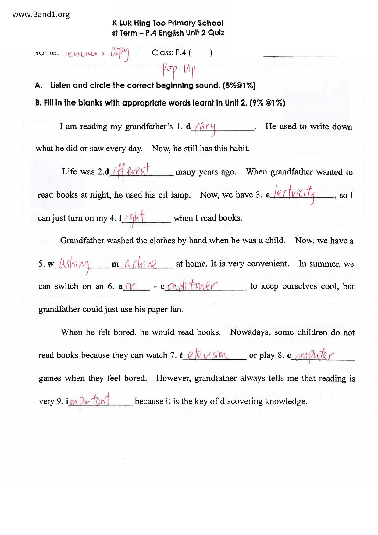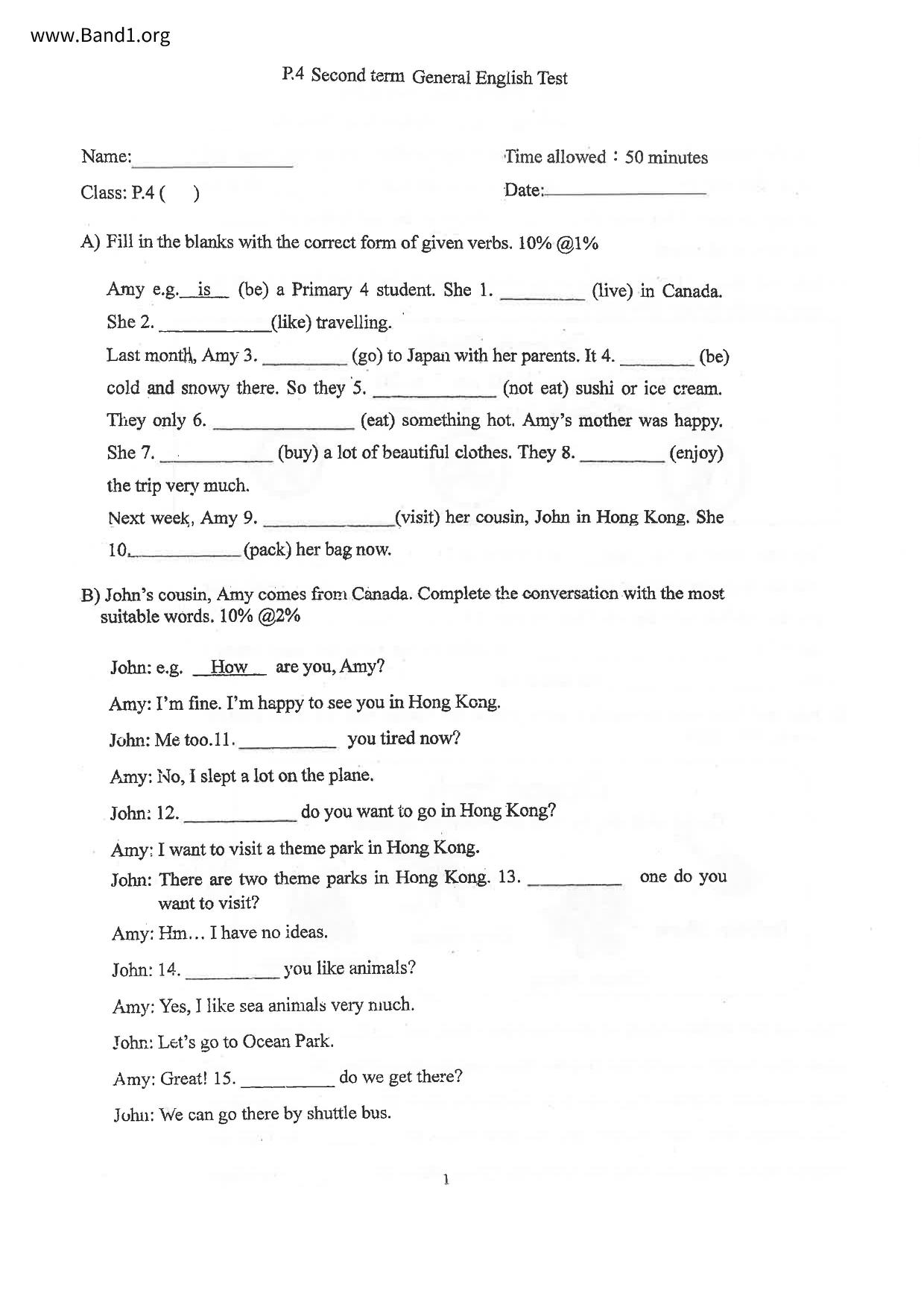 小四 英文 香港九龍塘基督教中華宣道會台山陳元喜小學