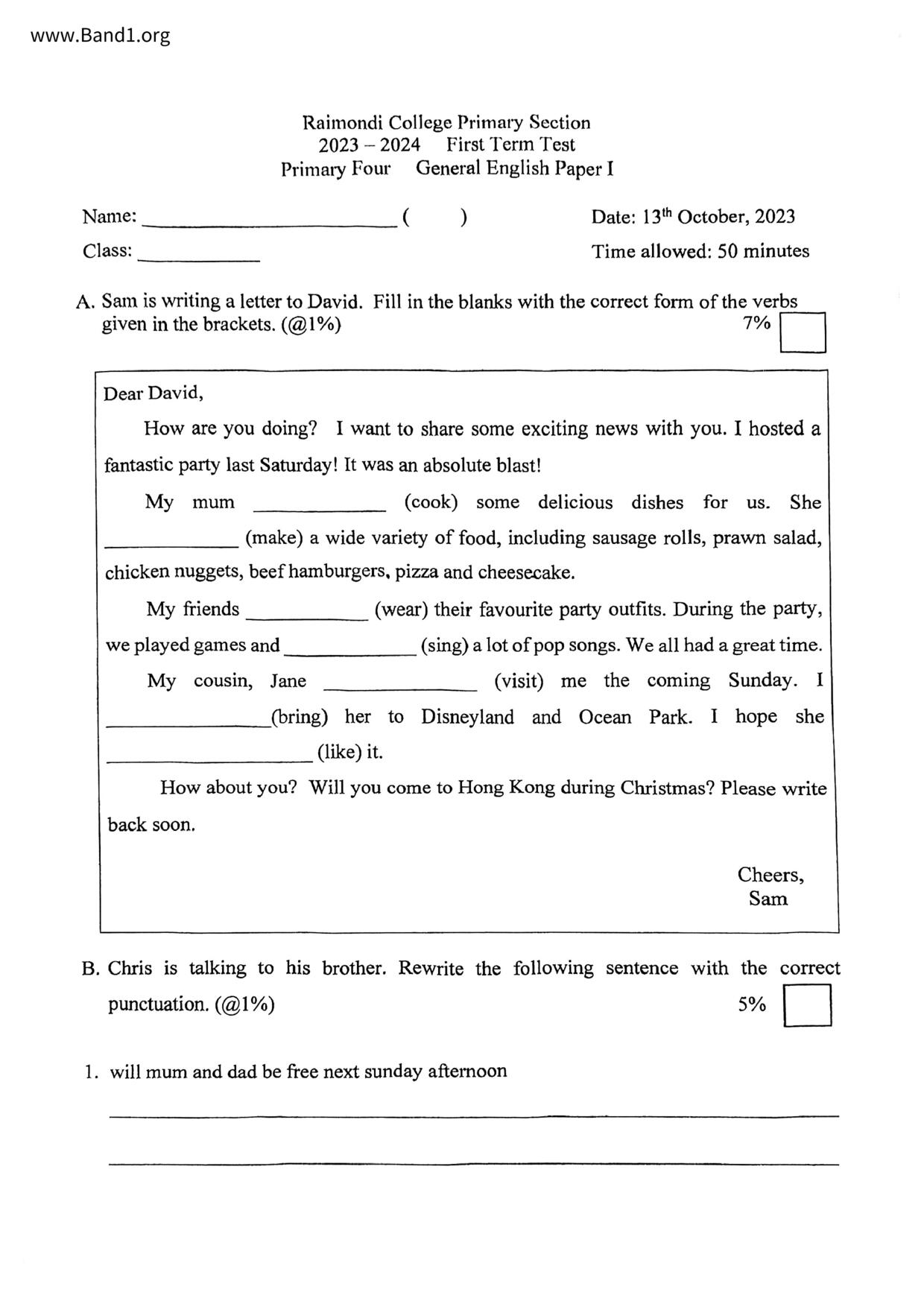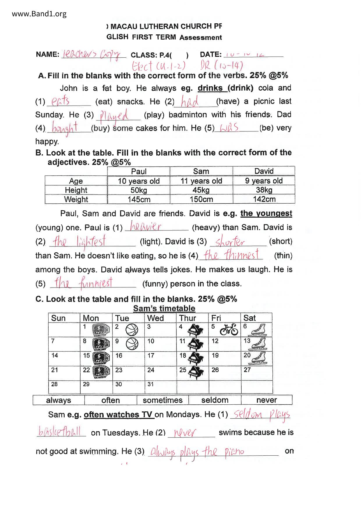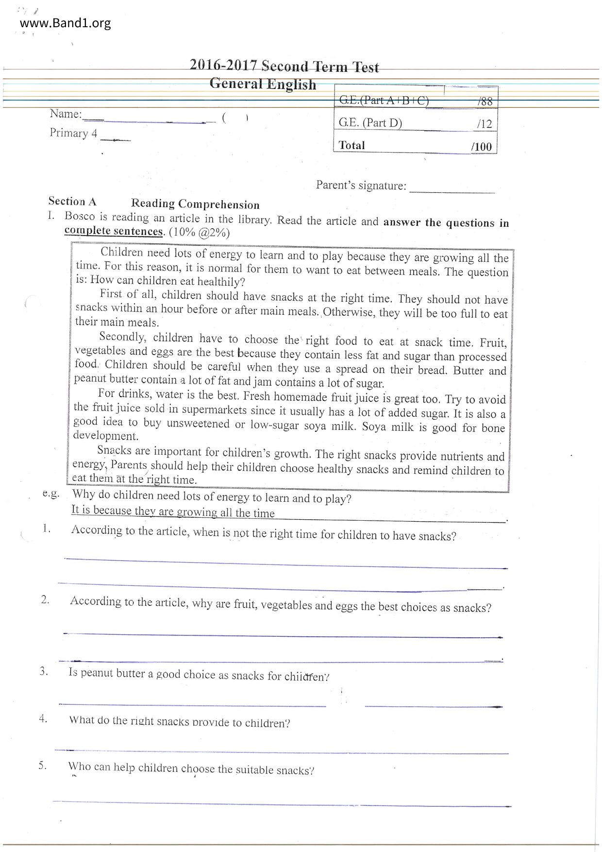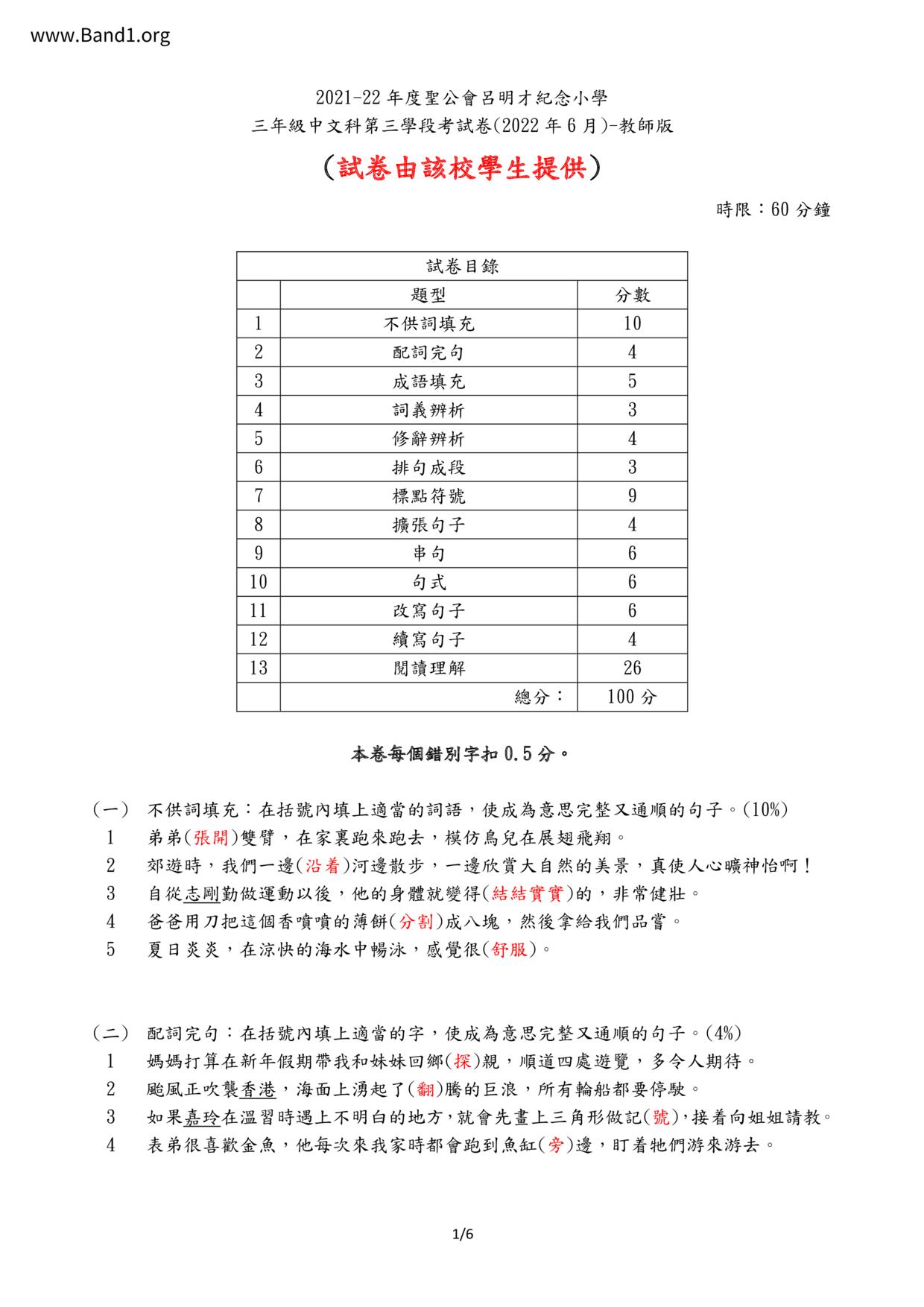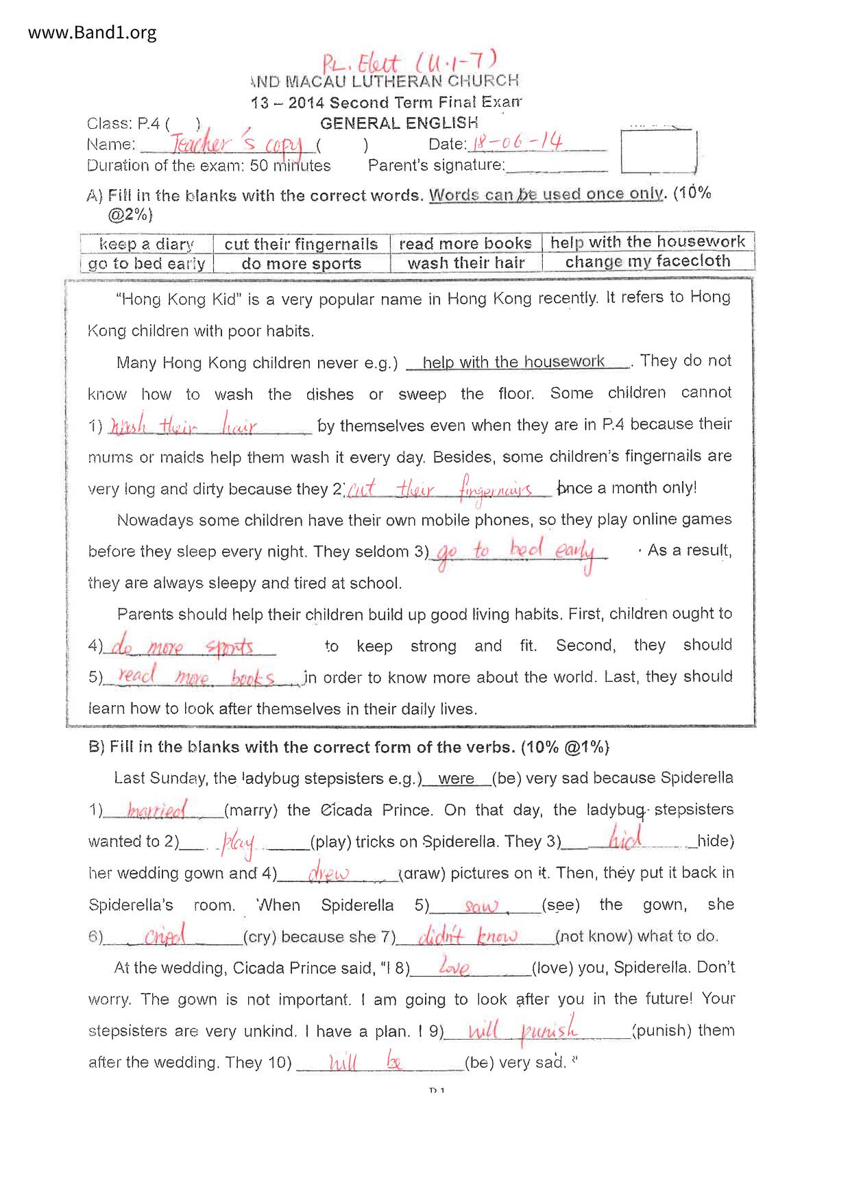 小四 英文 香港九龍塘基督教中華宣道會台山陳元喜小學