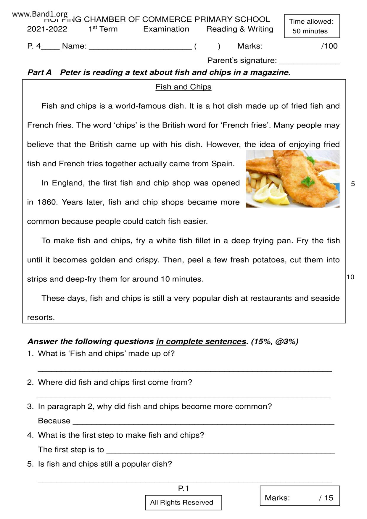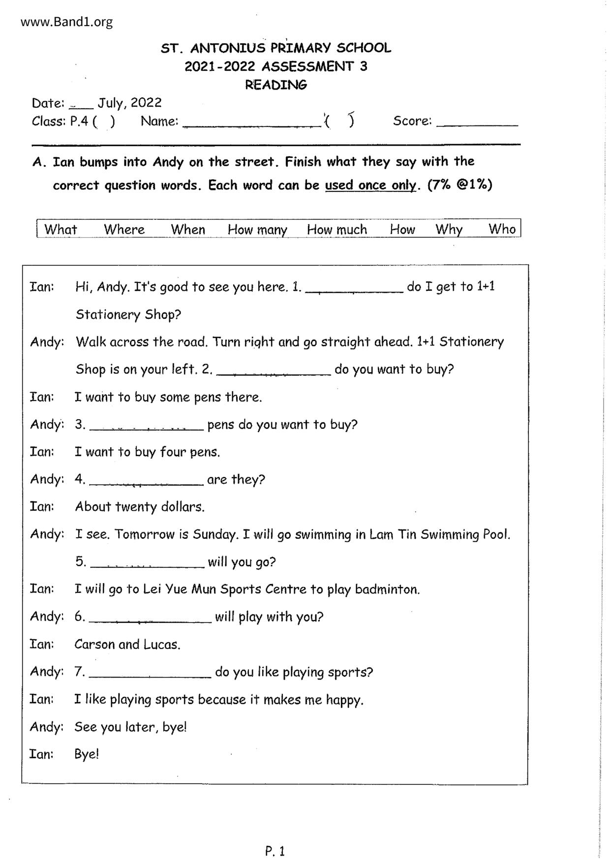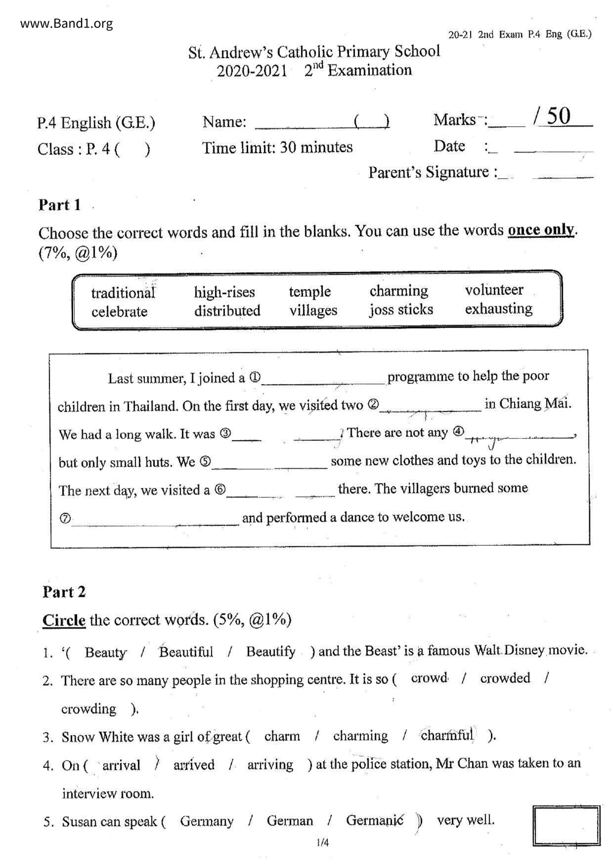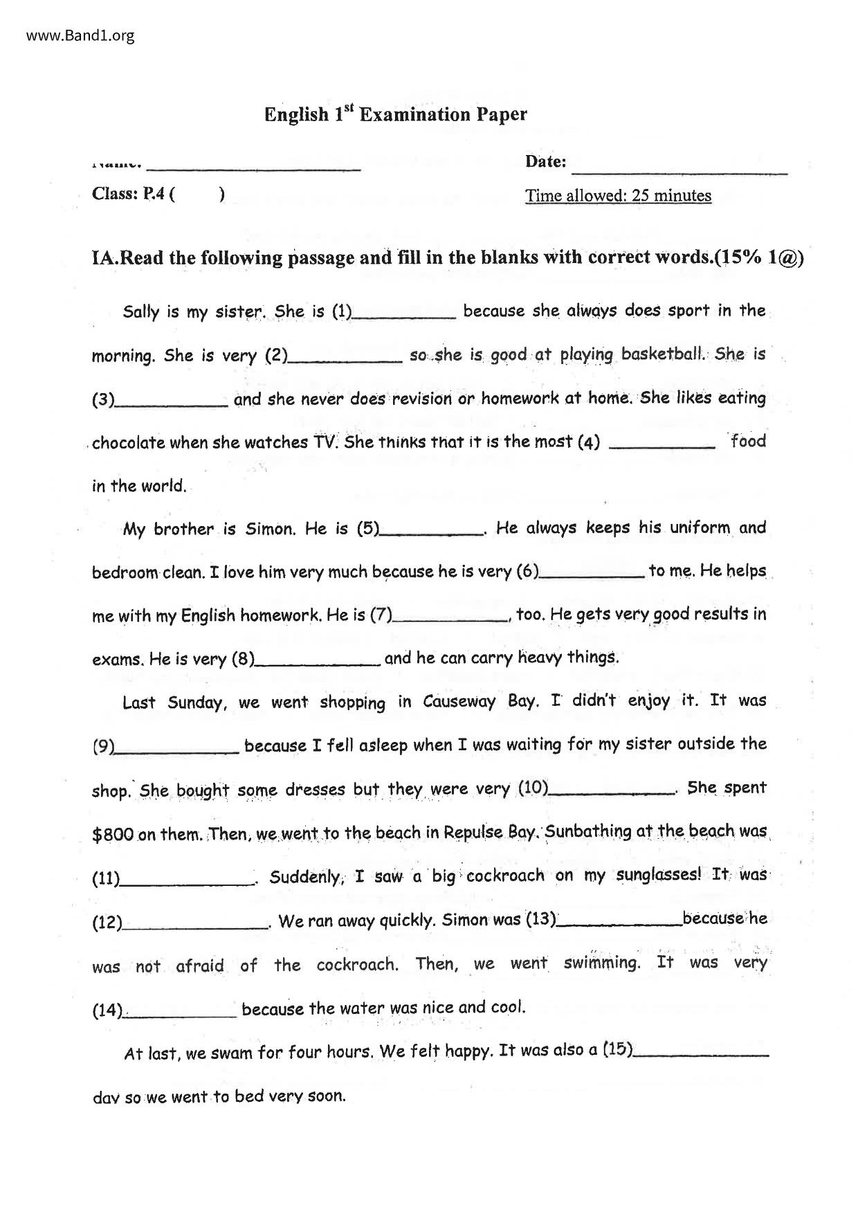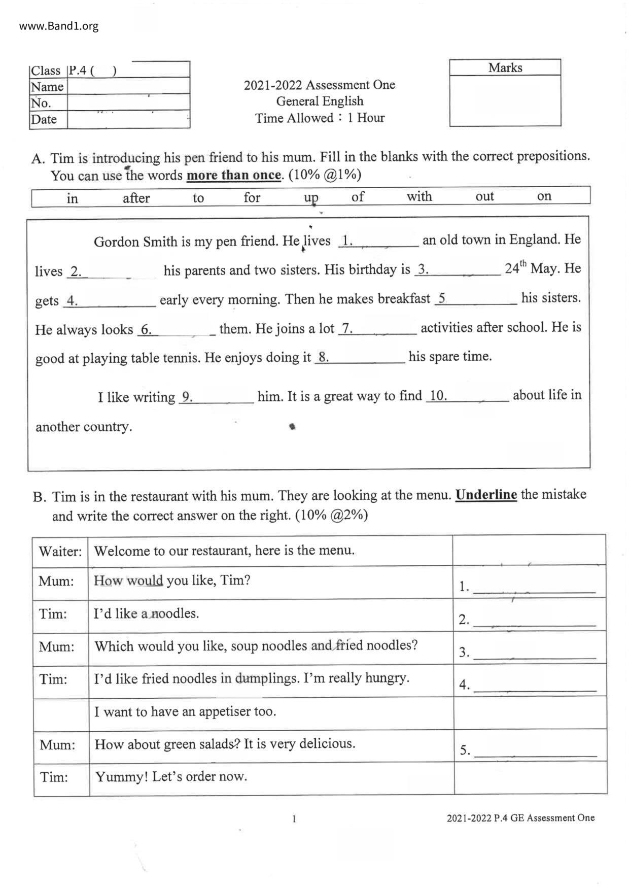 小四 英文 香港九龍塘基督教中華宣道會台山陳元喜小學