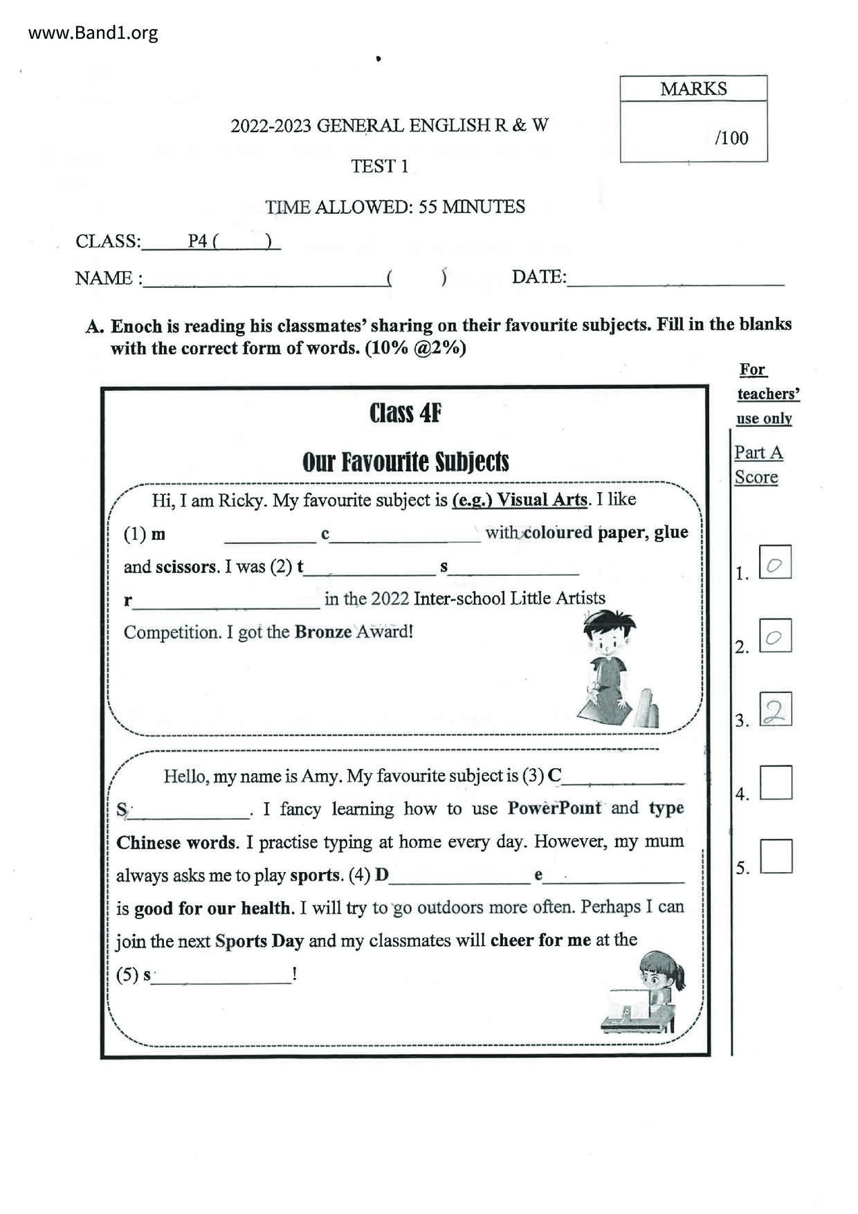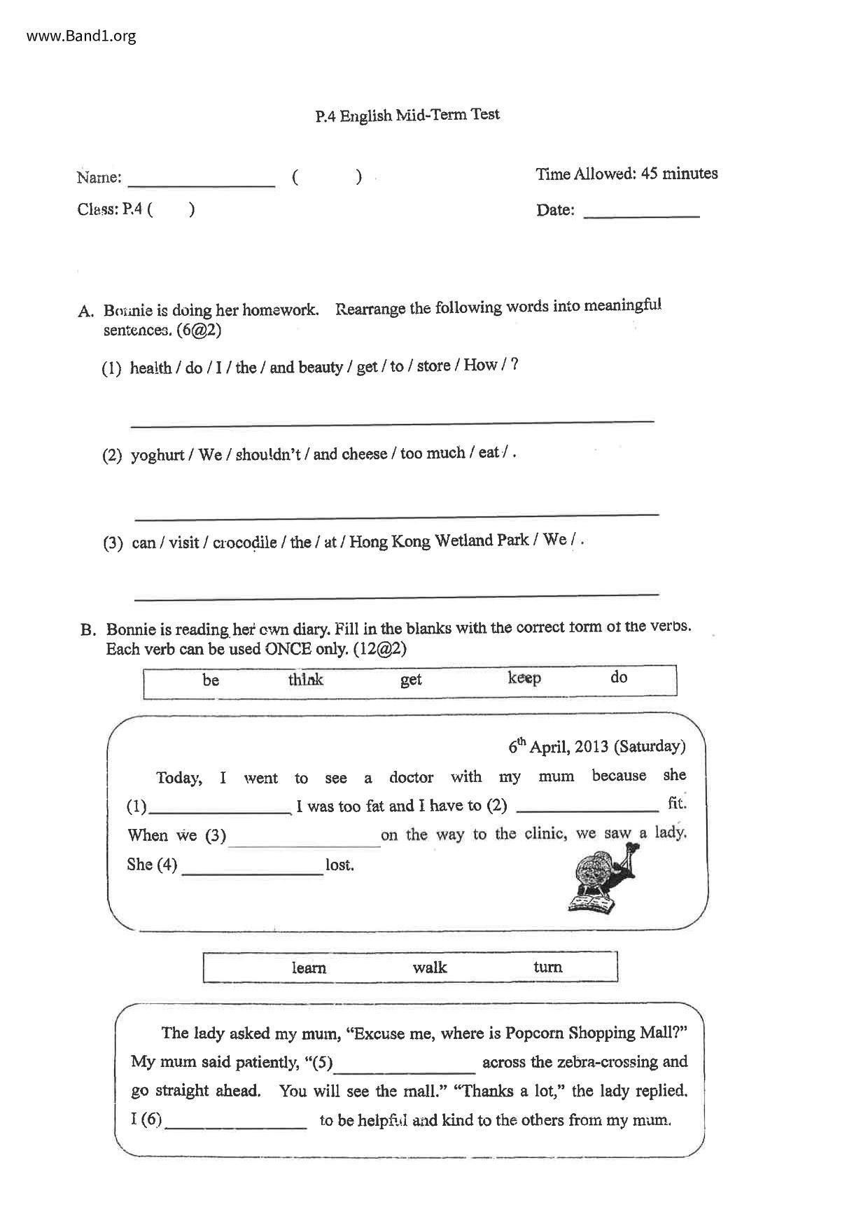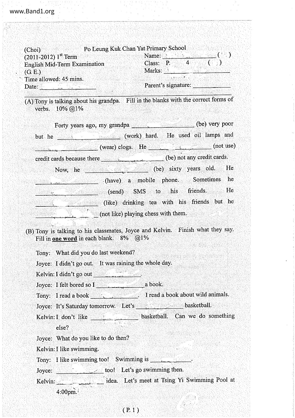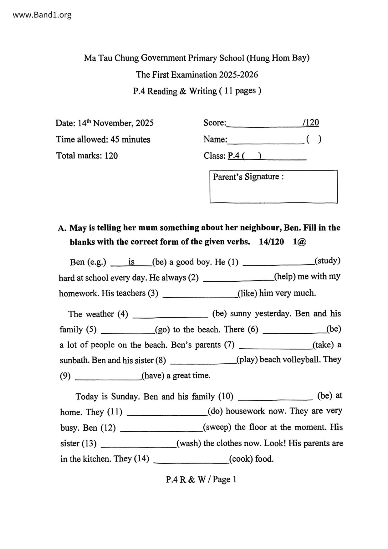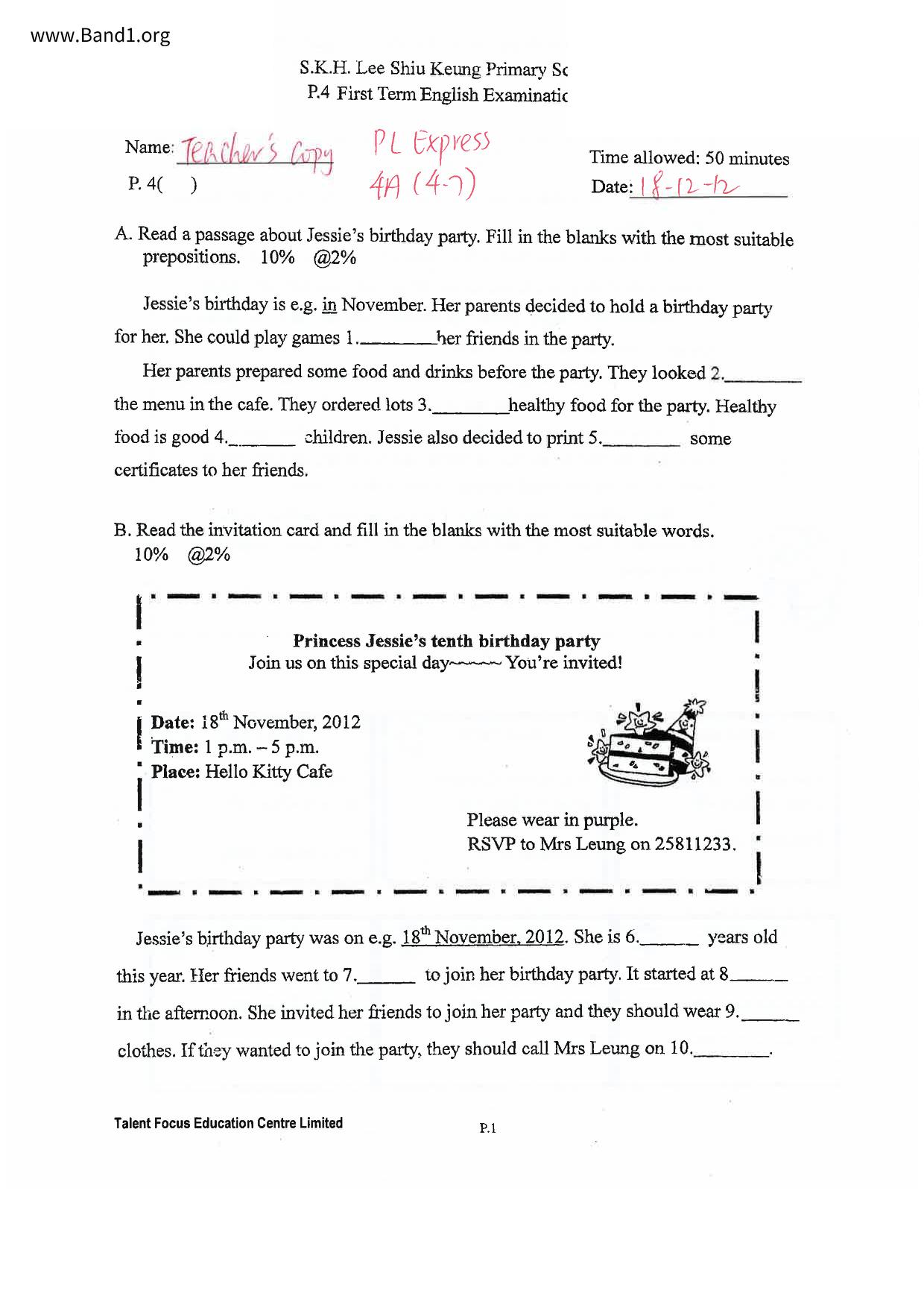 小四 英文 香港九龍塘基督教中華宣道會台山陳元喜小學