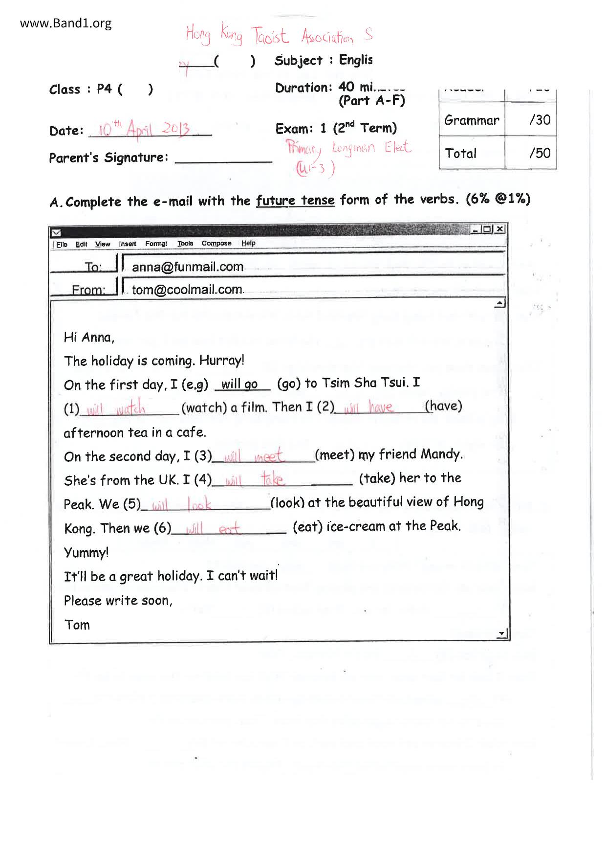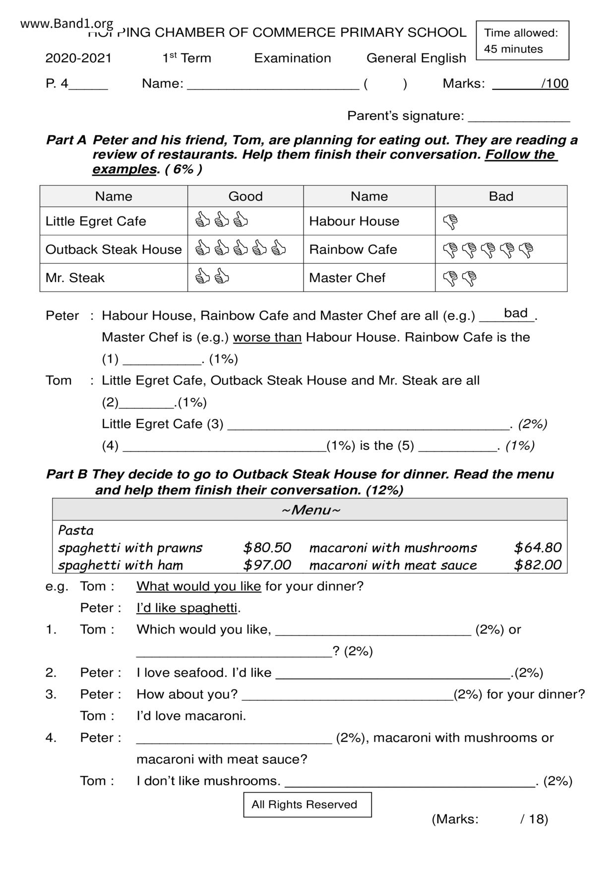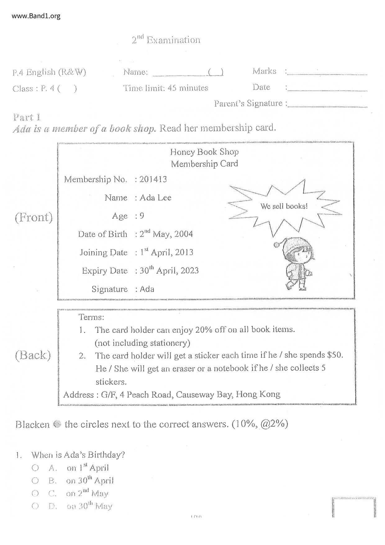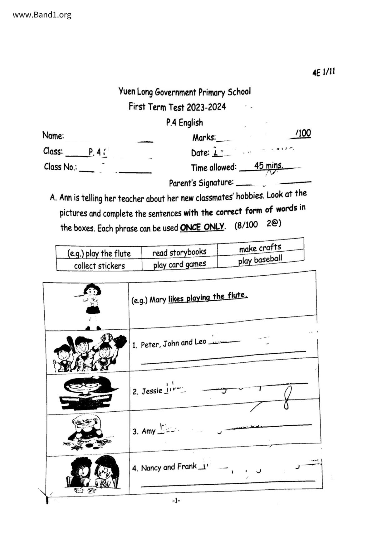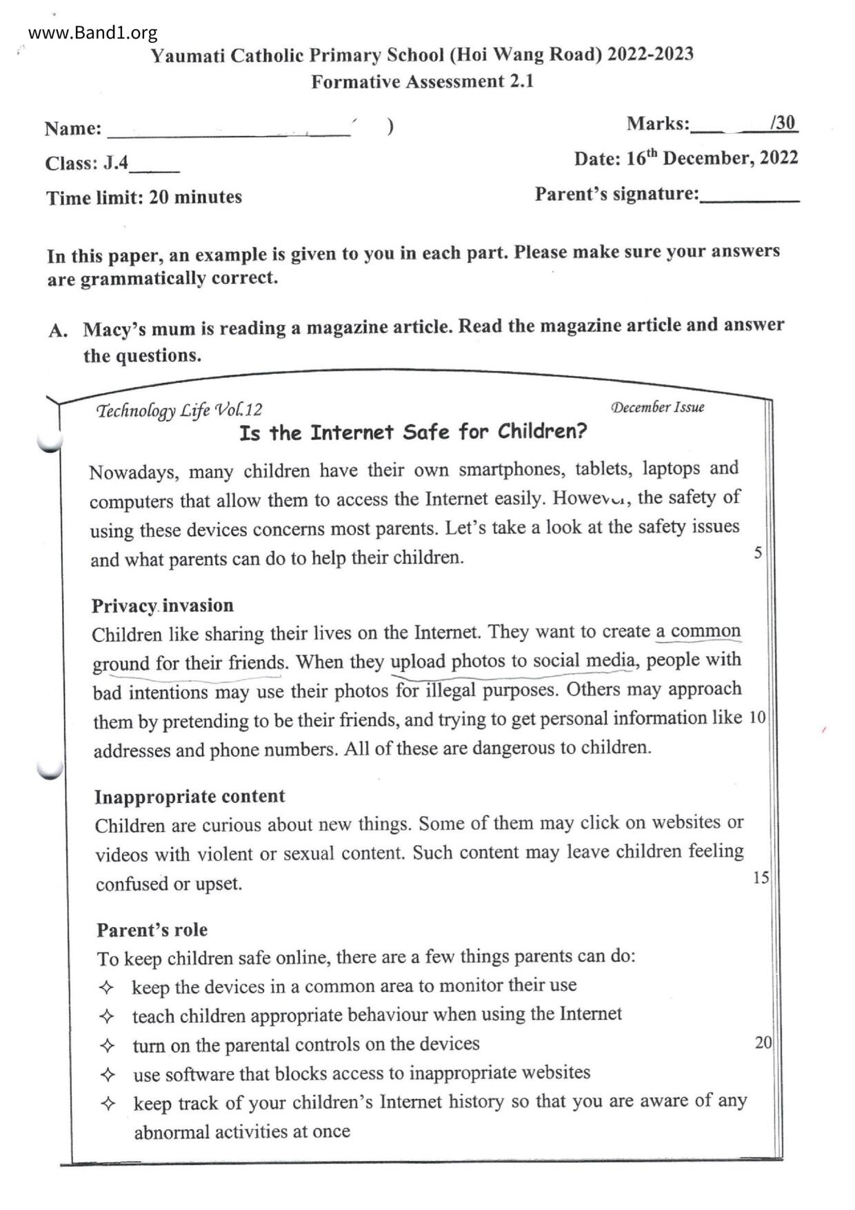 小四 英文 香港九龍塘基督教中華宣道會台山陳元喜小學