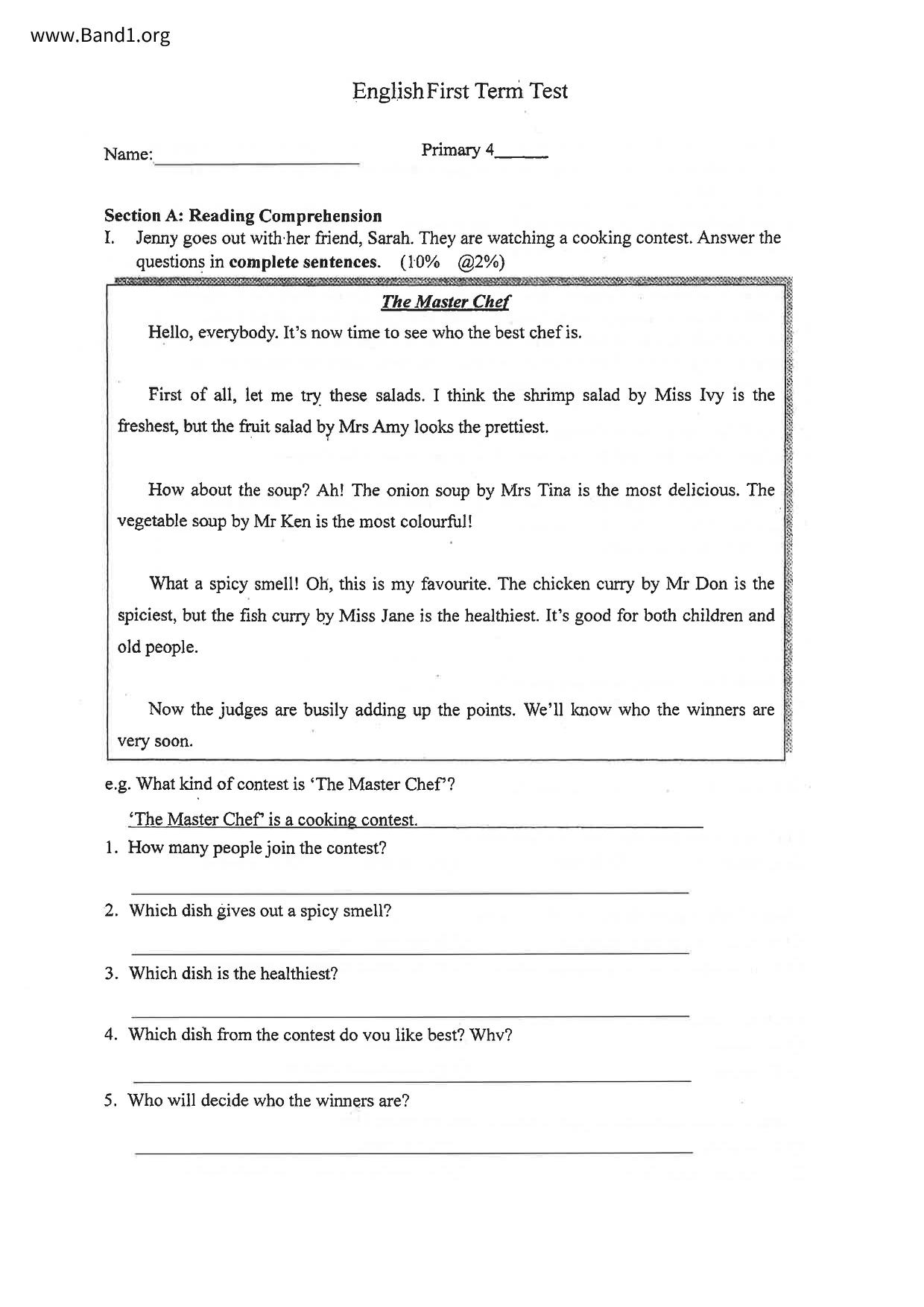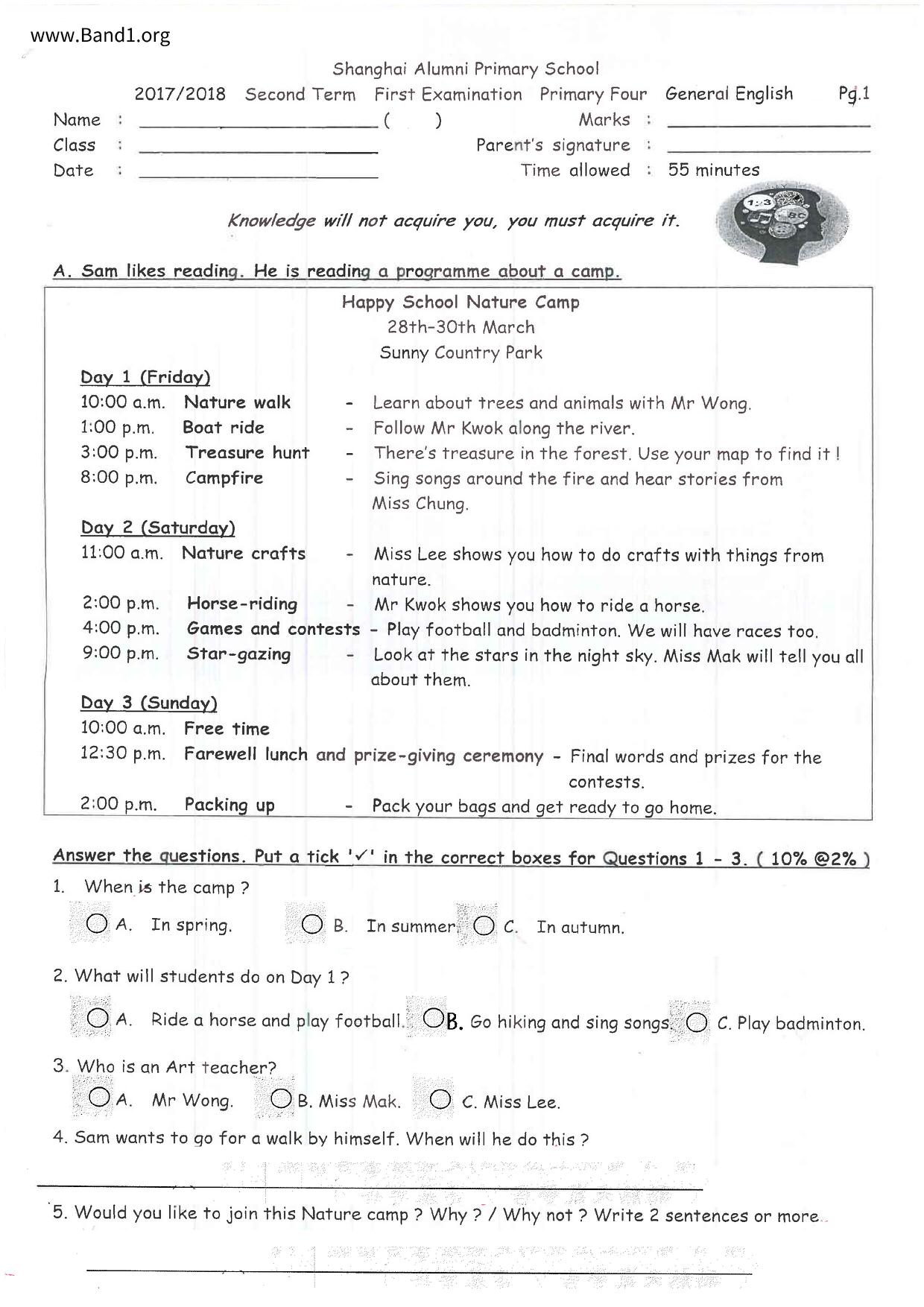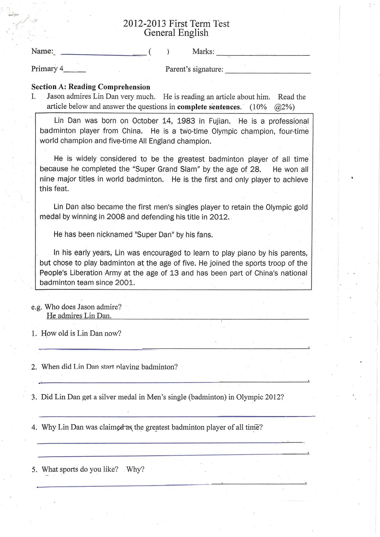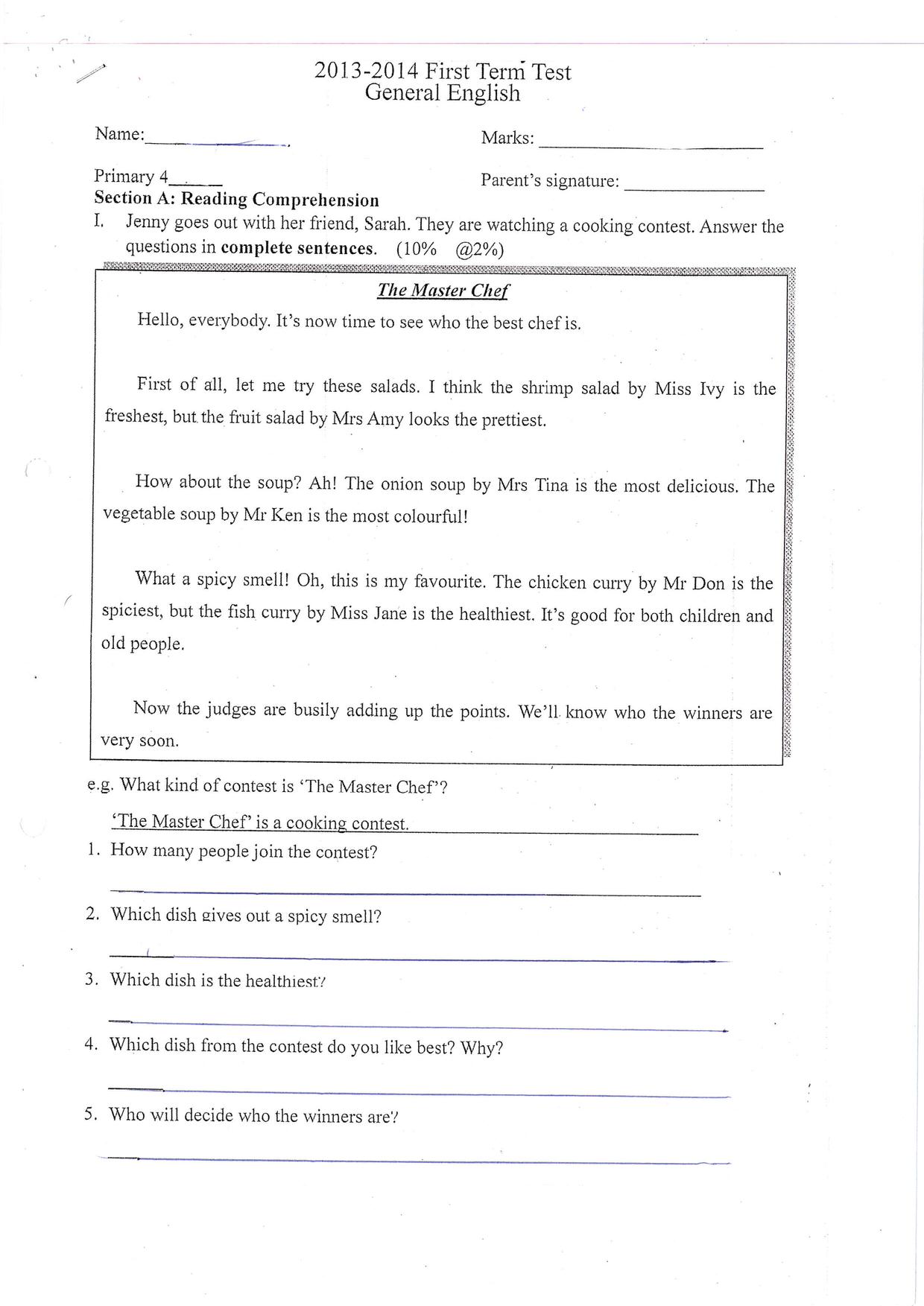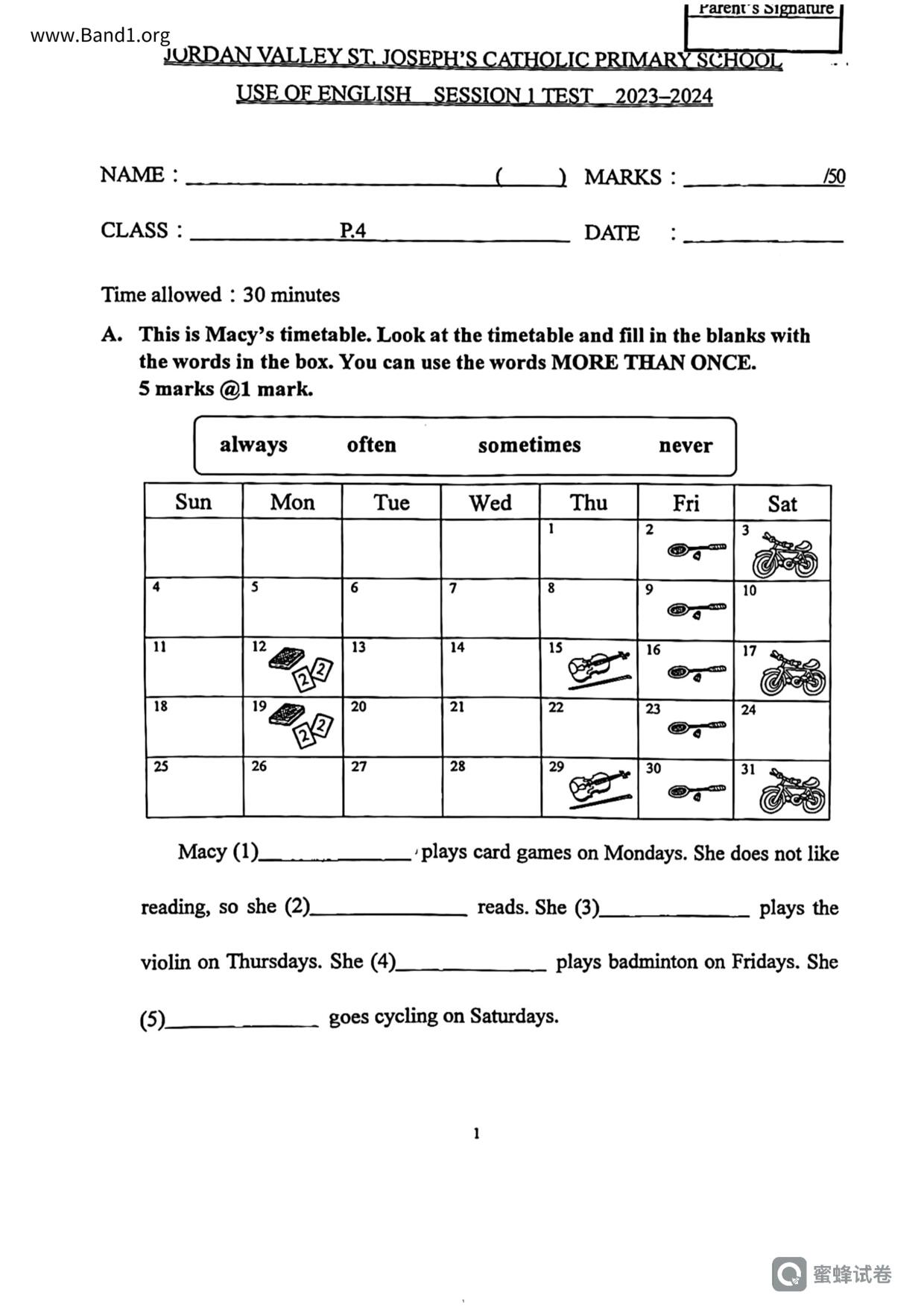 小四 英文 香港九龍塘基督教中華宣道會台山陳元喜小學