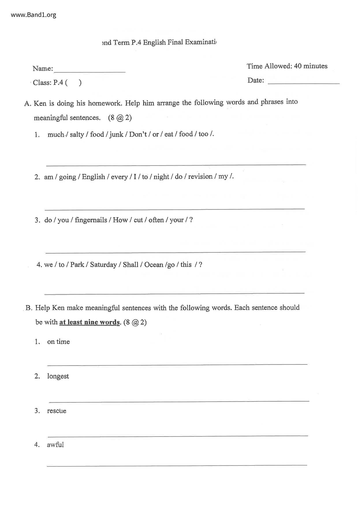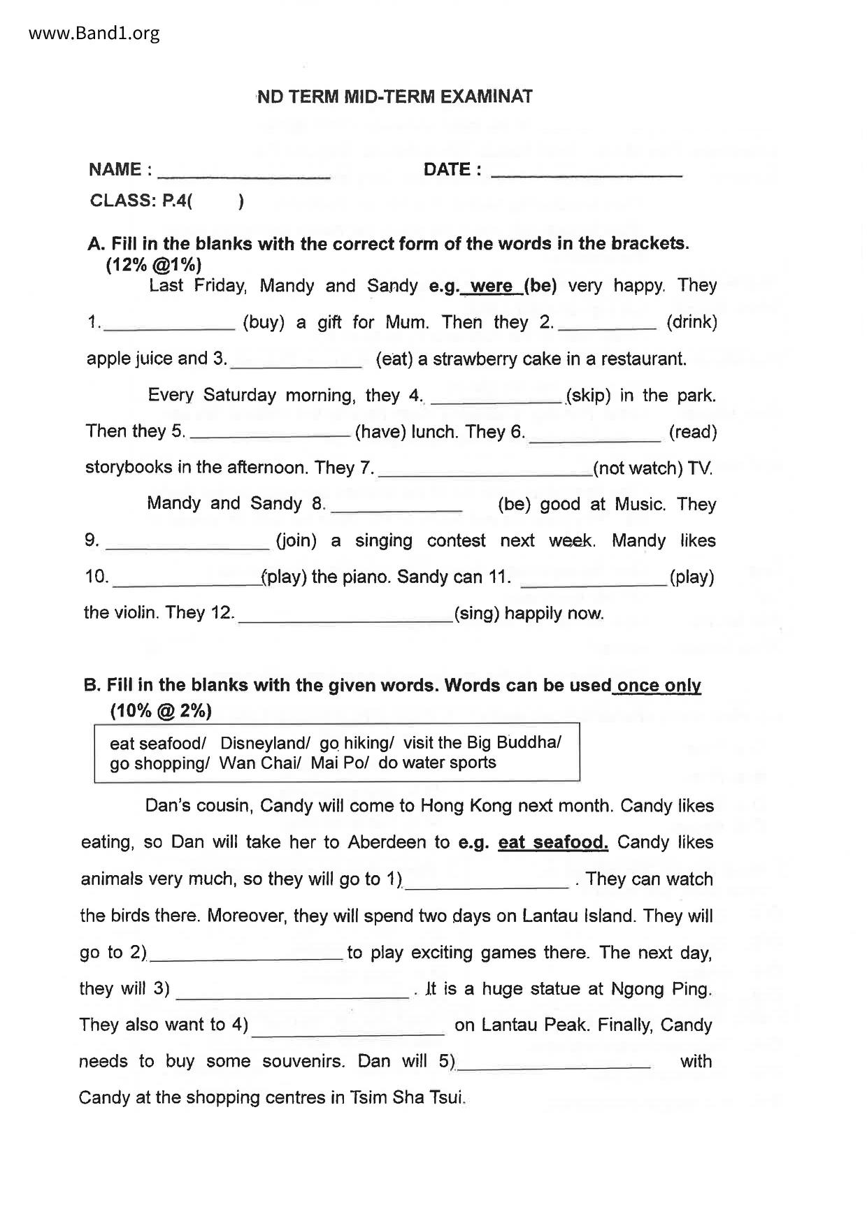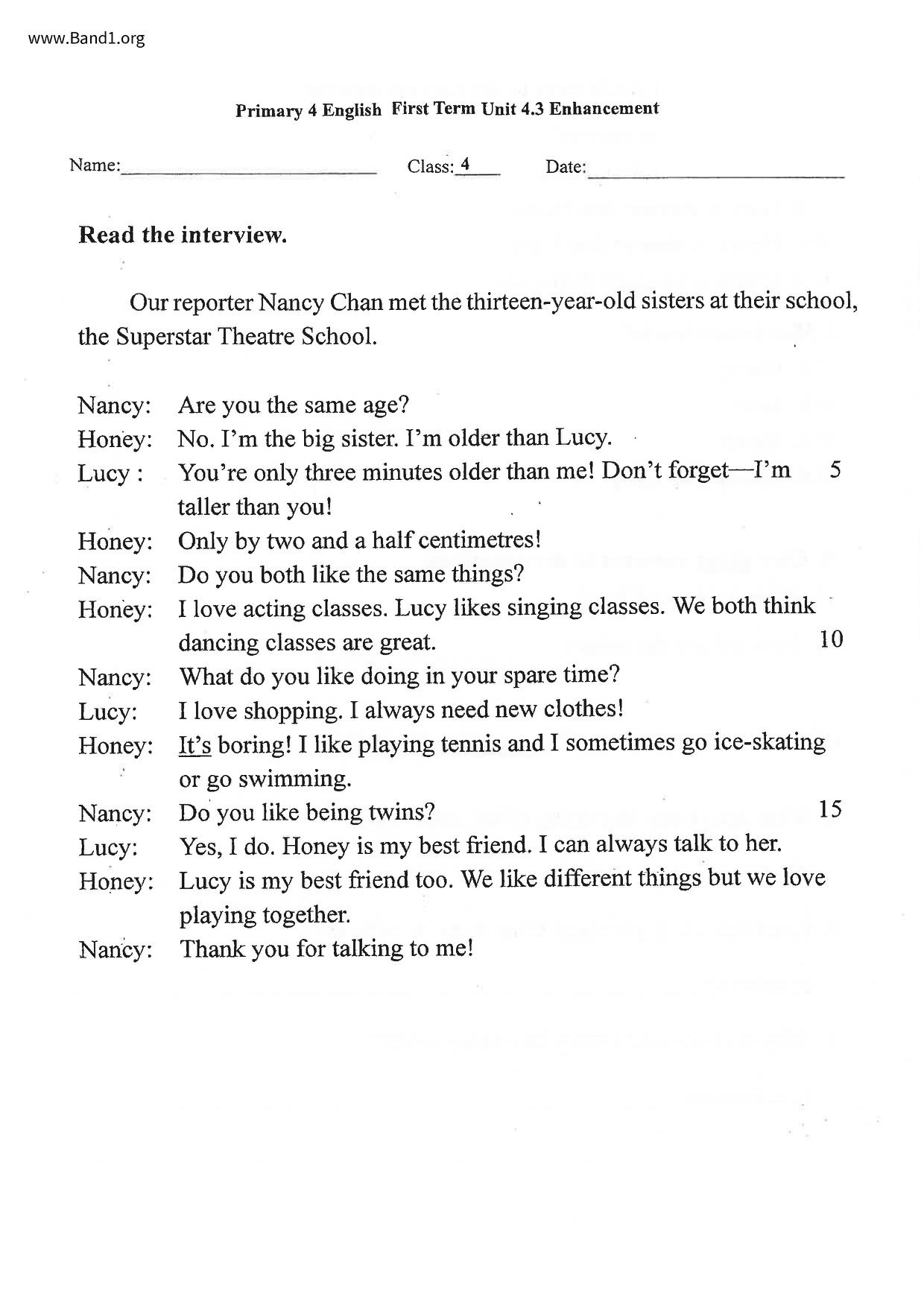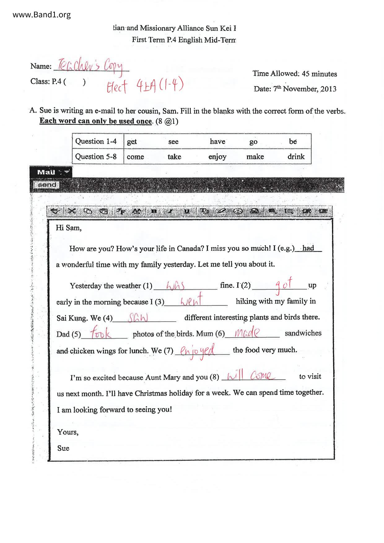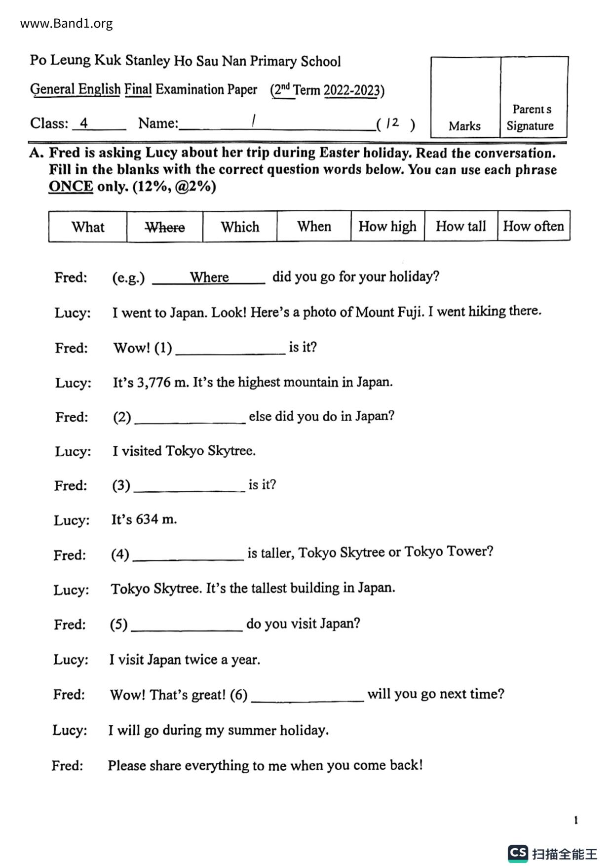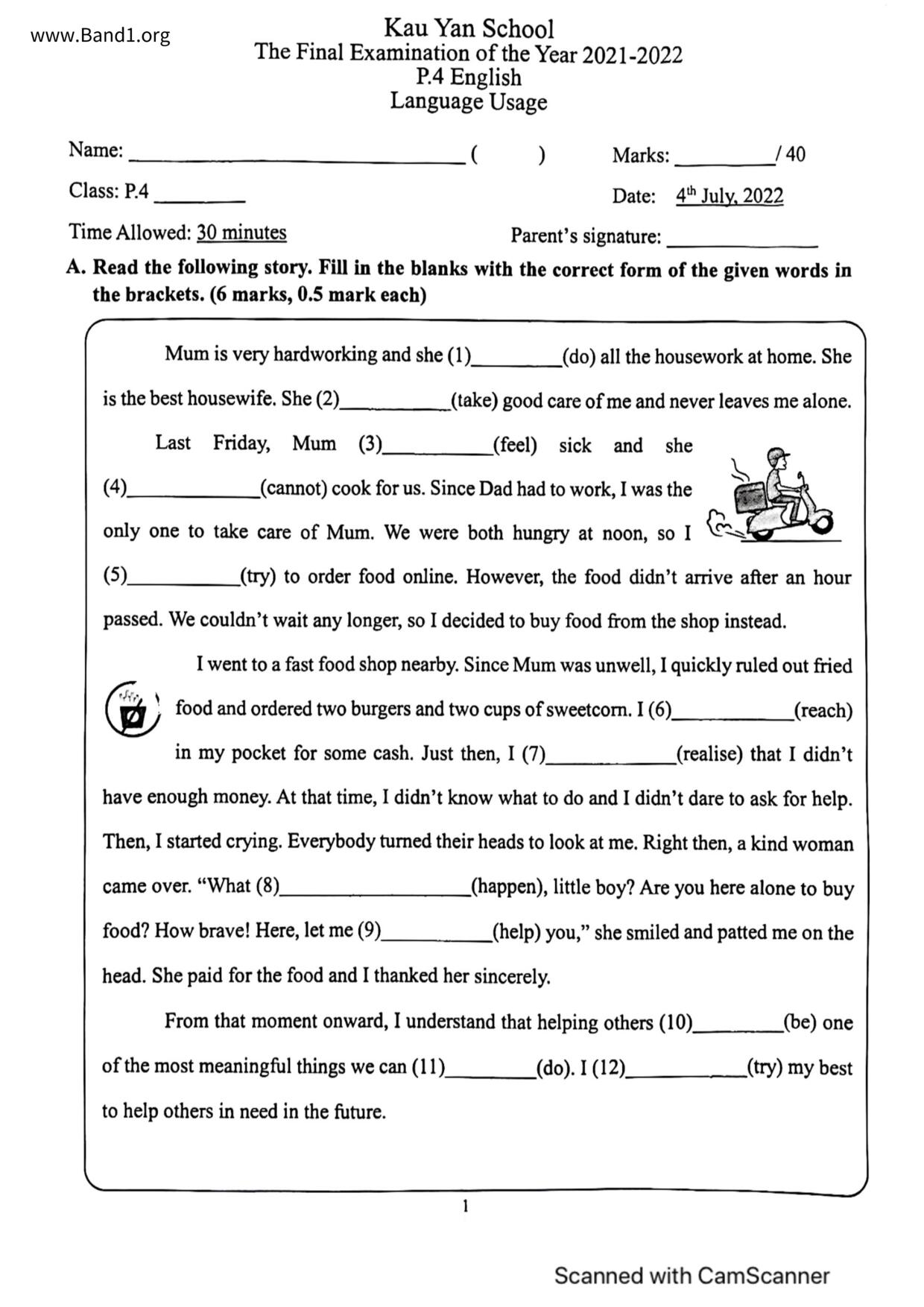 小四 英文 香港九龍塘基督教中華宣道會台山陳元喜小學