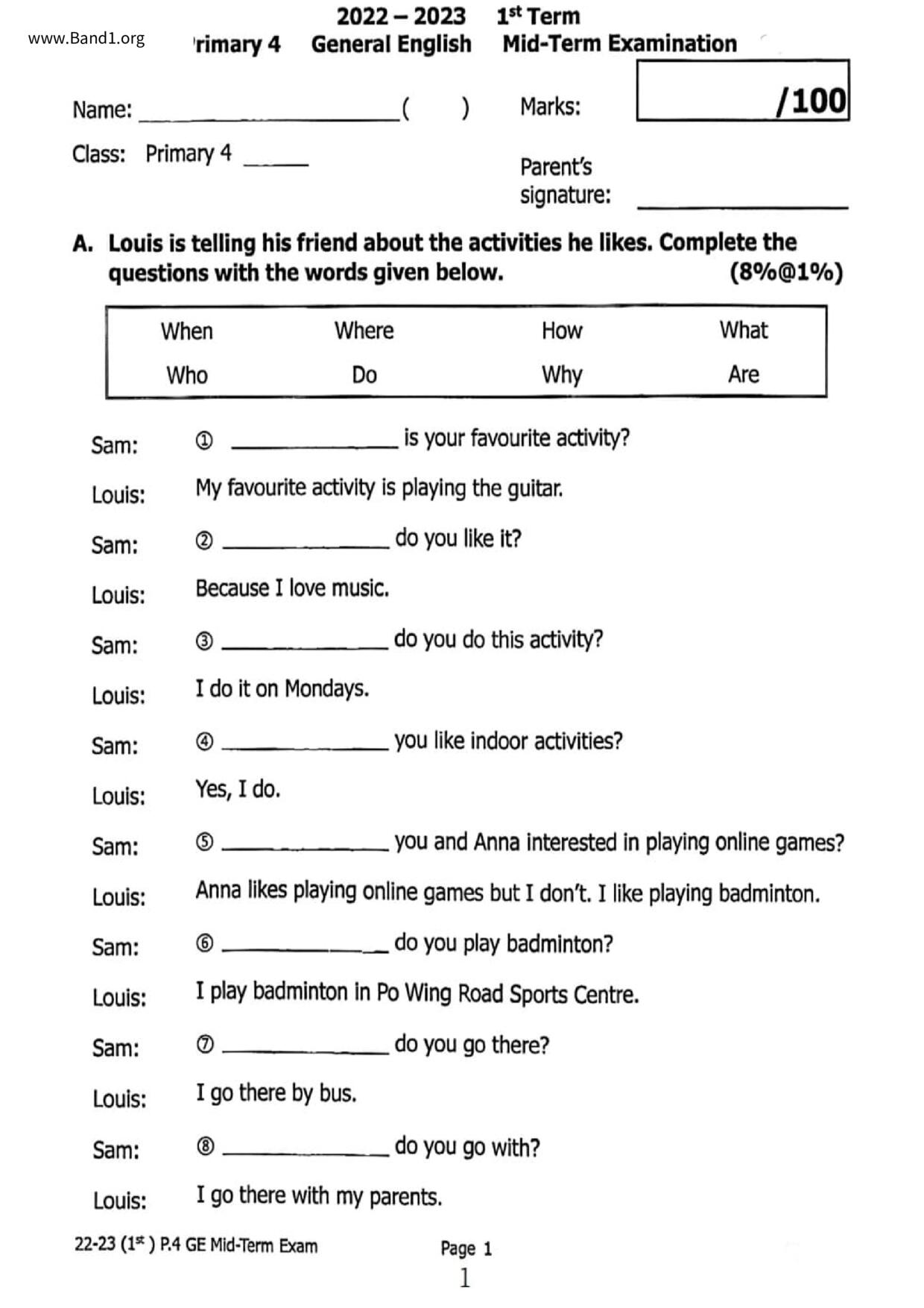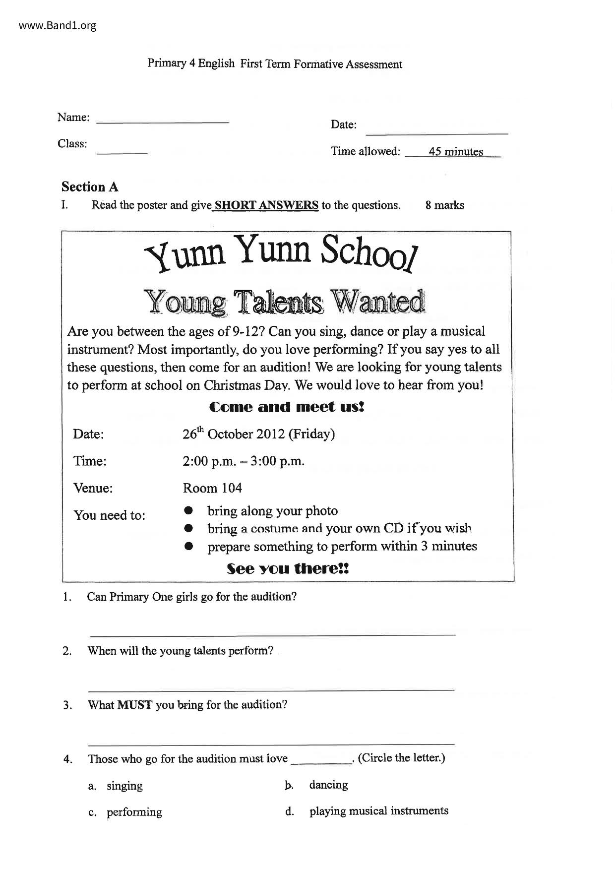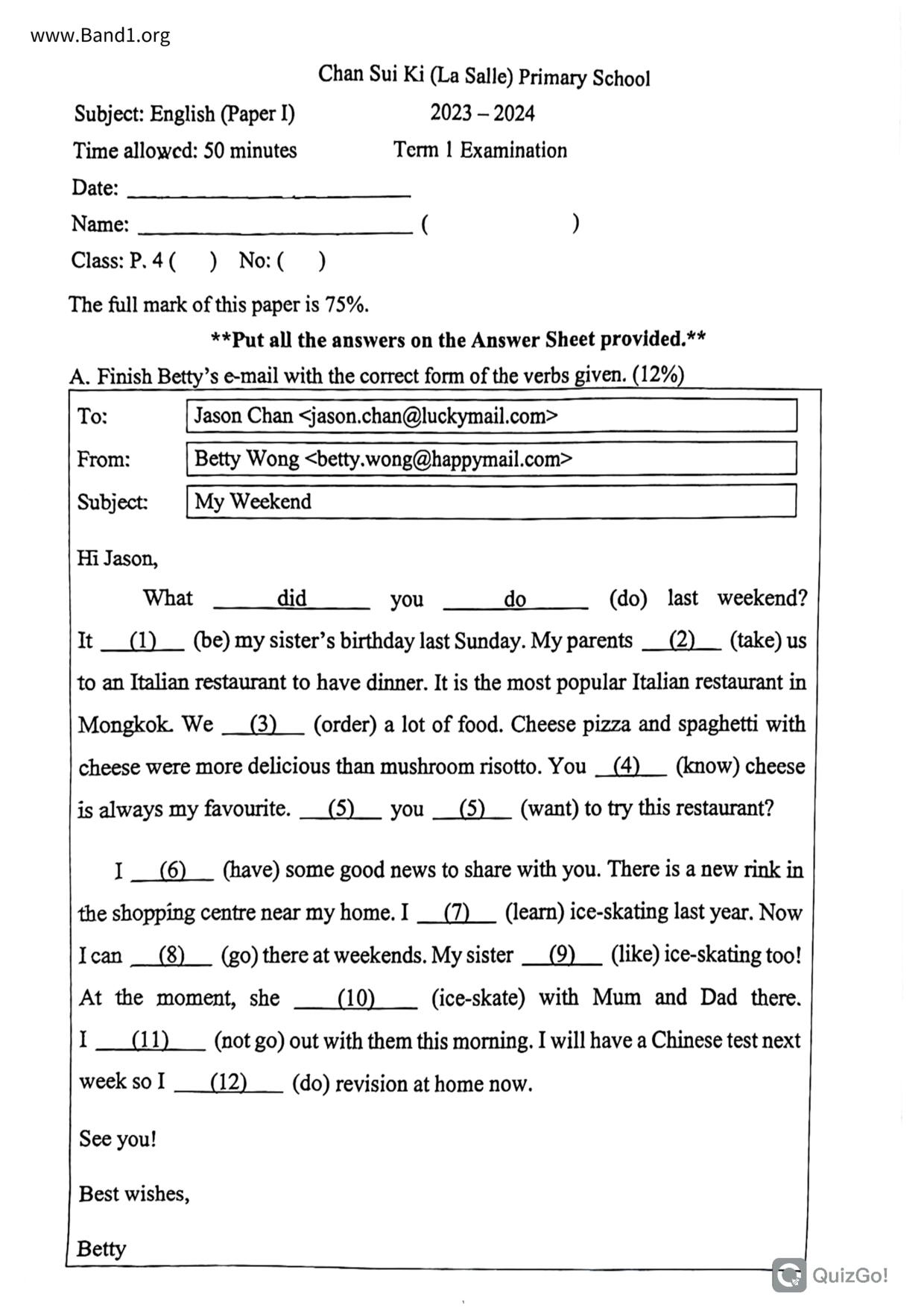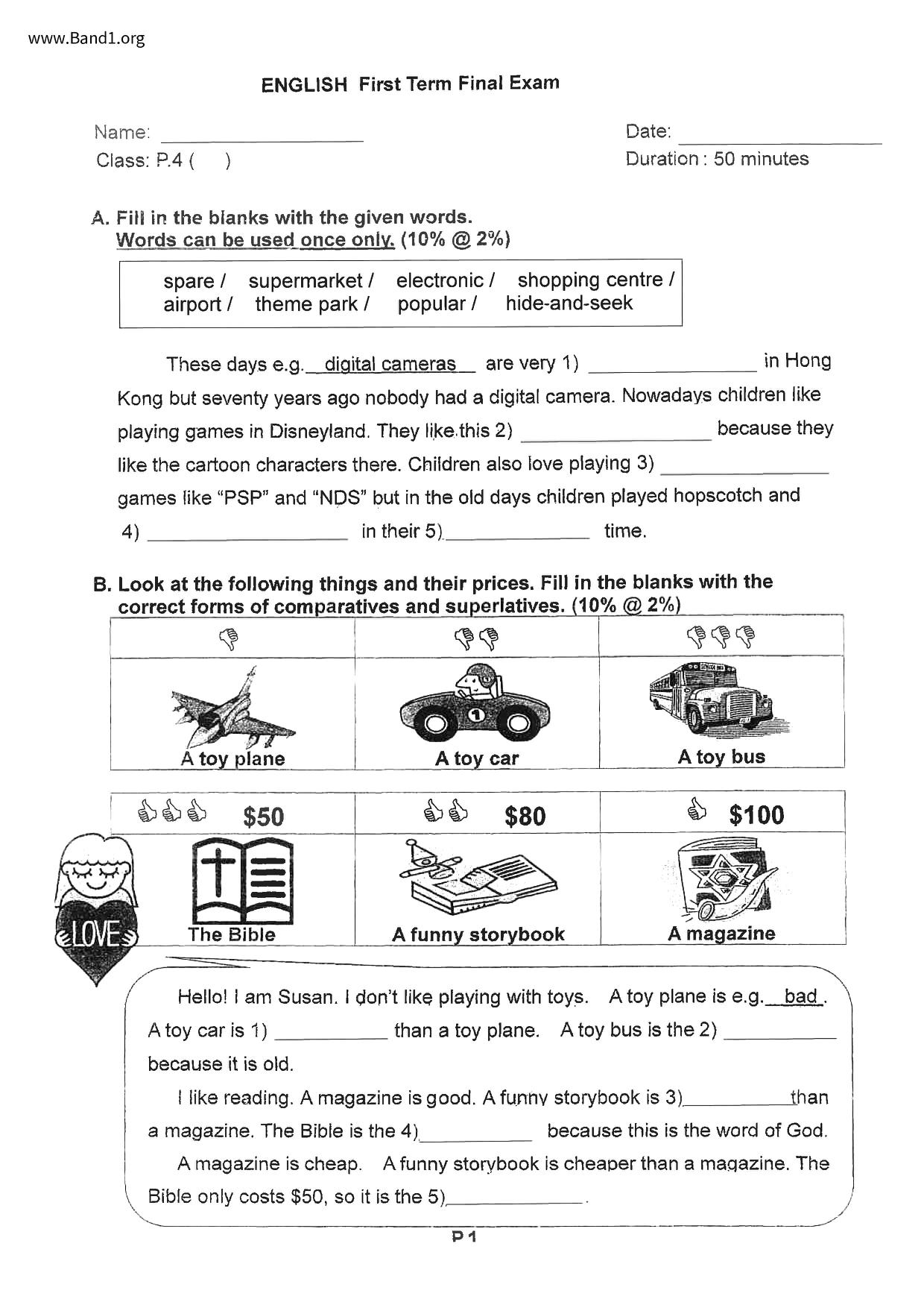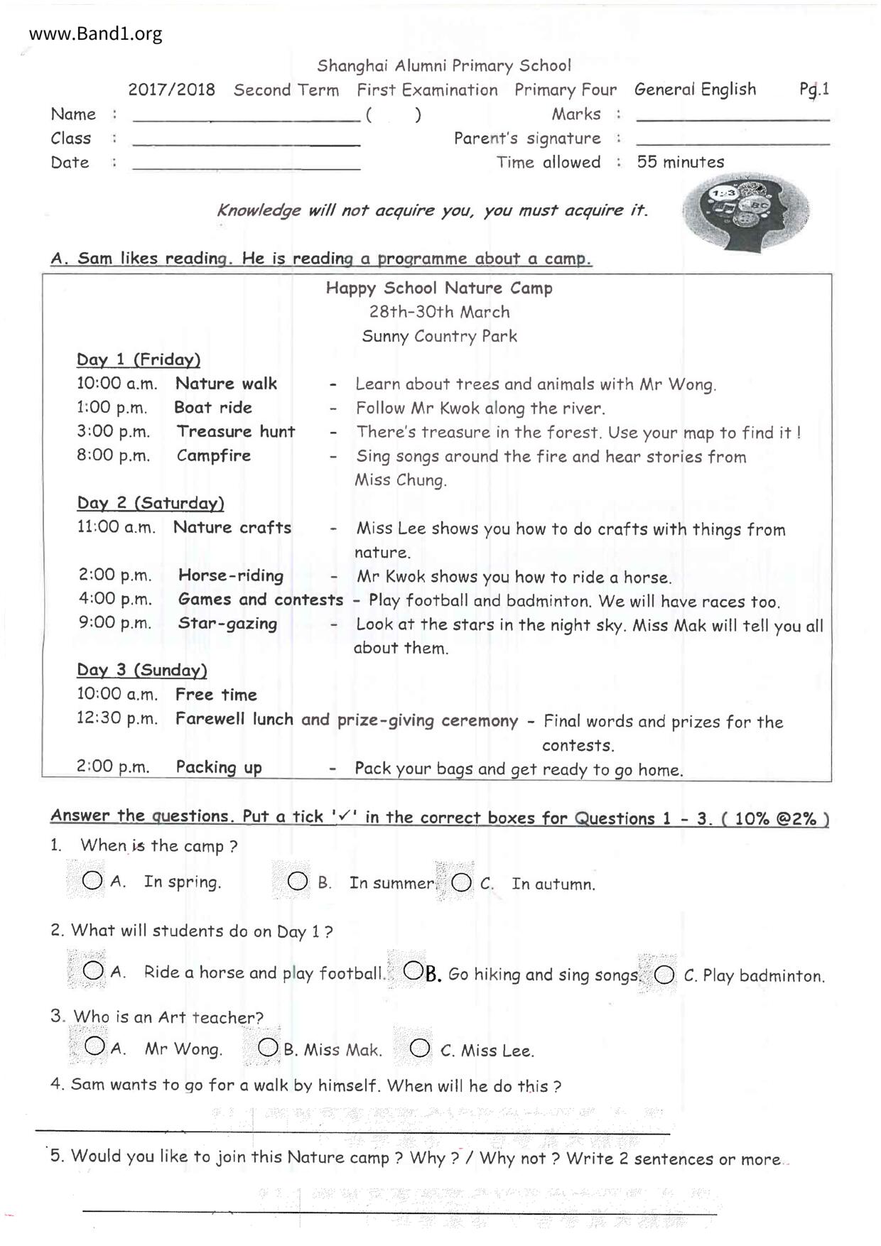 小四 英文 香港九龍塘基督教中華宣道會台山陳元喜小學