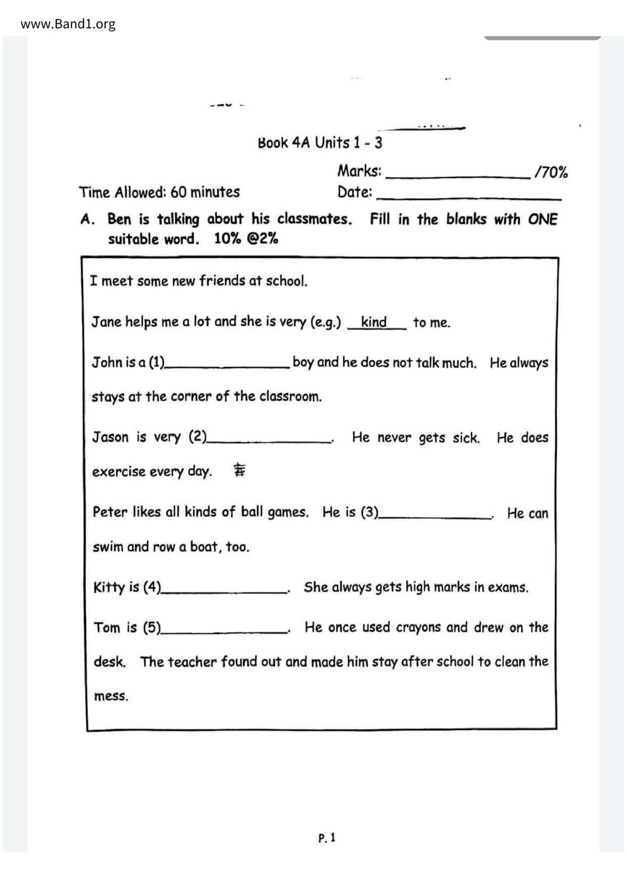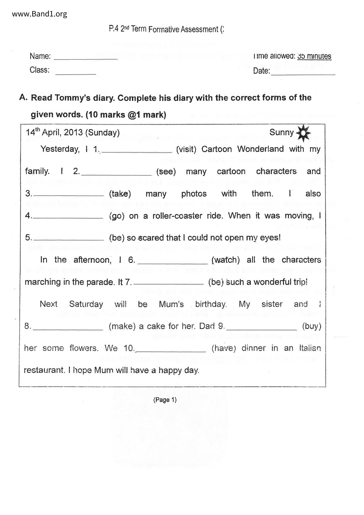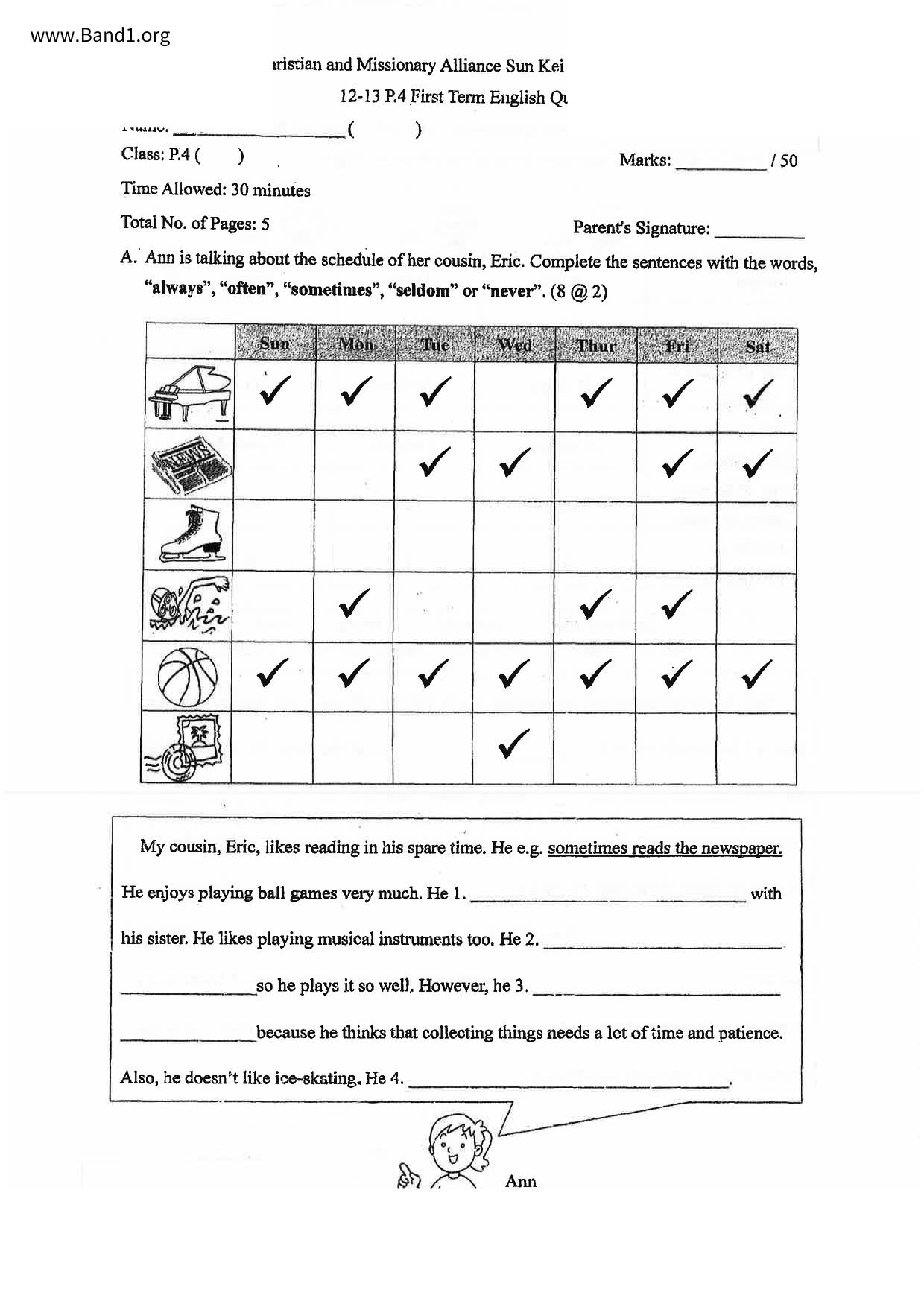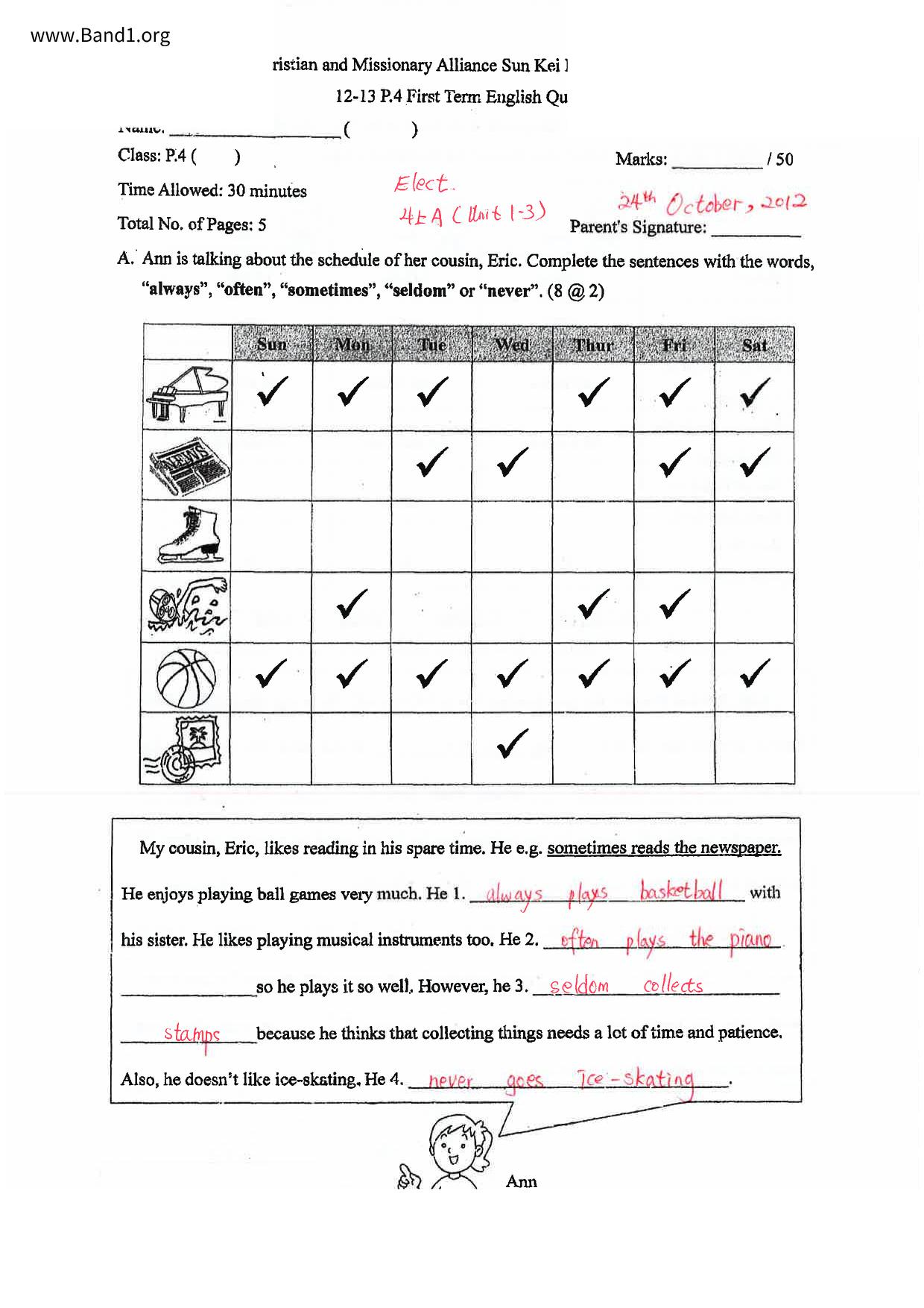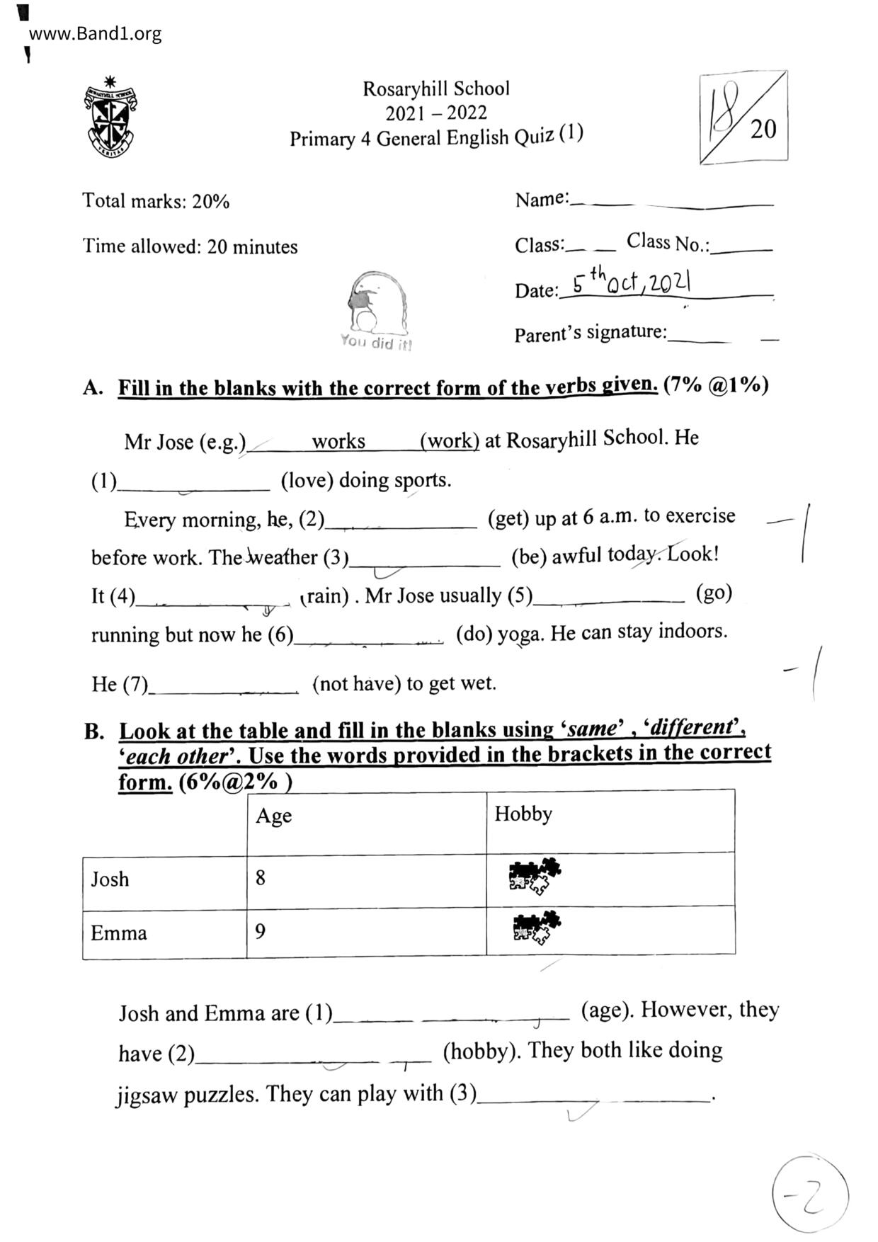 小四 英文 香港九龍塘基督教中華宣道會台山陳元喜小學
