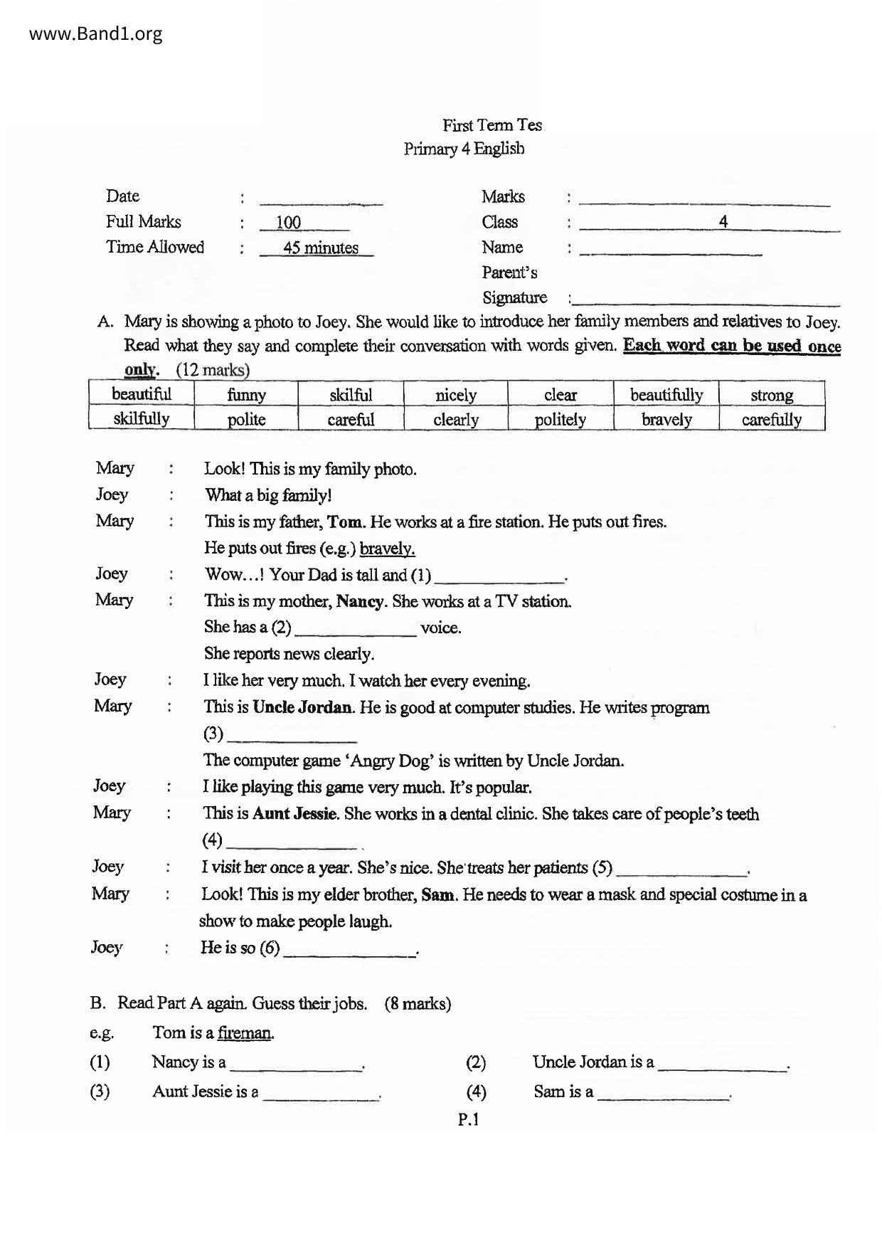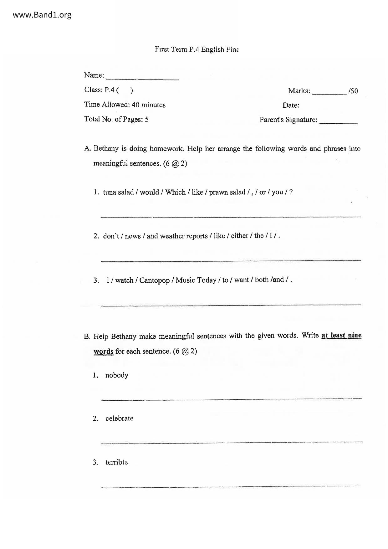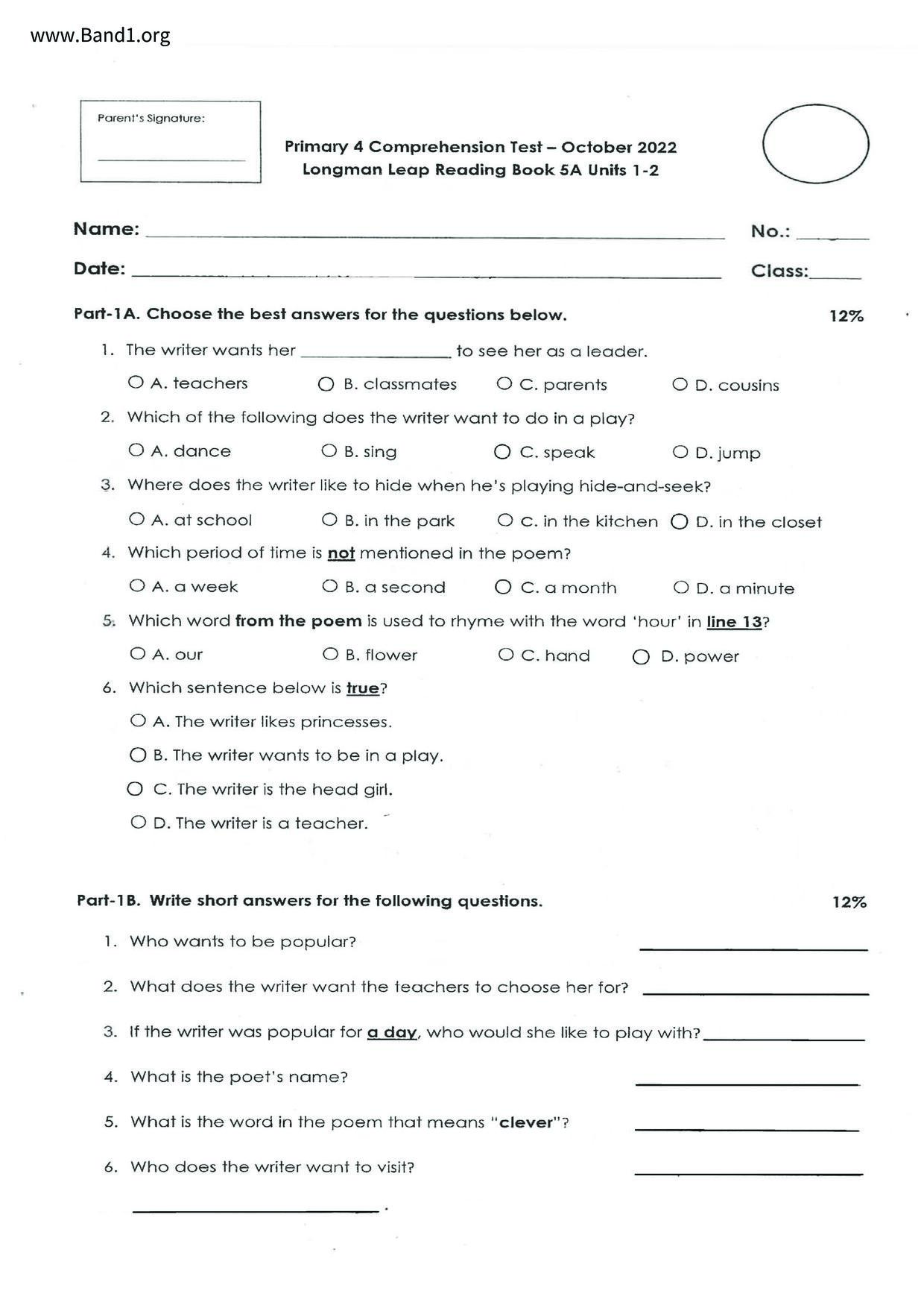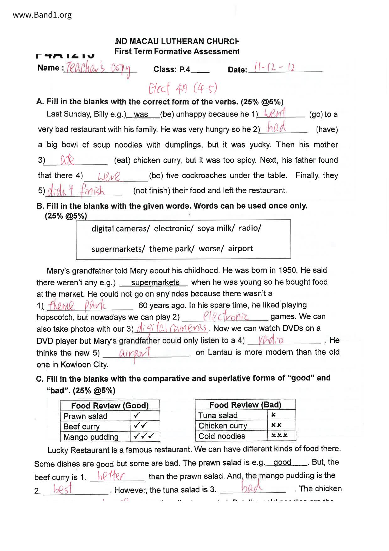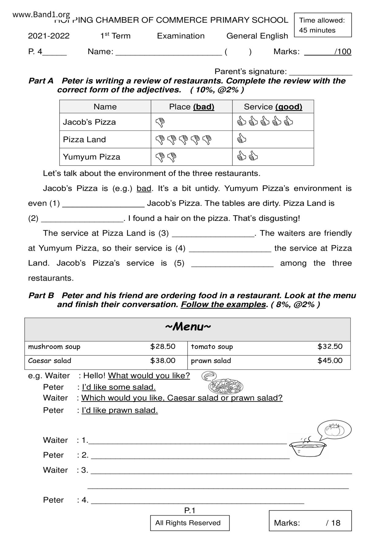小四 英文 香港九龍塘基督教中華宣道會台山陳元喜小學