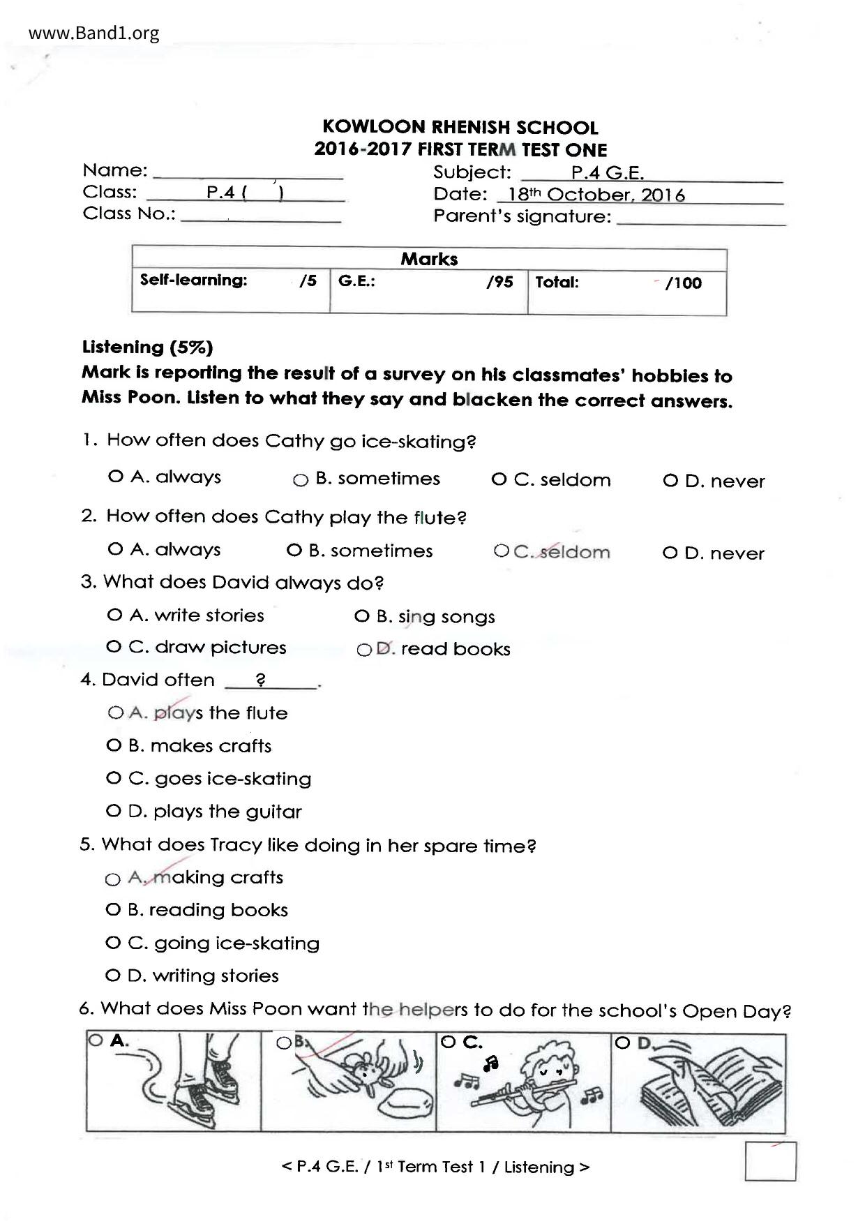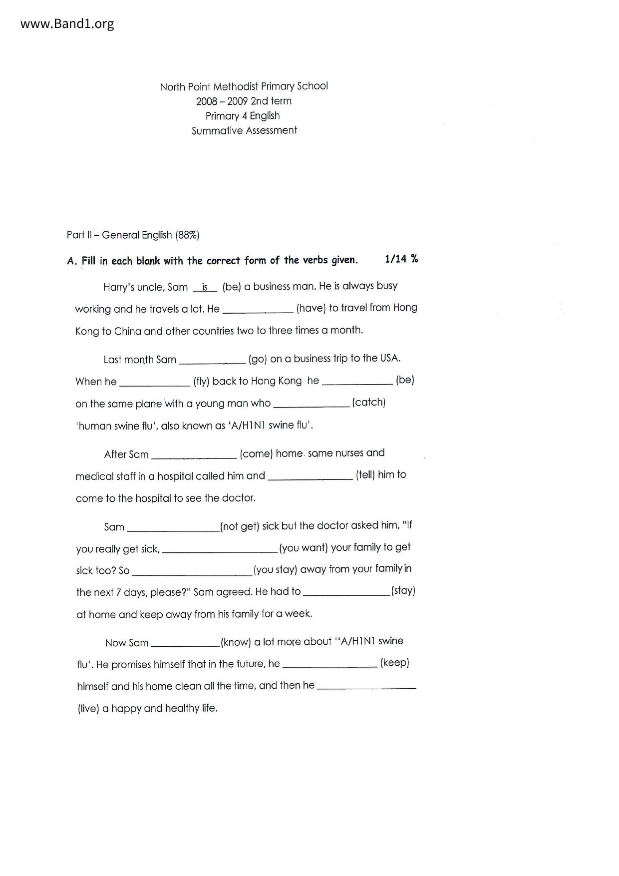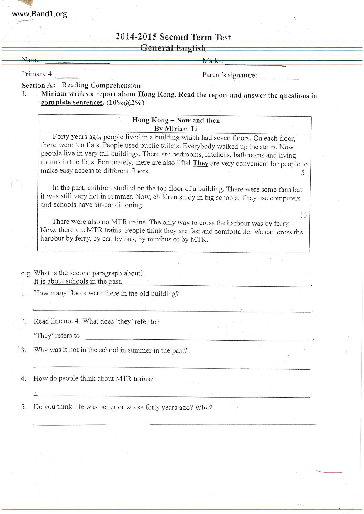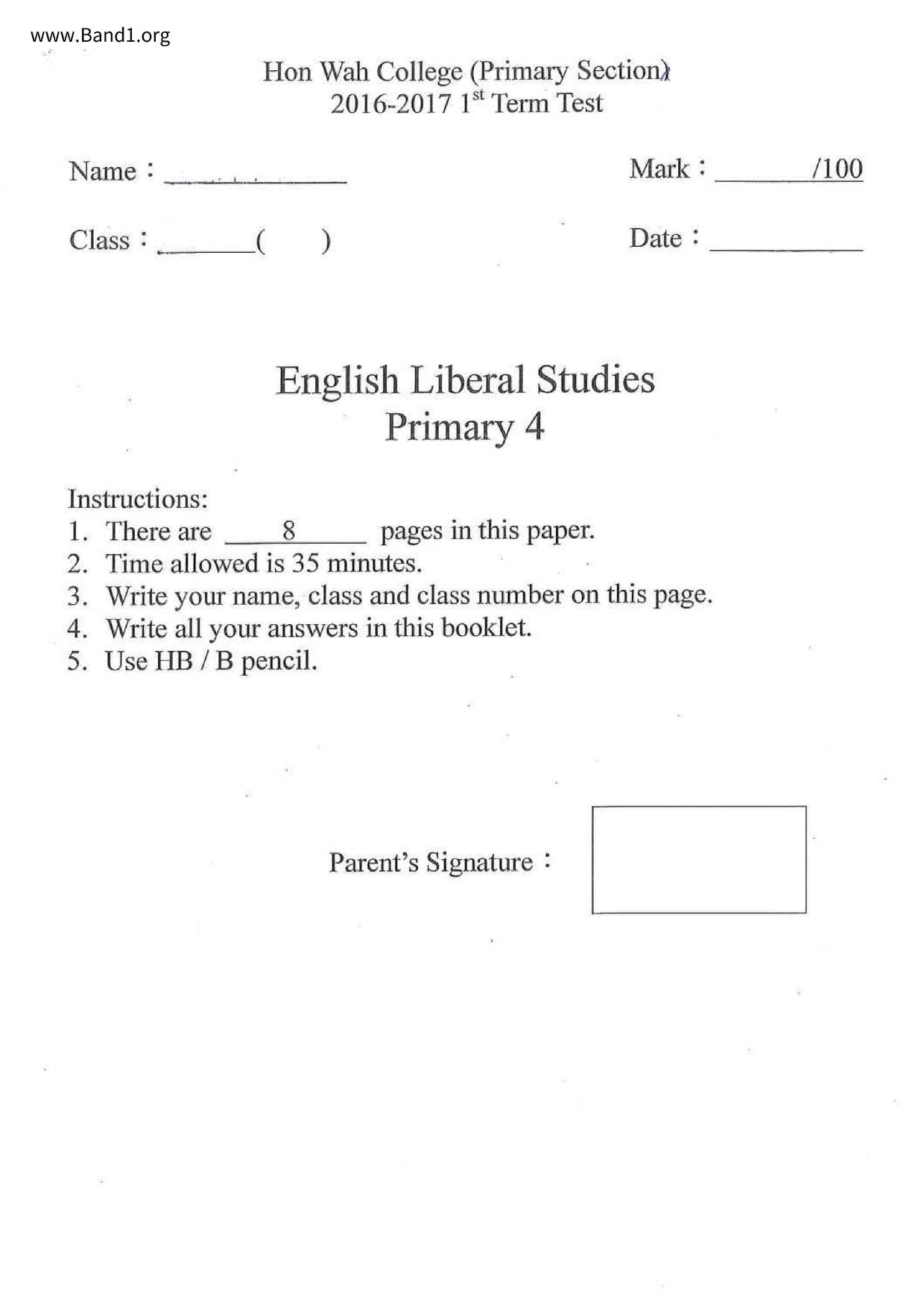 小四 英文 軒尼詩道官立小學(銅鑼灣)
