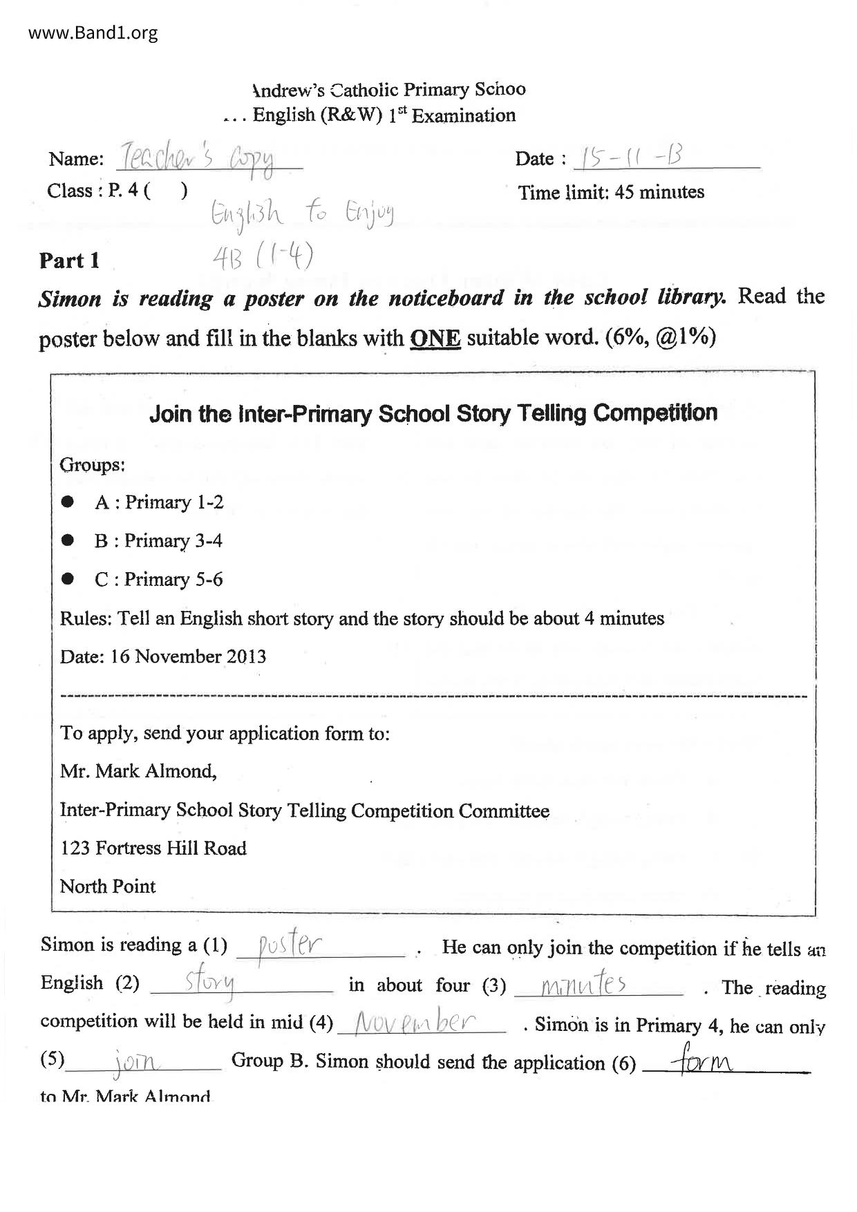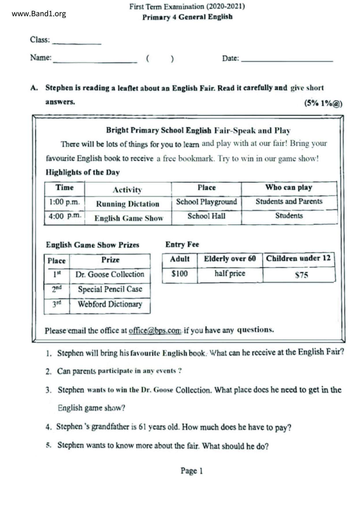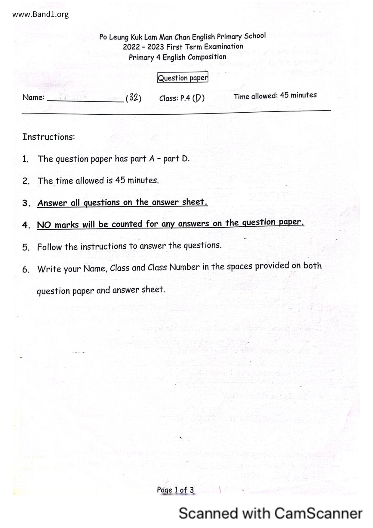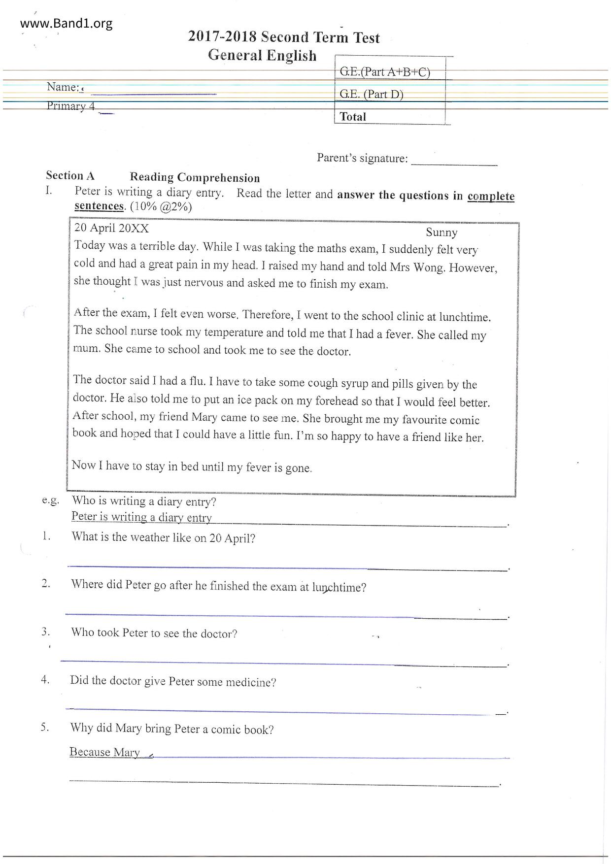小四 英文 軒尼詩道官立小學(銅鑼灣)