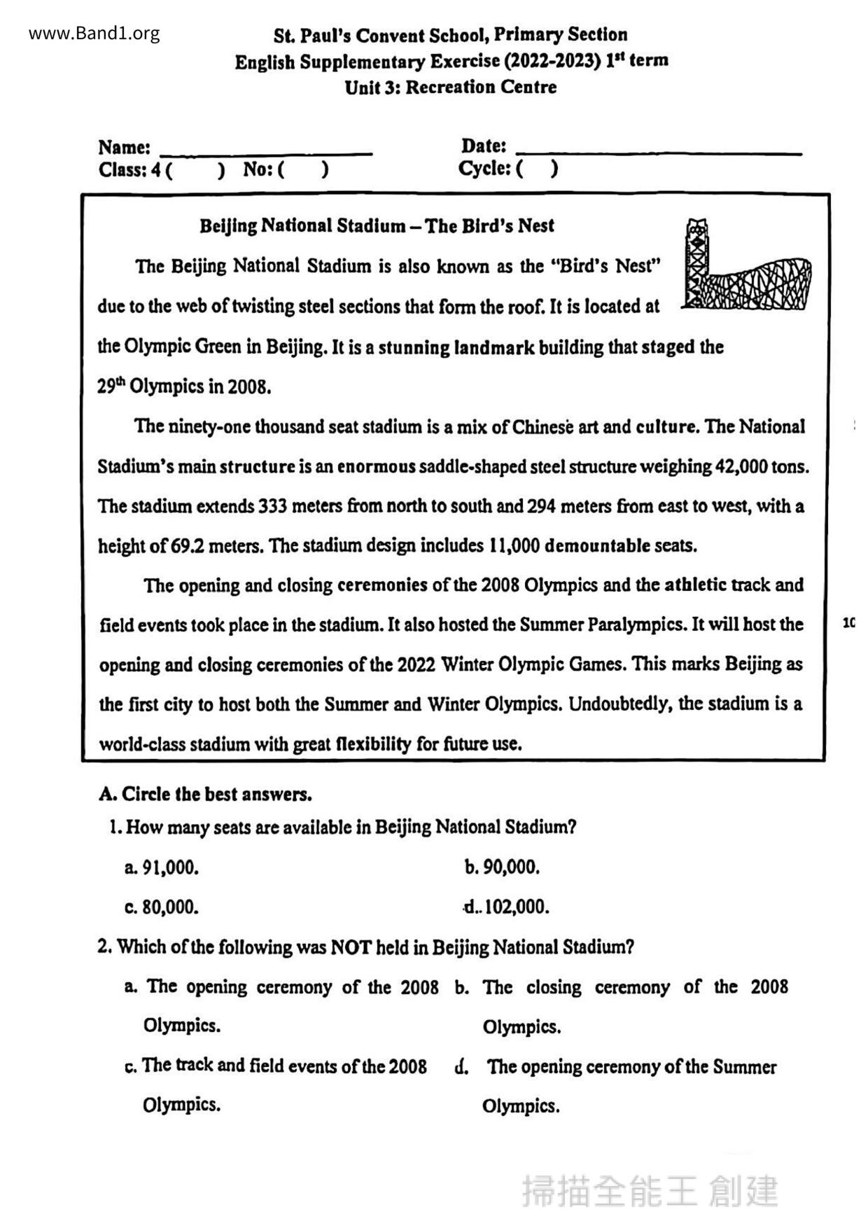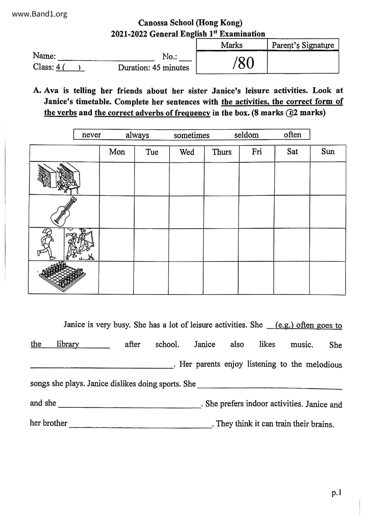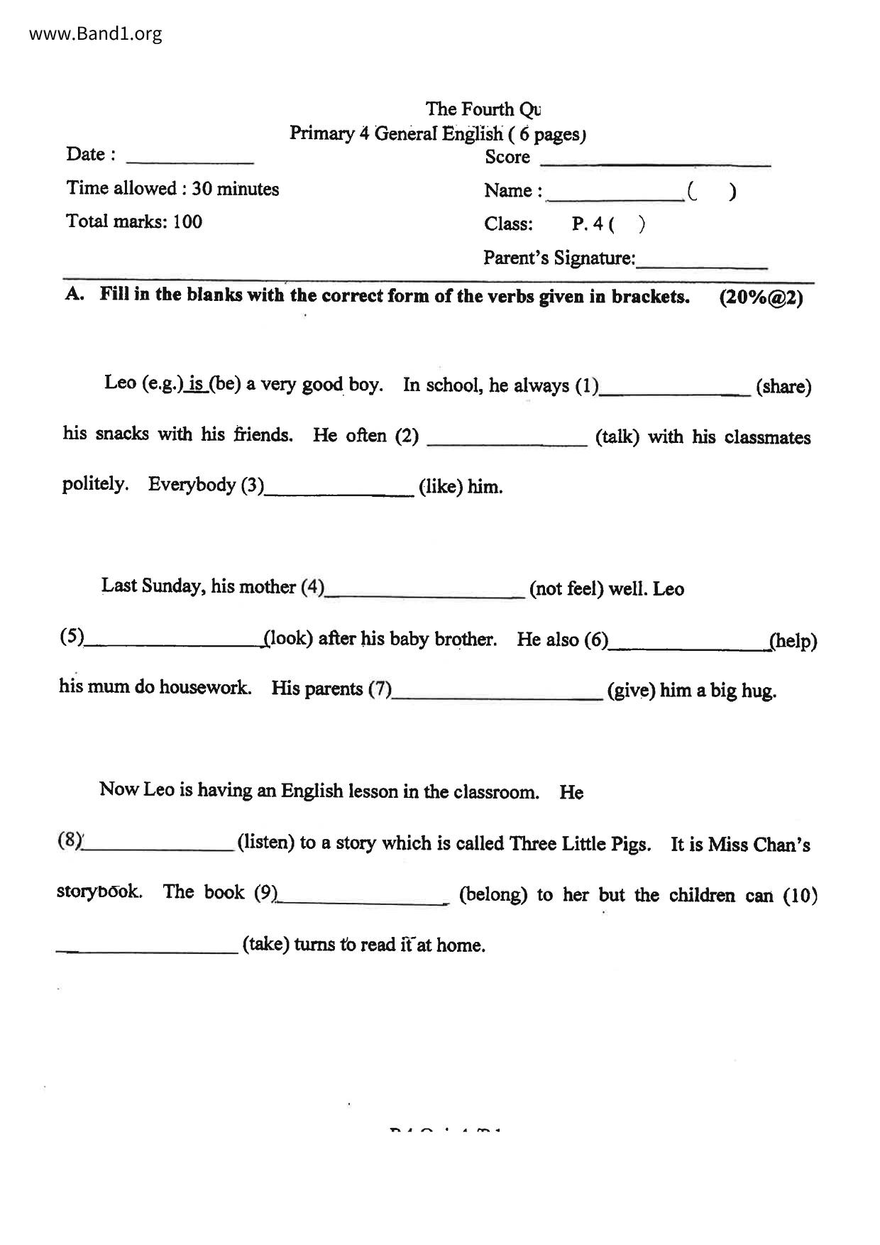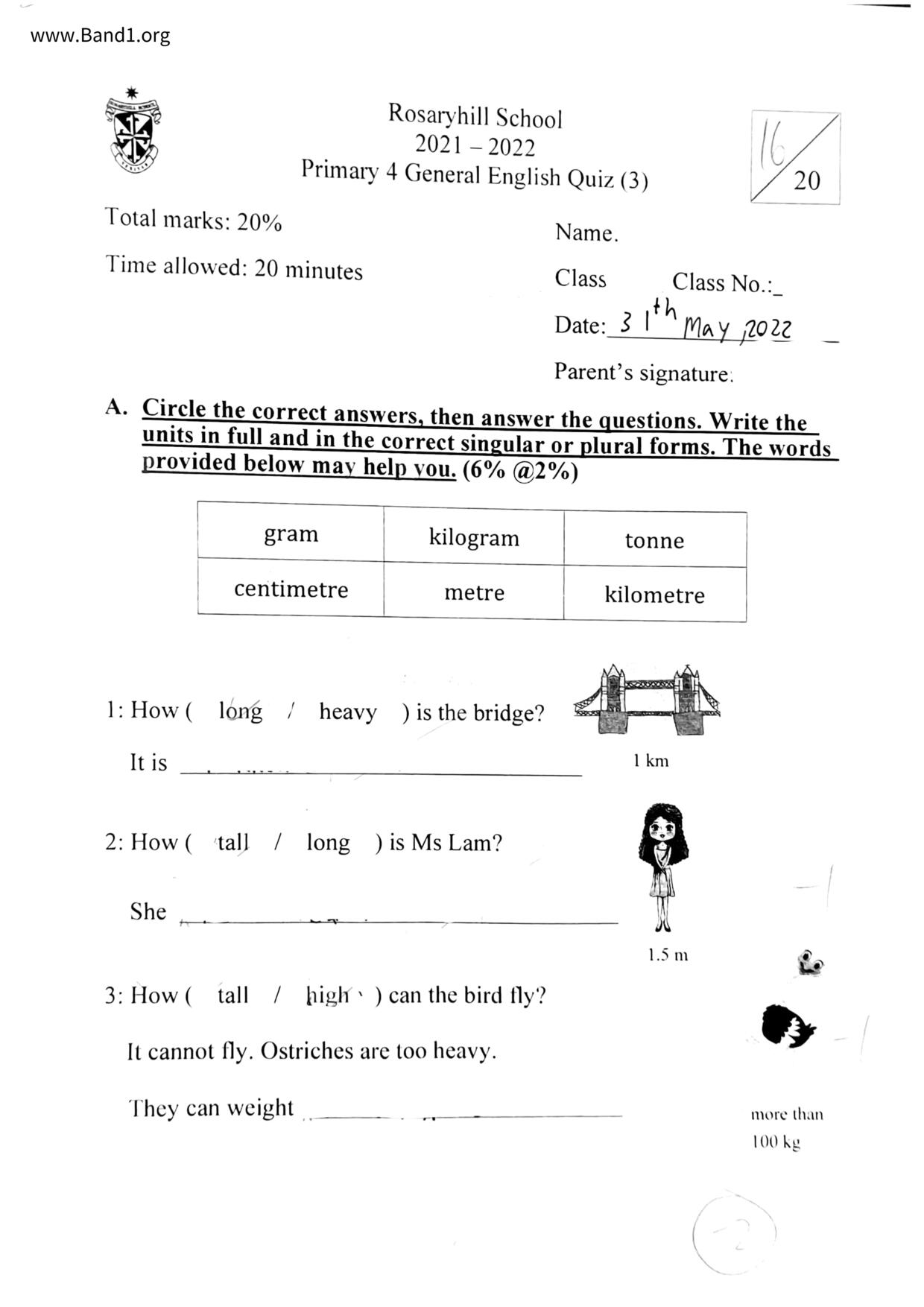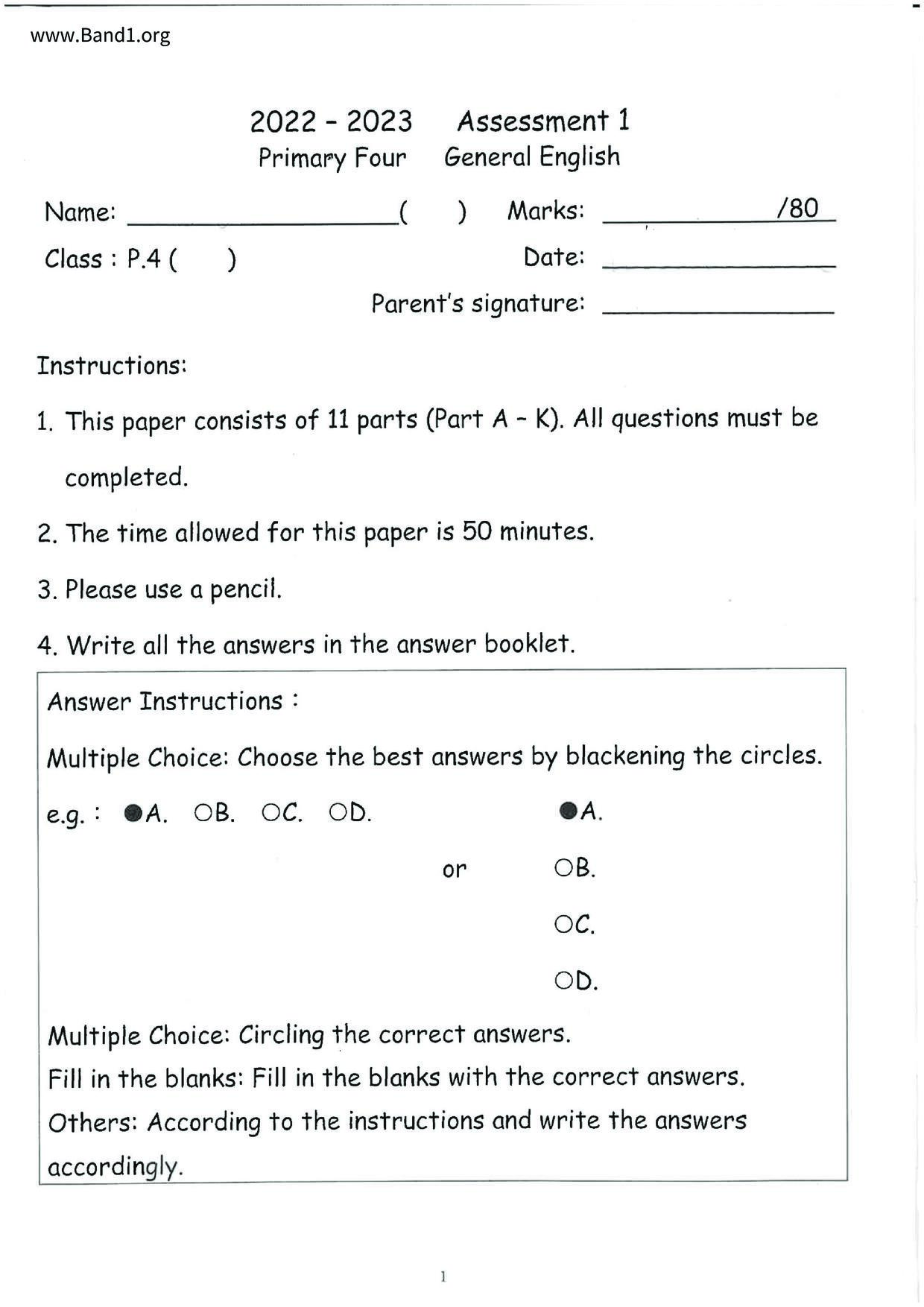小四 英文 軒尼詩道官立小學(銅鑼灣)