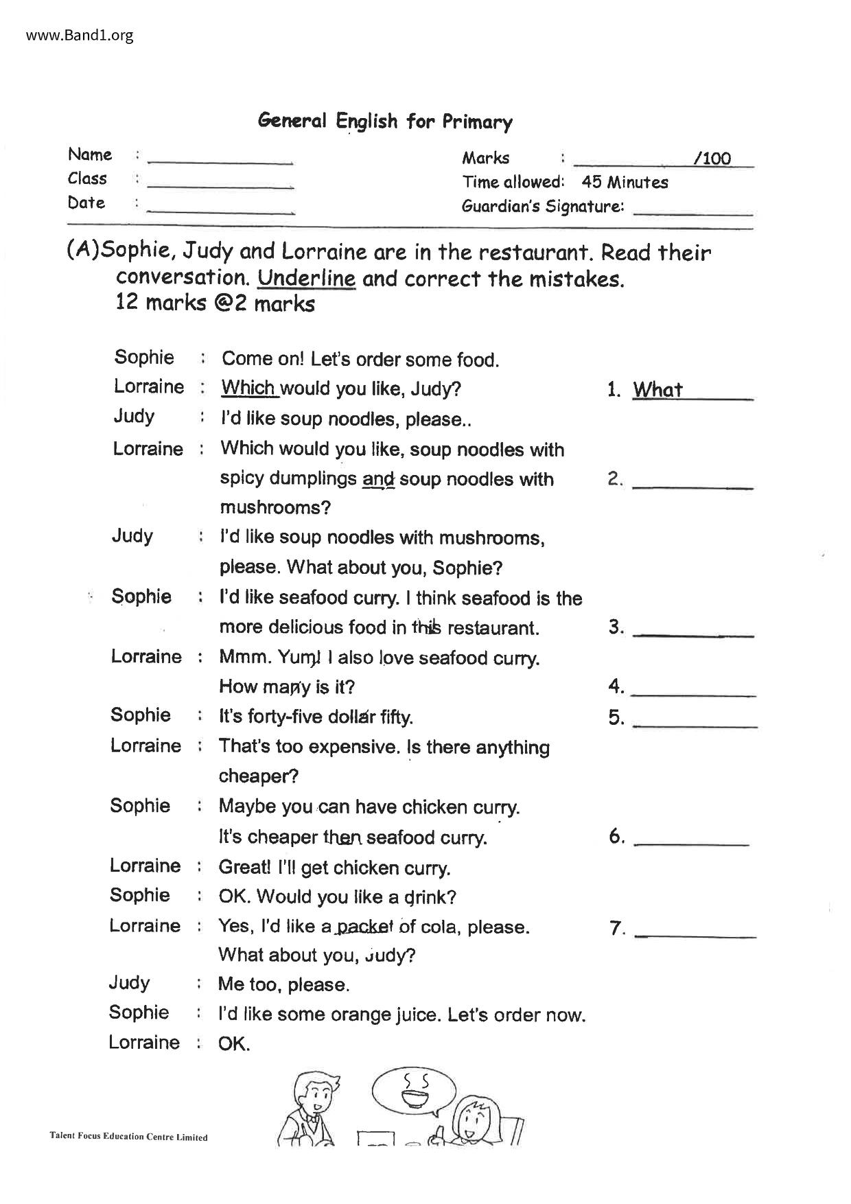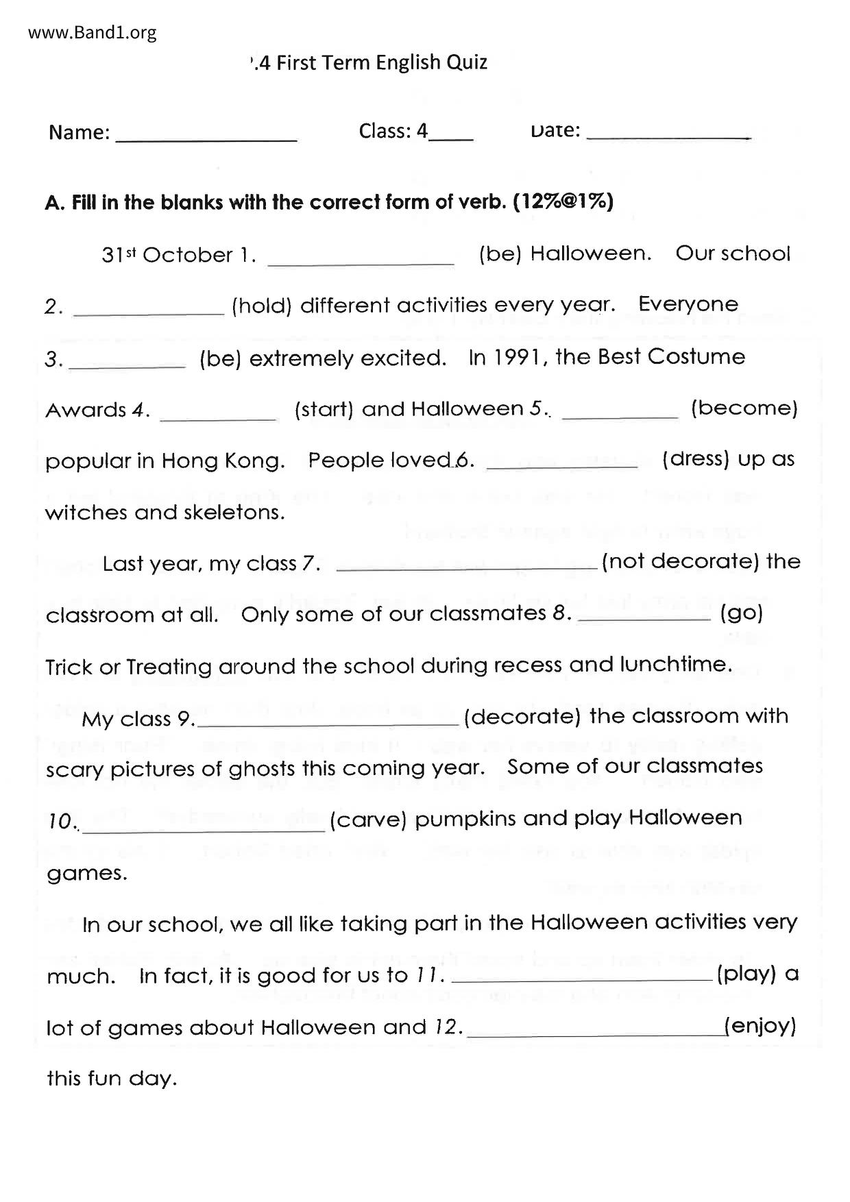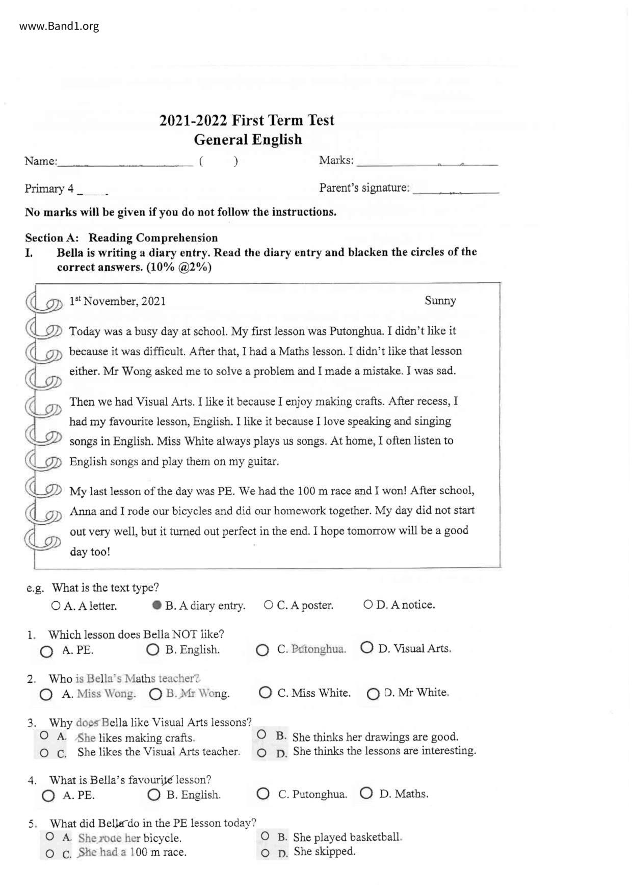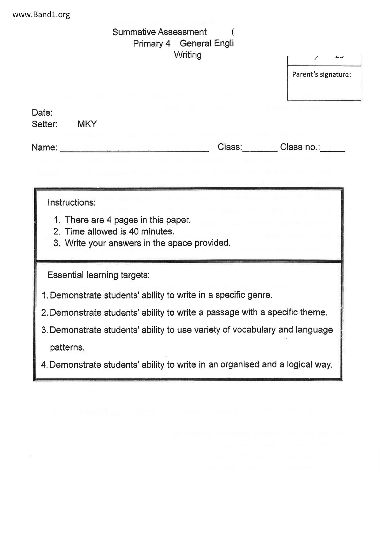 小四 英文 軒尼詩道官立小學(銅鑼灣)