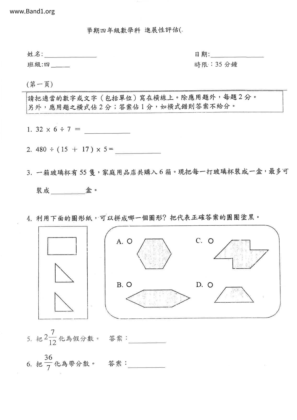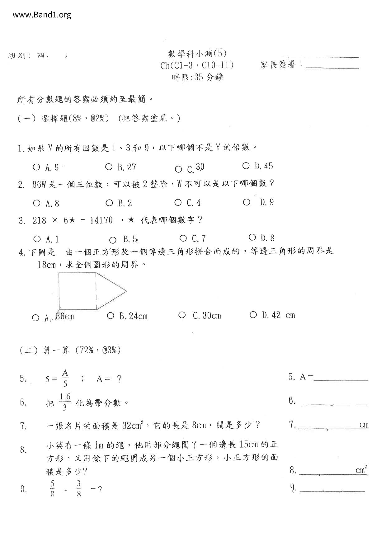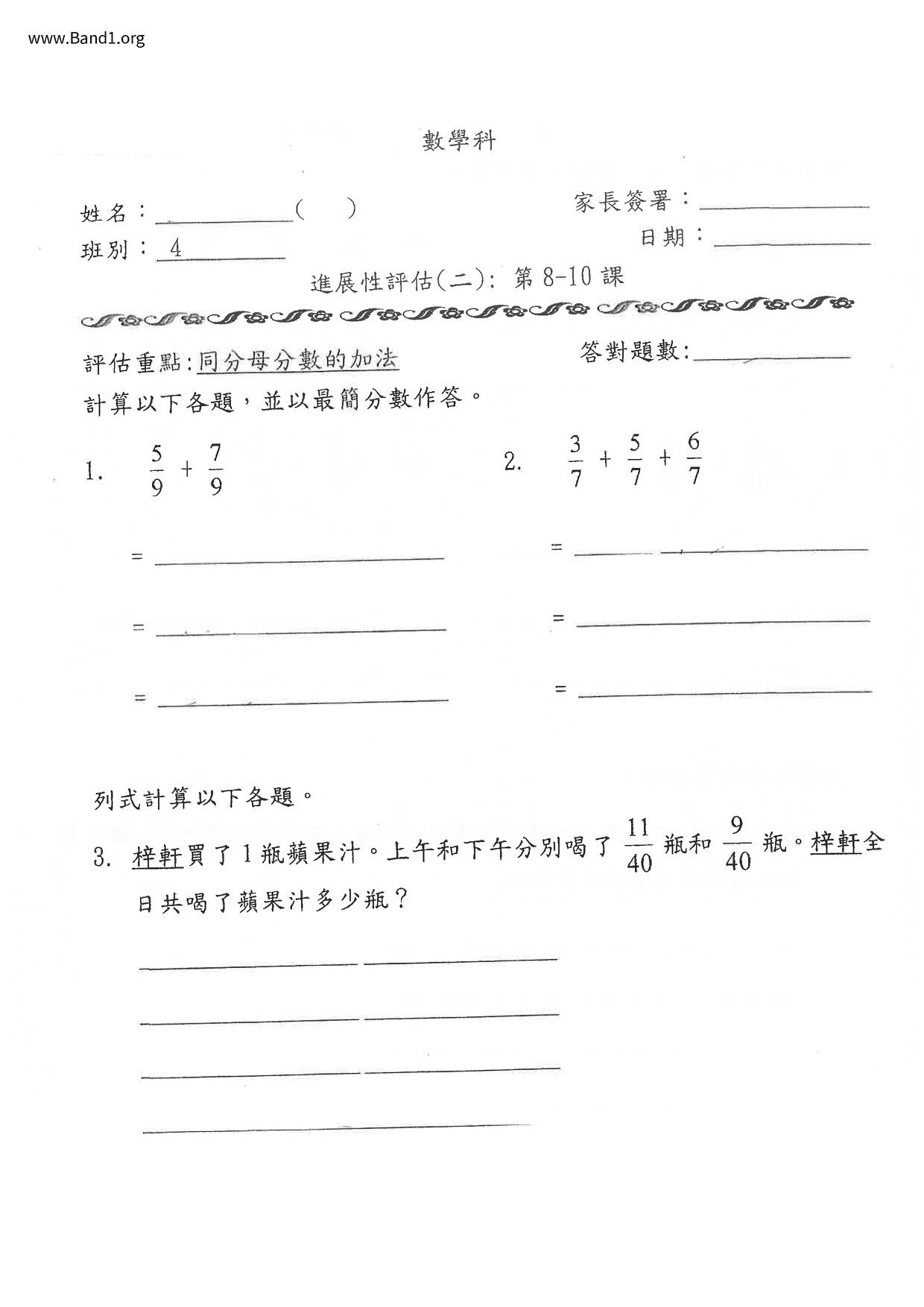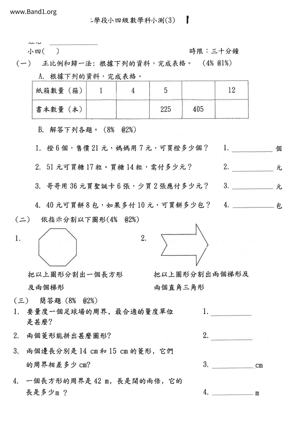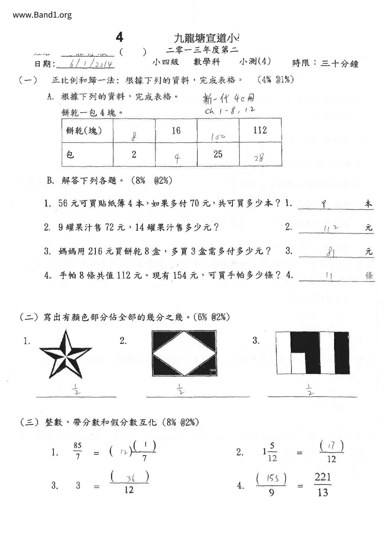 小四 數學 香港九龍塘基督教中華宣道會台山陳元喜小學