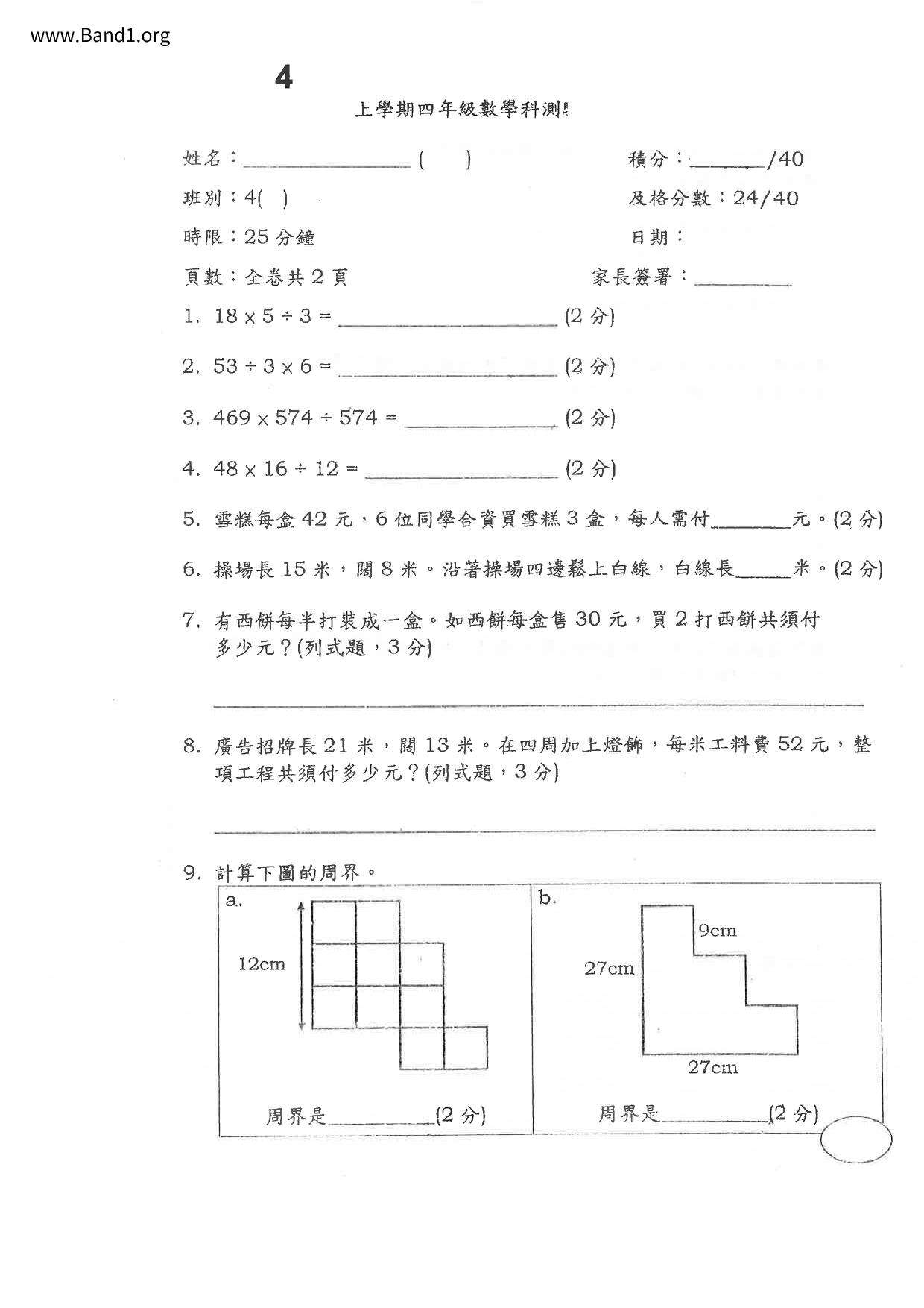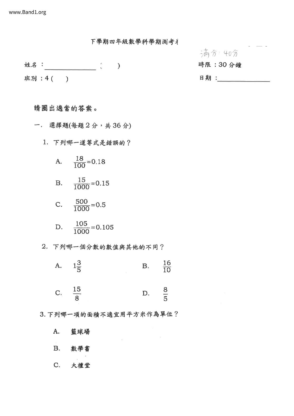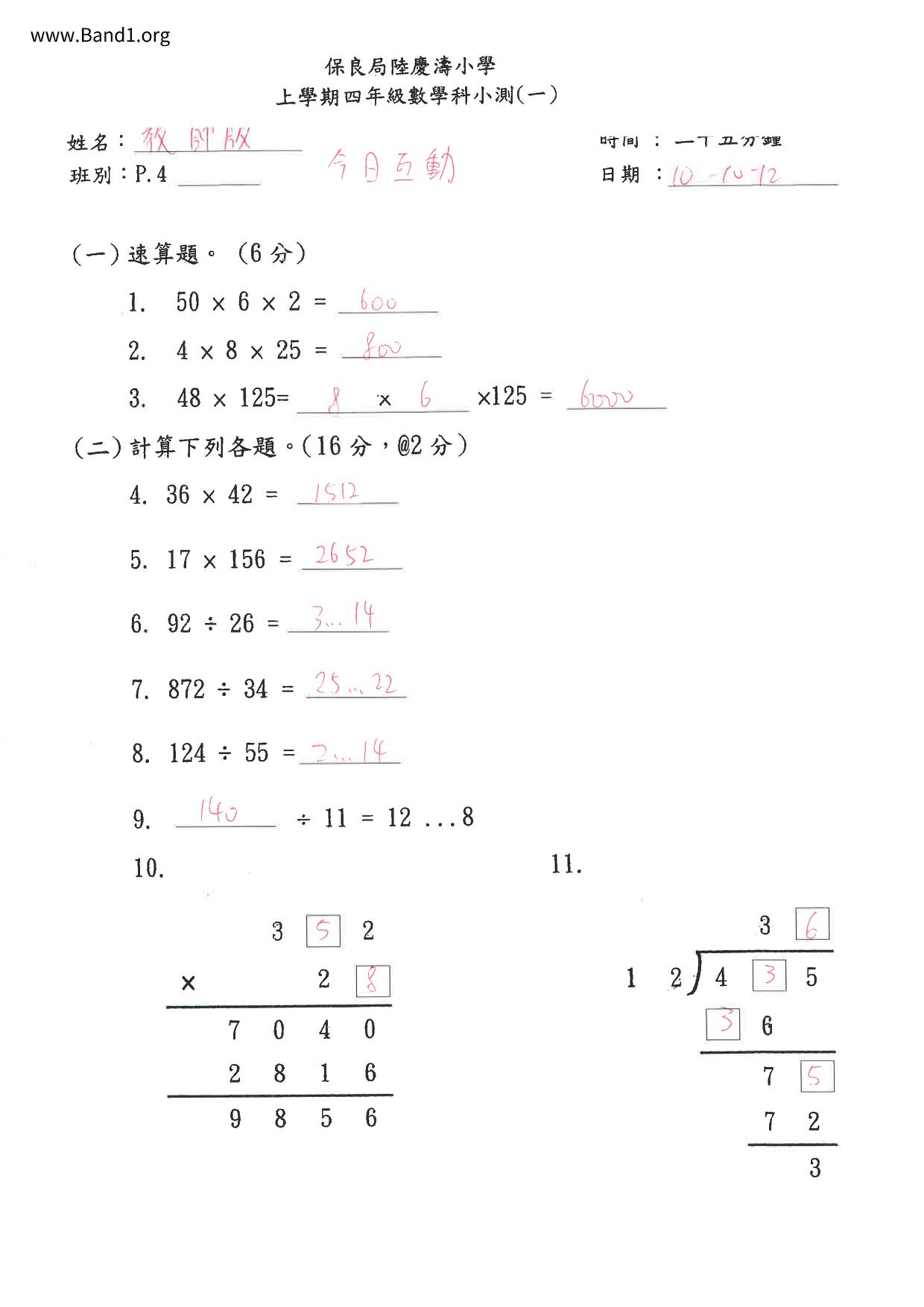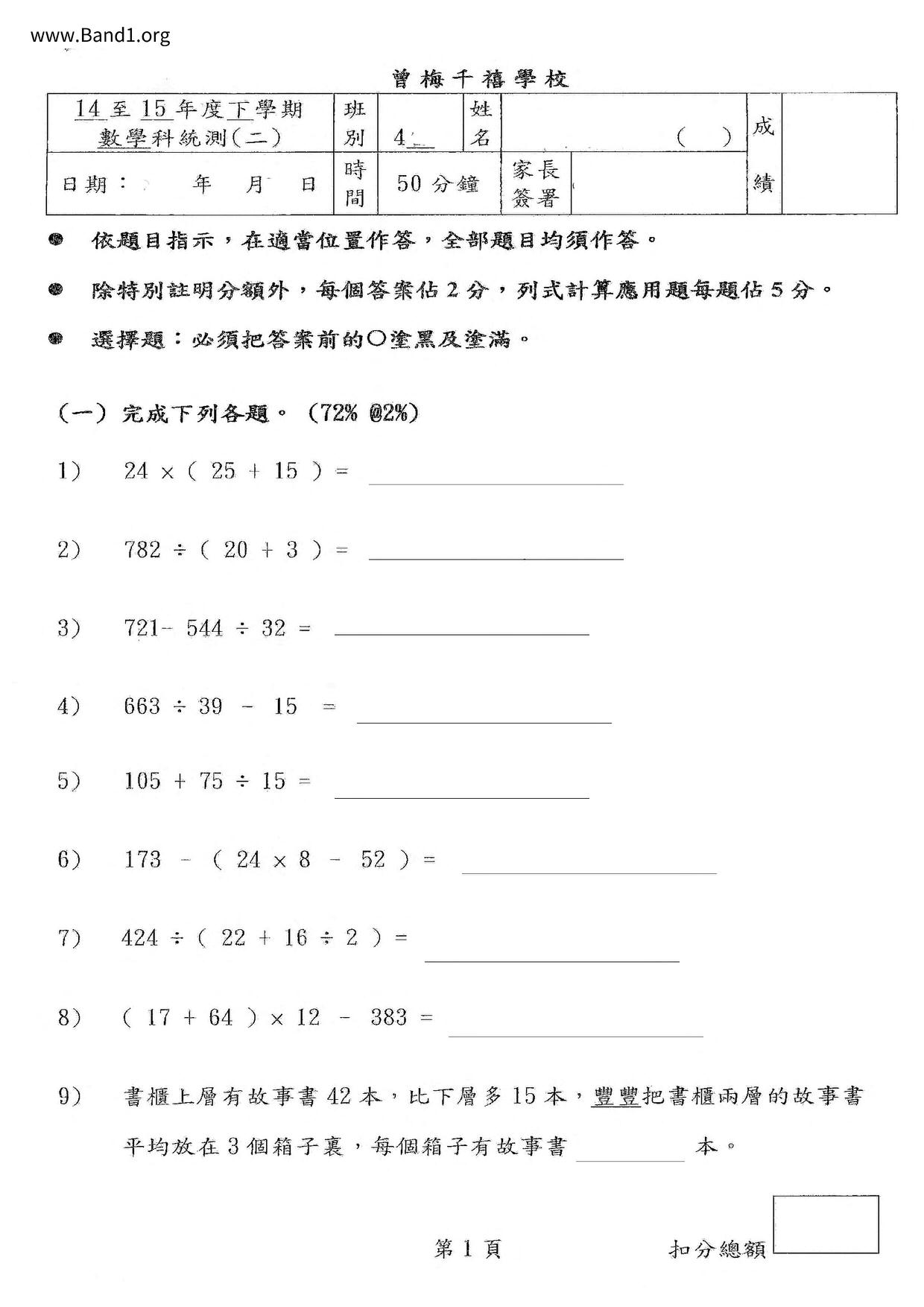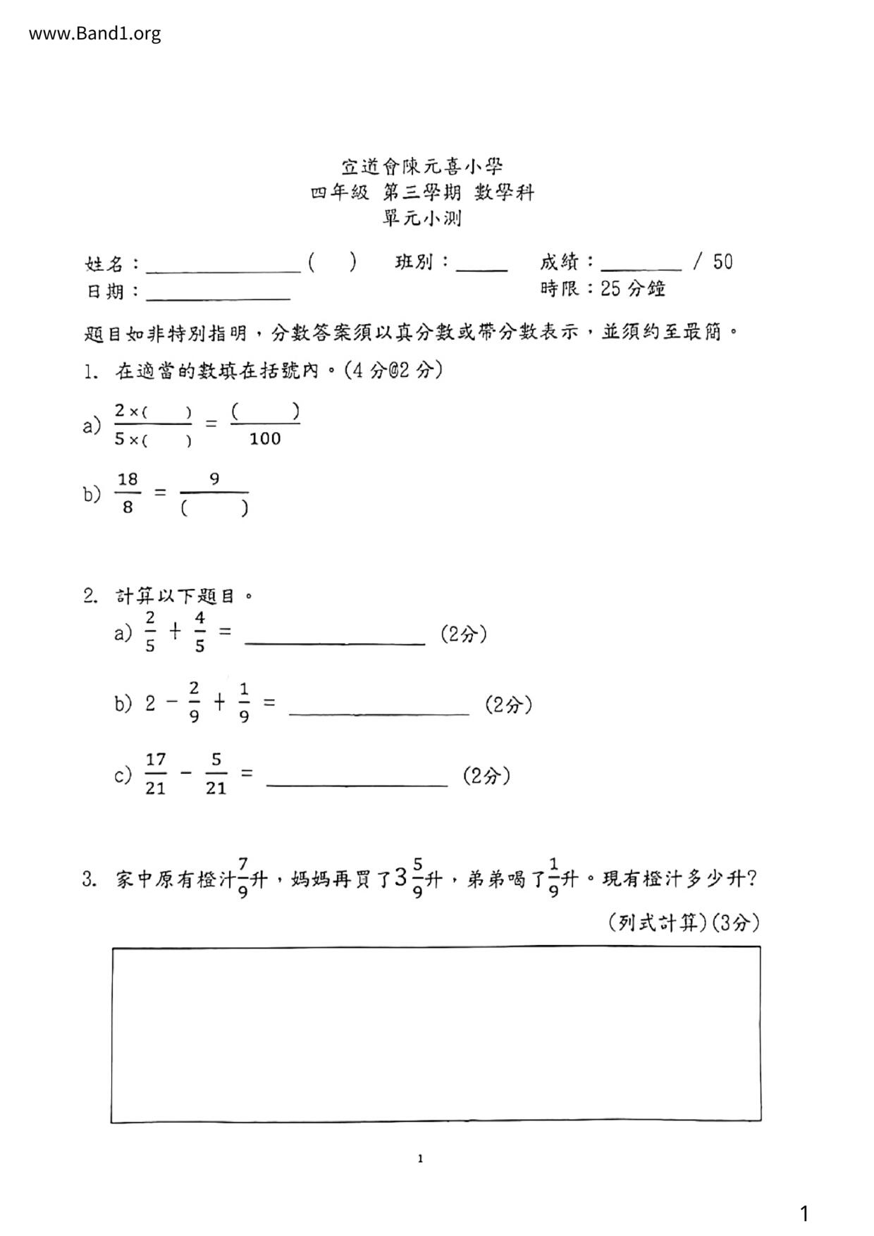 小四 數學 香港九龍塘基督教中華宣道會台山陳元喜小學