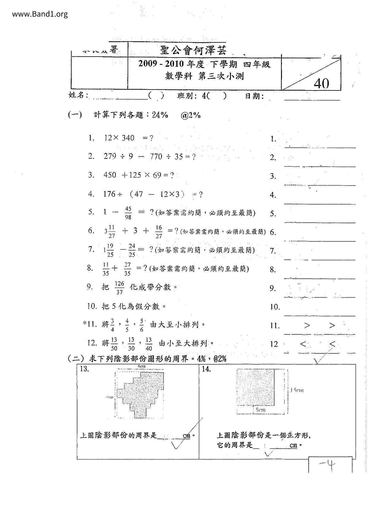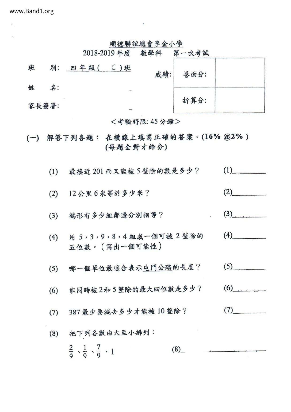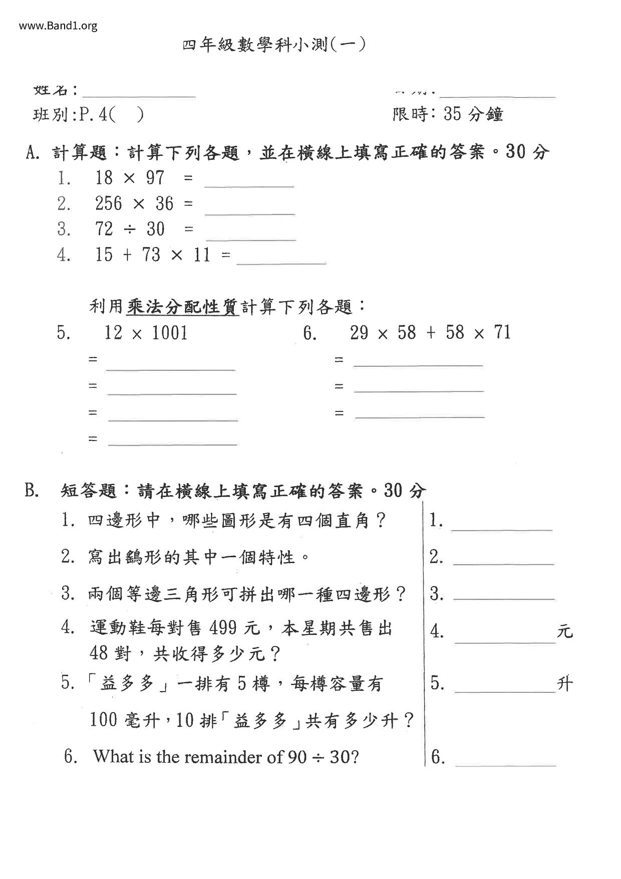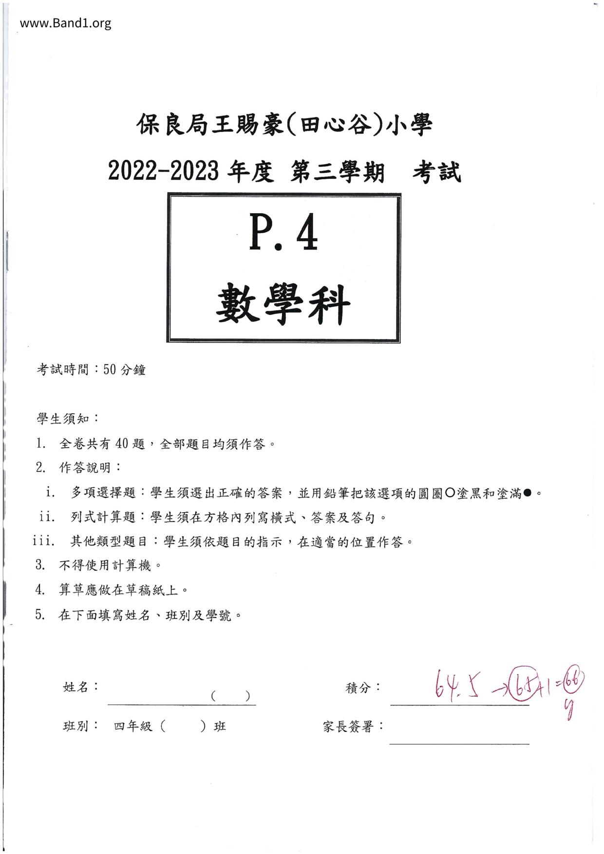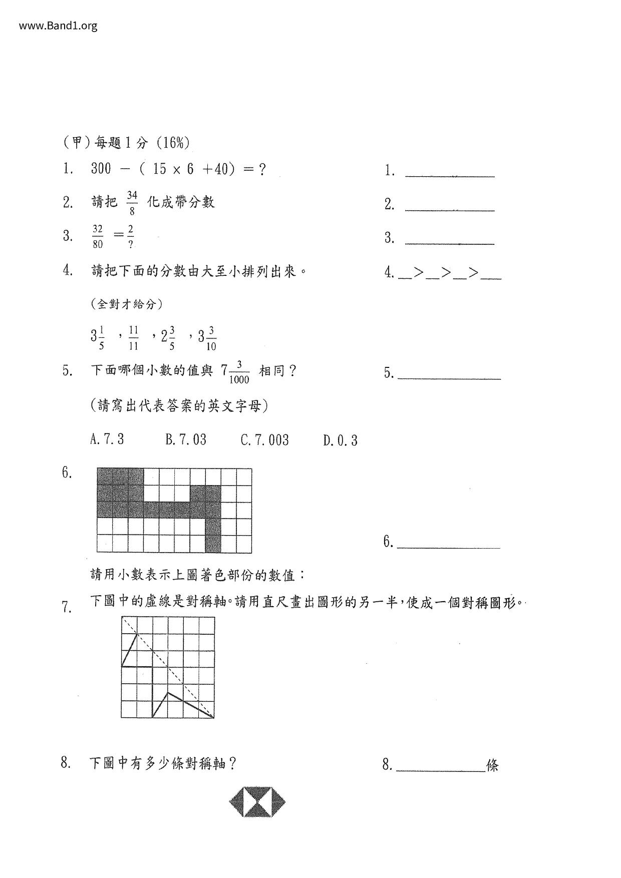 小四 數學 香港九龍塘基督教中華宣道會台山陳元喜小學