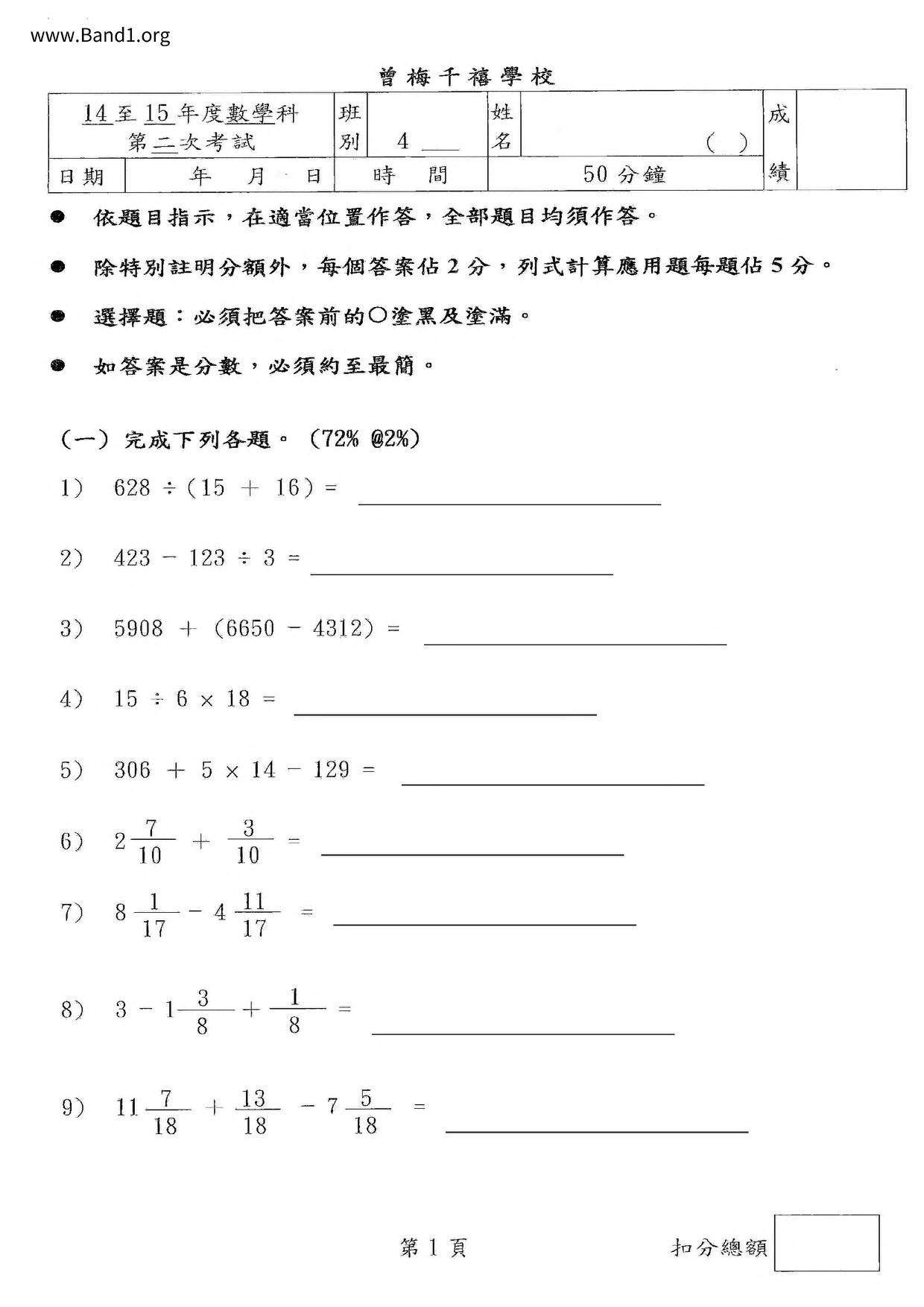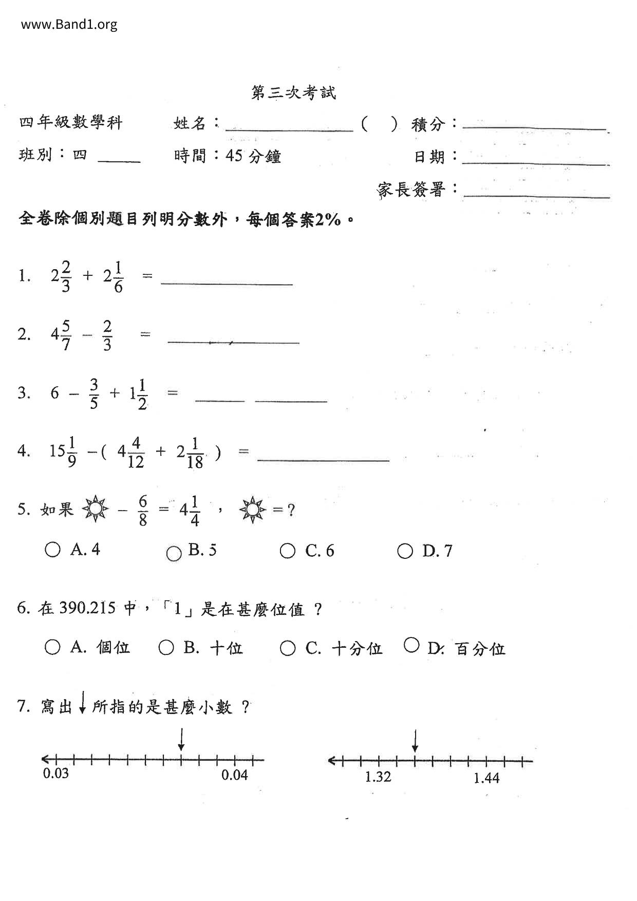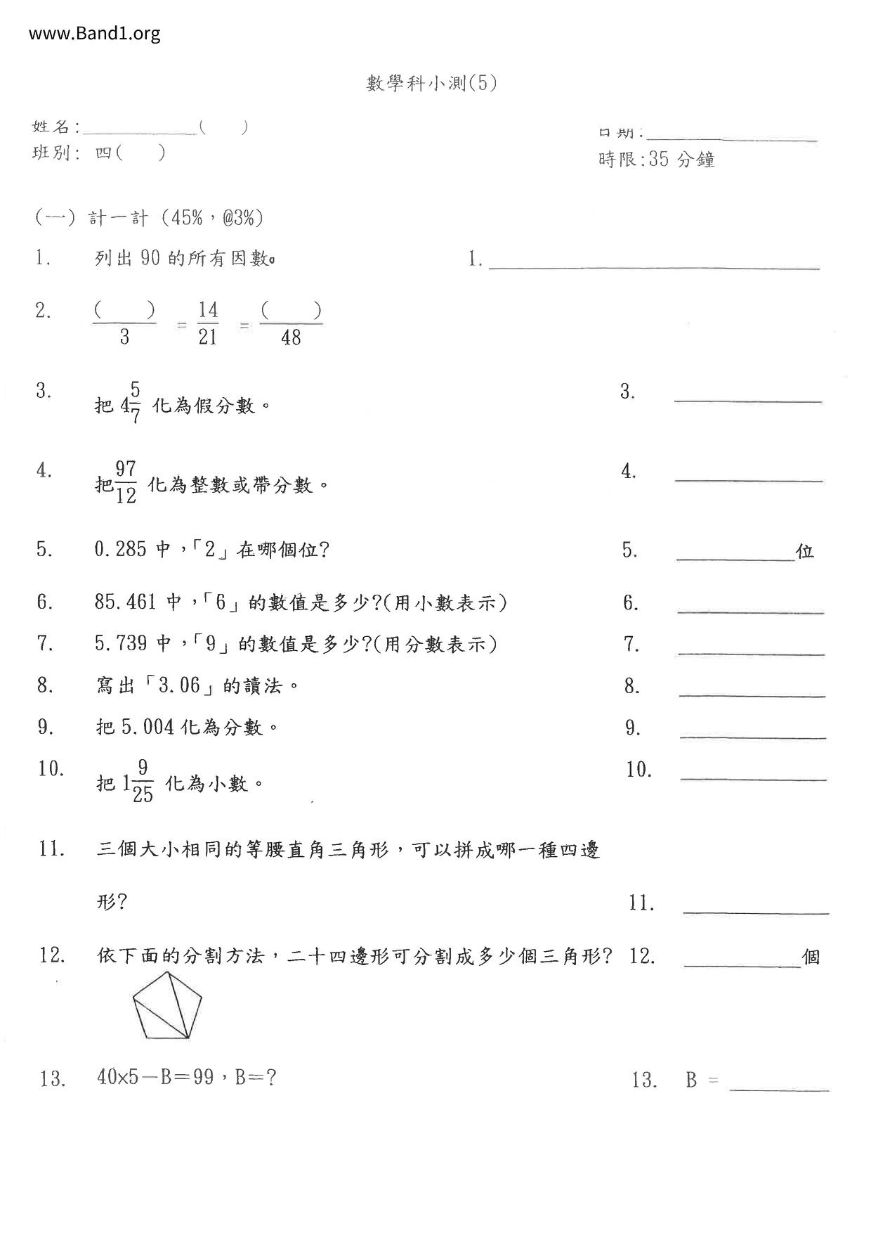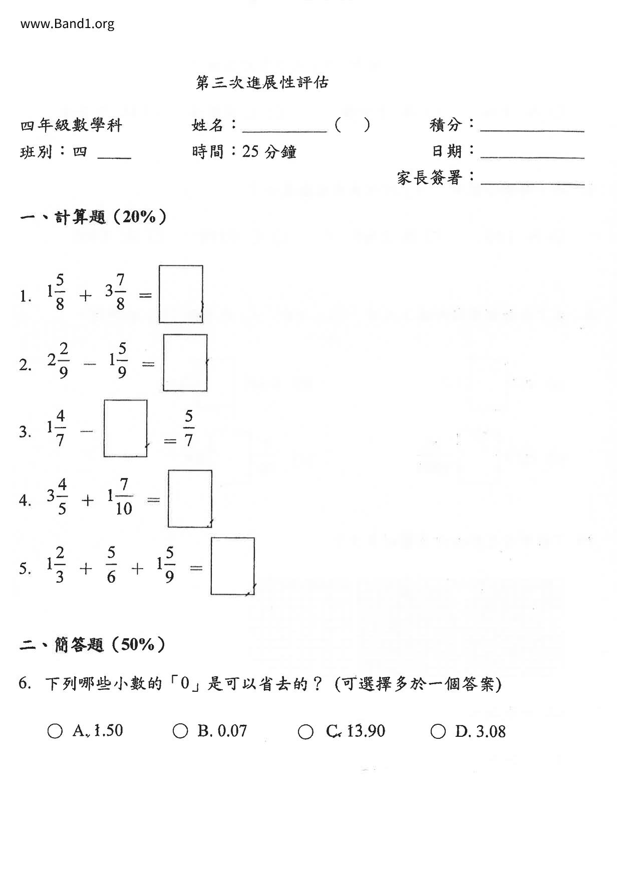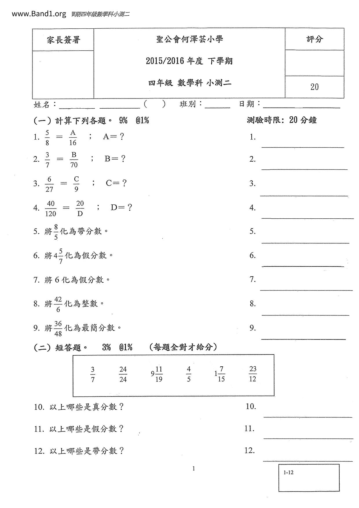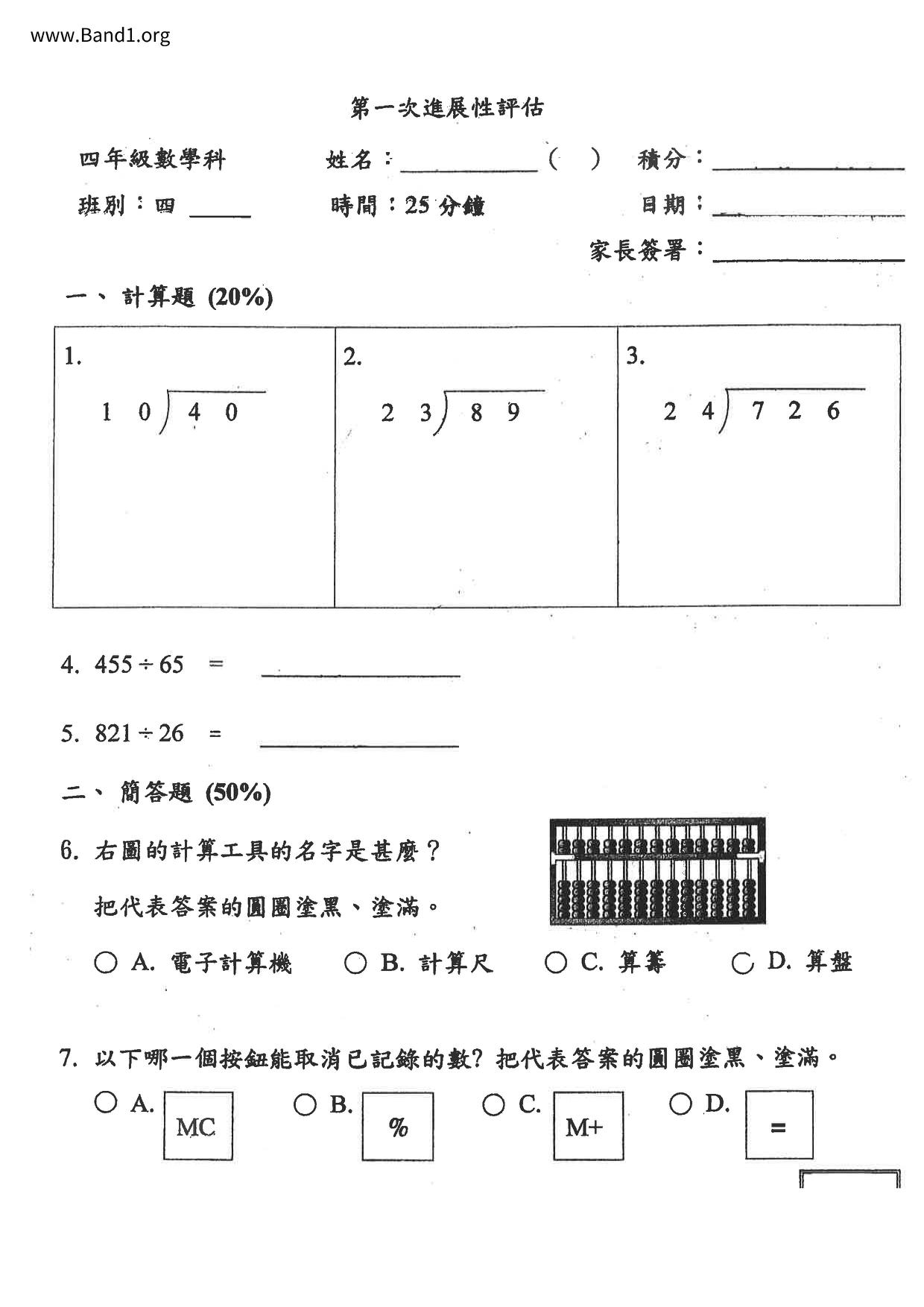 小四 數學 香港九龍塘基督教中華宣道會台山陳元喜小學