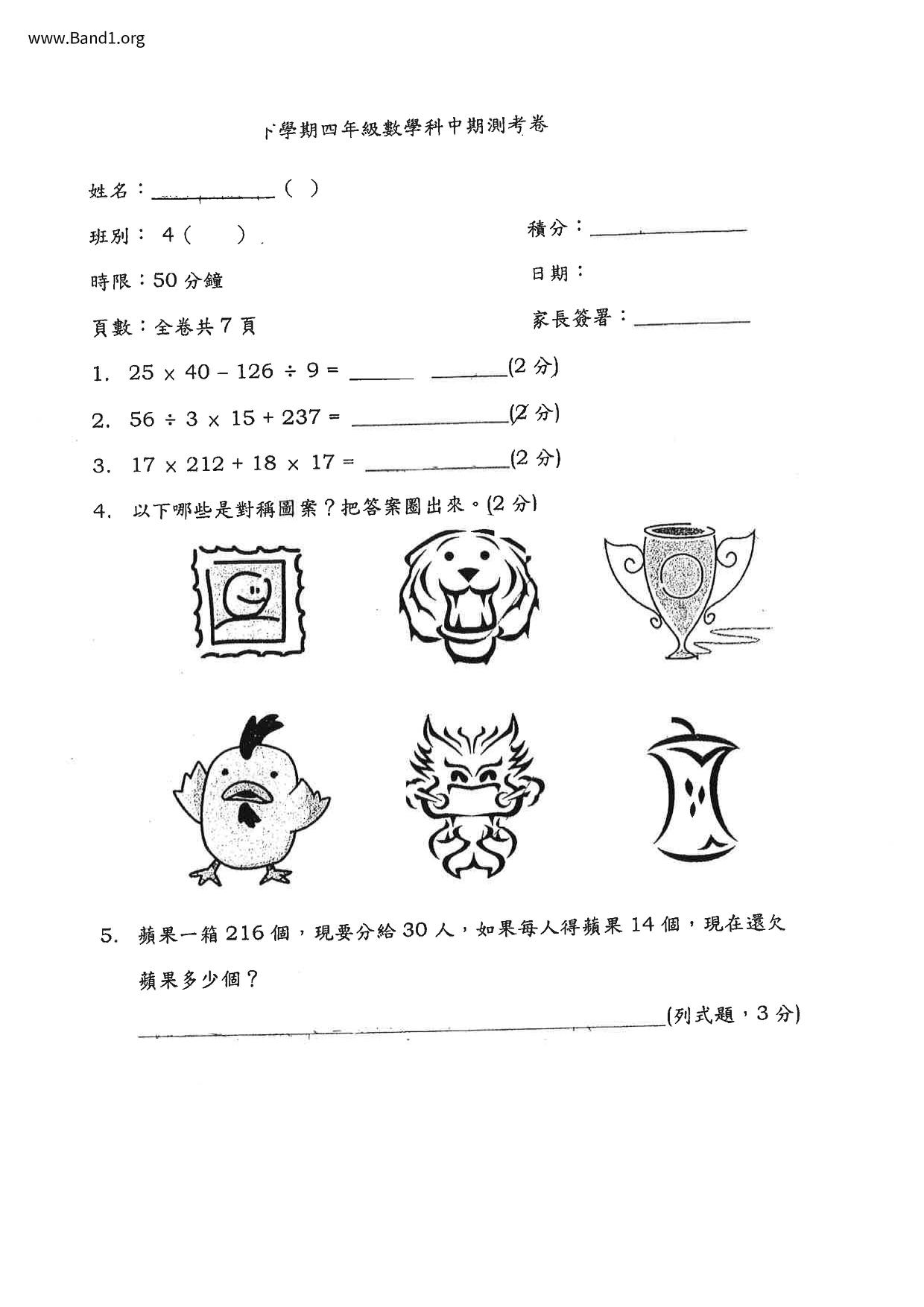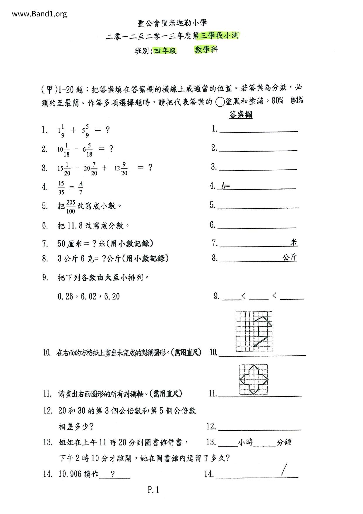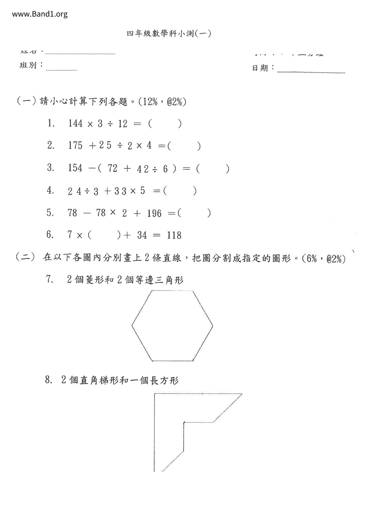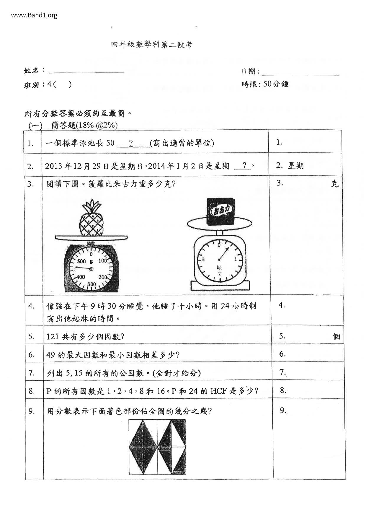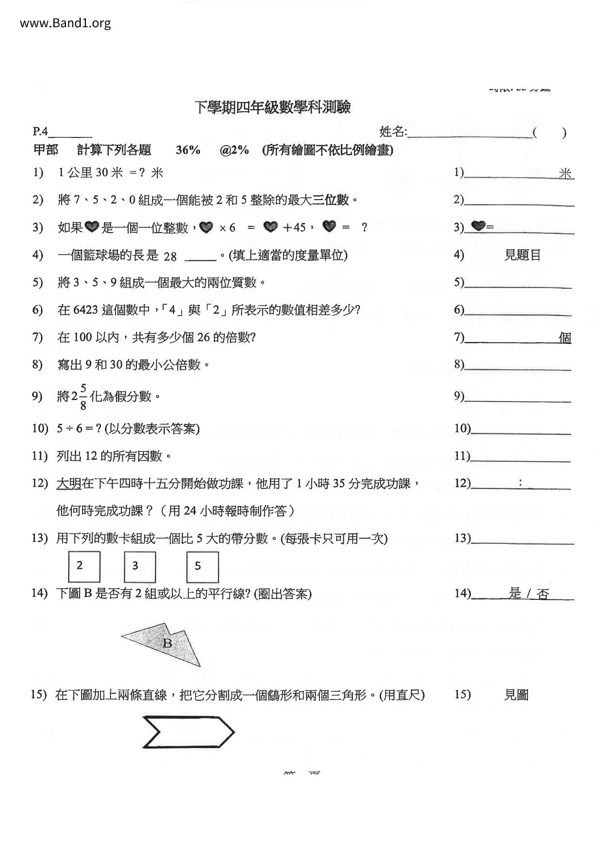 小四 數學 香港九龍塘基督教中華宣道會台山陳元喜小學
