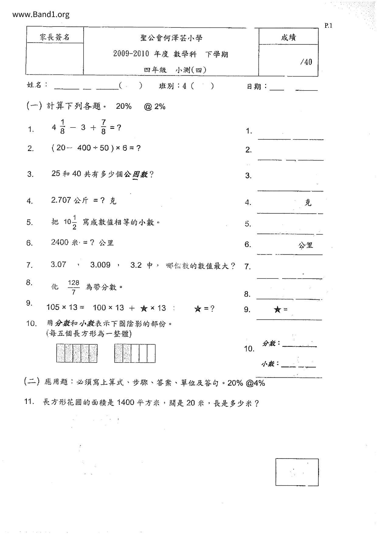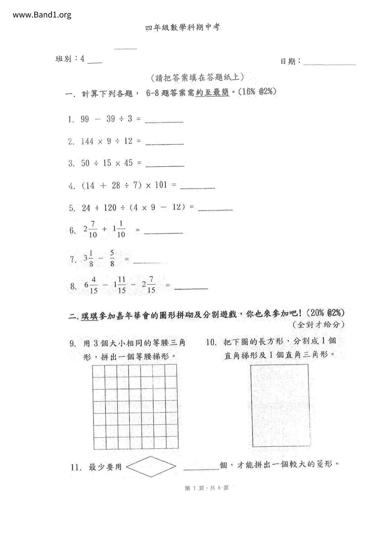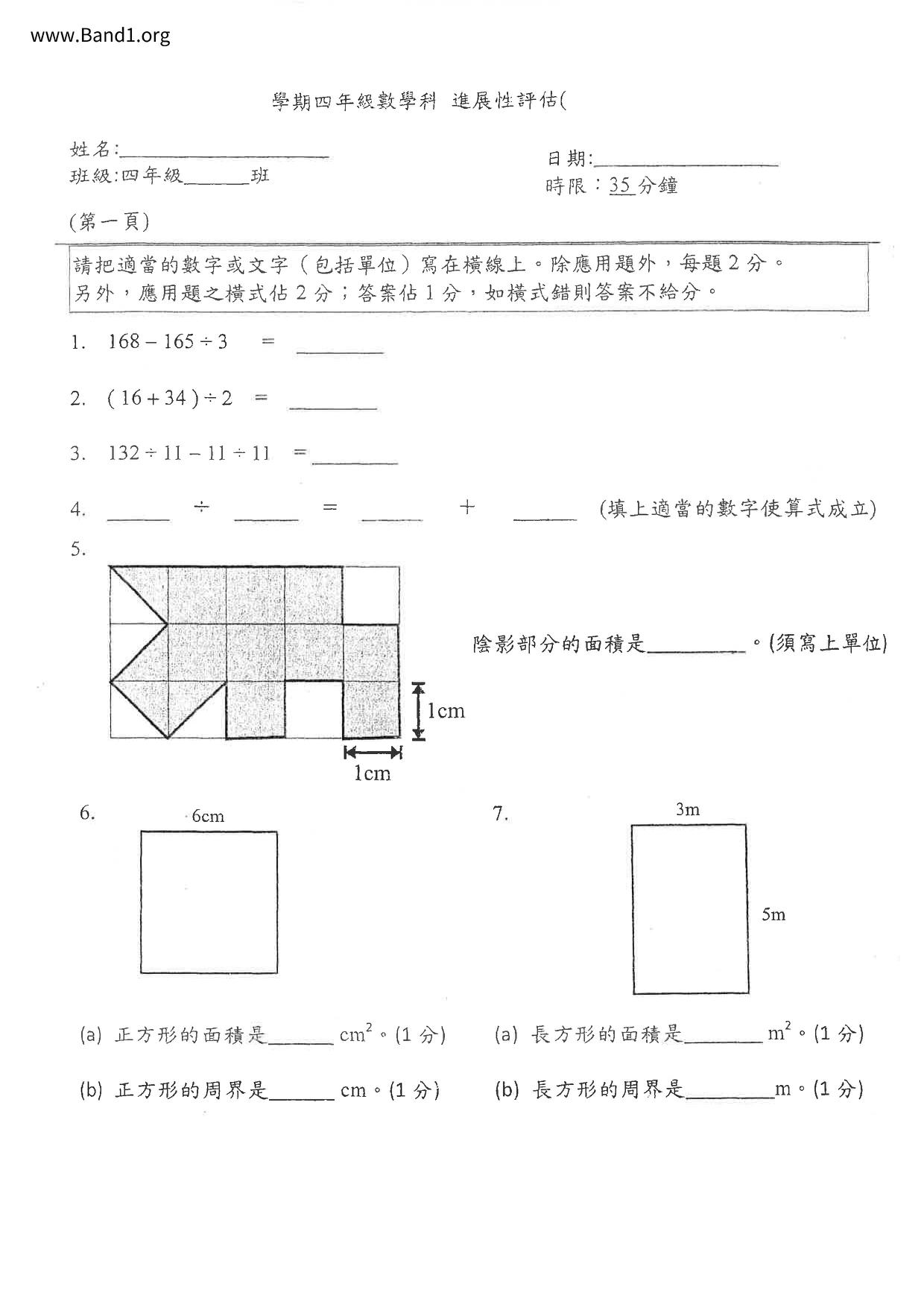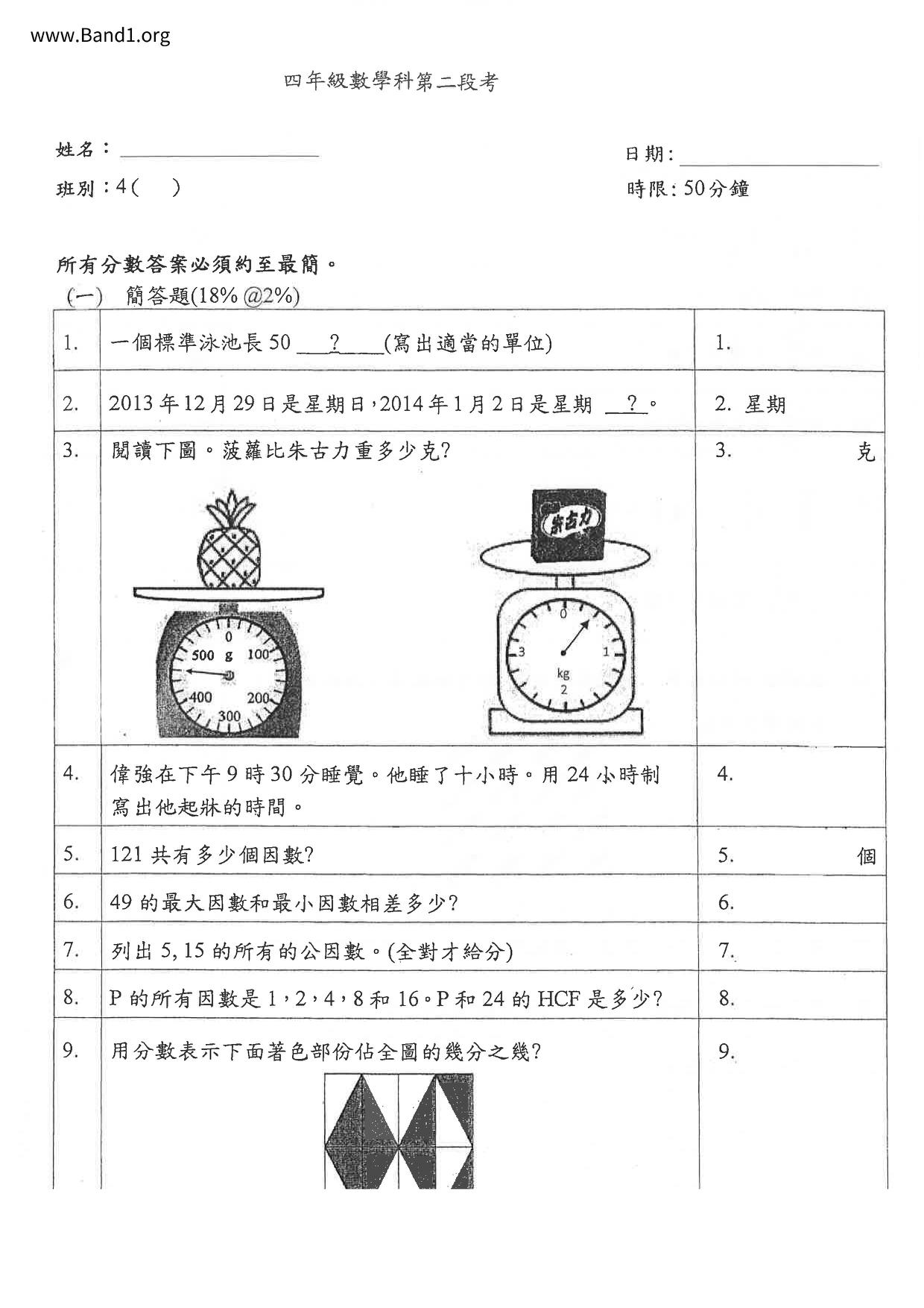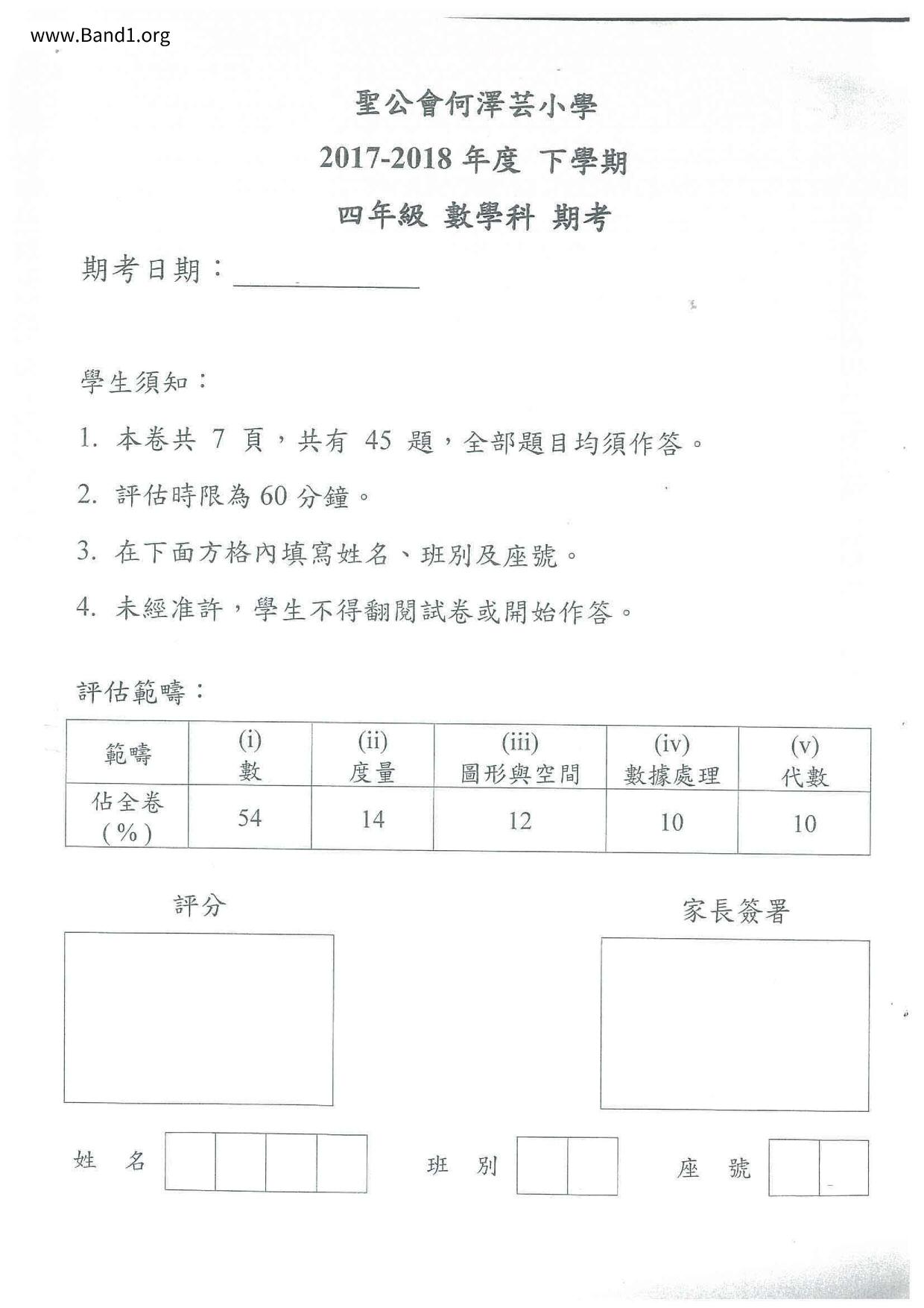 小四 數學 香港九龍塘基督教中華宣道會台山陳元喜小學