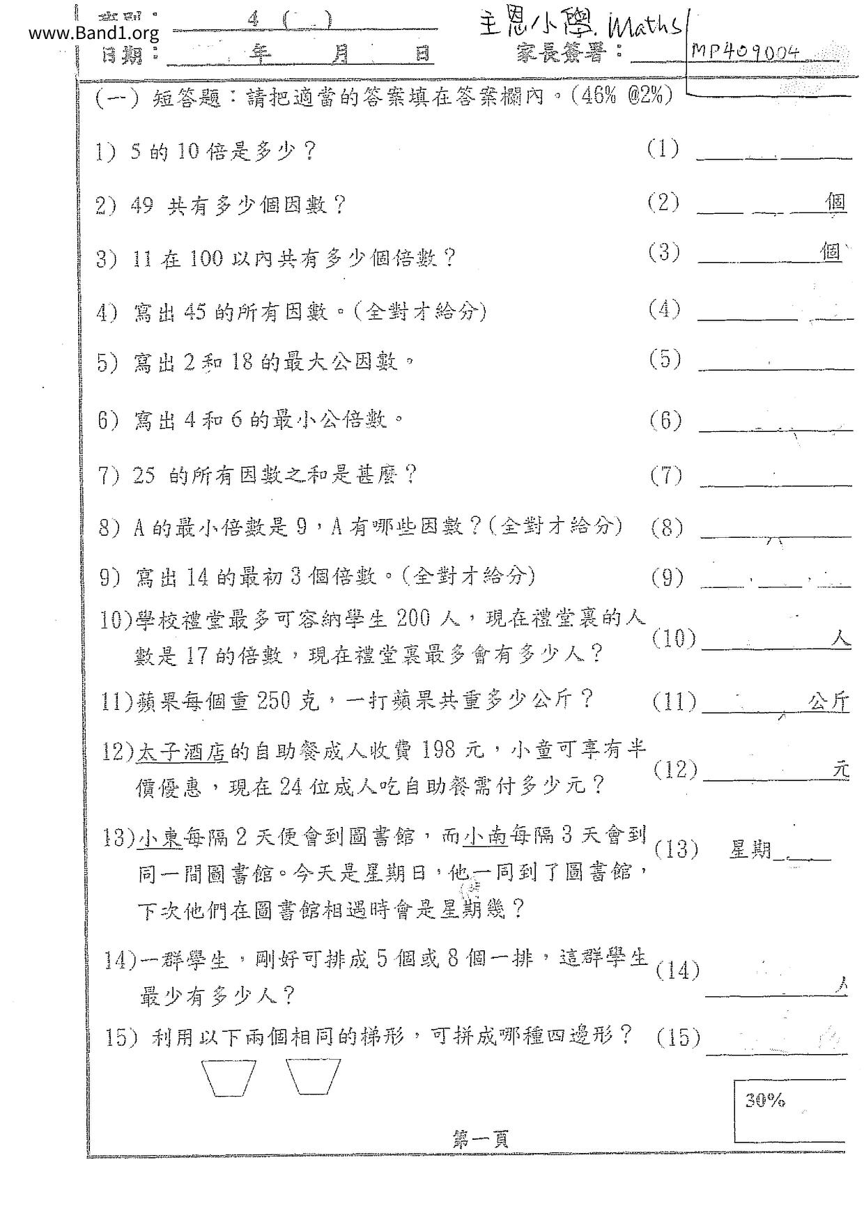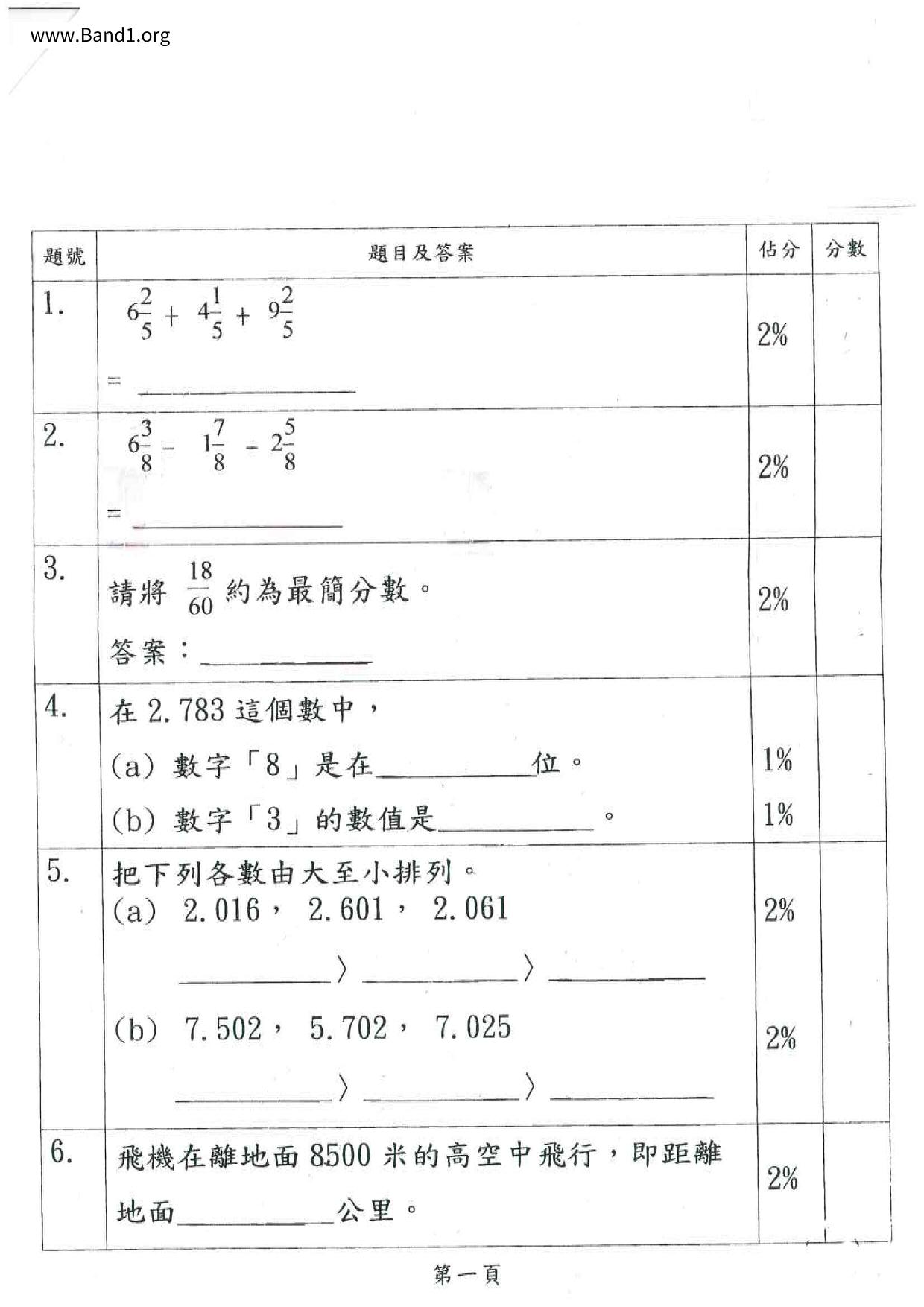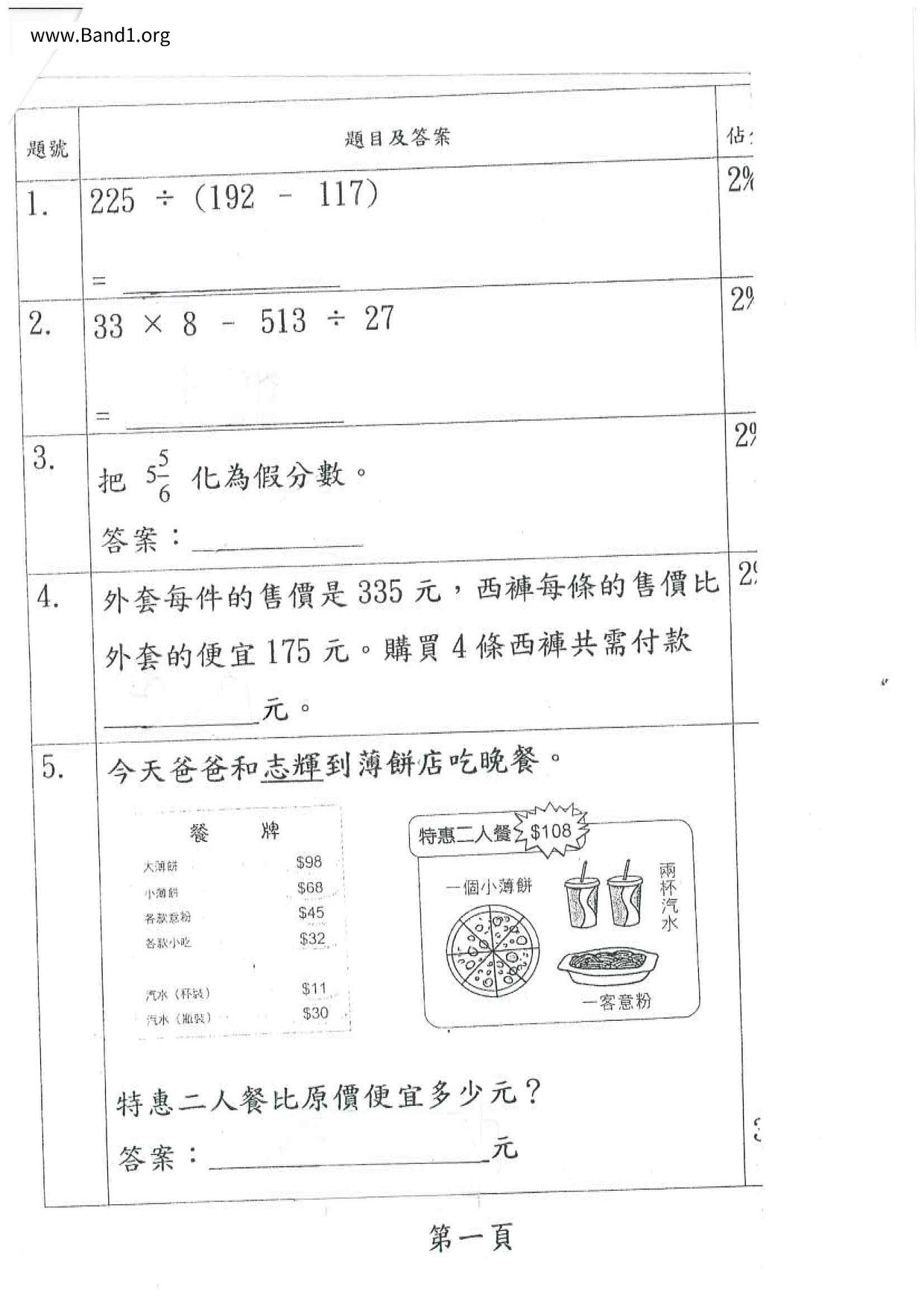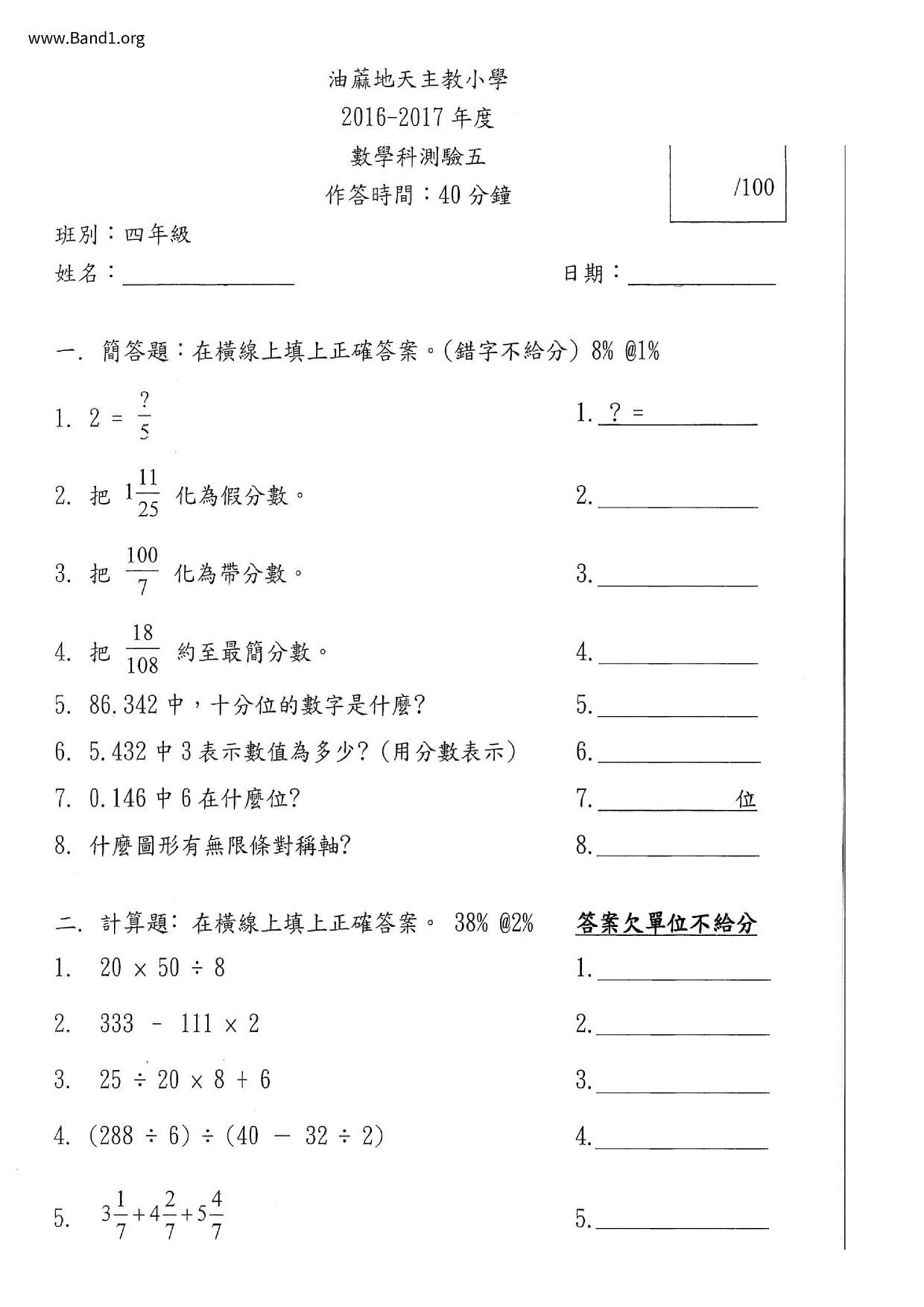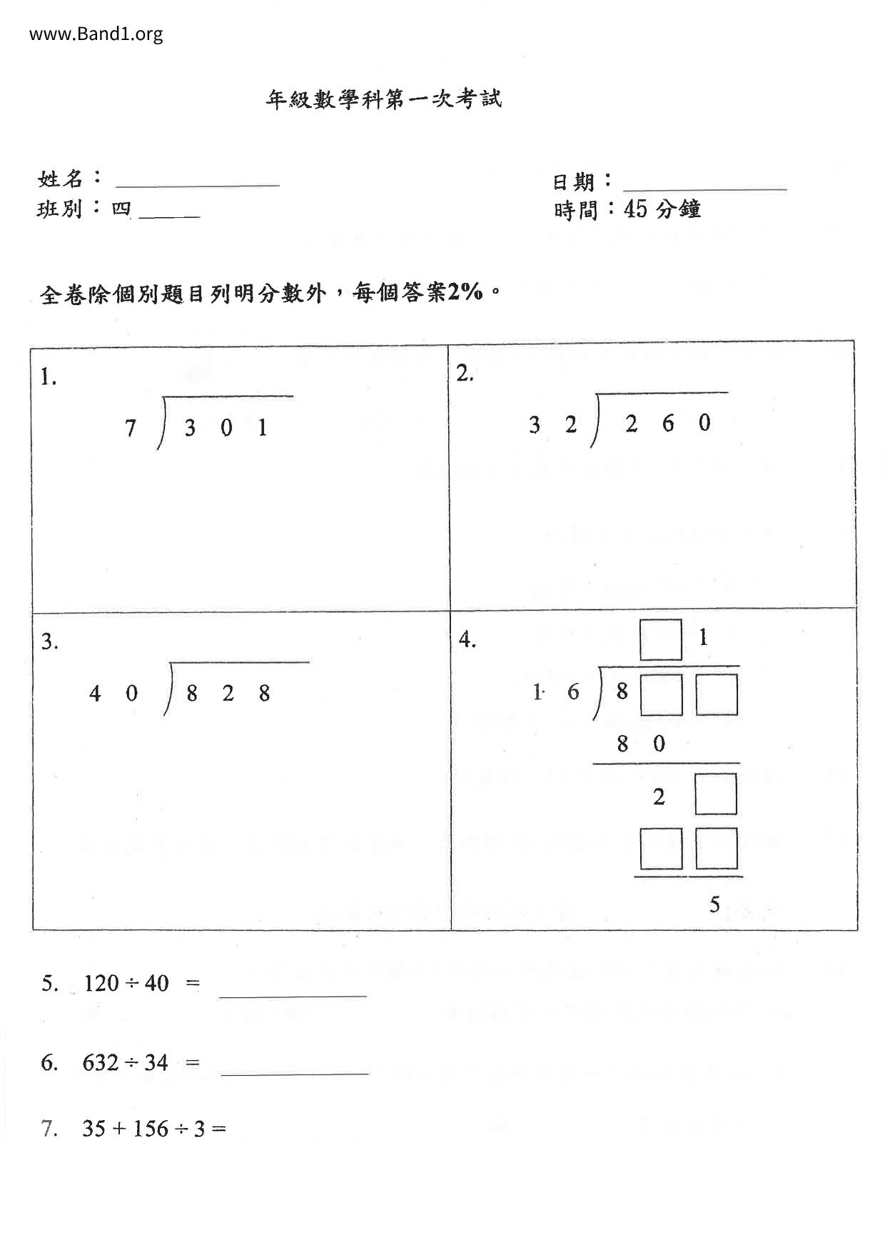 小四 數學 香港九龍塘基督教中華宣道會台山陳元喜小學