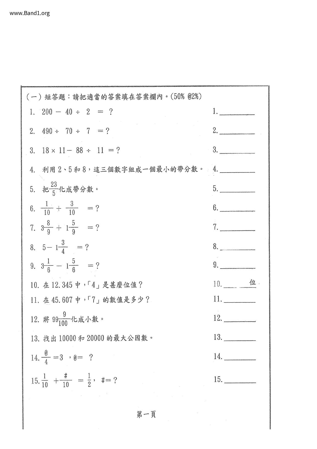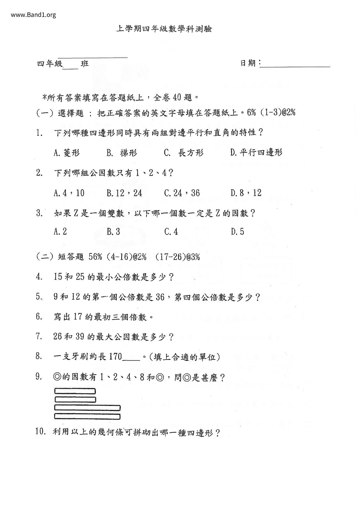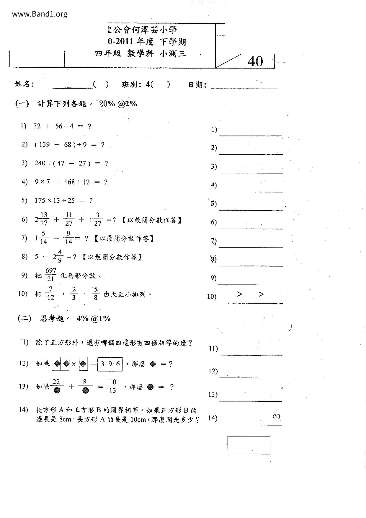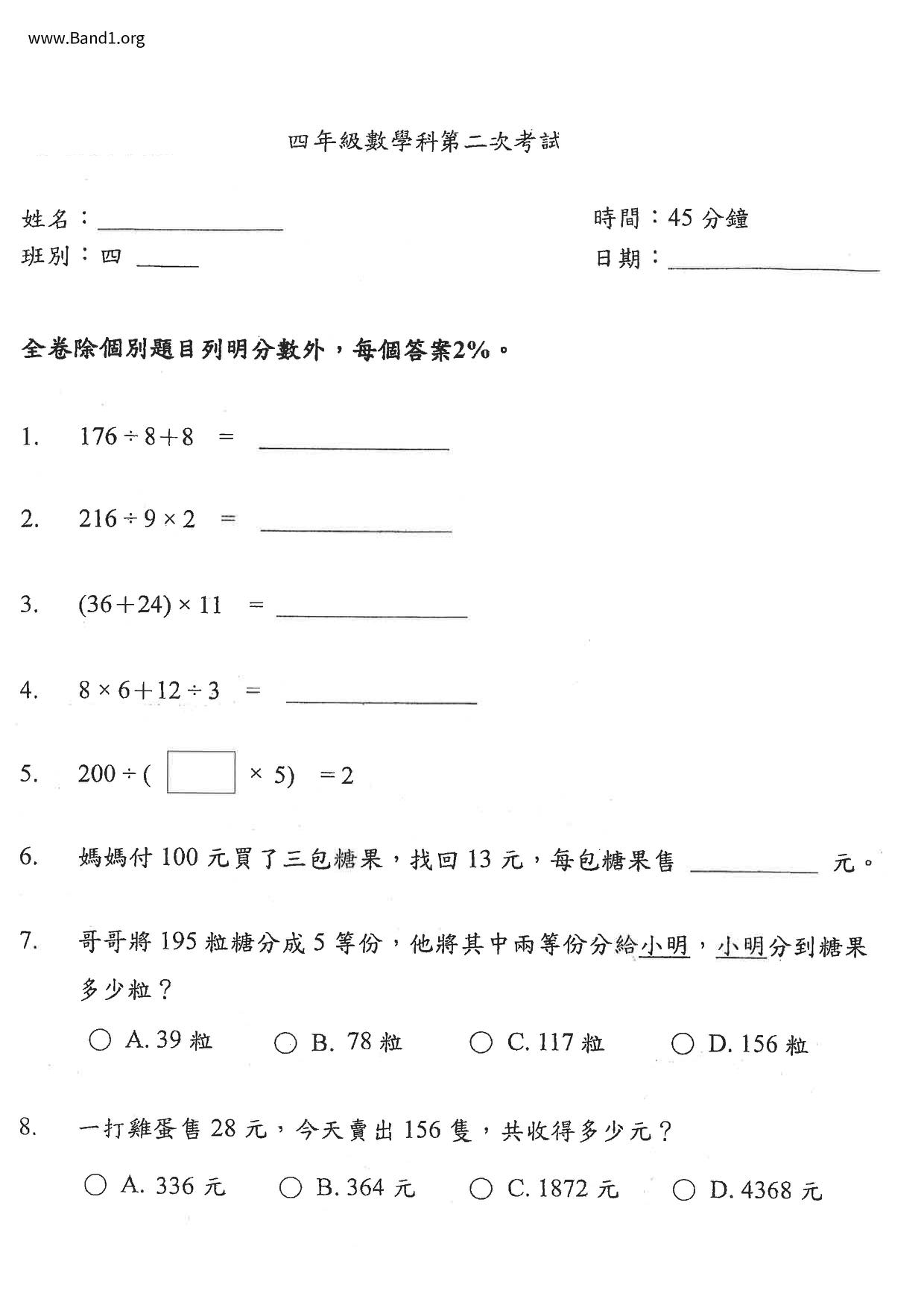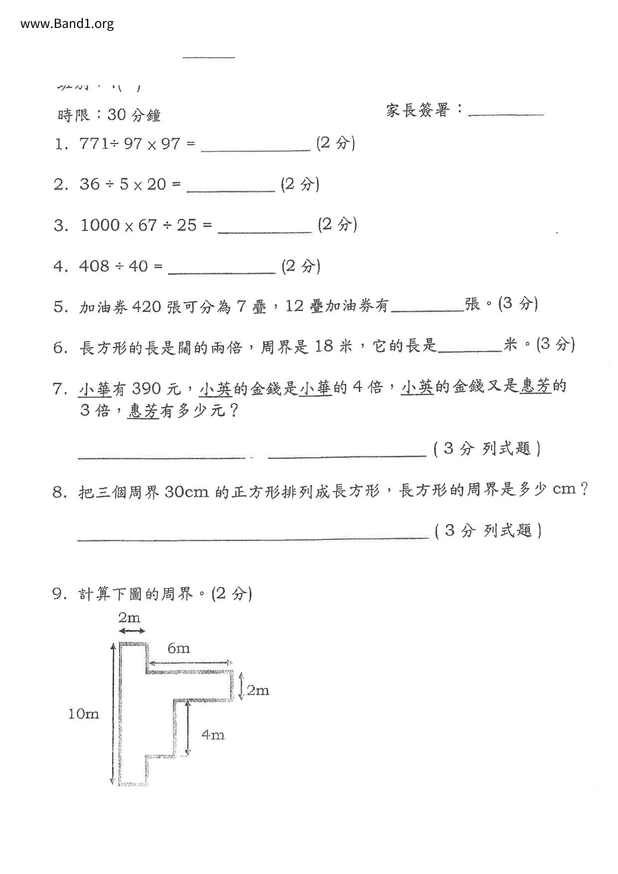 小四 數學 香港九龍塘基督教中華宣道會台山陳元喜小學