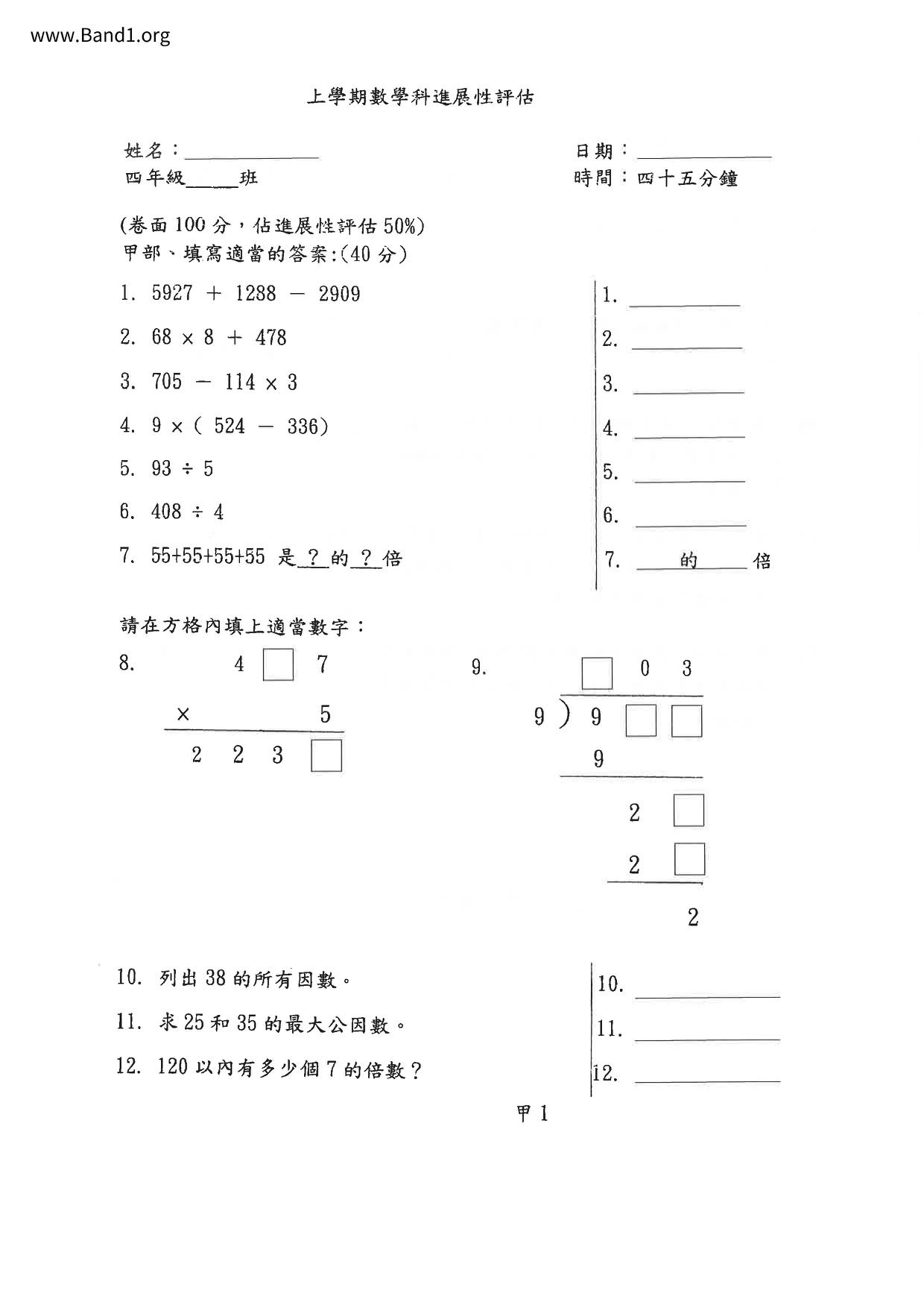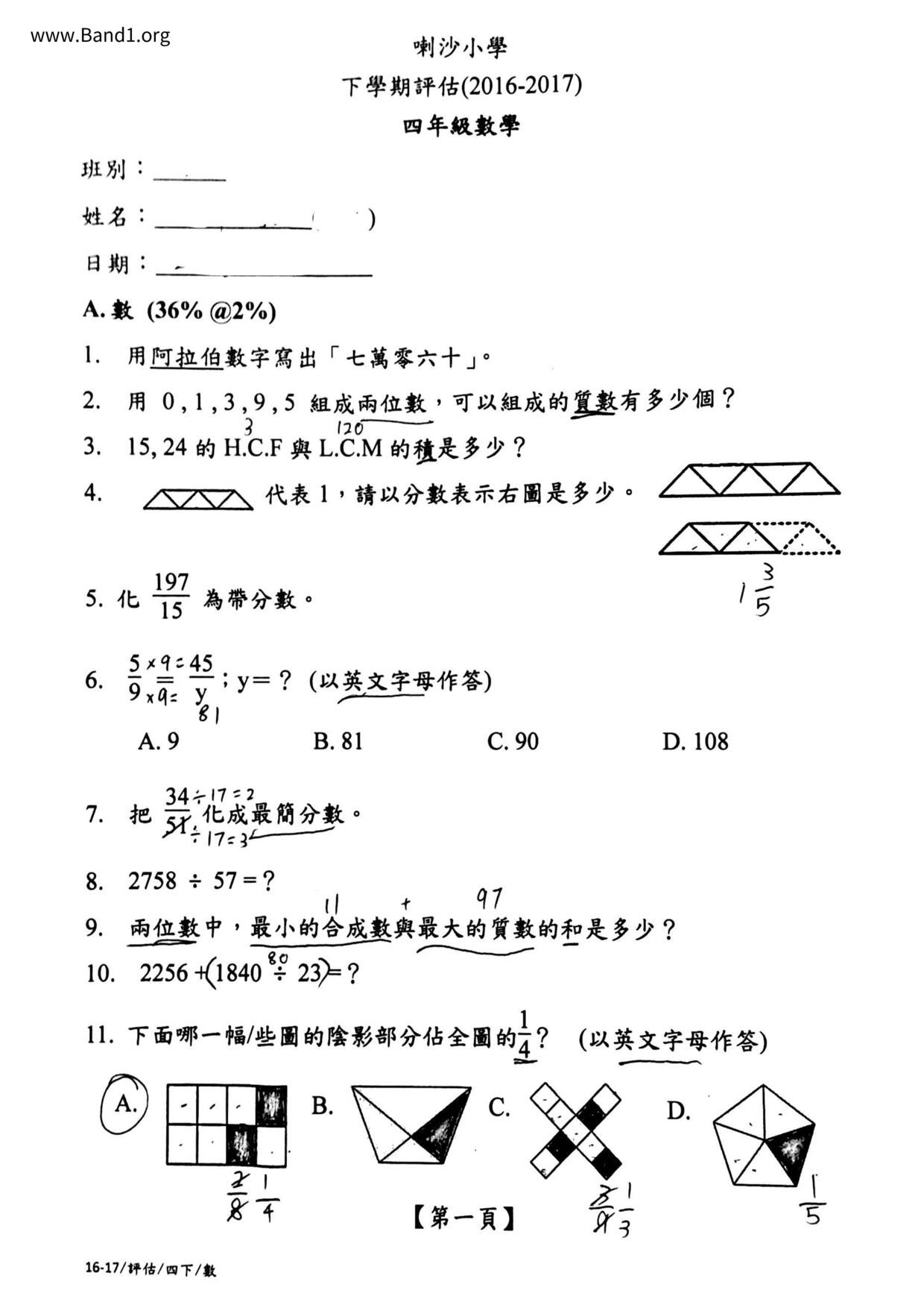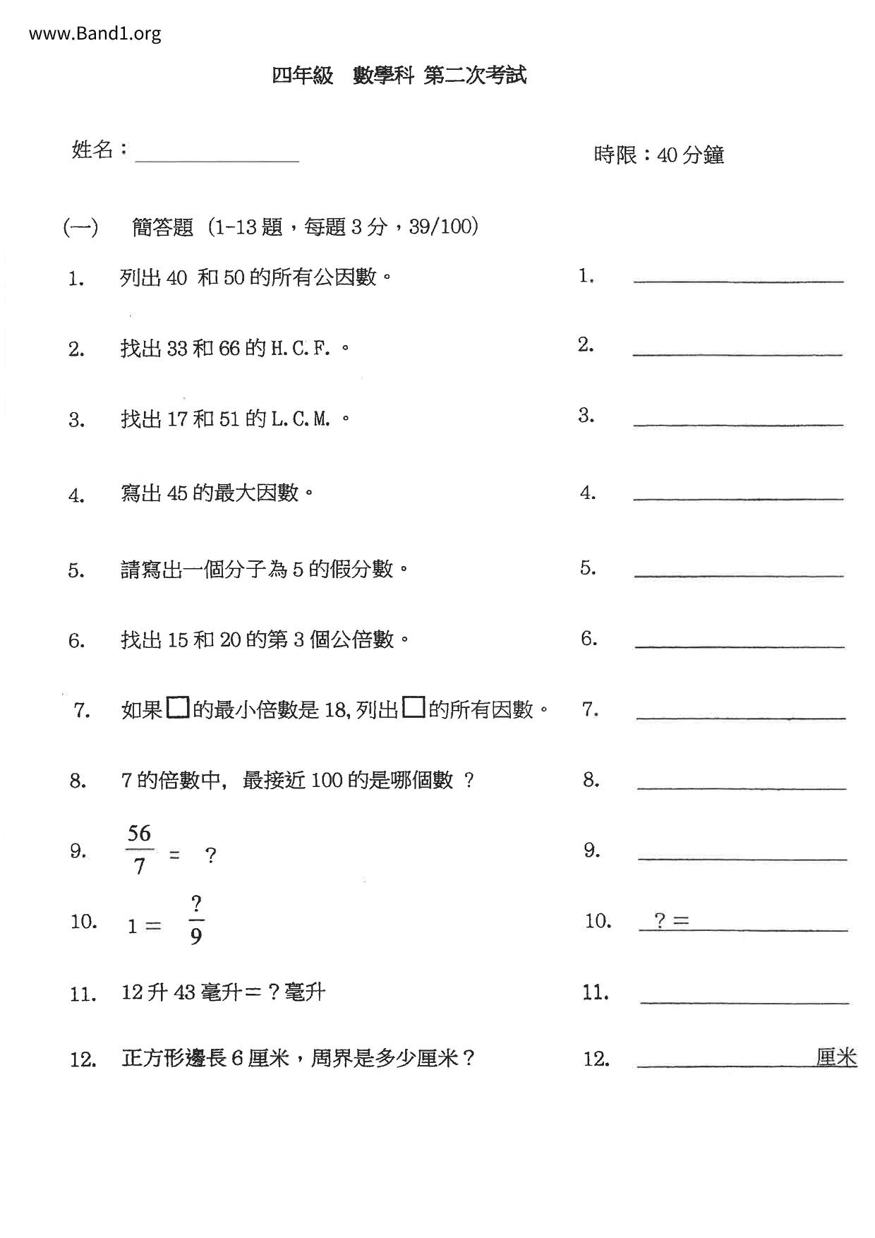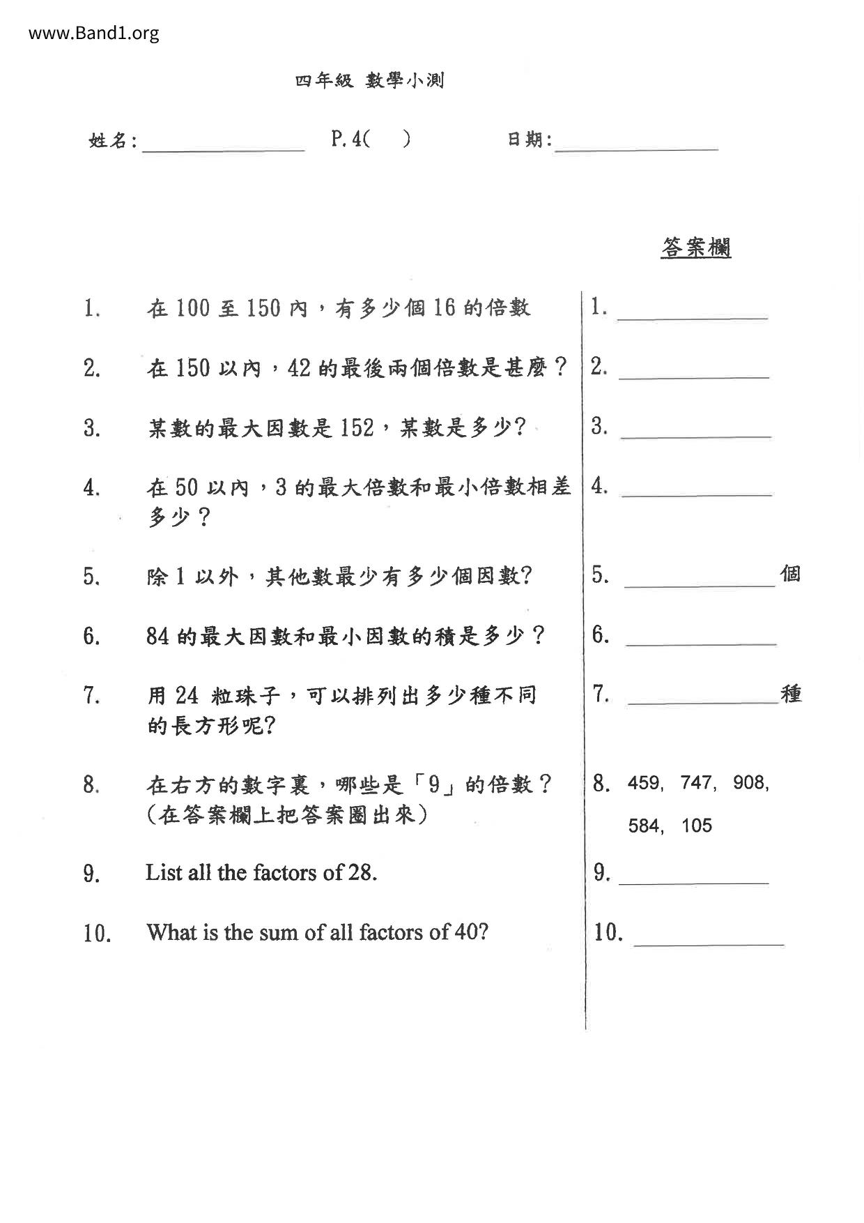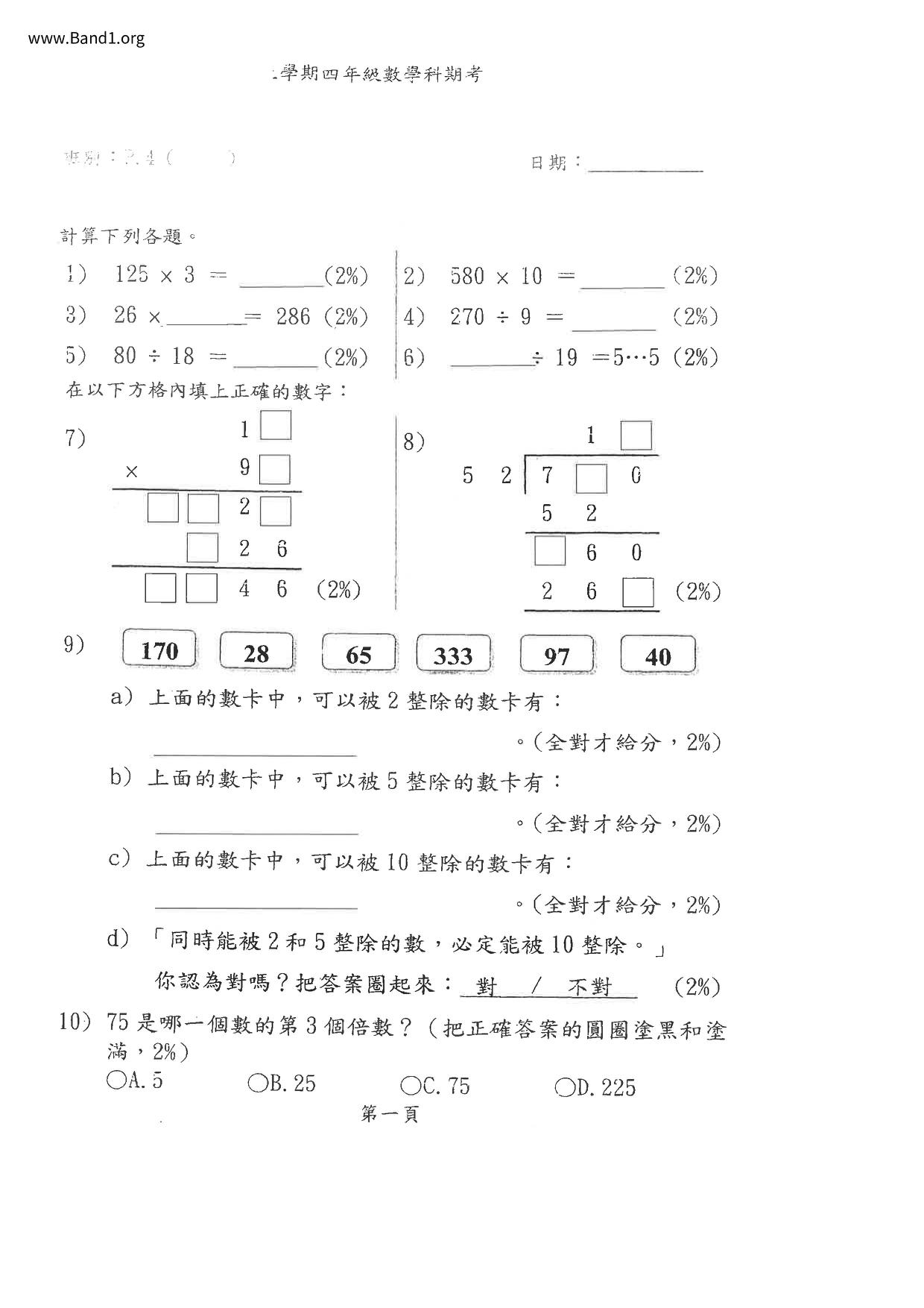 小四 數學 香港九龍塘基督教中華宣道會台山陳元喜小學