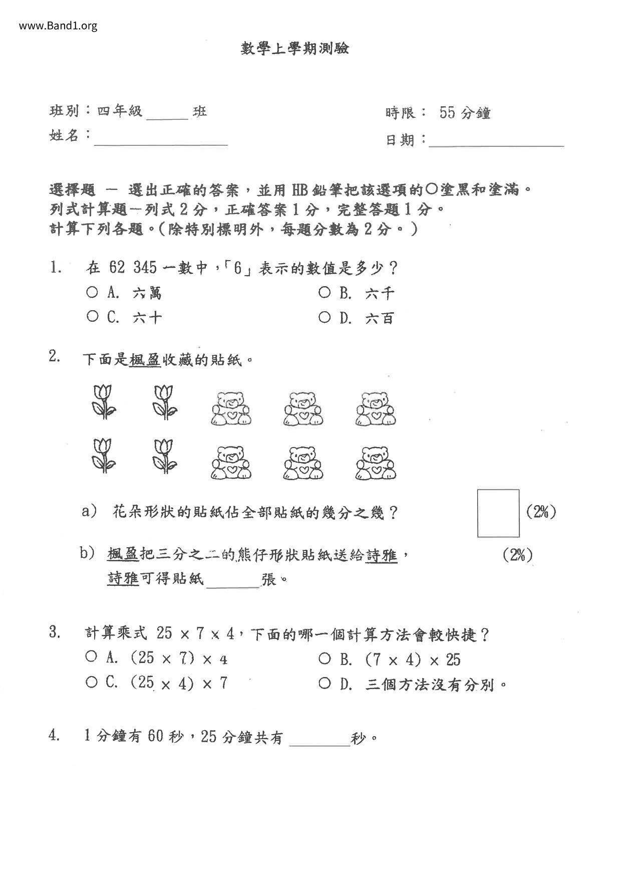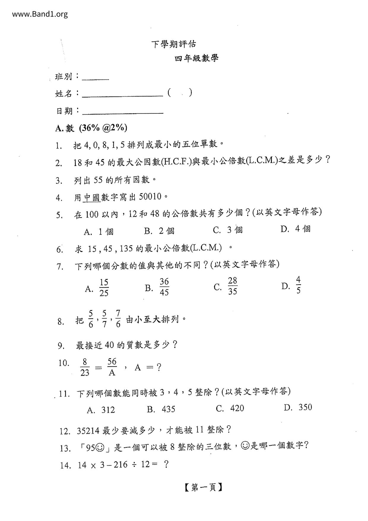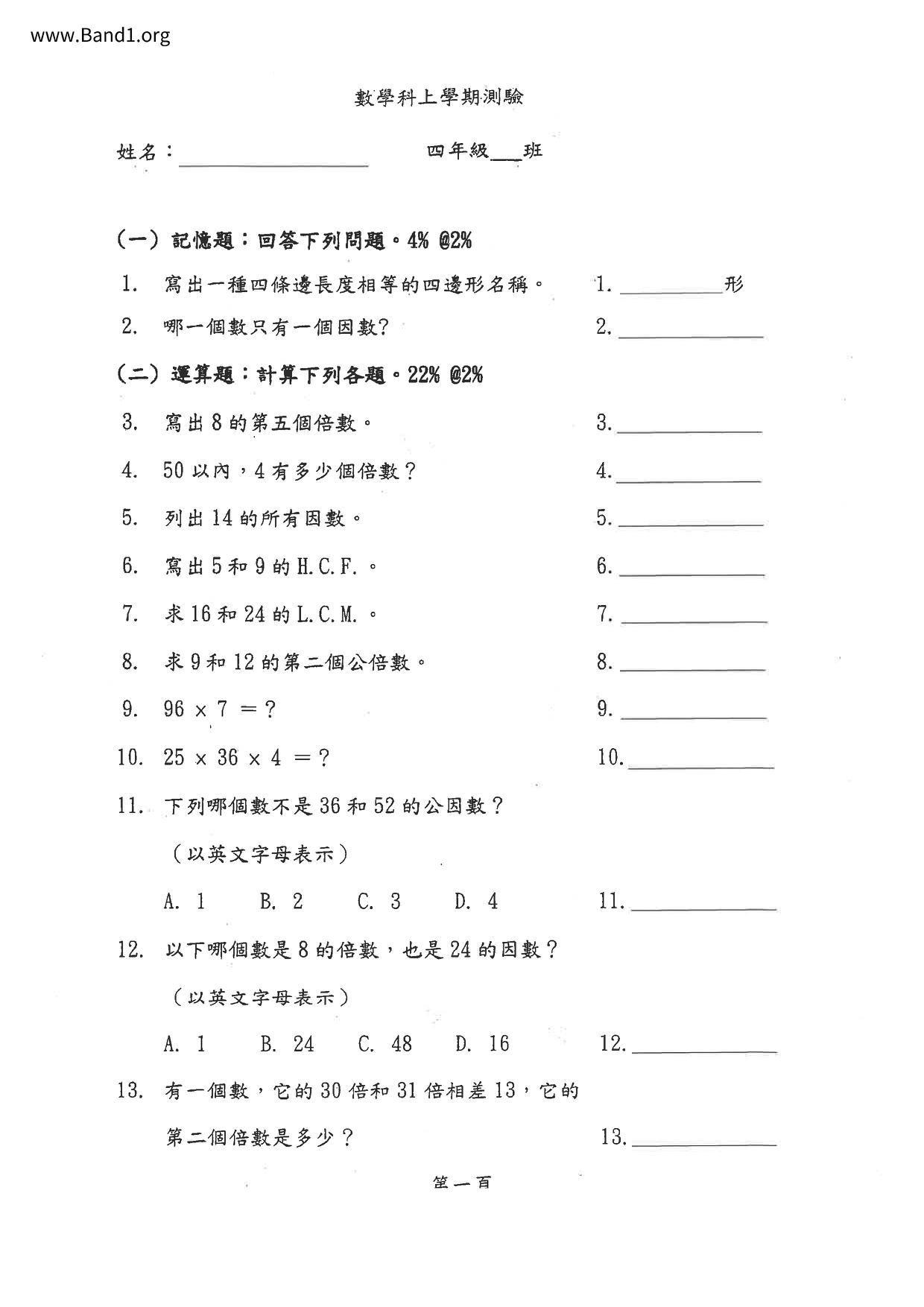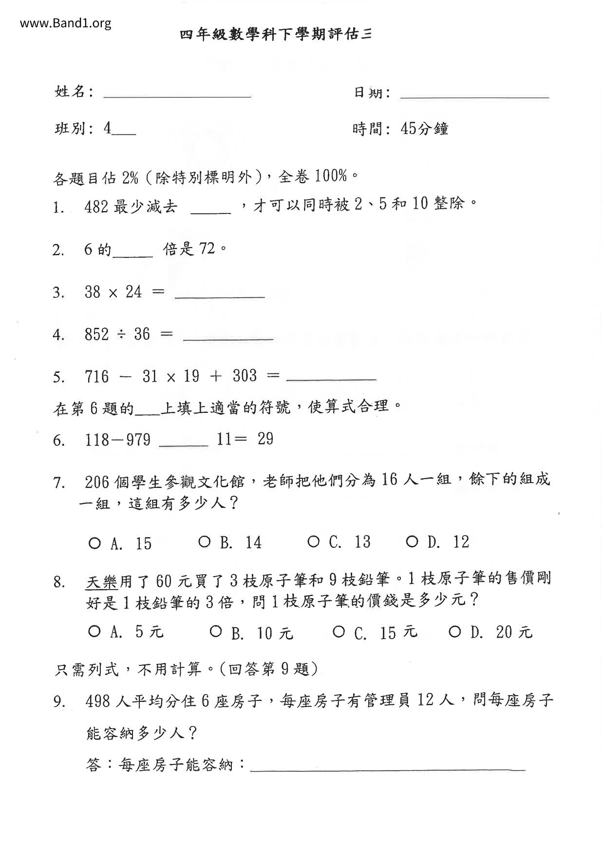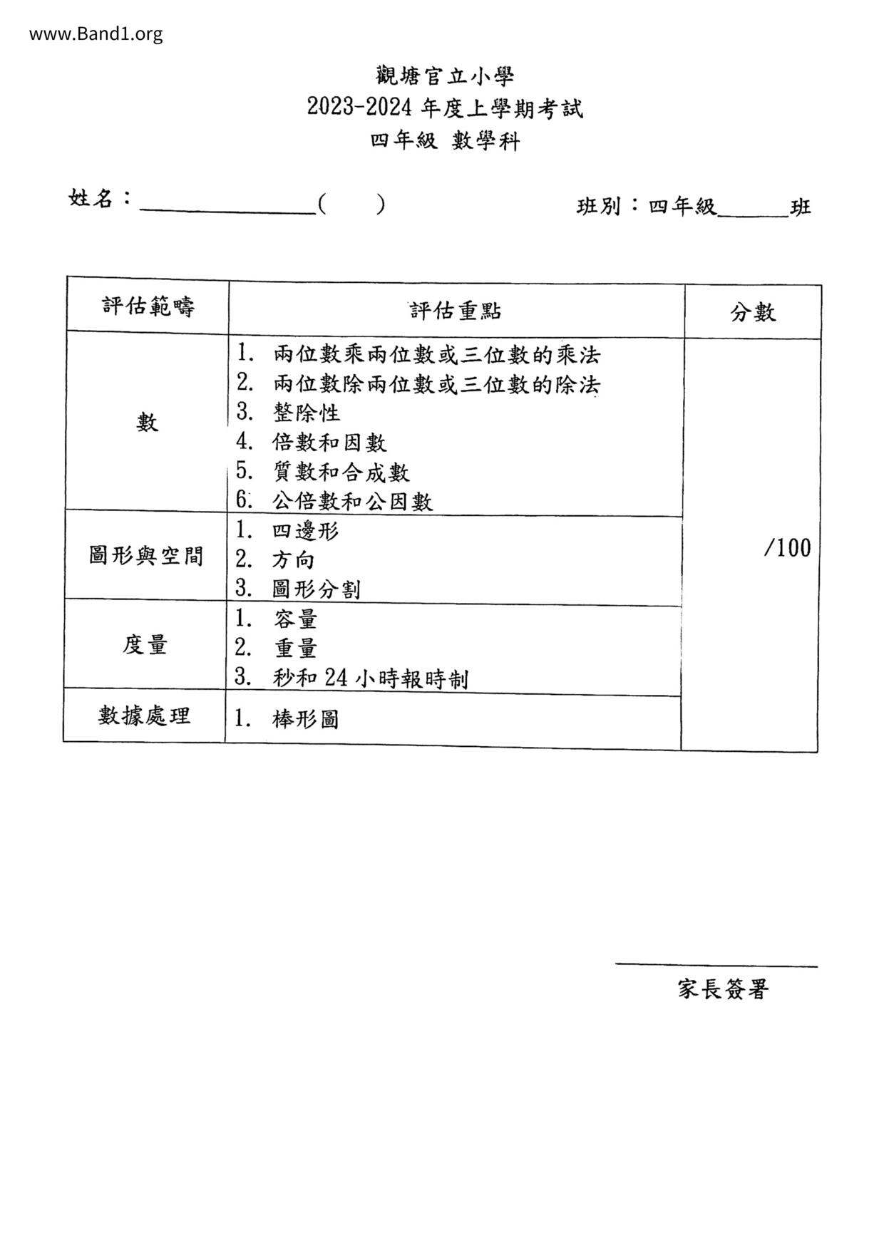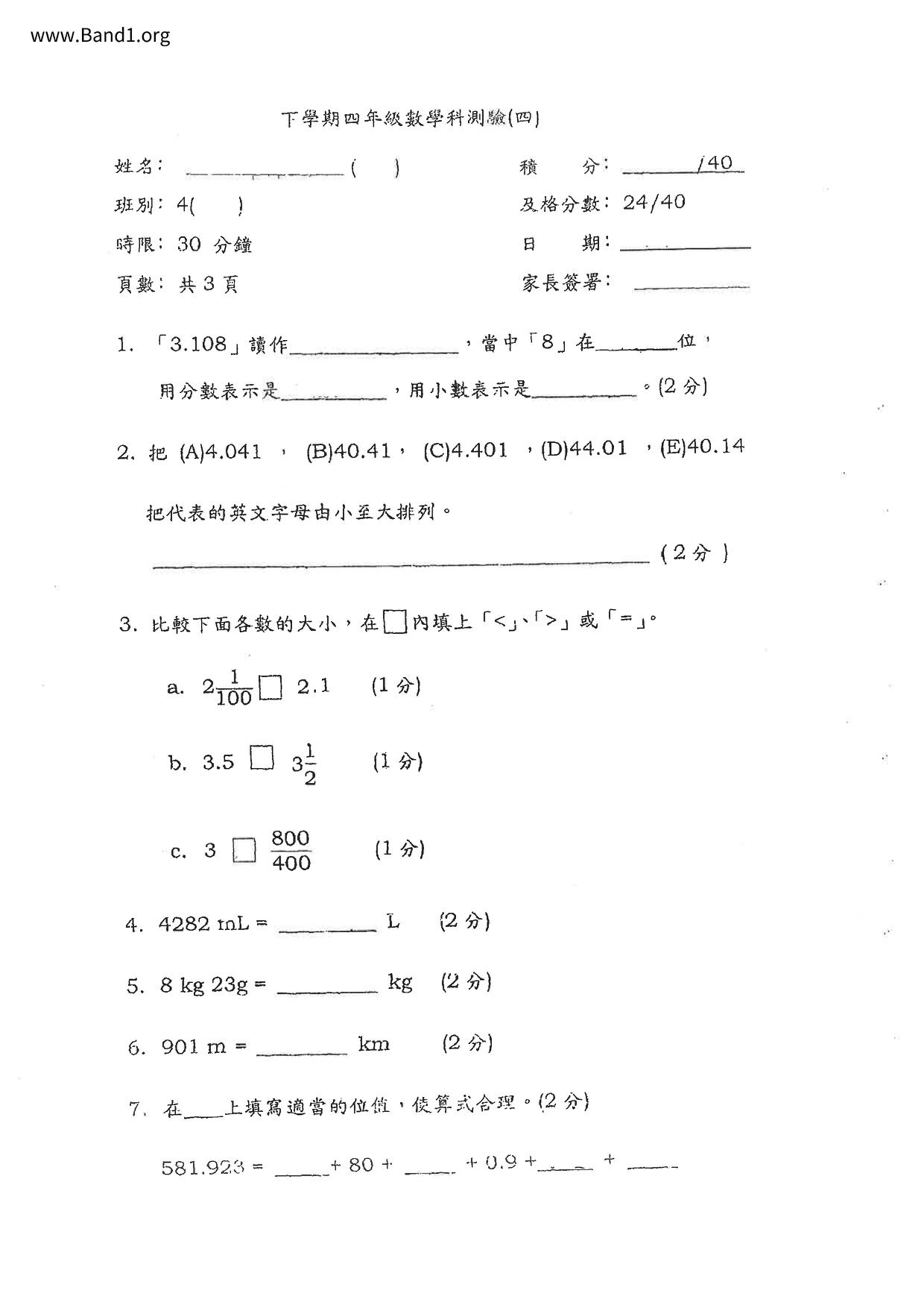 小四 數學 香港九龍塘基督教中華宣道會台山陳元喜小學