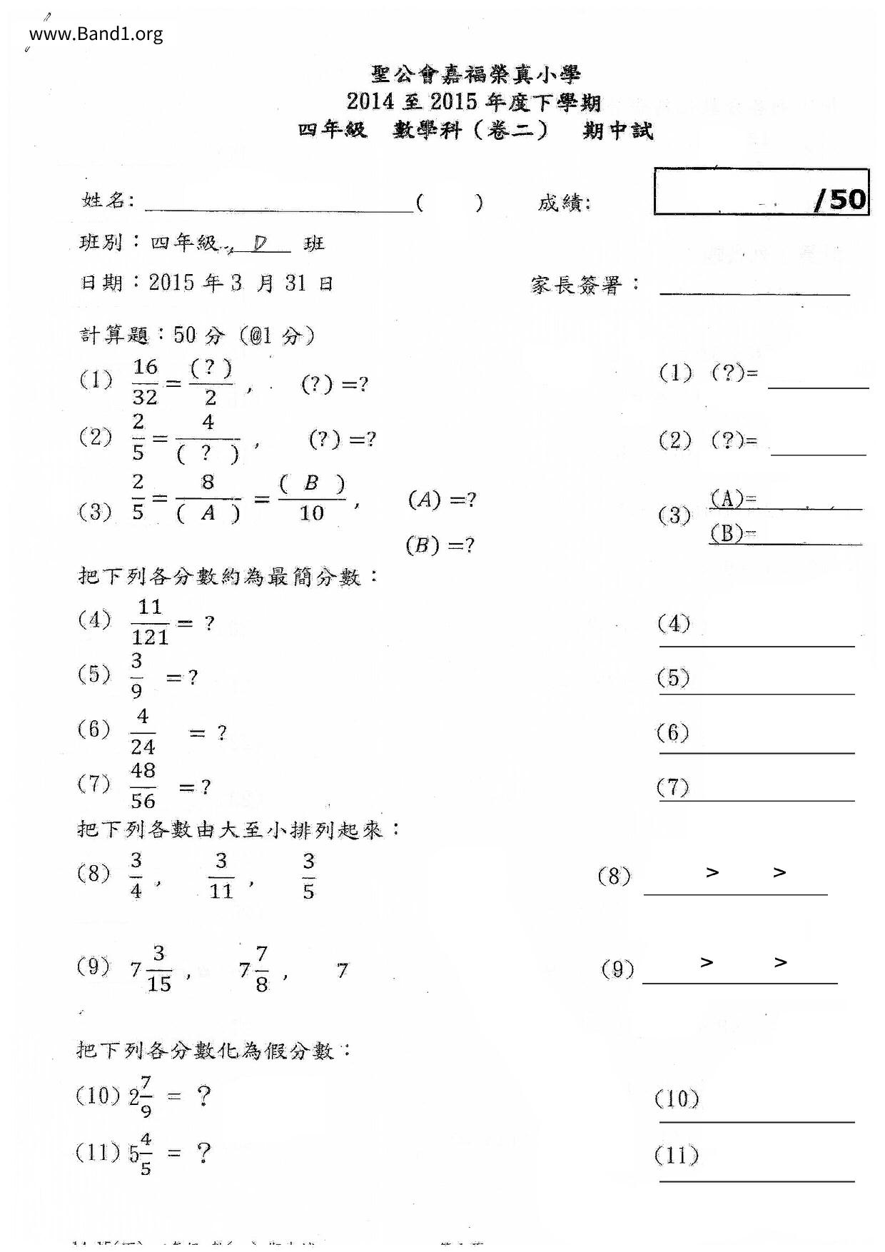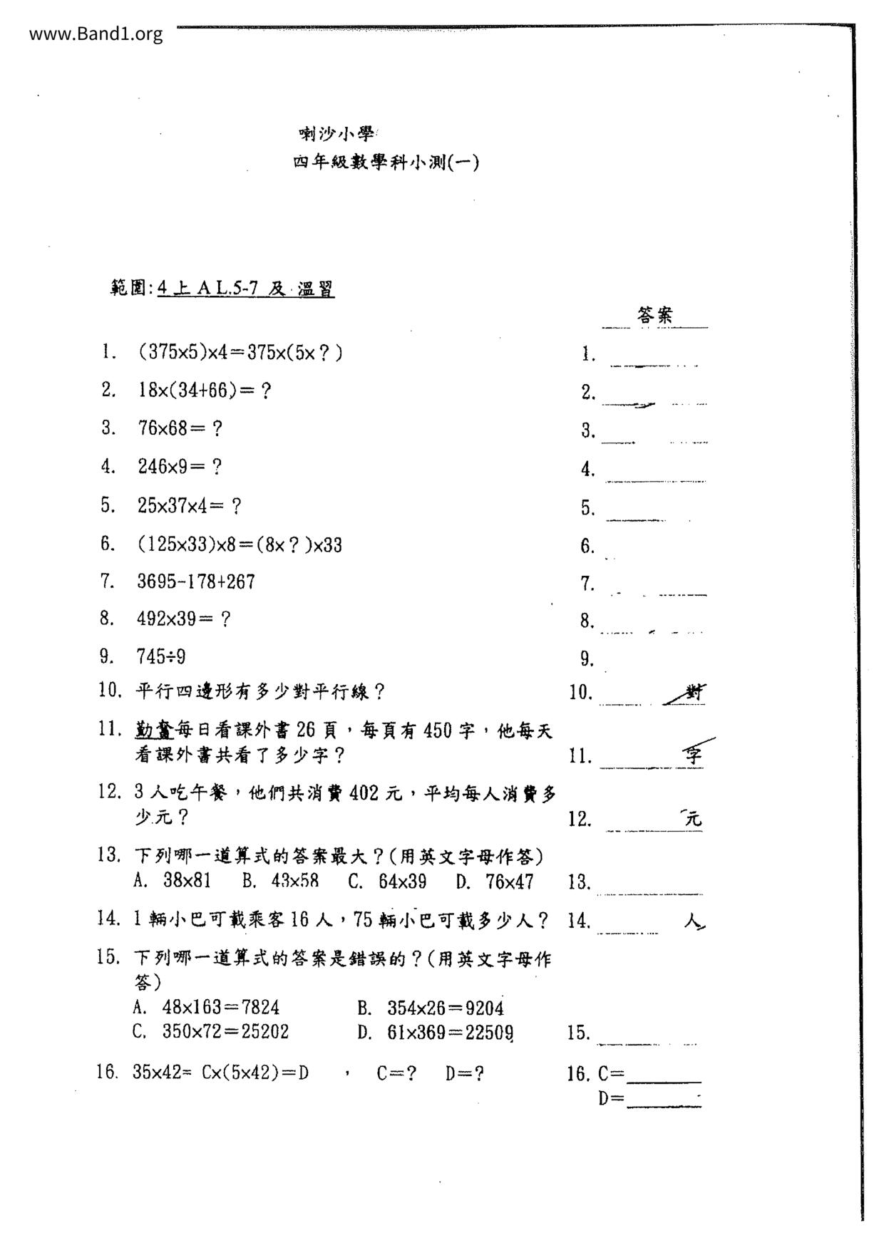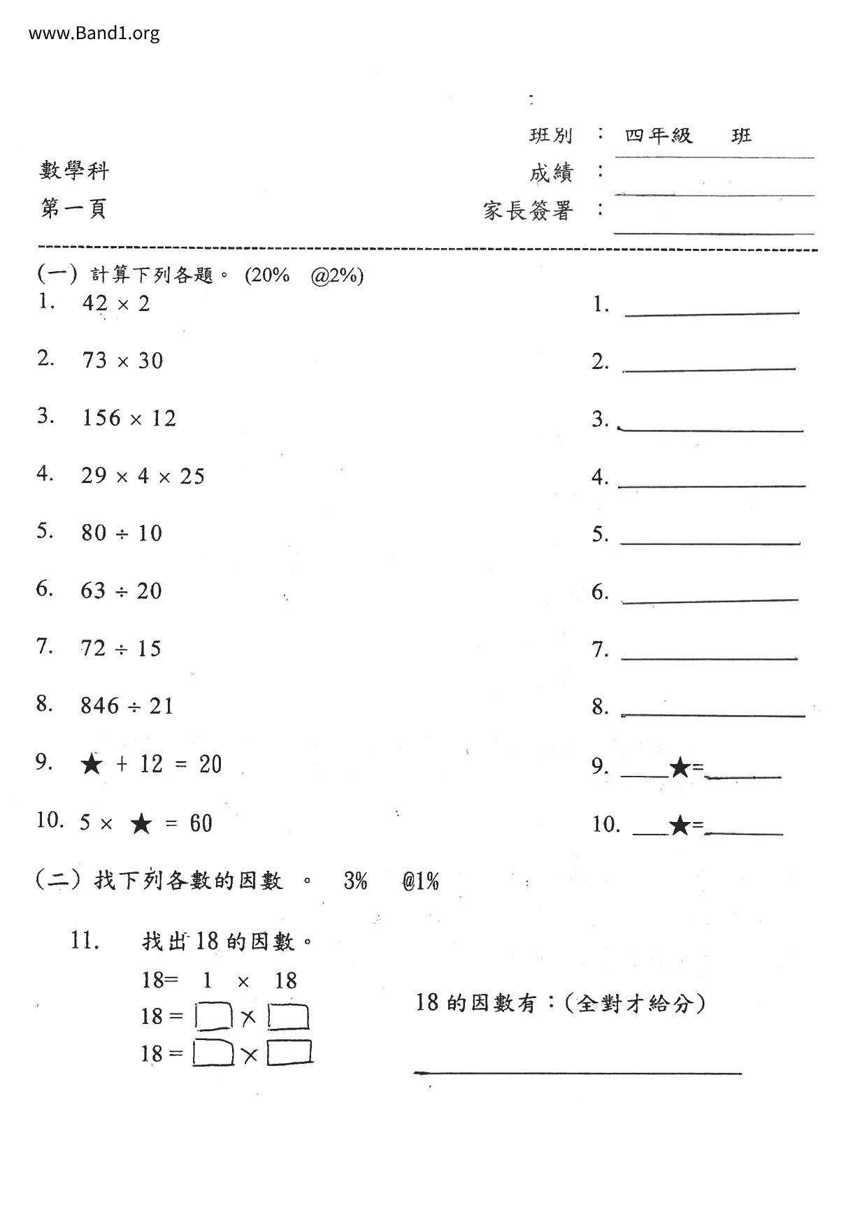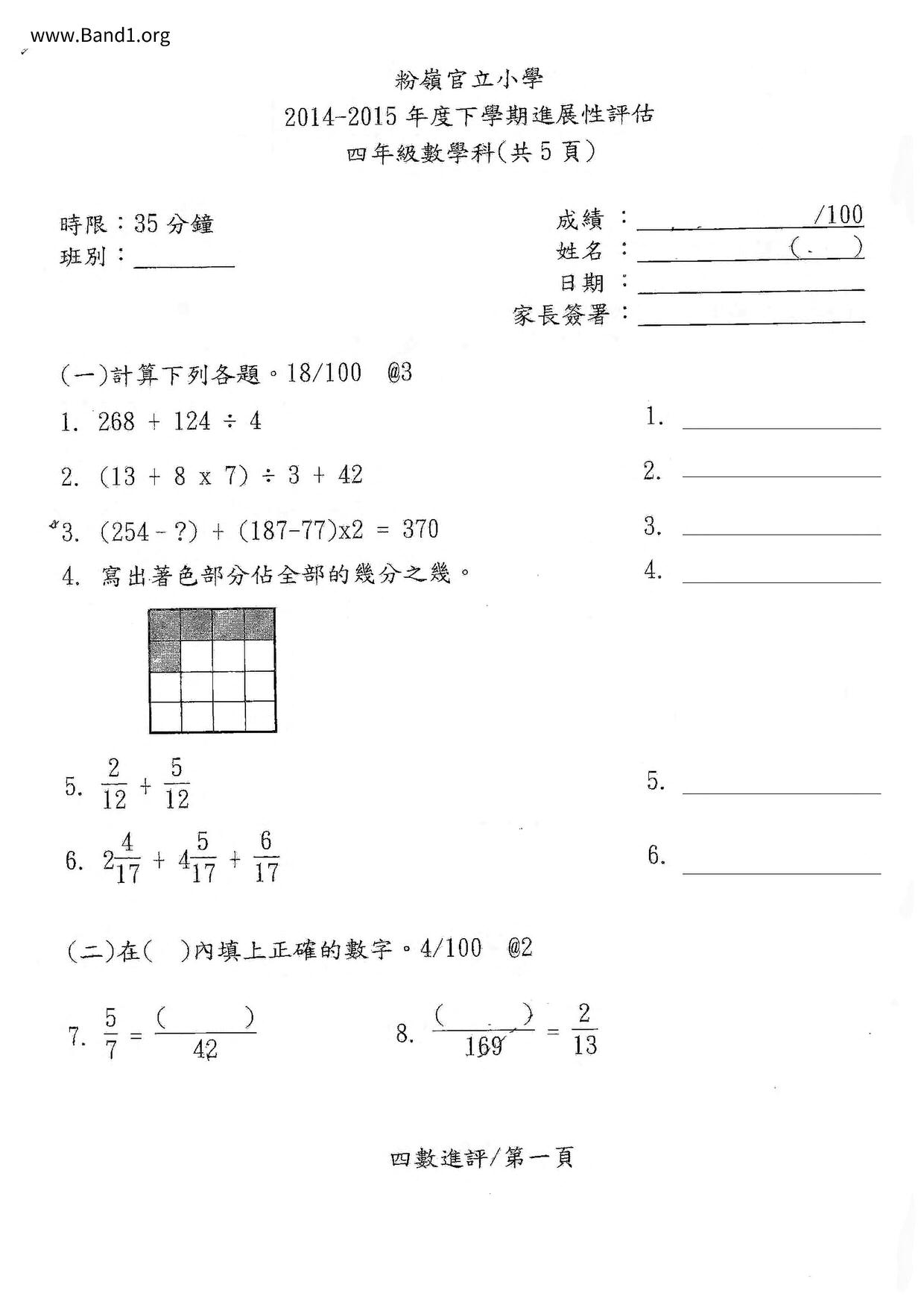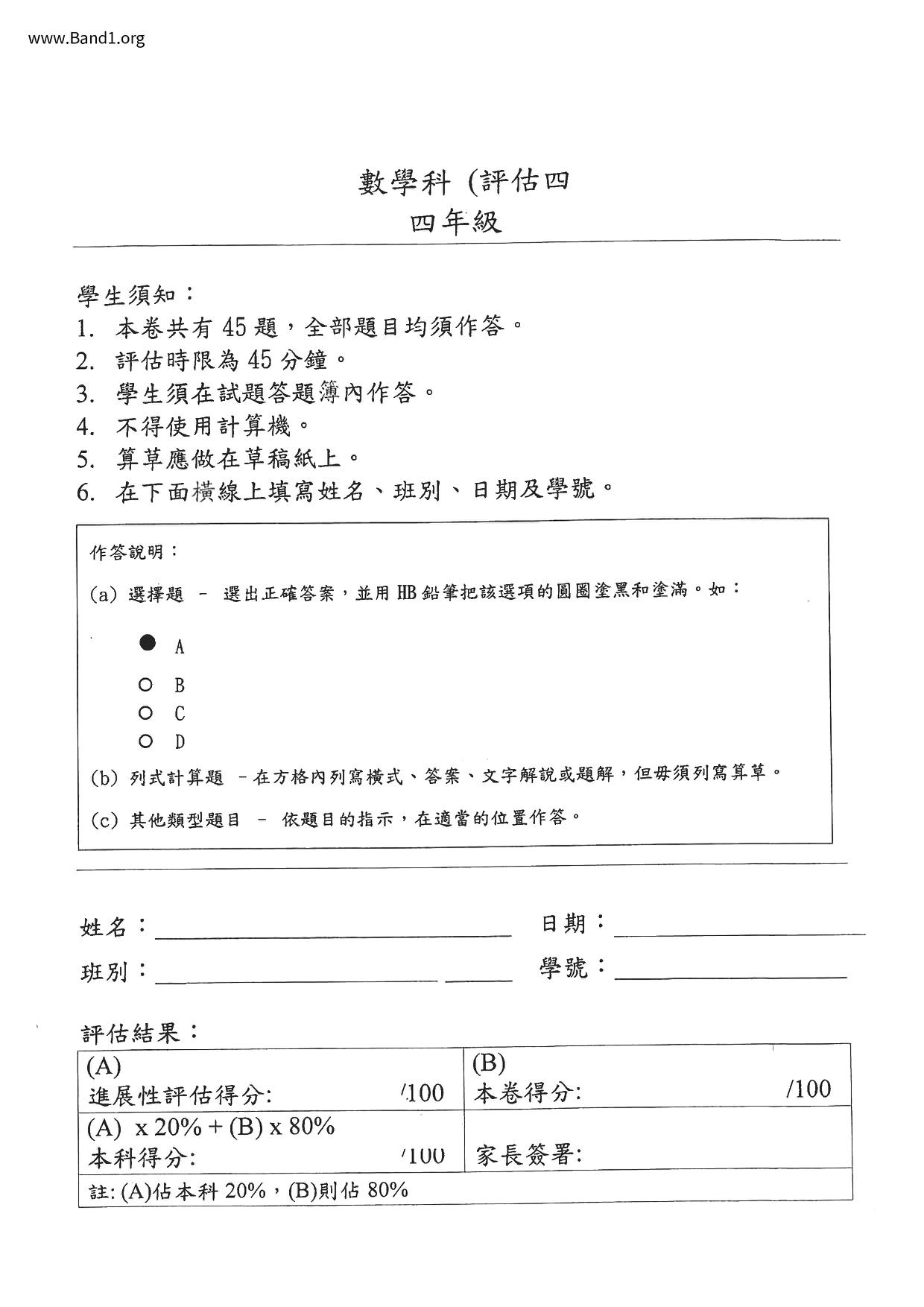 小四 數學 香港九龍塘基督教中華宣道會台山陳元喜小學