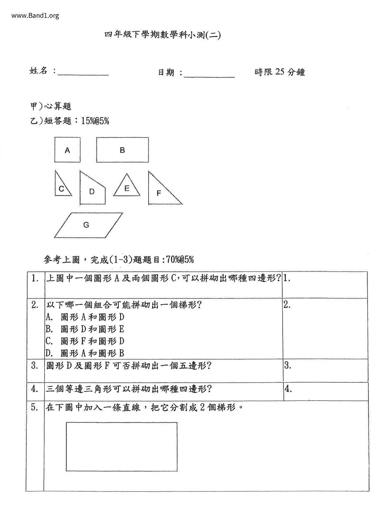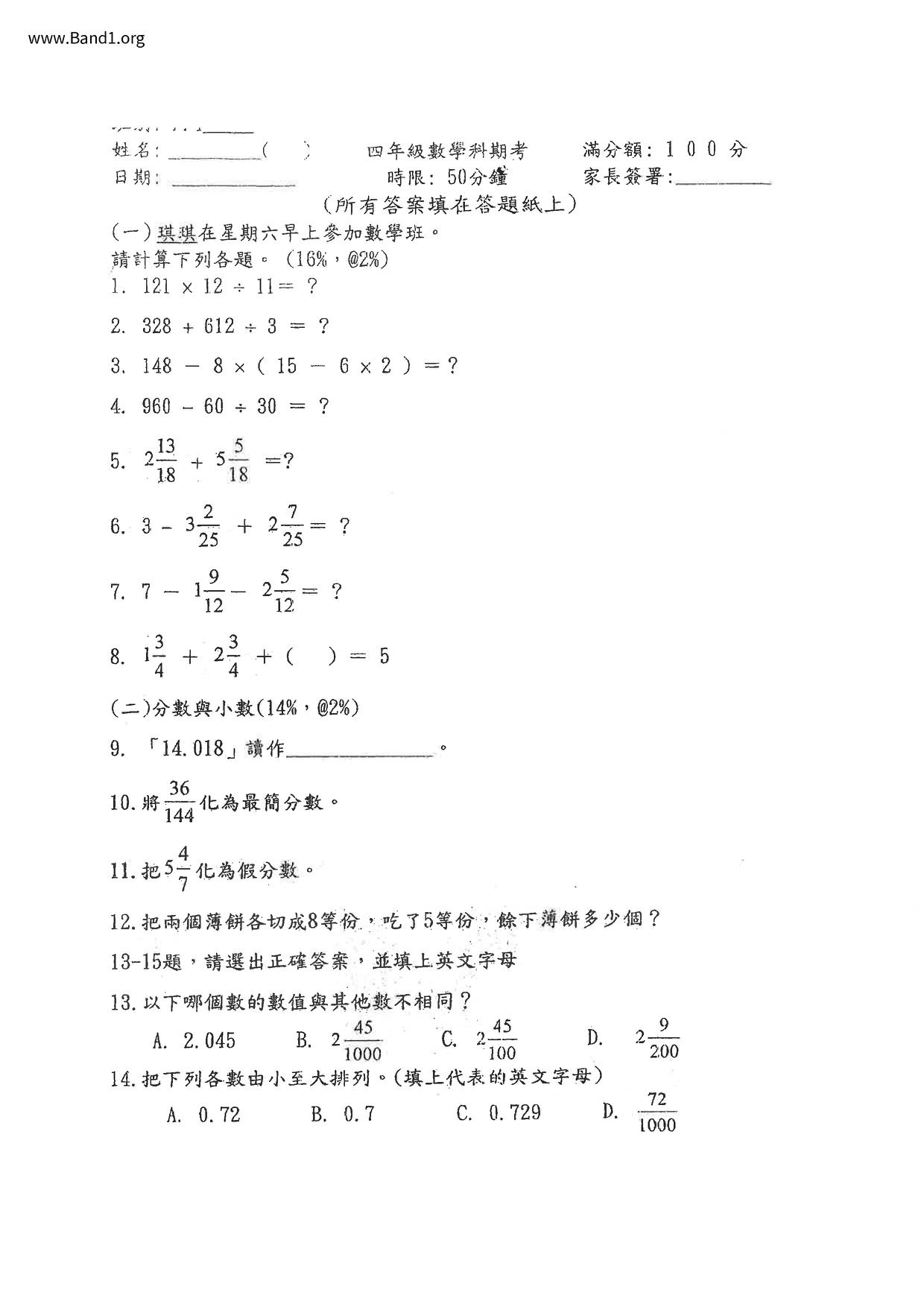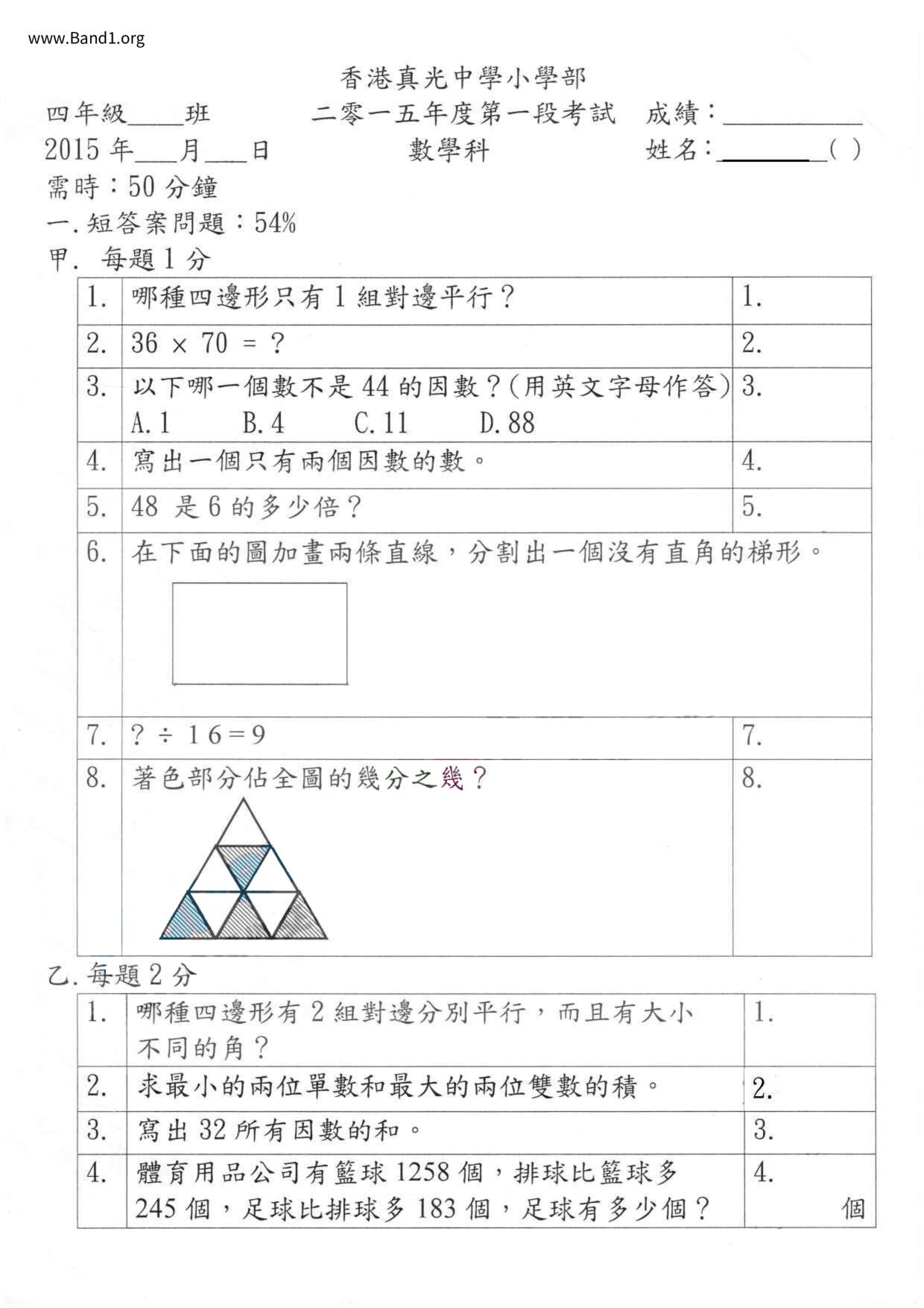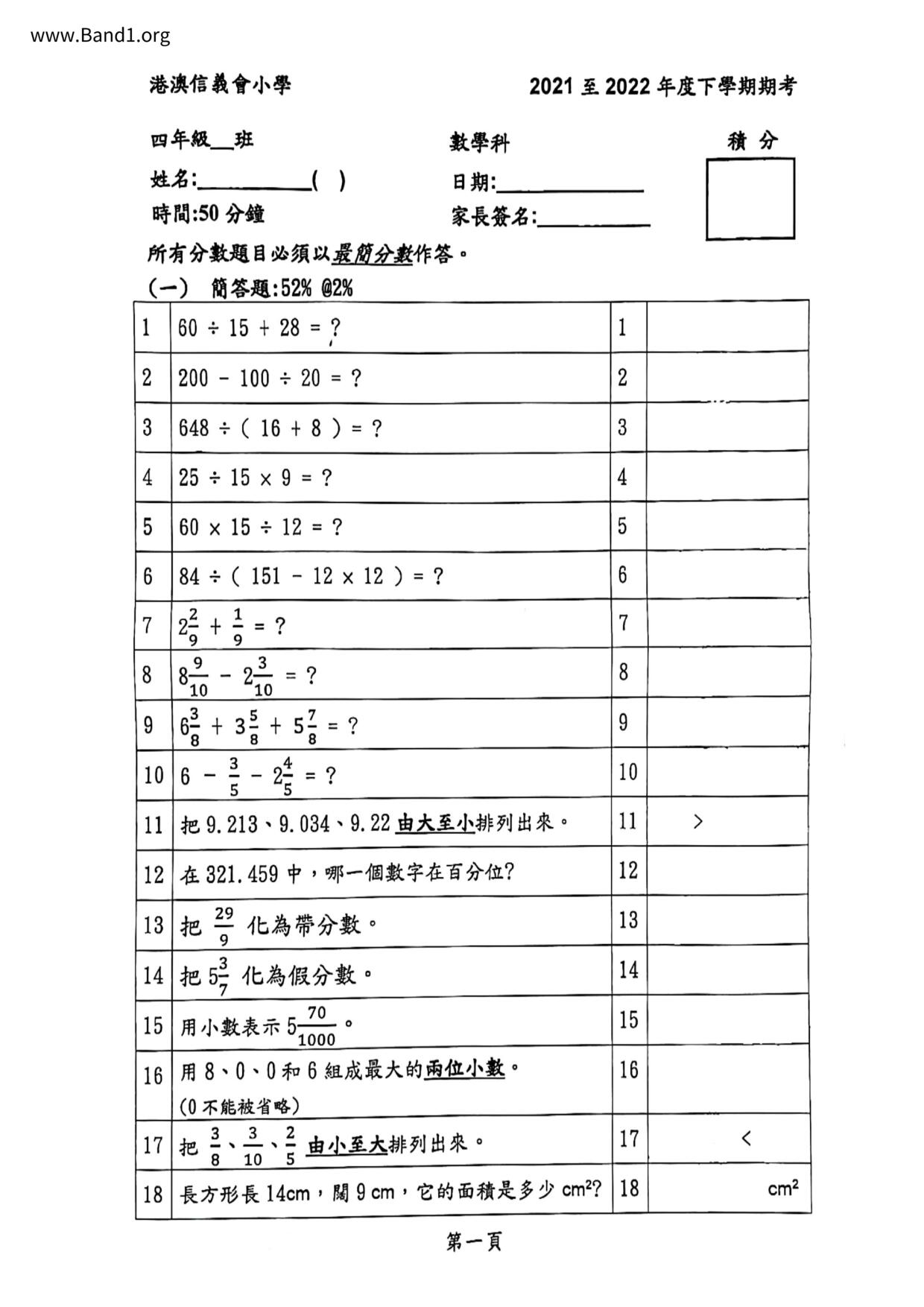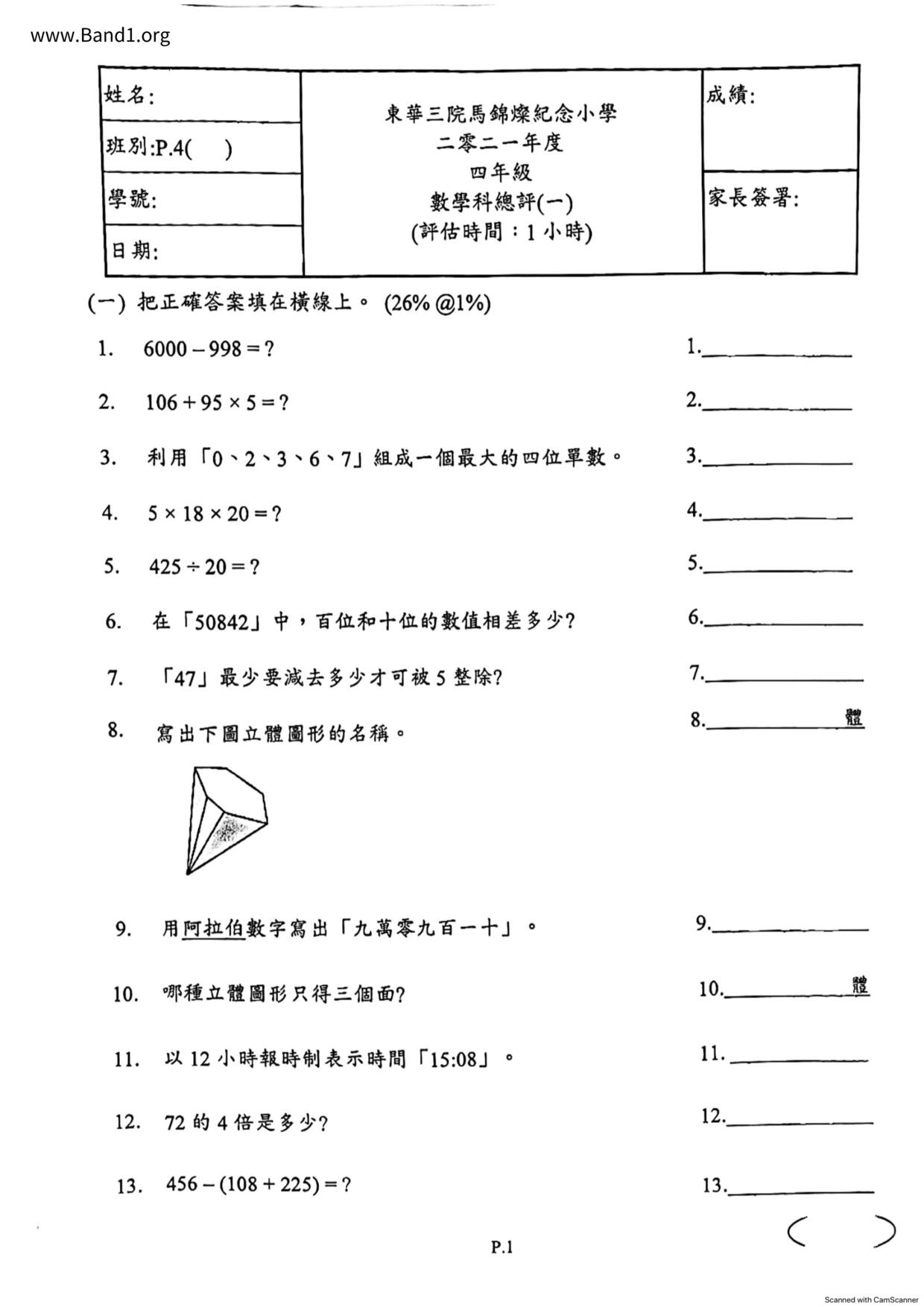 小四 數學 香港九龍塘基督教中華宣道會台山陳元喜小學