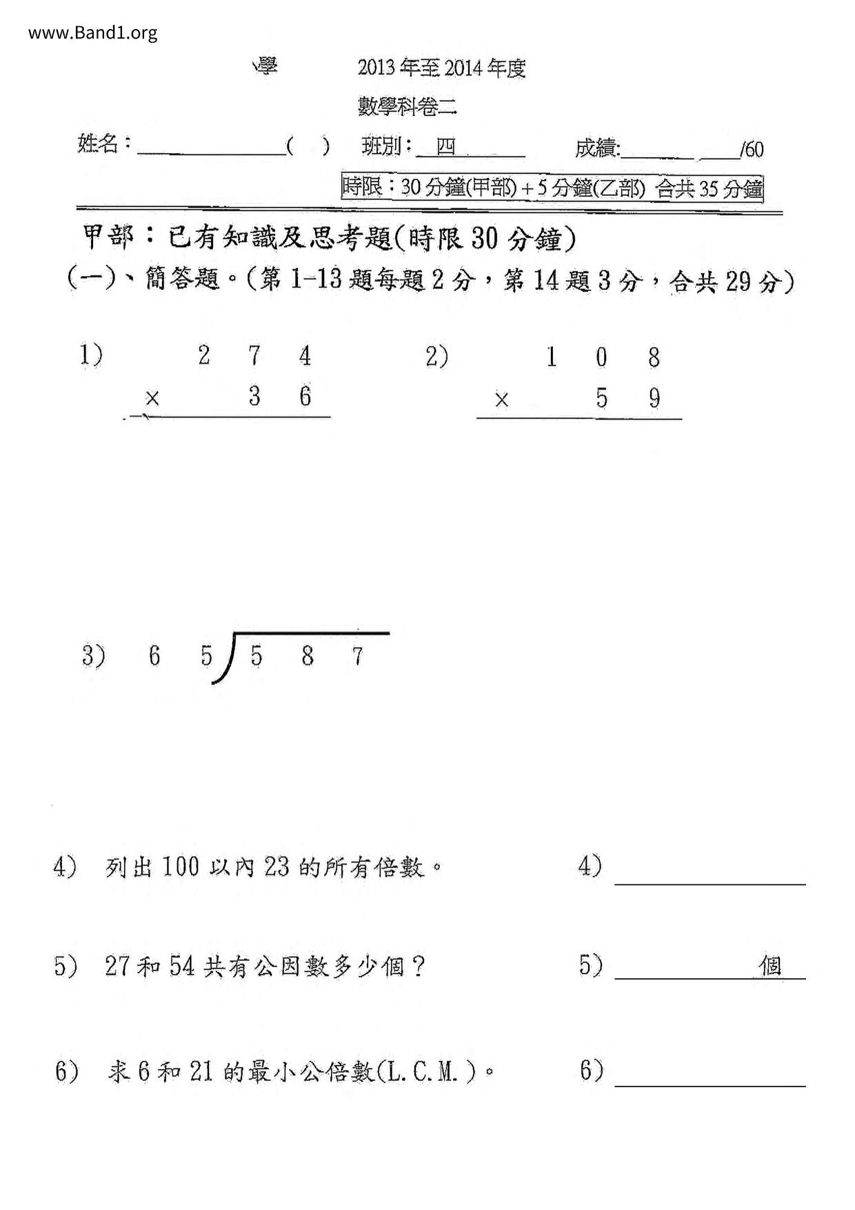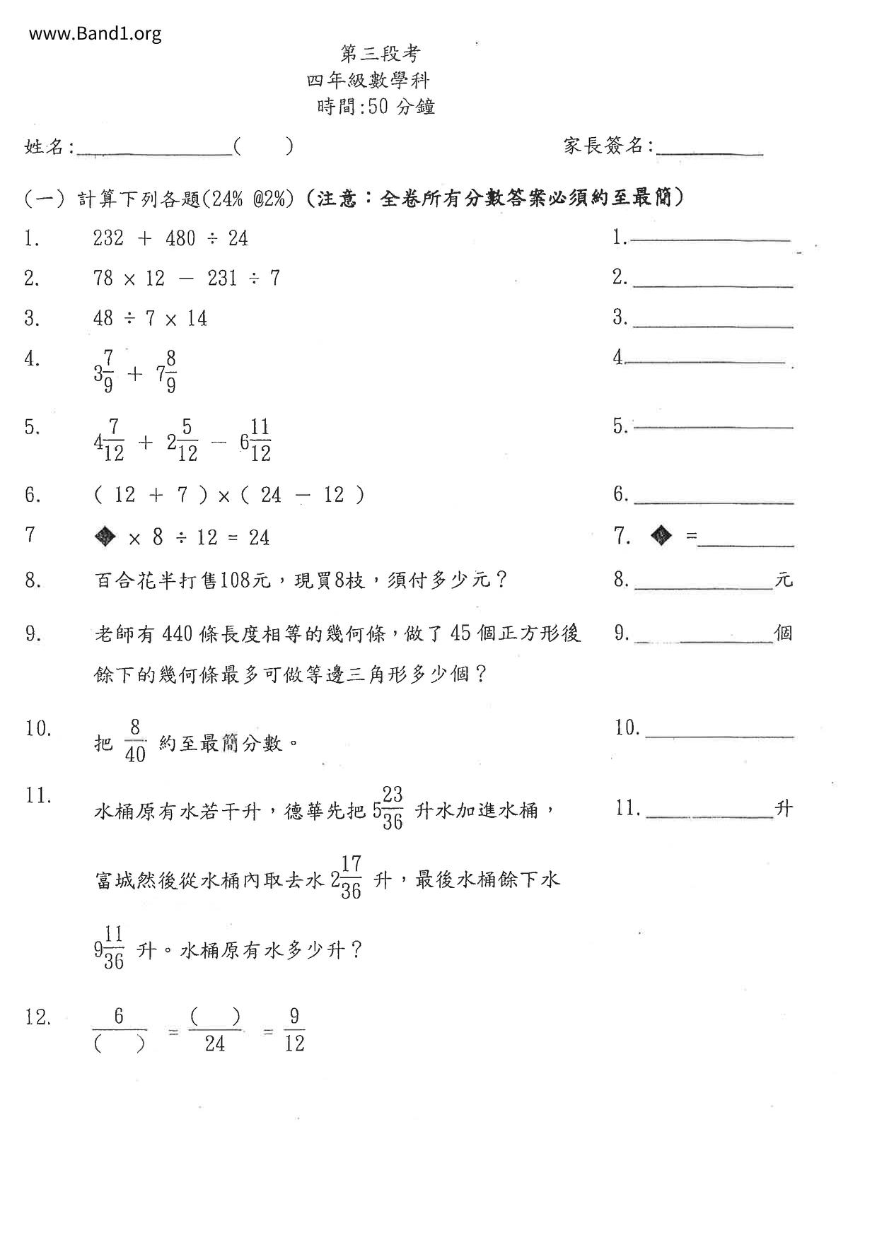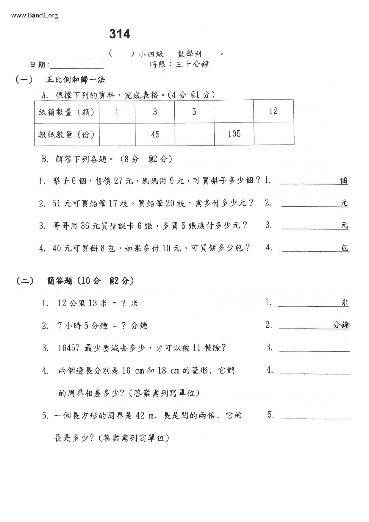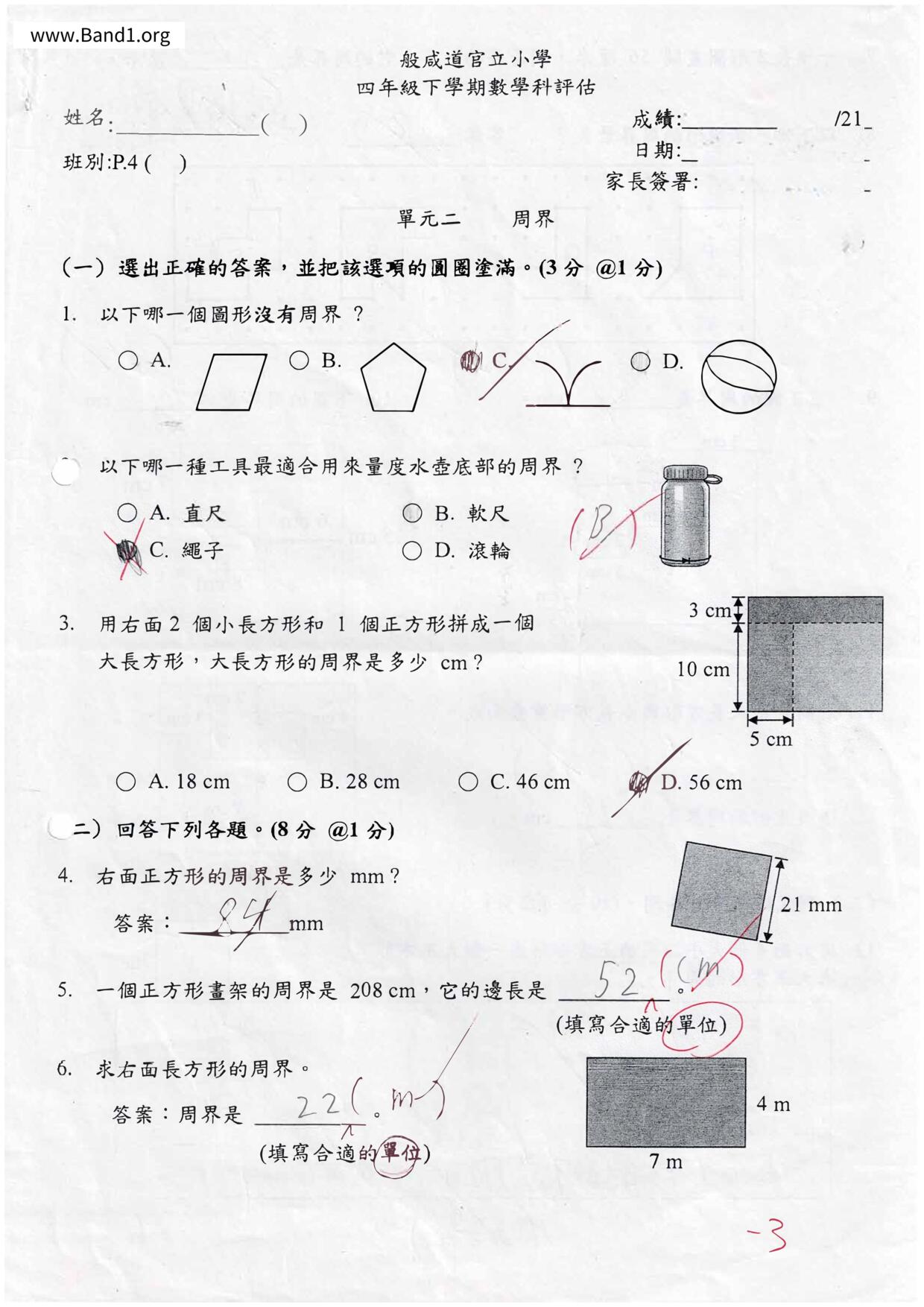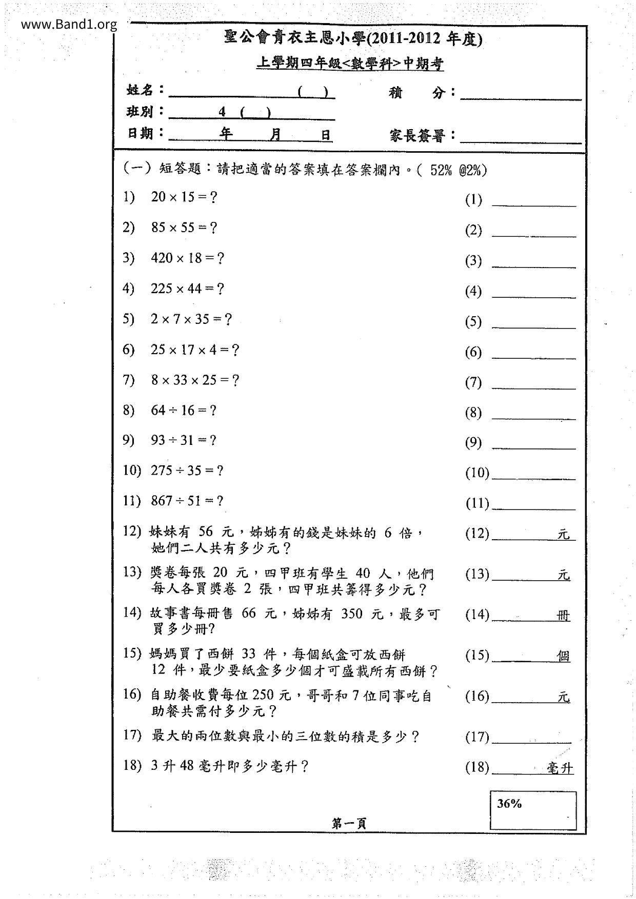 小四 數學 香港九龍塘基督教中華宣道會台山陳元喜小學
