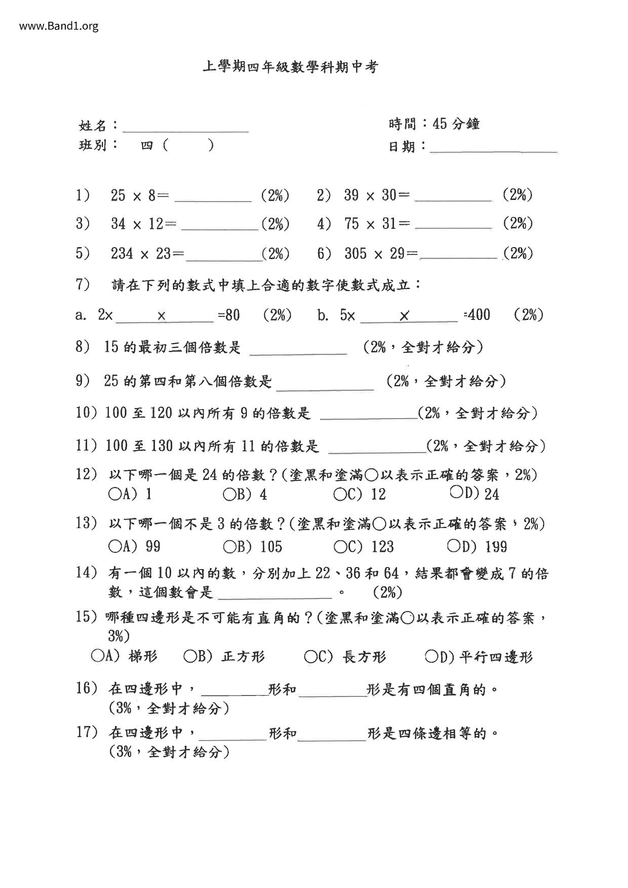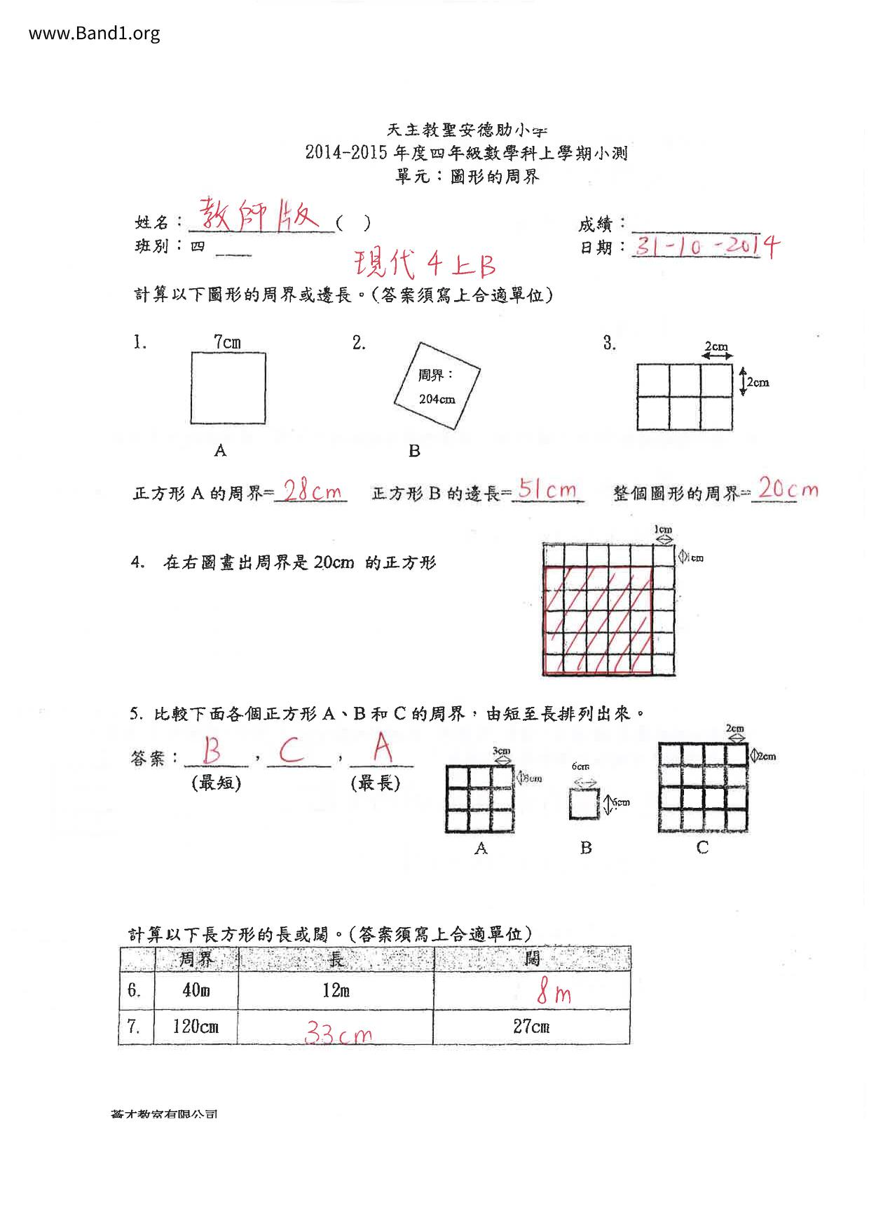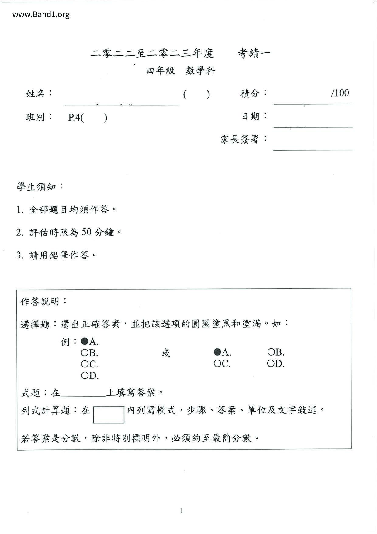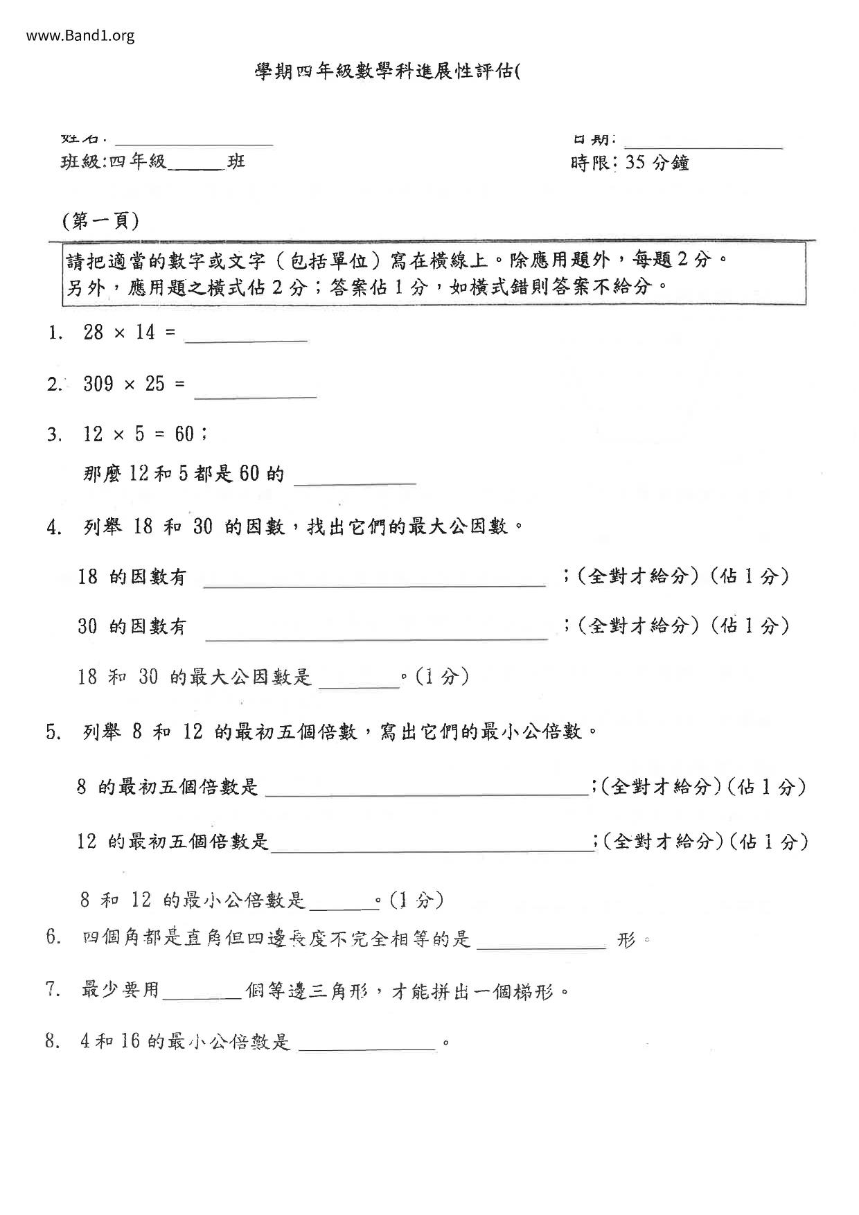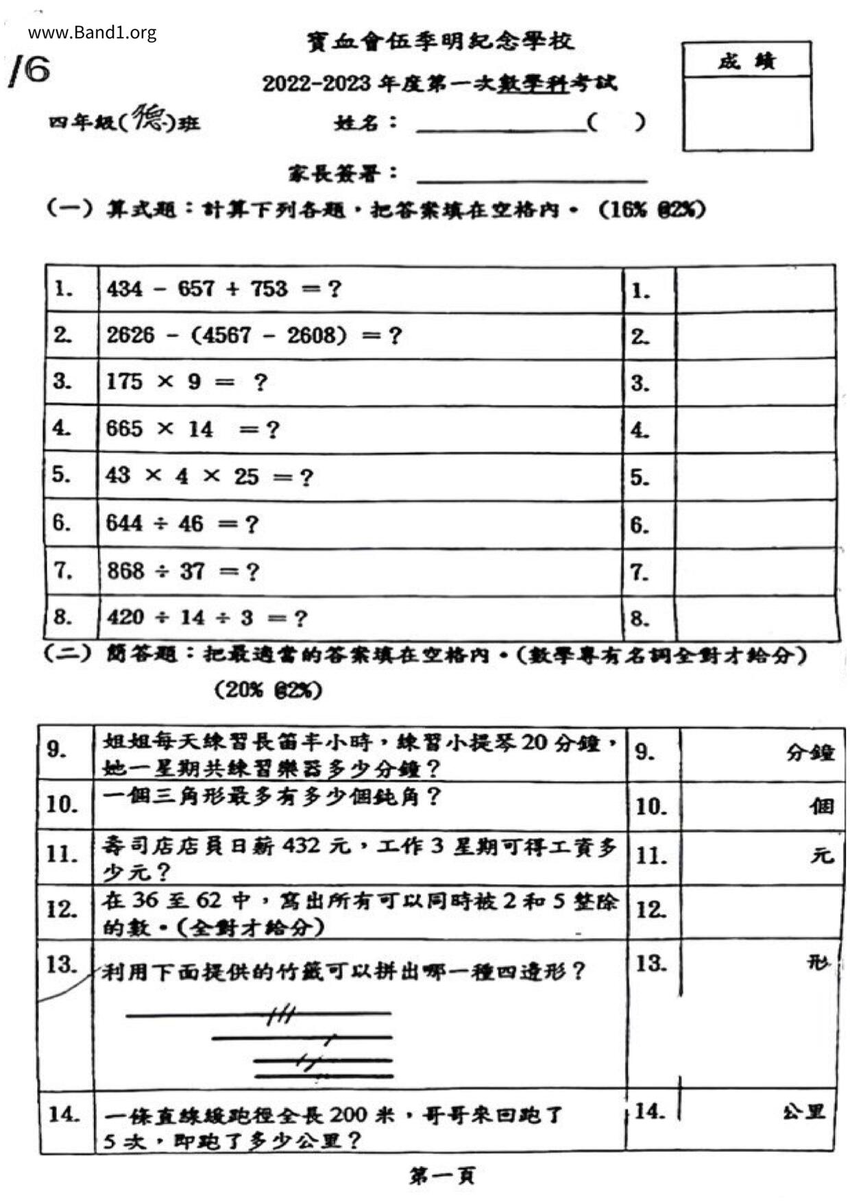 小四 數學 香港九龍塘基督教中華宣道會台山陳元喜小學