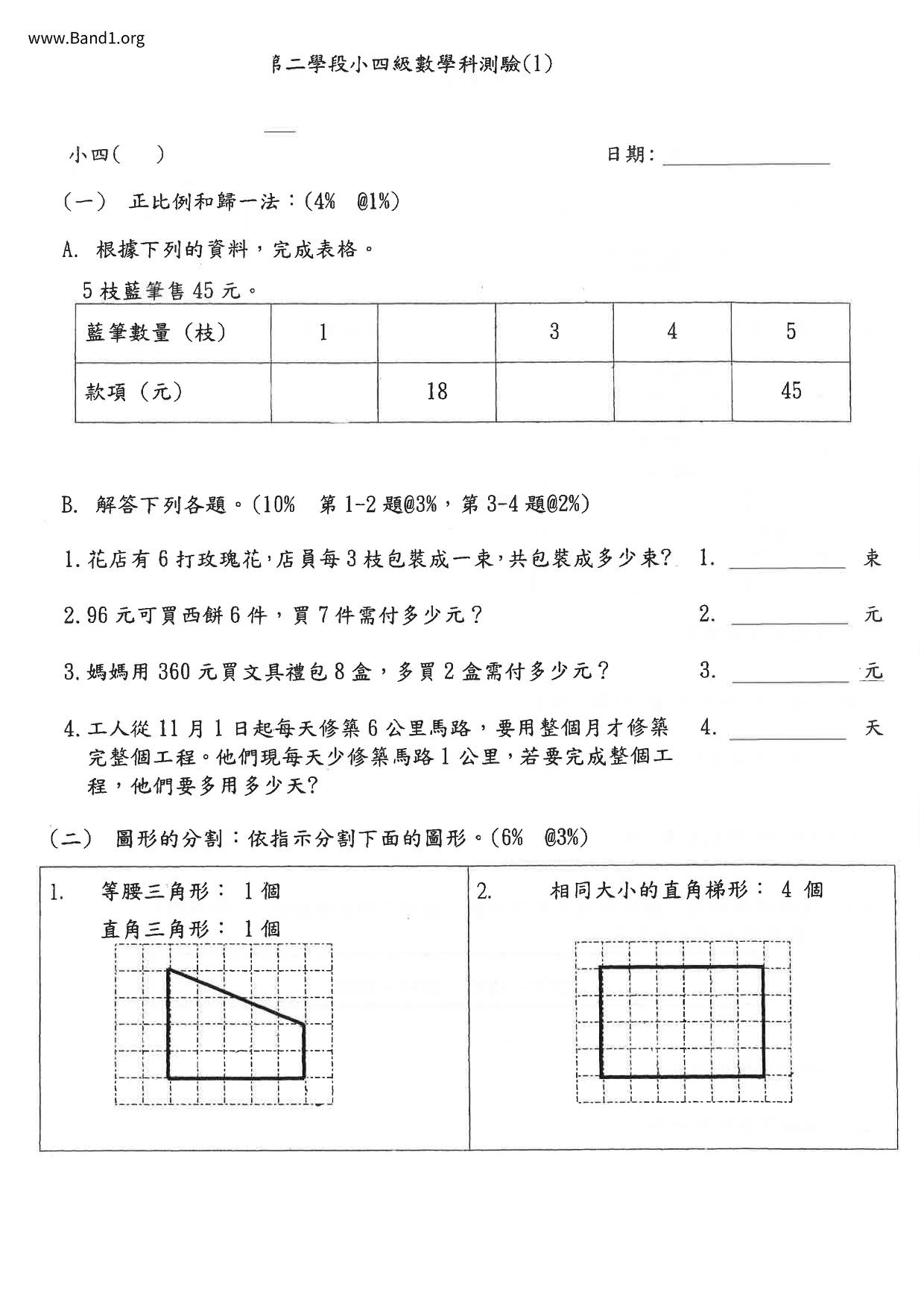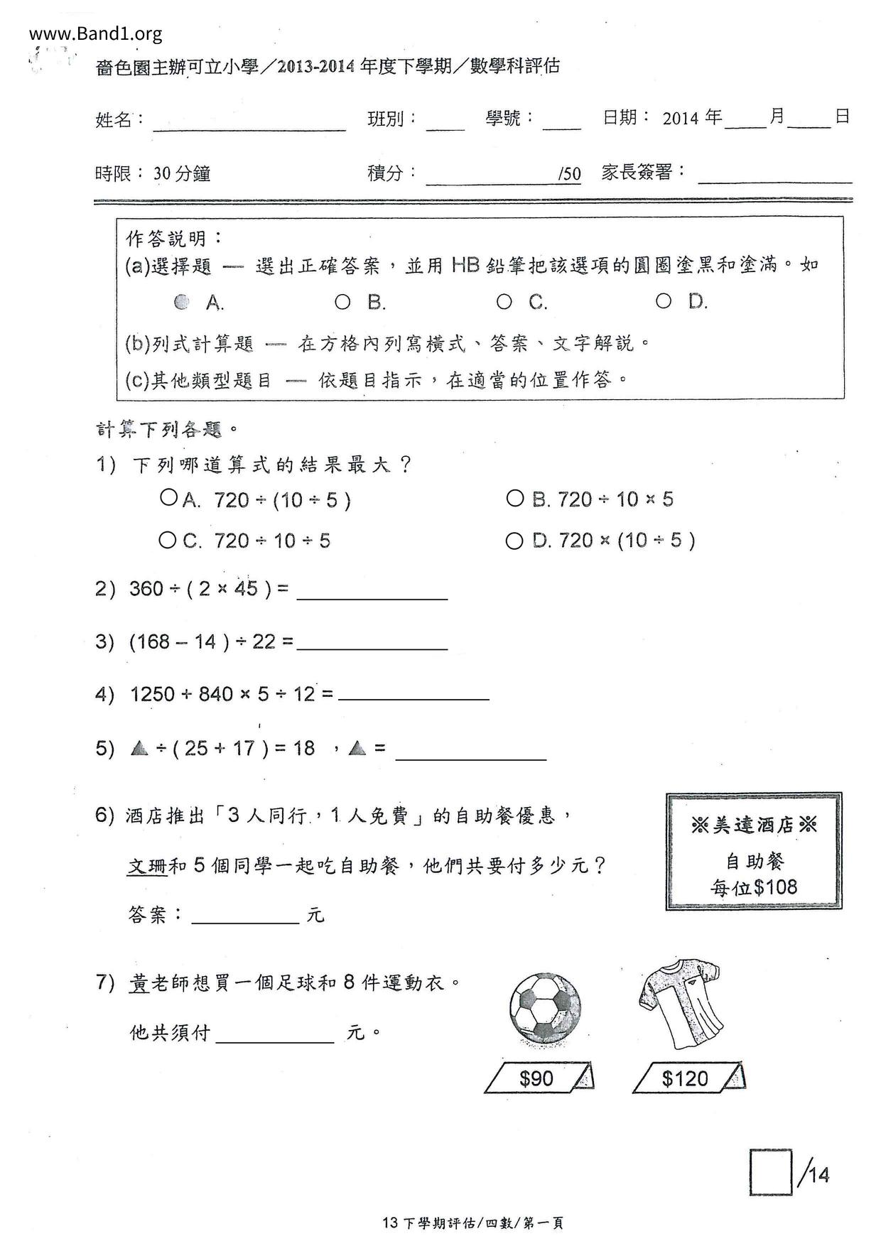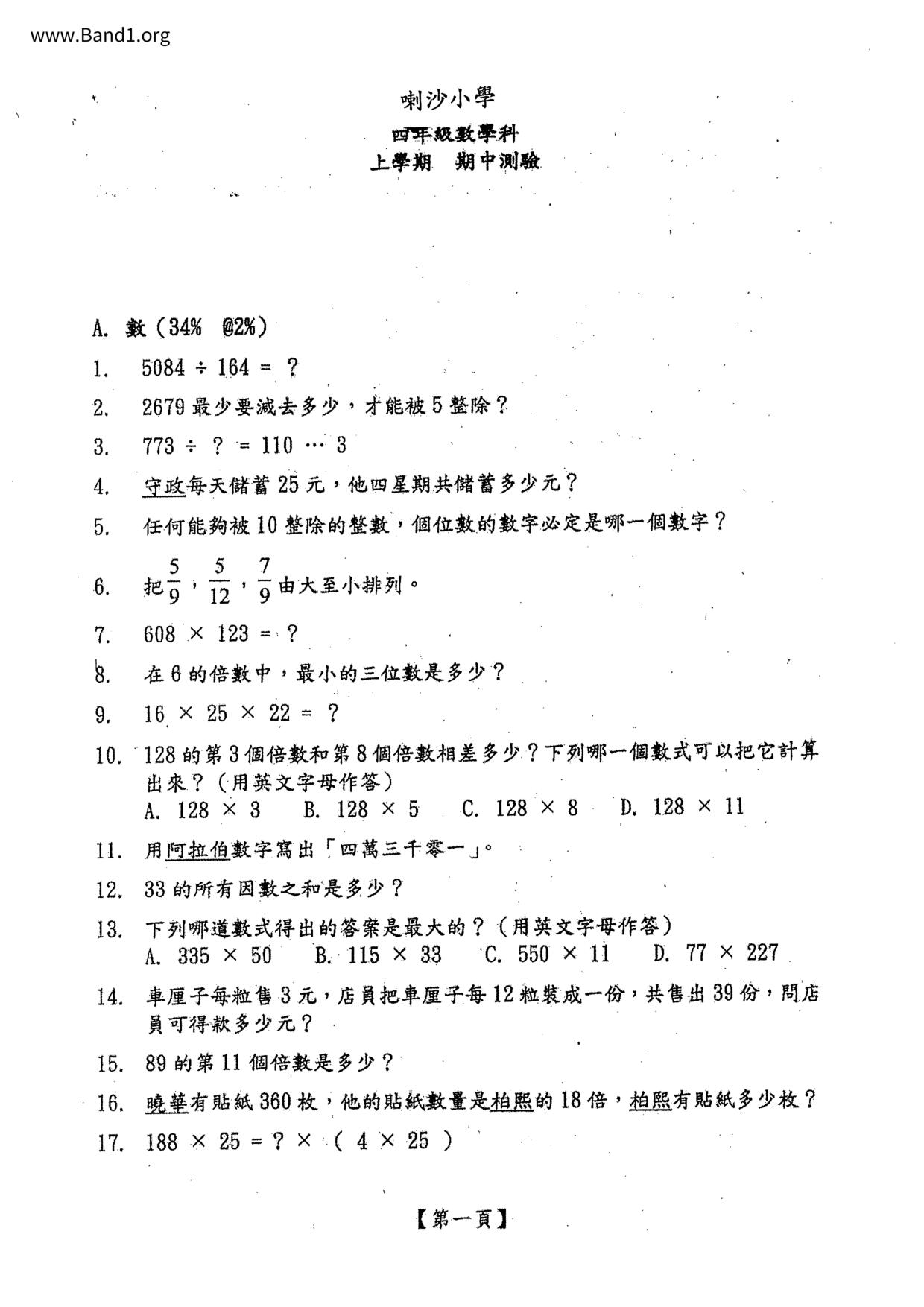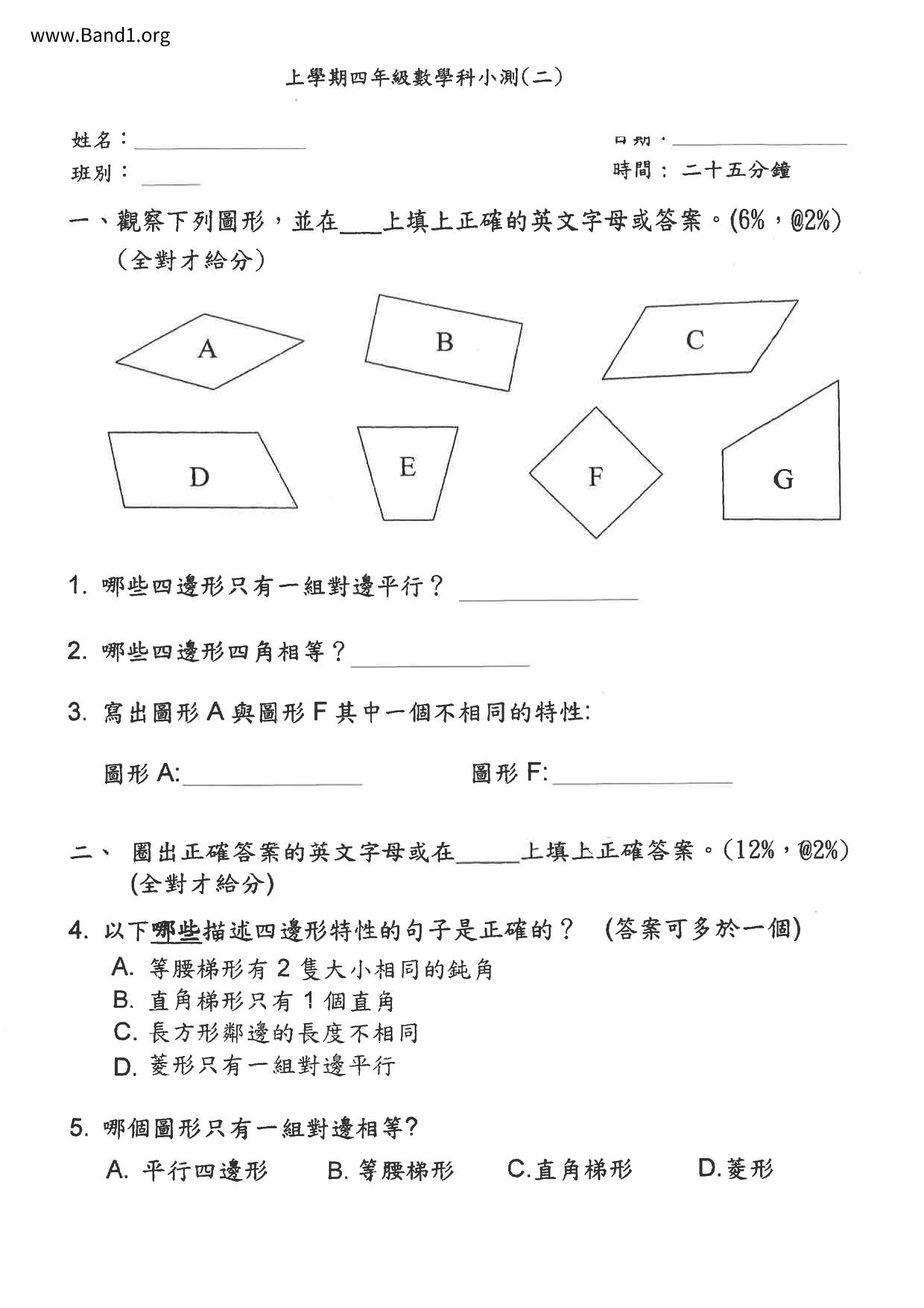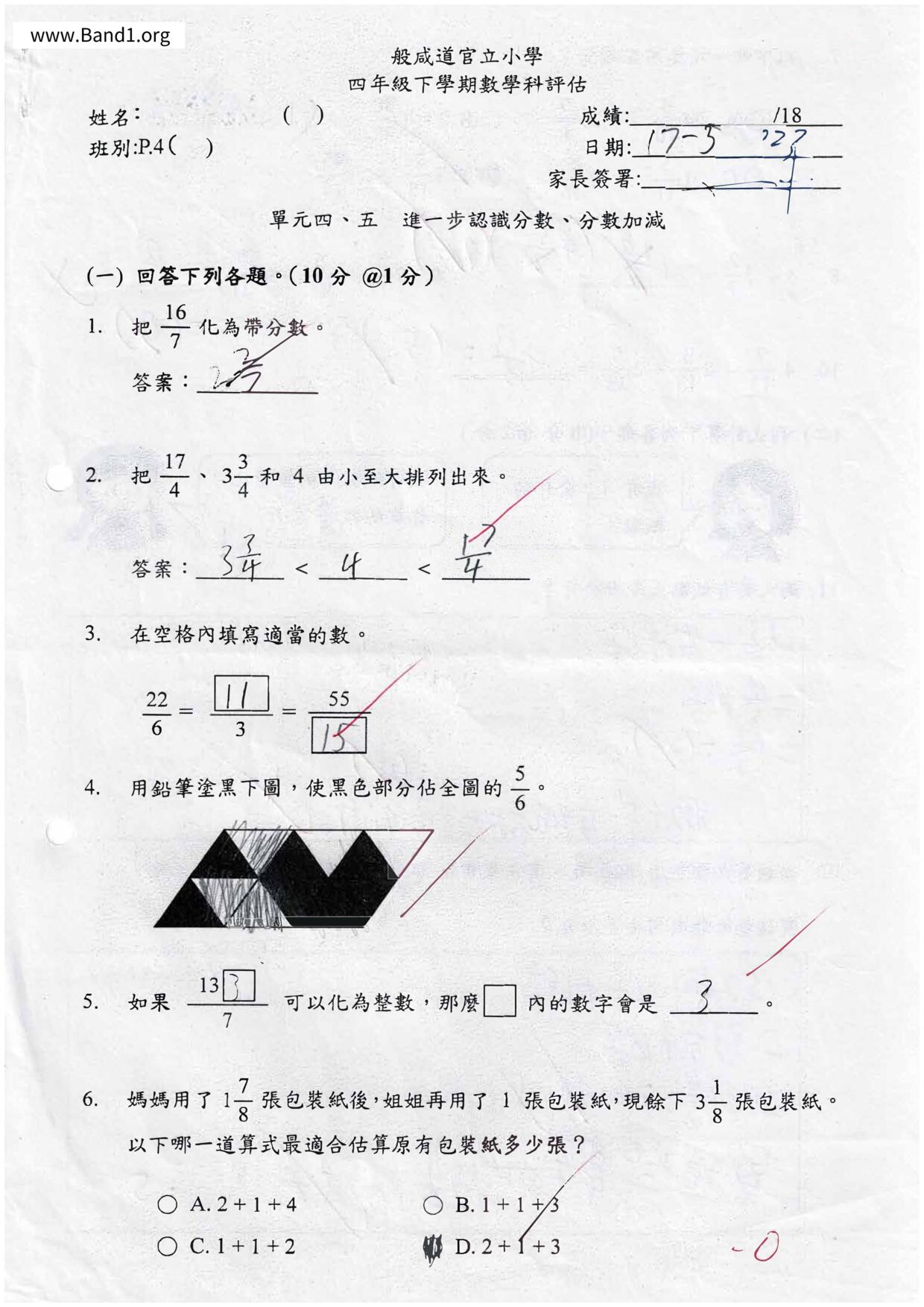 小四 數學 香港九龍塘基督教中華宣道會台山陳元喜小學
