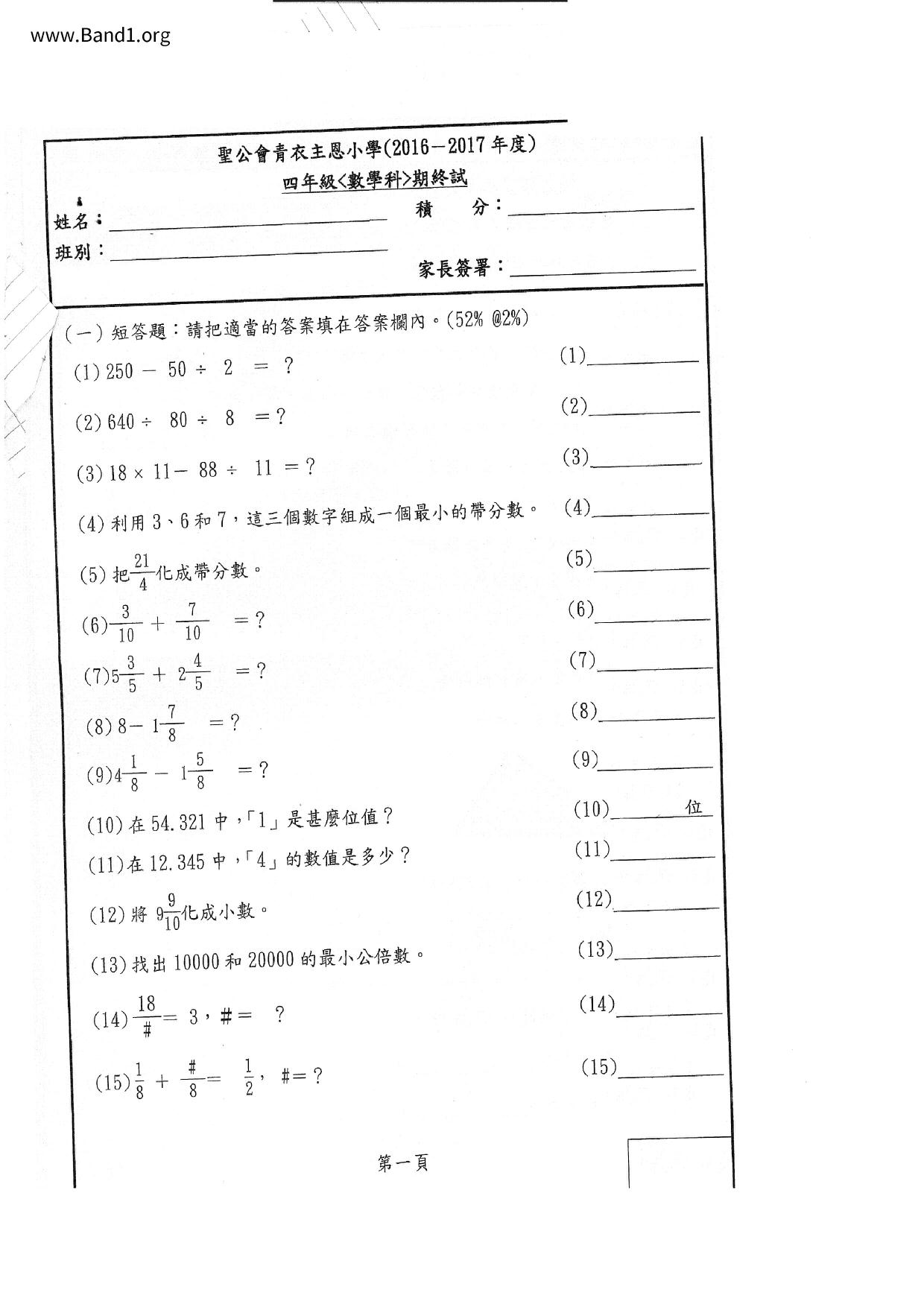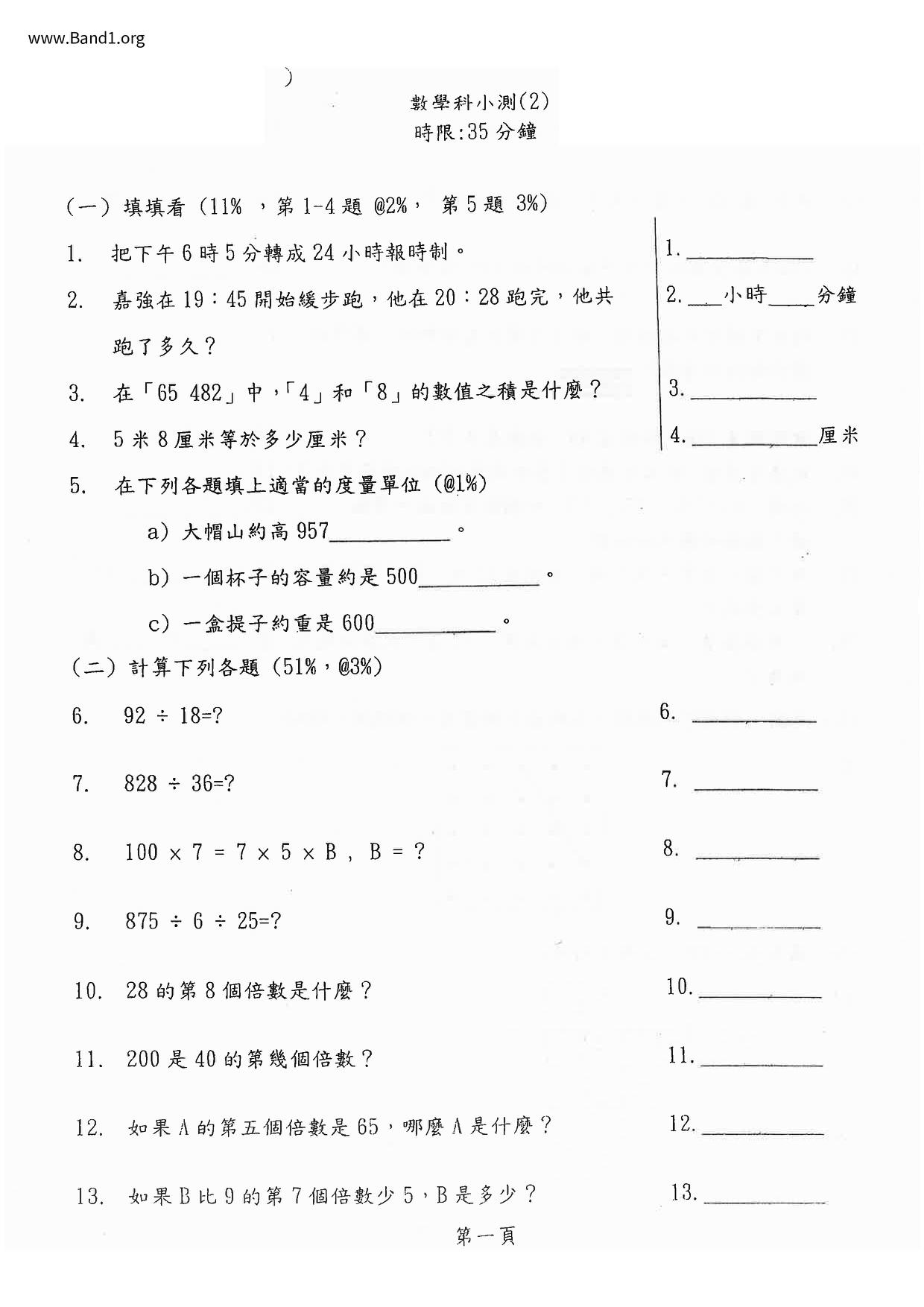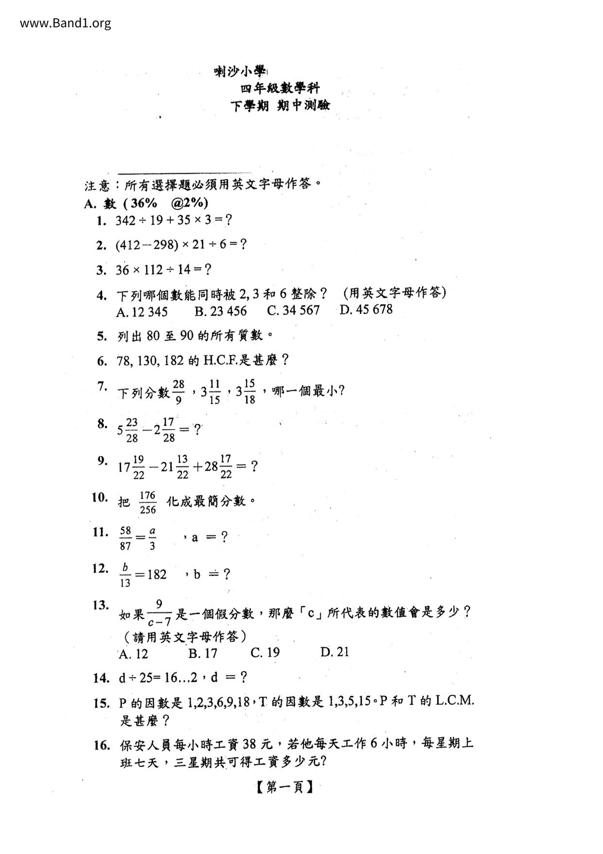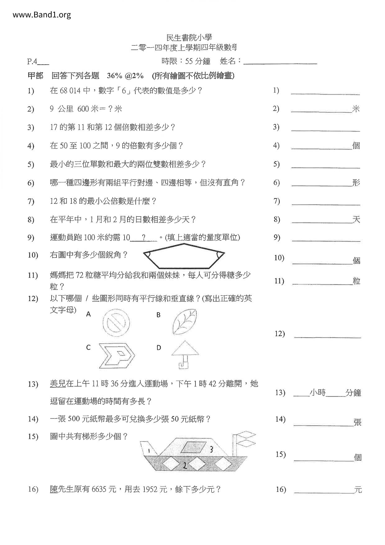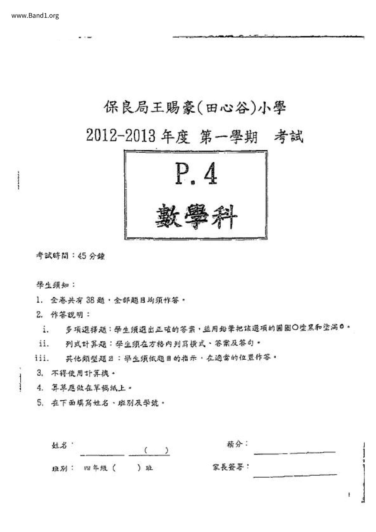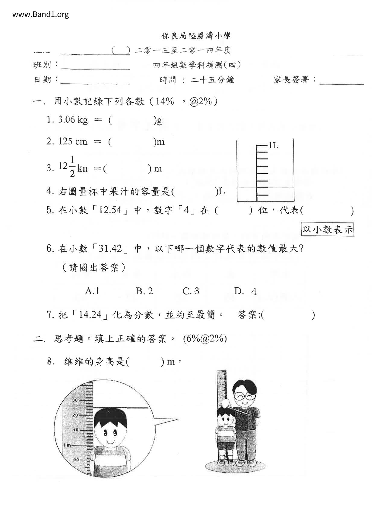 小四 數學 香港九龍塘基督教中華宣道會台山陳元喜小學