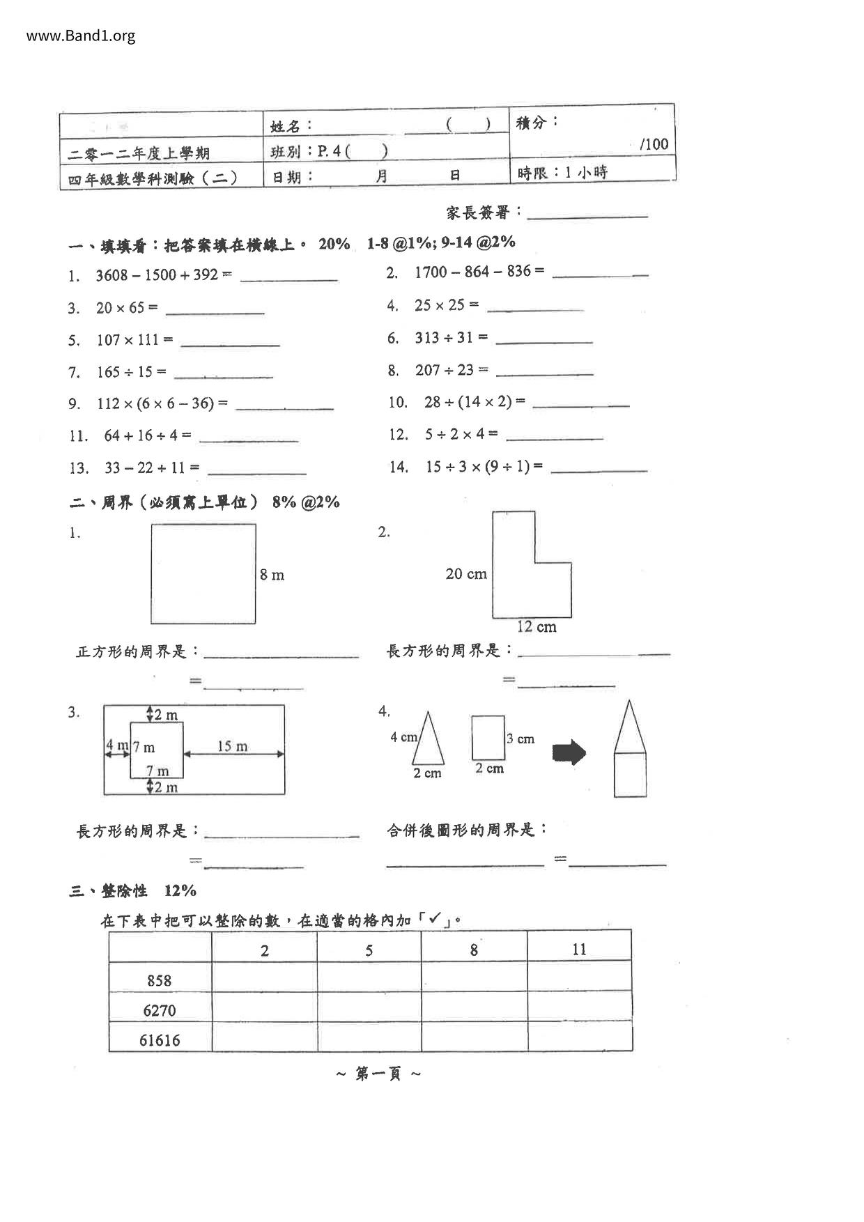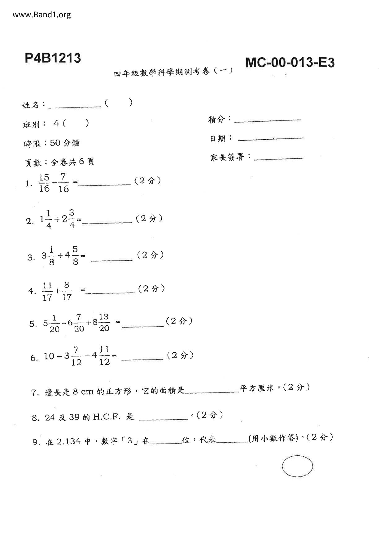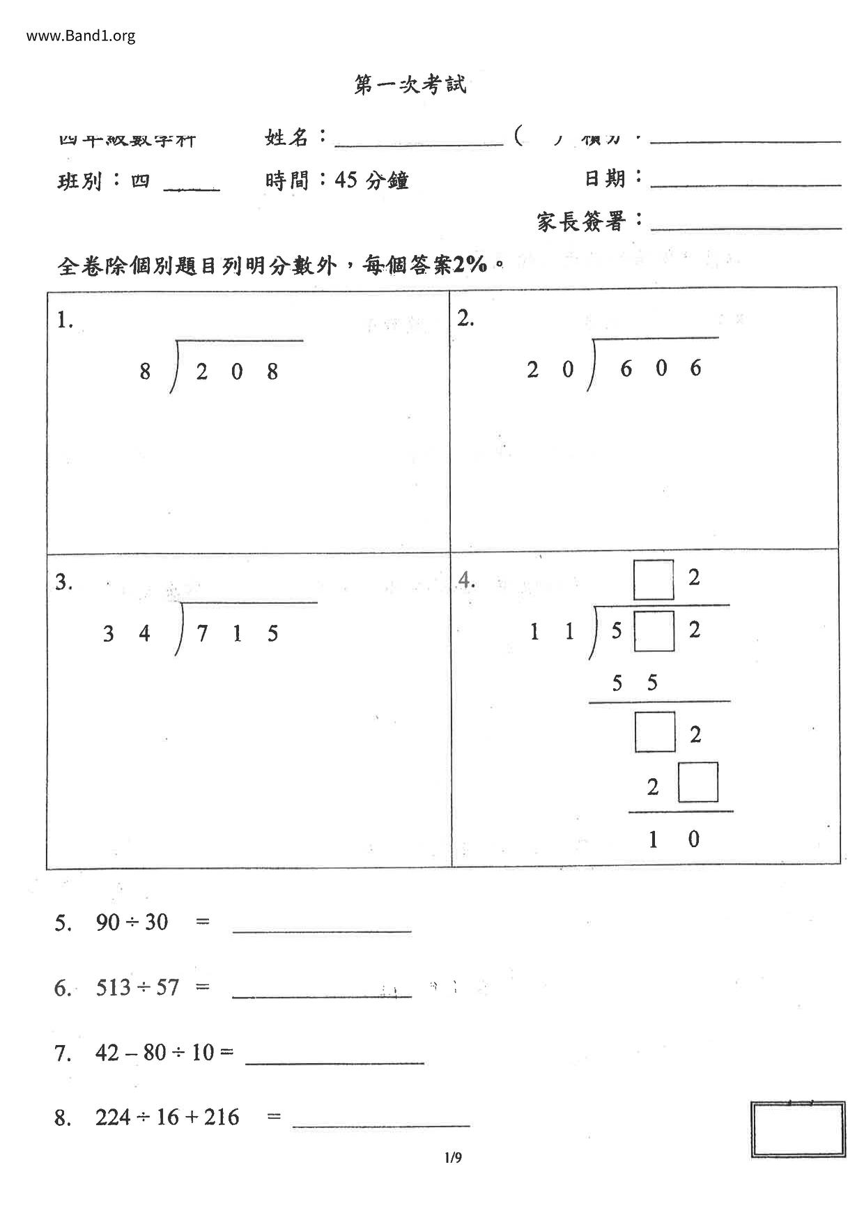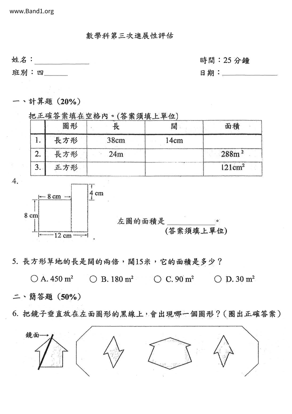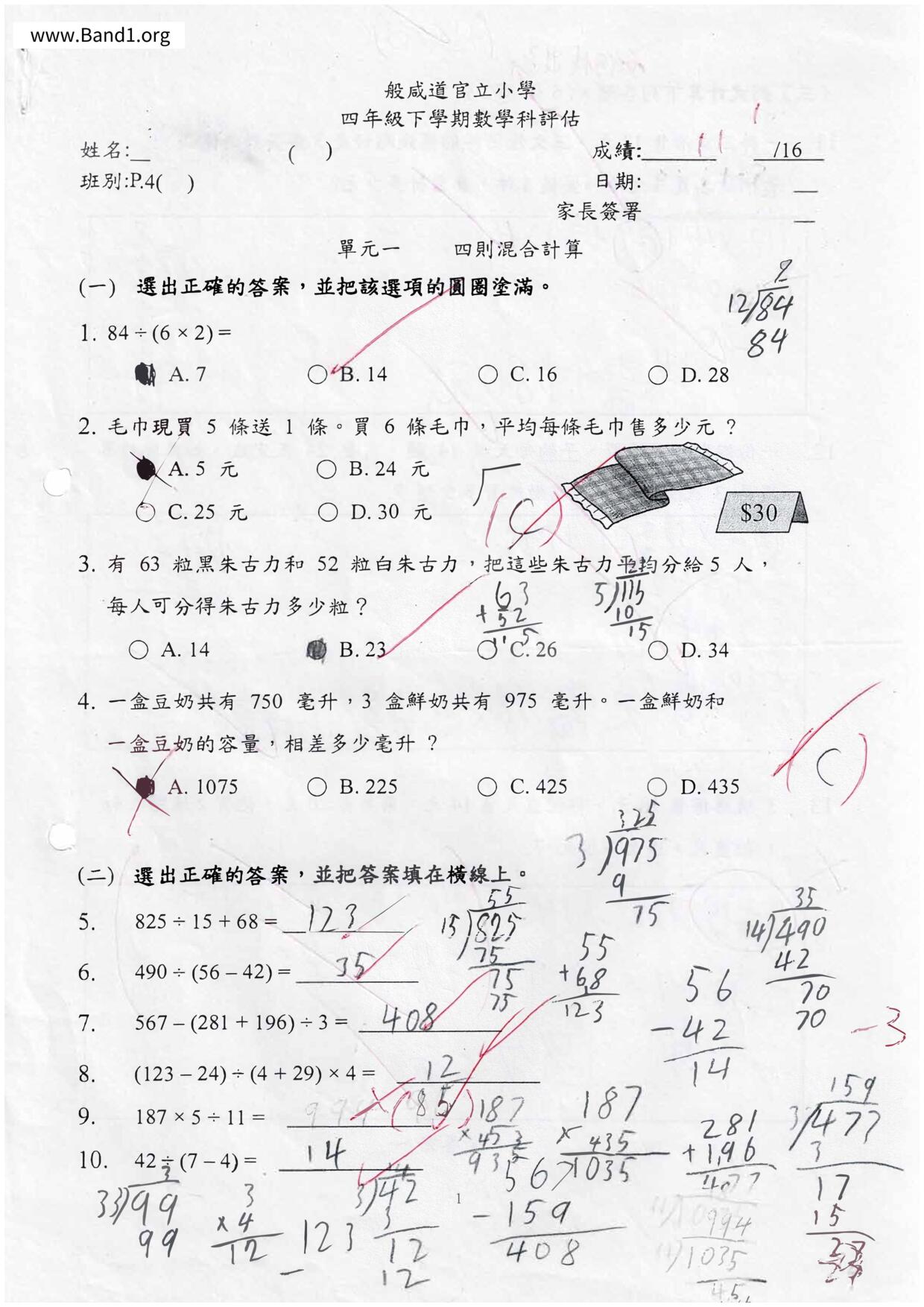 小四 數學 香港九龍塘基督教中華宣道會台山陳元喜小學