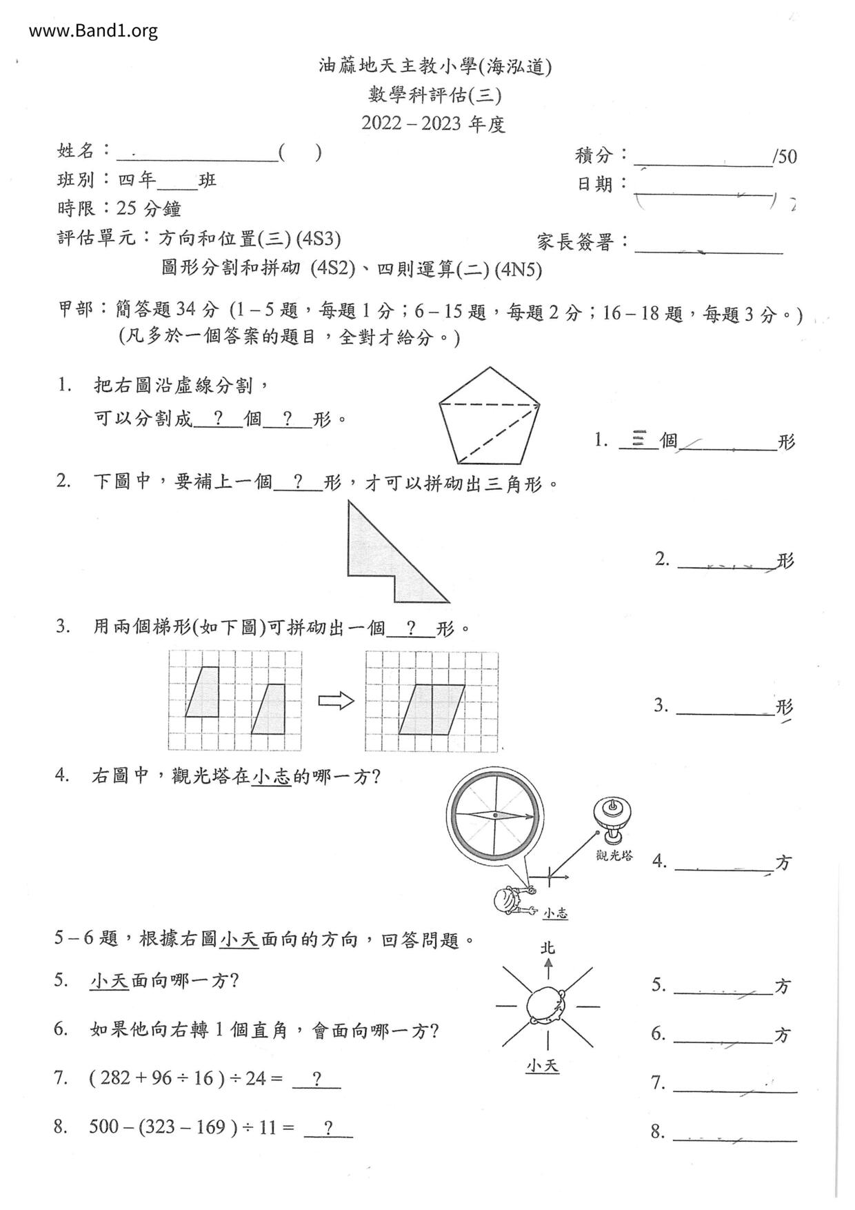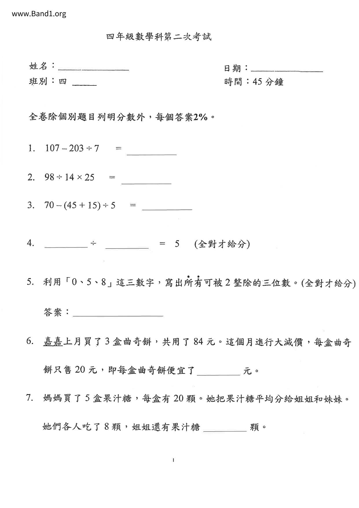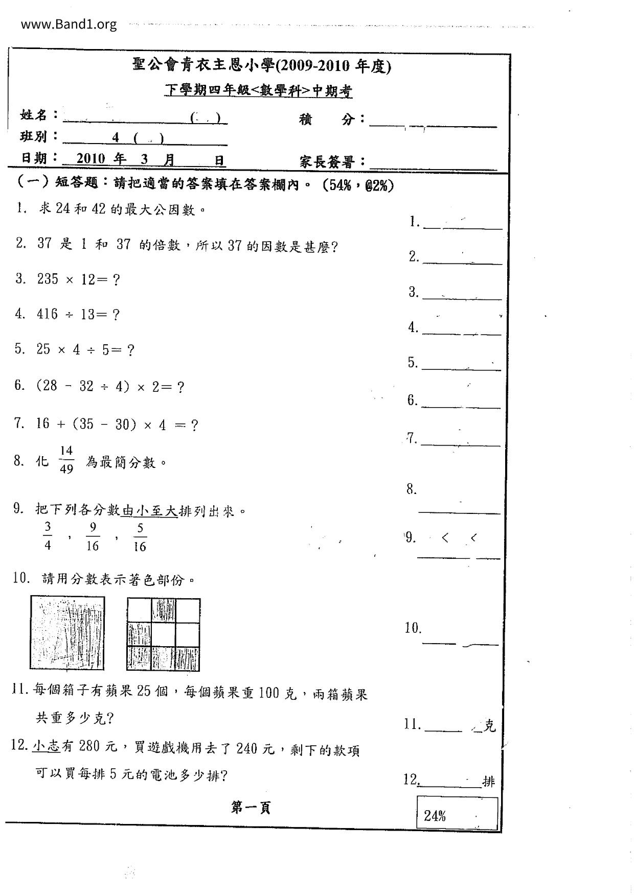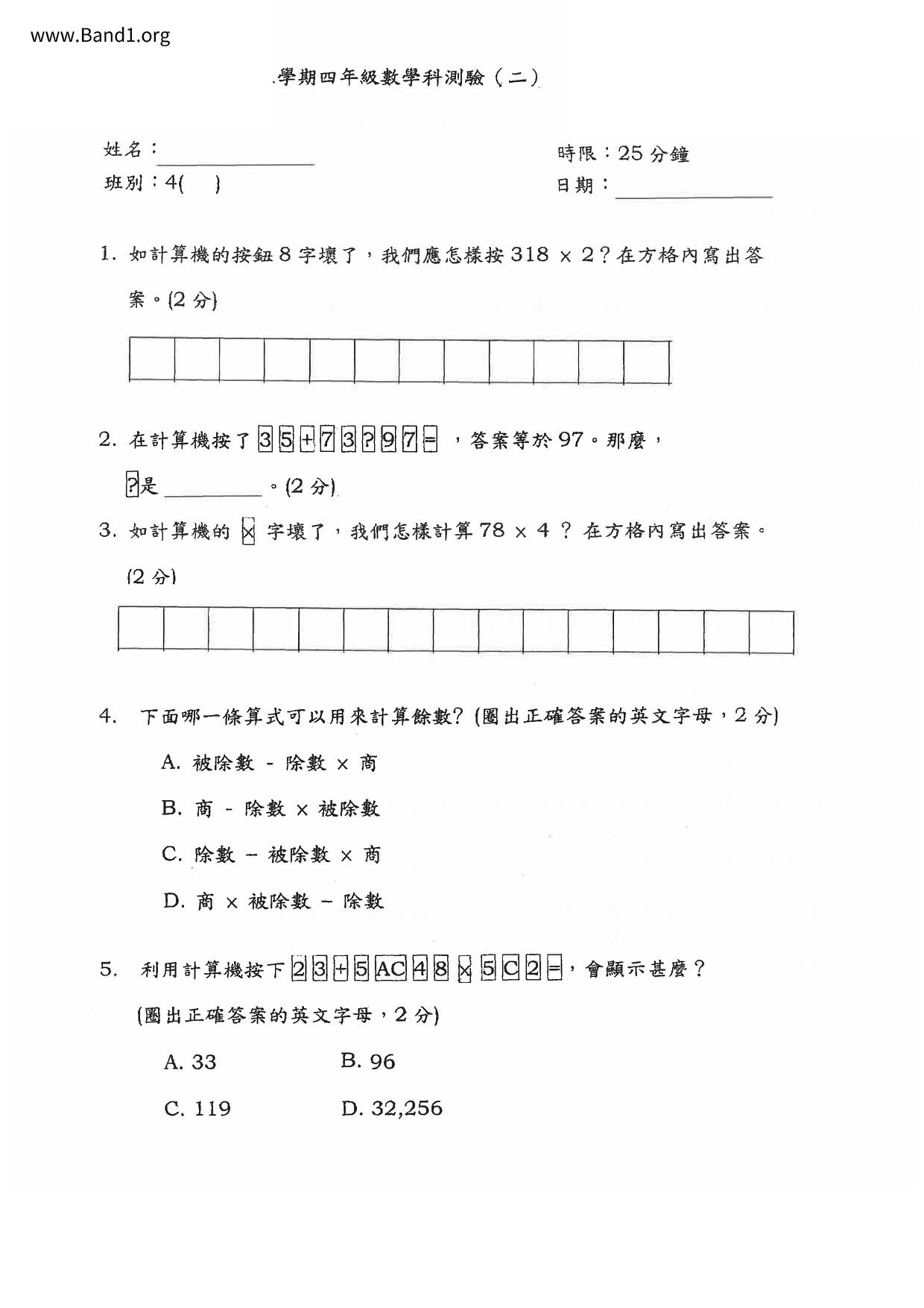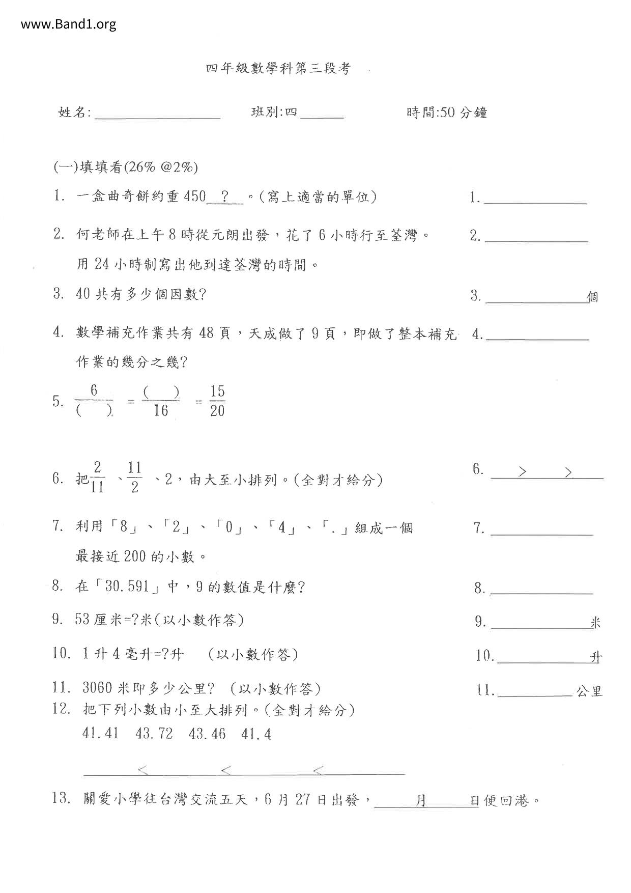 小四 數學 香港九龍塘基督教中華宣道會台山陳元喜小學